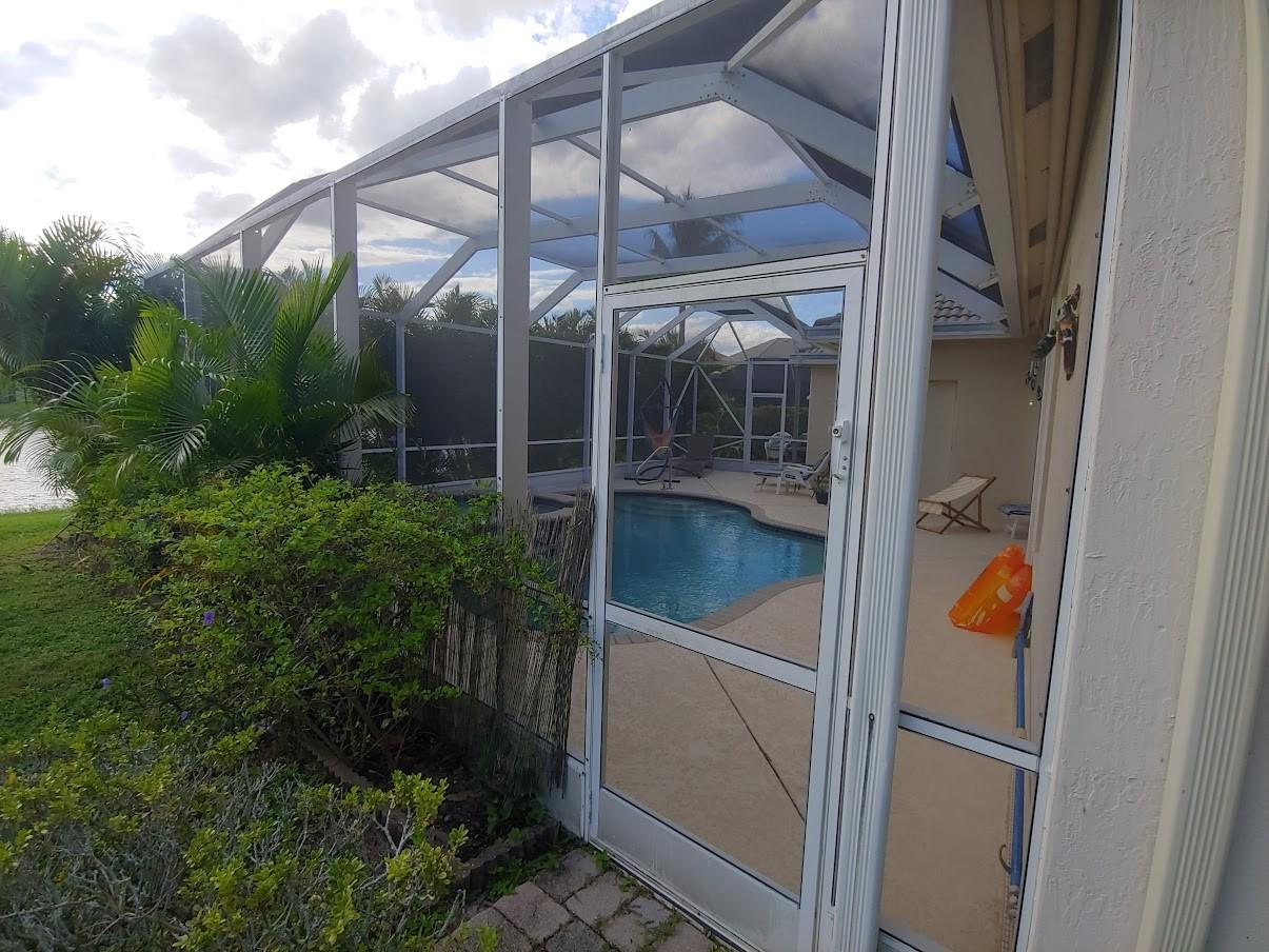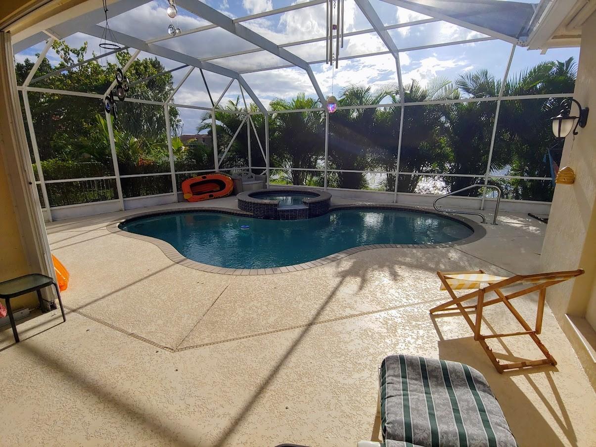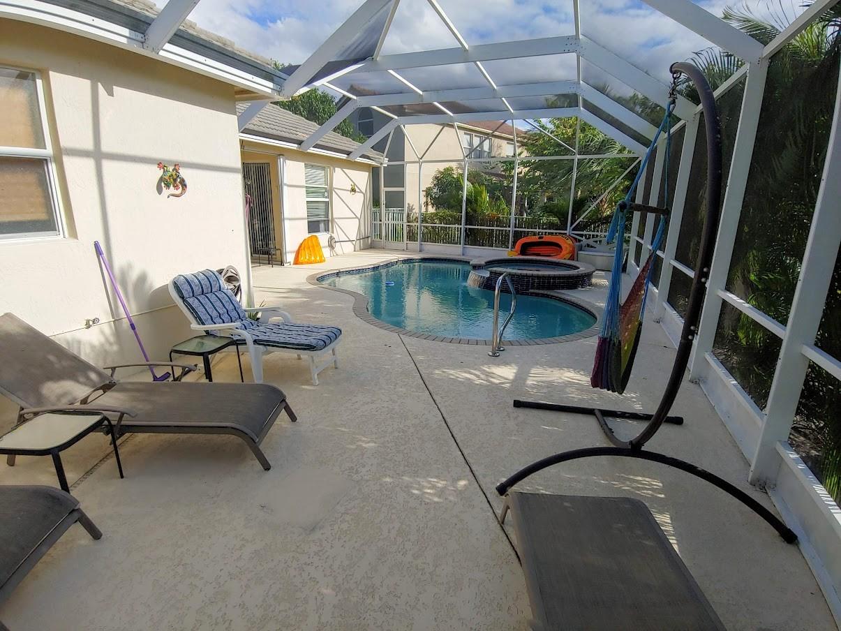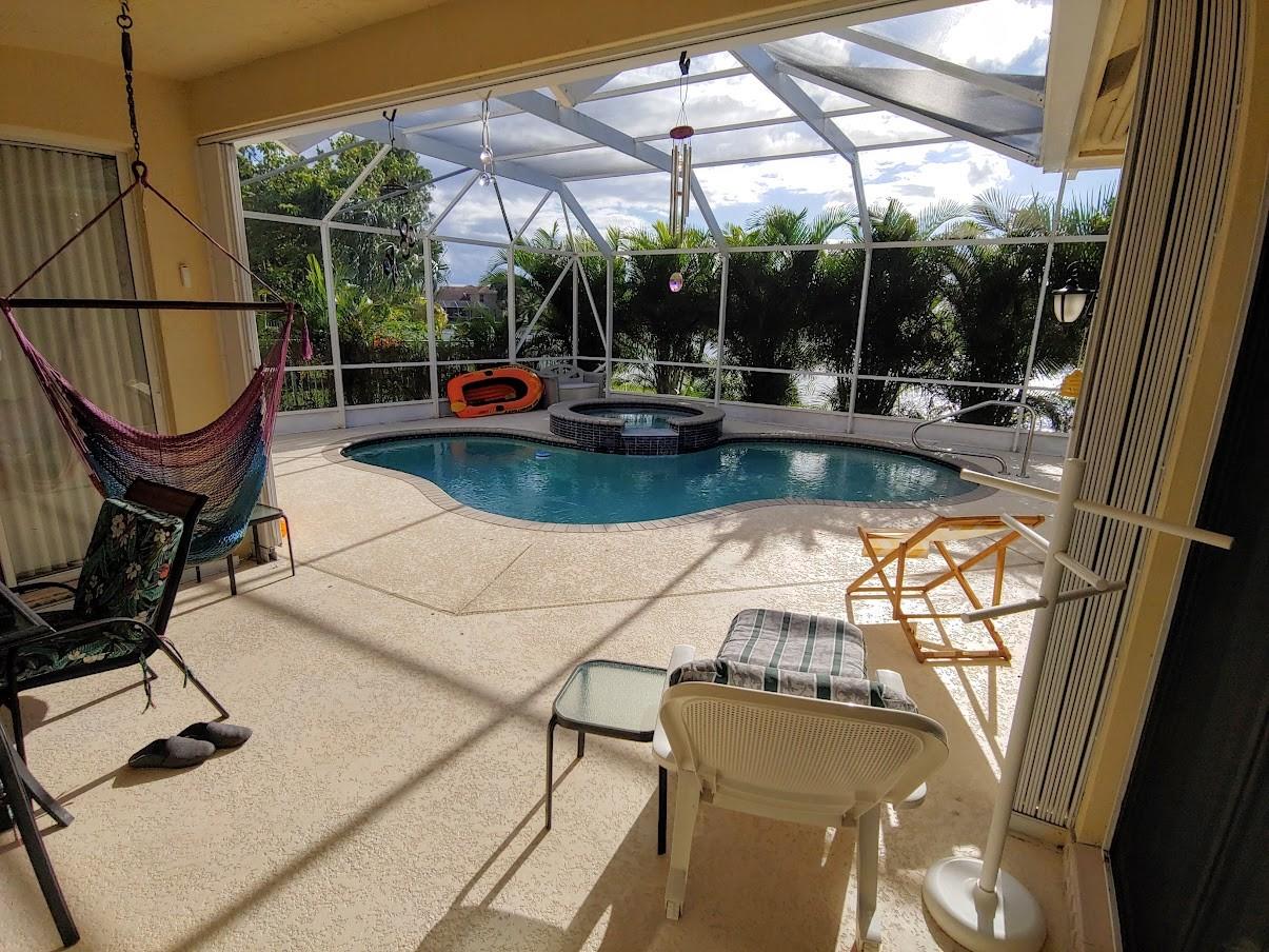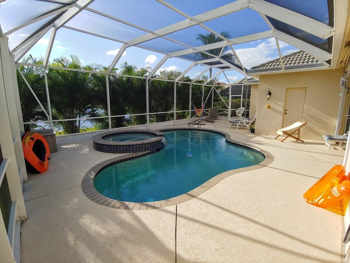 Beautiful well cared for waterfront pool home by original owners in the upscale community of Hamilton Bay on a lake. Single story with 4 Bedrooms and 3 full Baths. Home has a nice bright den /setting room that could be easily converted to 5th bedroom or used as office. Formal Living & Dining rooms, Big kitchen w/island, 2 pantries, breakfast area w/ lunch counter that opens to spacious family room overlooking the pool. Split floor plan Large Master has en-suite with soaking tub separate shower private water closet and double sinks, His and her closets, Screened in pool / patio, Pool & Spa have solar heat, Pool safety fence, Impact windows. Large 3 car garage. Separate laundry room w/sink. Furniture available. Community is gated has large Pool and Spa area, Tennis Courts and Kids play area.