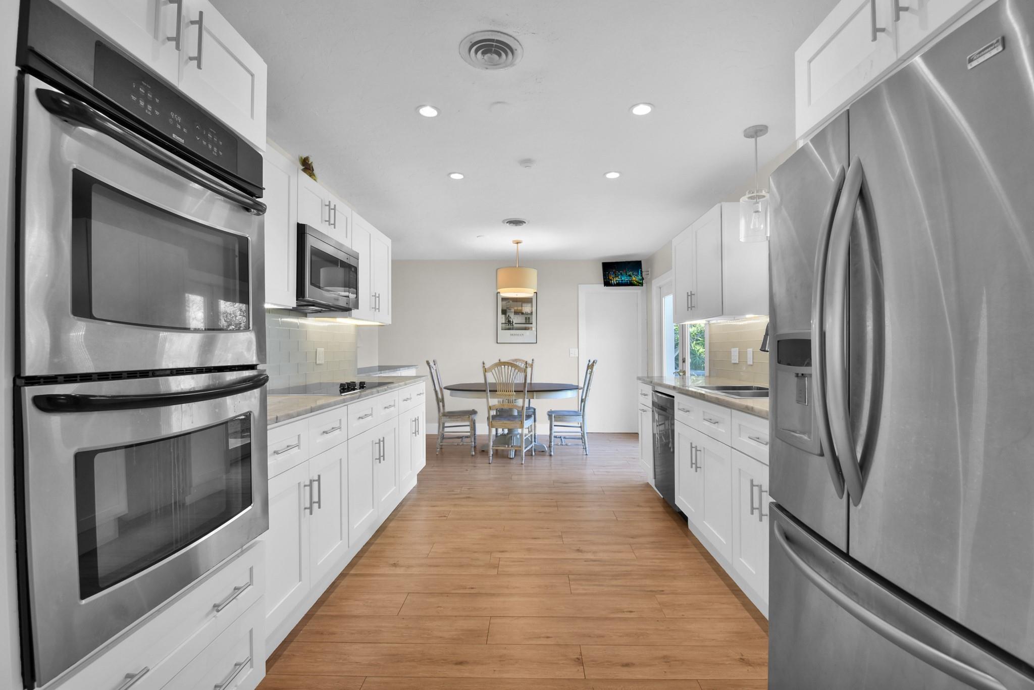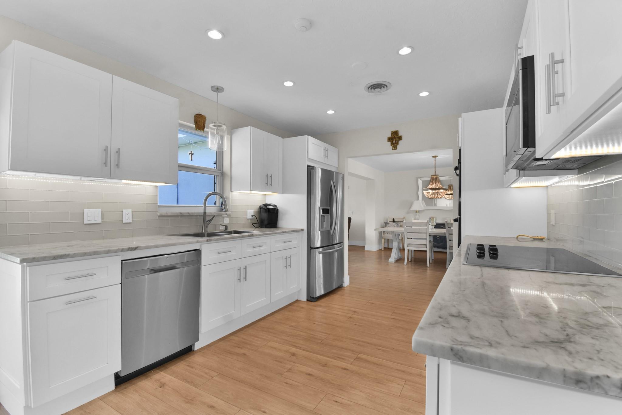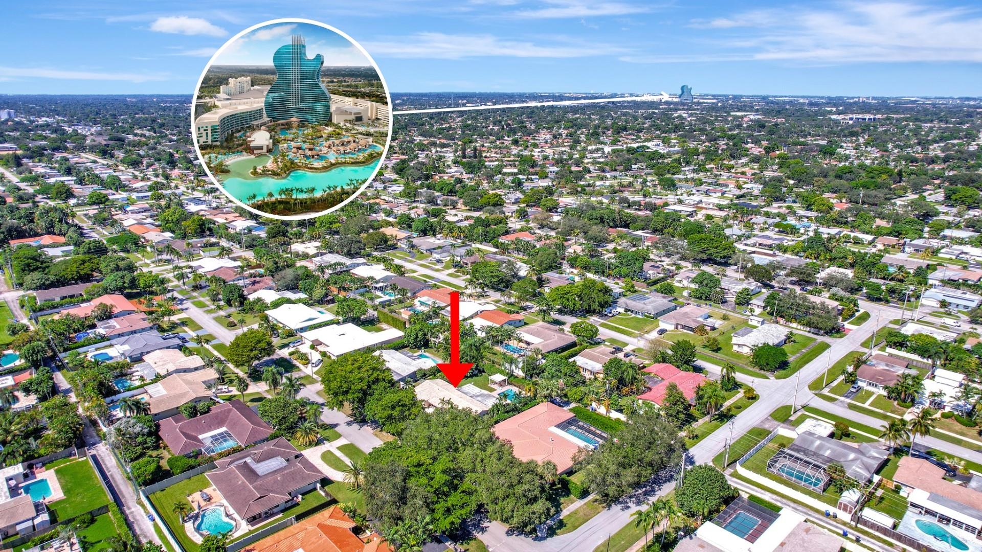 Great location in Hollywood Hills. Spacious pool home with large circular paver driveway. Front porch & 2 car garage. This house sits high on the hill on a 13,298 sq. ft. double lot. New kitchen and porcelain plank flooring. Kitchen has quartz counter tops, wood cabinets and breakfast room with built in credenza. Remodeled primary bathroom. New flat roof in 2022. 30KW standby generator. Van Kirk poll with sun shelf and salt water system. Concrete fence around perimeter of backyard.