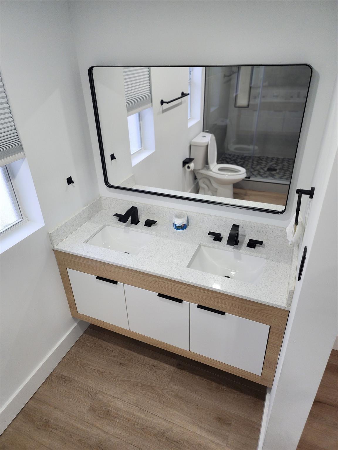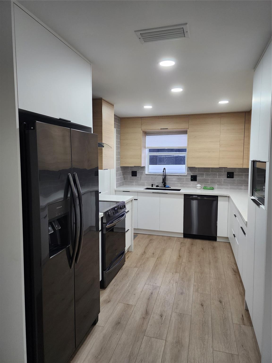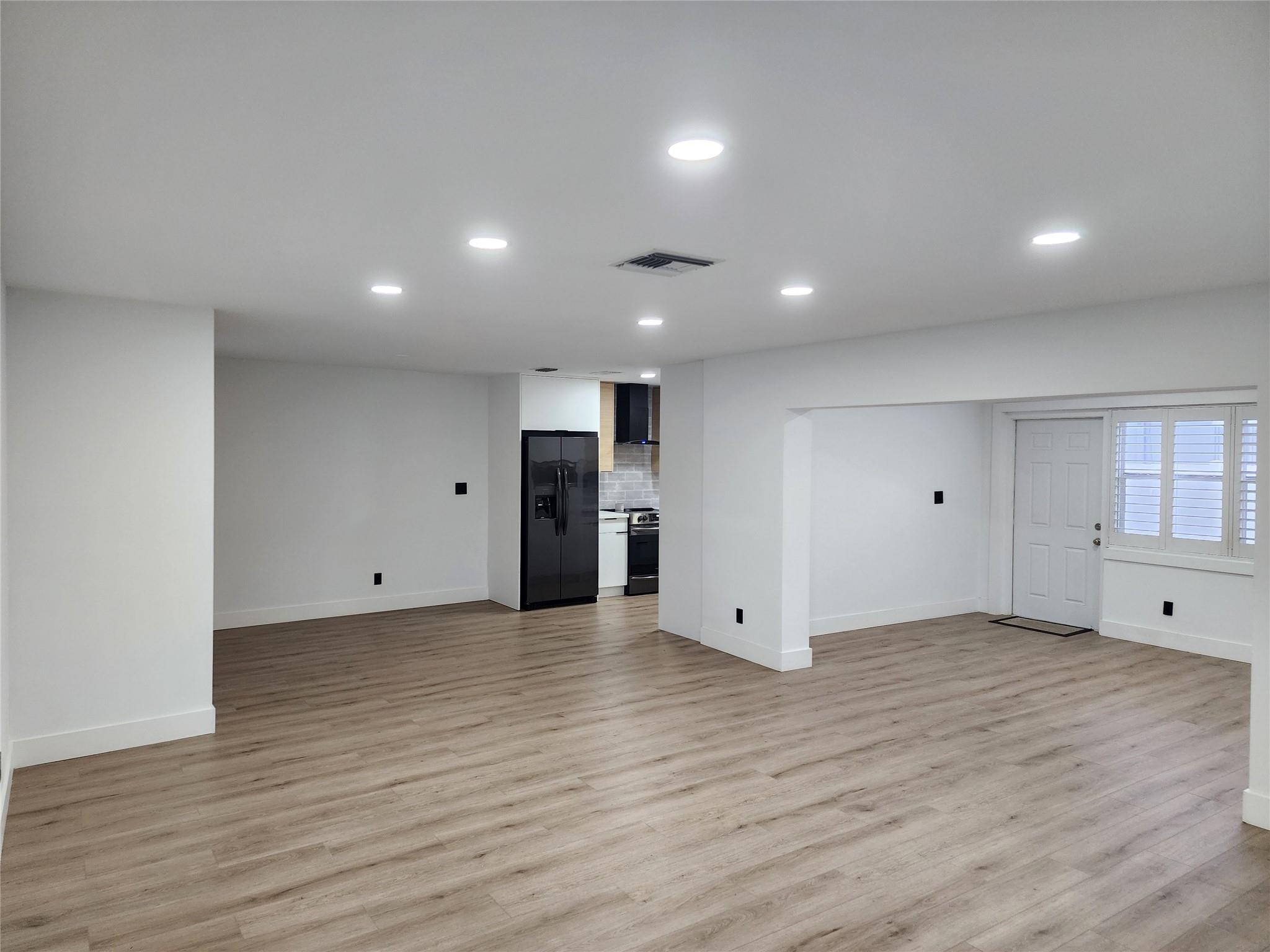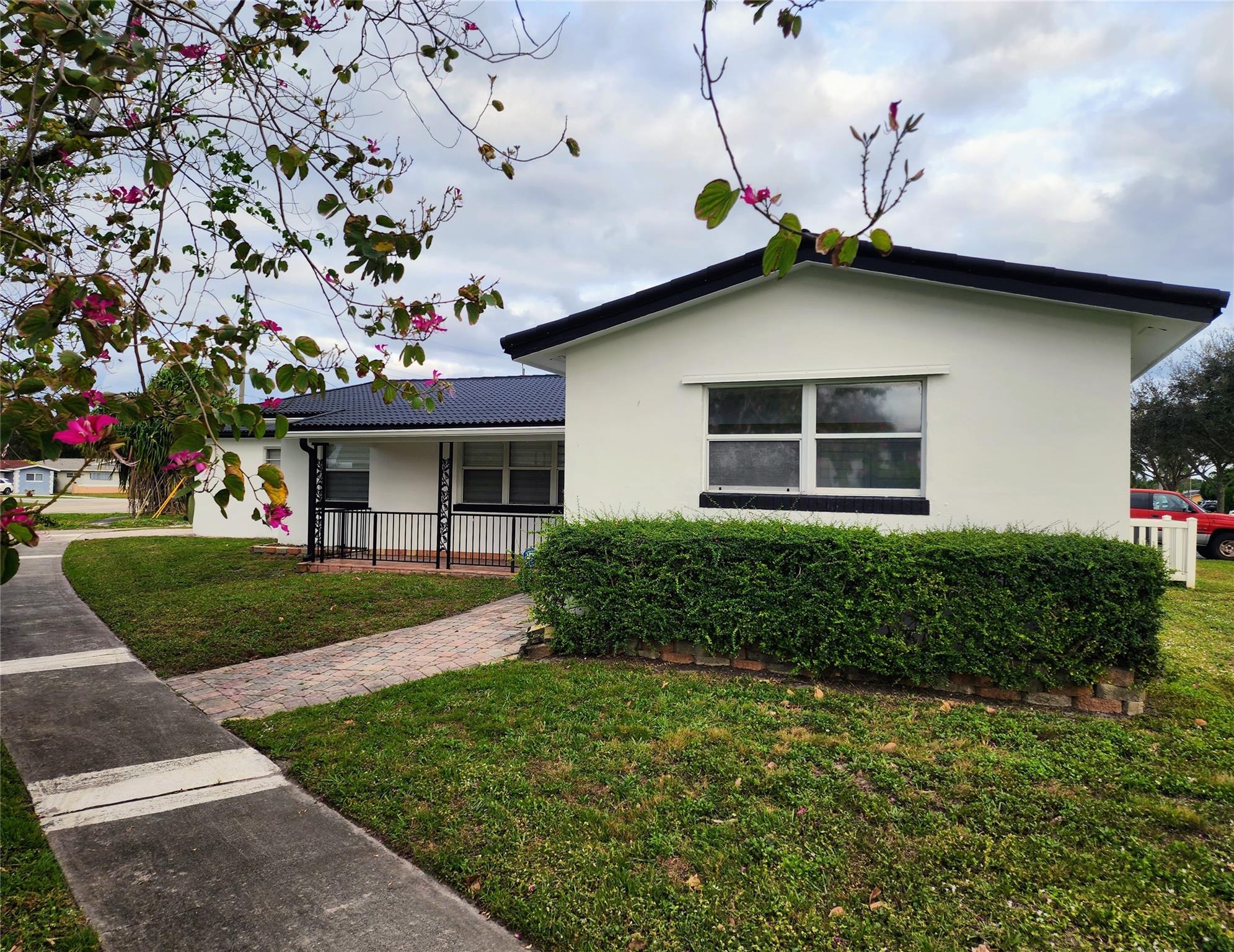 Corner home with plenty of outdoor living area that wraps around the property allowing for a great pool area design. Located in the highly desirable Hollywood Hills neighborhood. 3 beds and 2 baths. Modern kitchen with self-closed cabinets, plenty of storage space, quartzite countertops, black satin accessories, and high-end appliances. Stylist black and white interior remodeling throughout. LED lighting and vinyl flooring. Bathrooms are equally appointed to match the kitchen cabinets look. Both bathrooms feature high-end interior finishes. All bedrooms feature spacious closets with a barn door look. Short-term, NO HOA restrictions. Located close to Hollywood downtown, minutes from the beach, Hard Rock Hotel & Casino, Joe DiMaggio Children’s Hospital, and FLL International Airport.