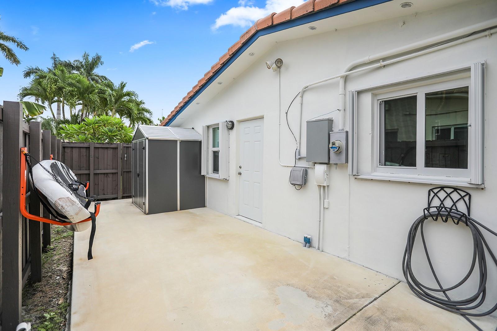 Exterior Features : Enclosed Porch, Fence, Room For Pool, Shed, Security High Impact Doors, Storm Security Shutters