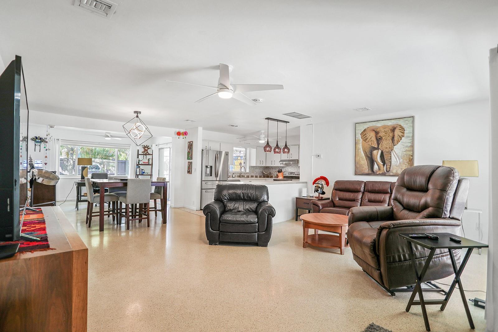LOCATION, LOCATION, LOCATION! Beautiful, pristinely maintained 3/2 home + 4th large bonus room! Large corner lot! Room for pool! East of US1, less than 1 mile to Hollywood Beach & boardwalk! Spacious open layout! Split bedroom! Walk-in closet! Terrazzo floors in living areas (other than kitchen, laundry & bonus room). Hunter Douglas customed window treatments 22! Newer (2 yrs) Samsung SS refrigerator, stove, washer/dryer! Gas WH! Big screened patio! Huge circular driveway park 6 cars! Impact windows ’22 (sliding doors & kitchen window accordion shutters). Permitted, air-conditioned, cottage in back! Storage sheds! Fresh paint inside & out! Fence freshly painted! AC ’17! Tented ’19! Flat roof ’22! All eaves replaced! Access to well water! Close to restaurants, shopping, groceries & more!