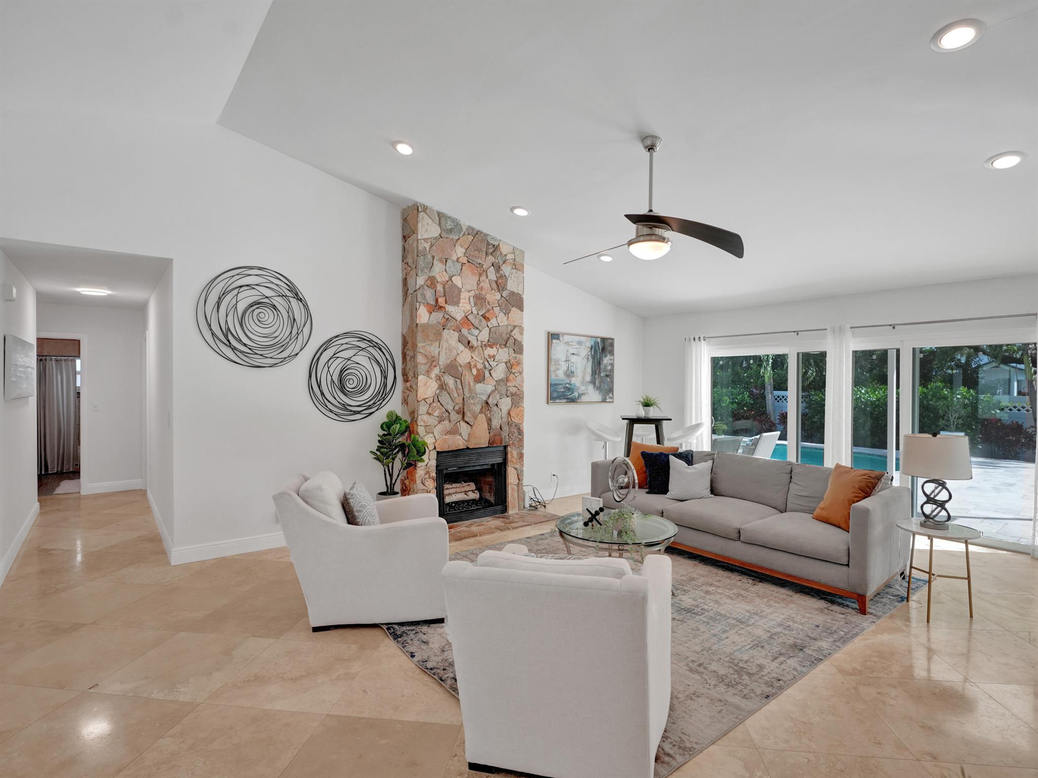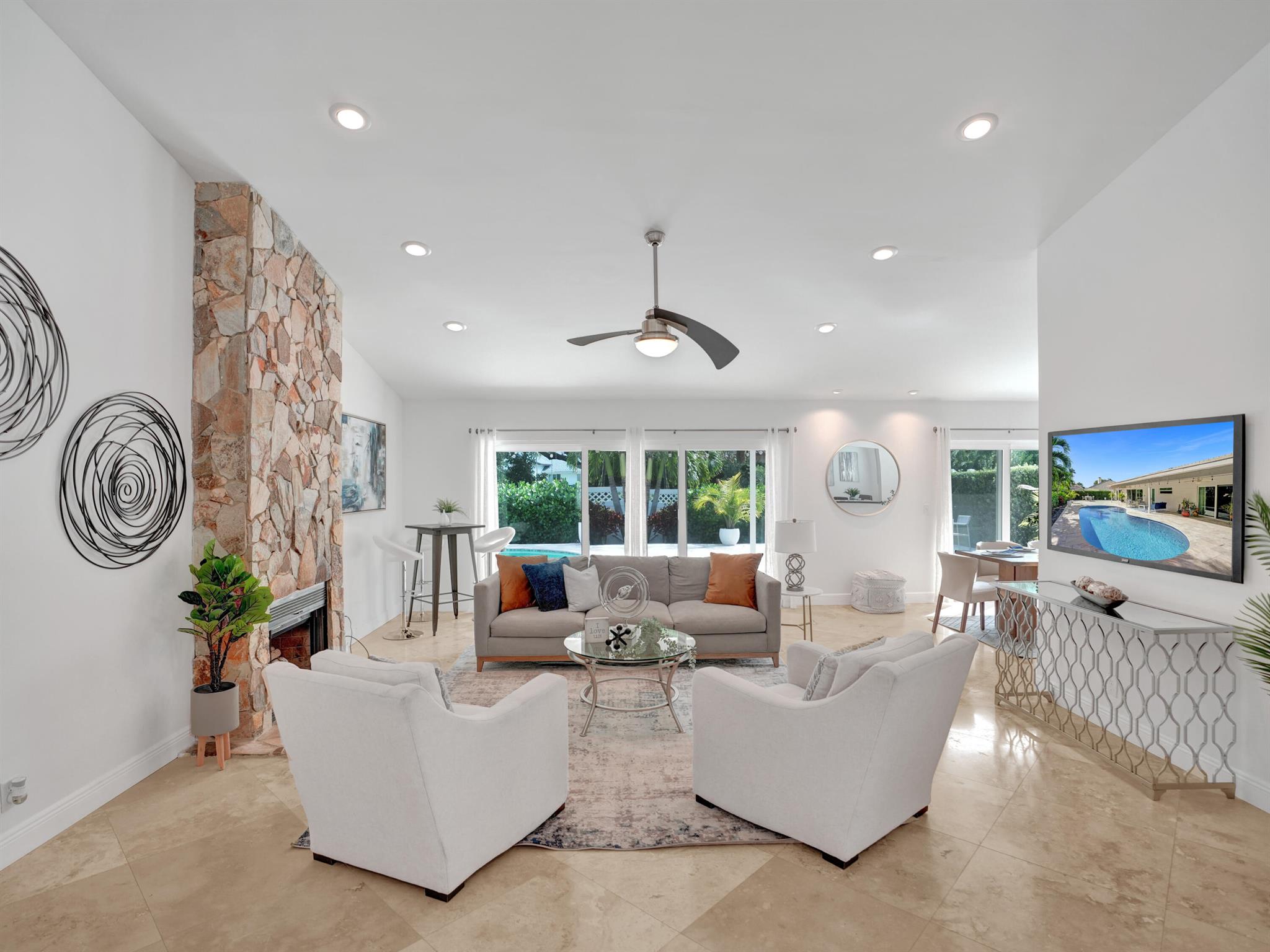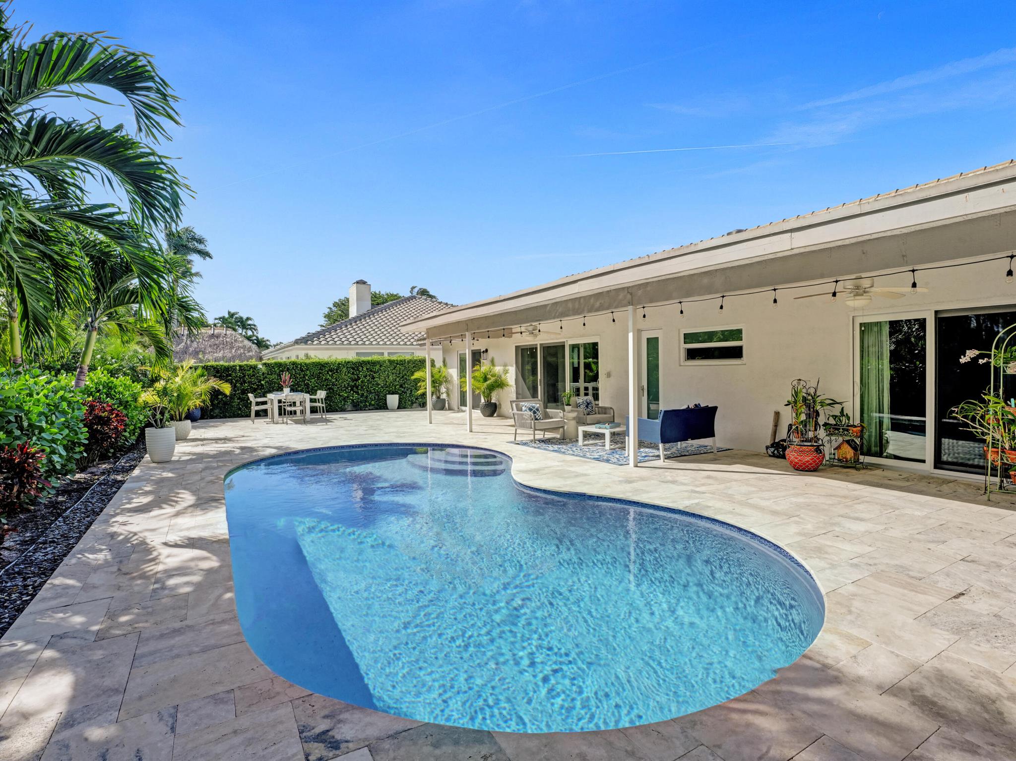 Discover your tropical getaway in this hidden gem of a neighborhood of Boca South. Indulge in the indoor/outdoor Florida lifestyle with this bright and modern 3 bedroom, 2 bath home with a large pool, travertine patio and lush landscaping perfect for entertaining. Wood burning fire place in the living room and eat-in kitchen looks to formal dining room with serene views of the backyard. The house is complete with impact hurricane rated windows and all doors including the garage. Tankless hot water heater installed in 2018 and newer roof from 2016. New interior and exterior paint. Primary bedroom has a cabana bath and large walk-in closet. Zoned for A+ rated schools including Addison Mizner Elementary. Centrally located near Town Center Mall, 2.5 miles to the beach and bike to parks.