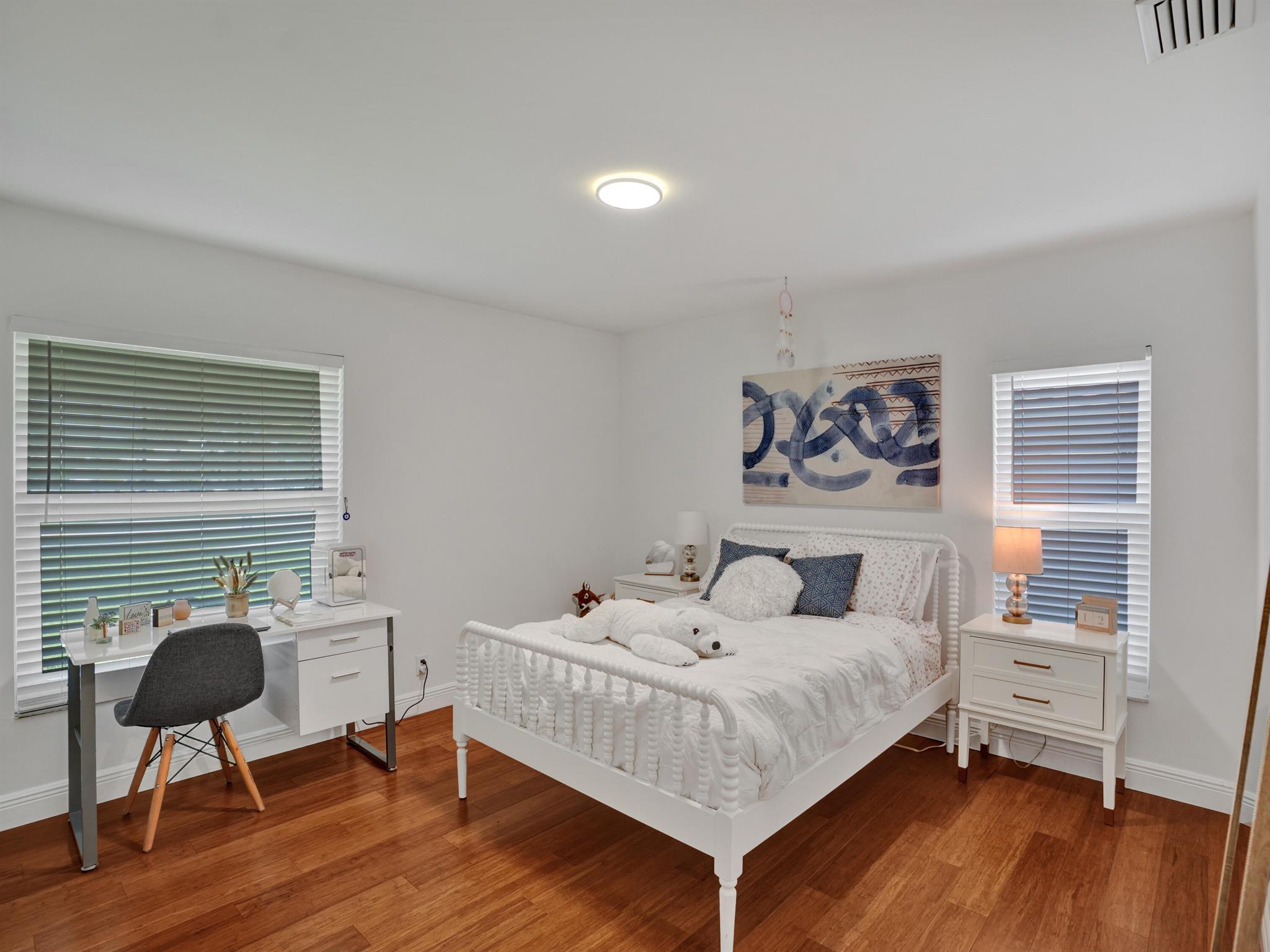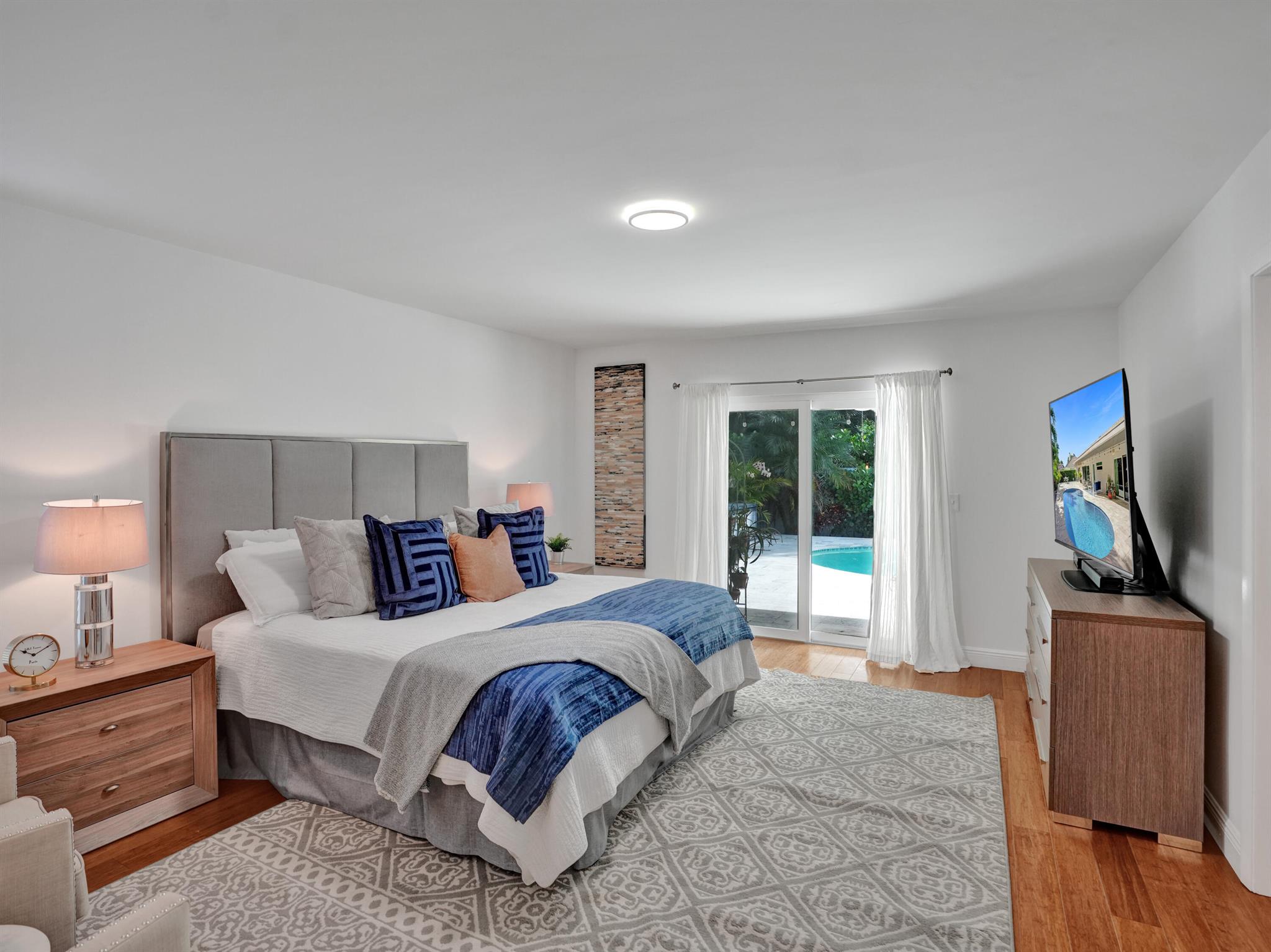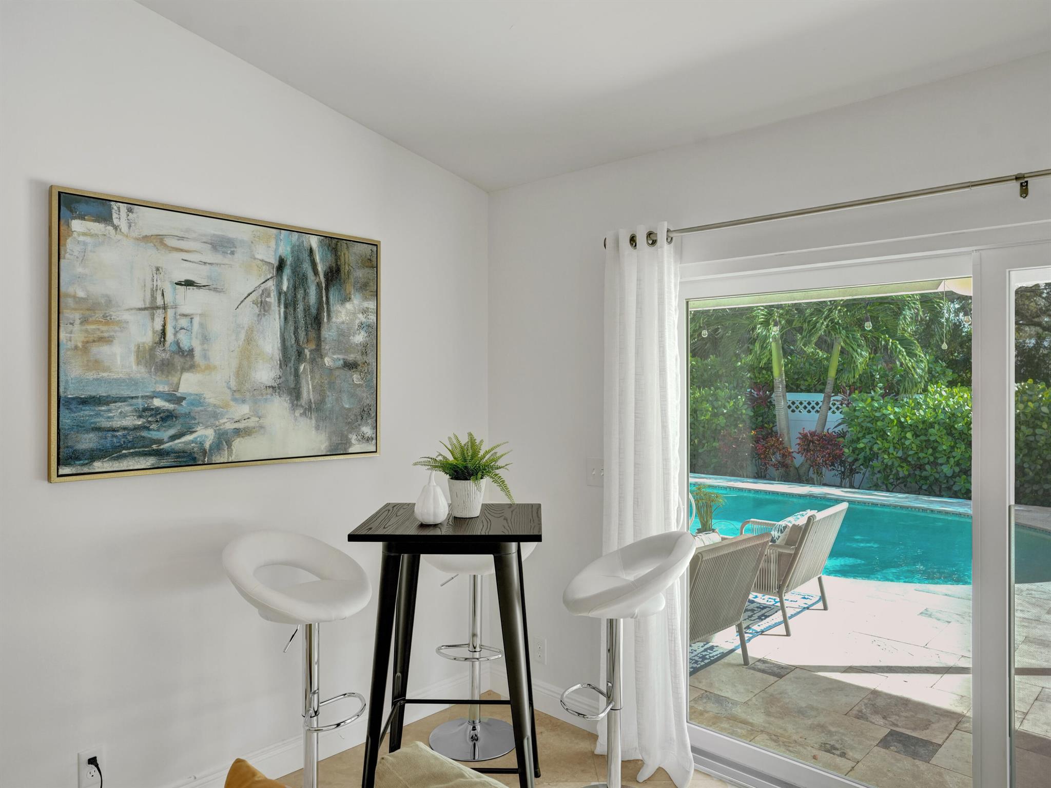Discover your tropical getaway in this hidden gem of a neighborhood of Boca South. Indulge in the indoor/outdoor Florida lifestyle with this bright and modern 3 bedroom, 2 bath home with a large pool, travertine patio and lush landscaping perfect for entertaining. Wood burning fire place in the living room and eat-in kitchen looks to formal dining room with serene views of the backyard. The house is complete with impact hurricane rated windows and all doors including the garage. Tankless hot water heater installed in 2018 and newer roof from 2016. New interior and exterior paint. Primary bedroom has a cabana bath and large walk-in closet. Zoned for A+ rated schools including Addison Mizner Elementary. Centrally located near Town Center Mall, 2.5 miles to the beach and bike to parks.