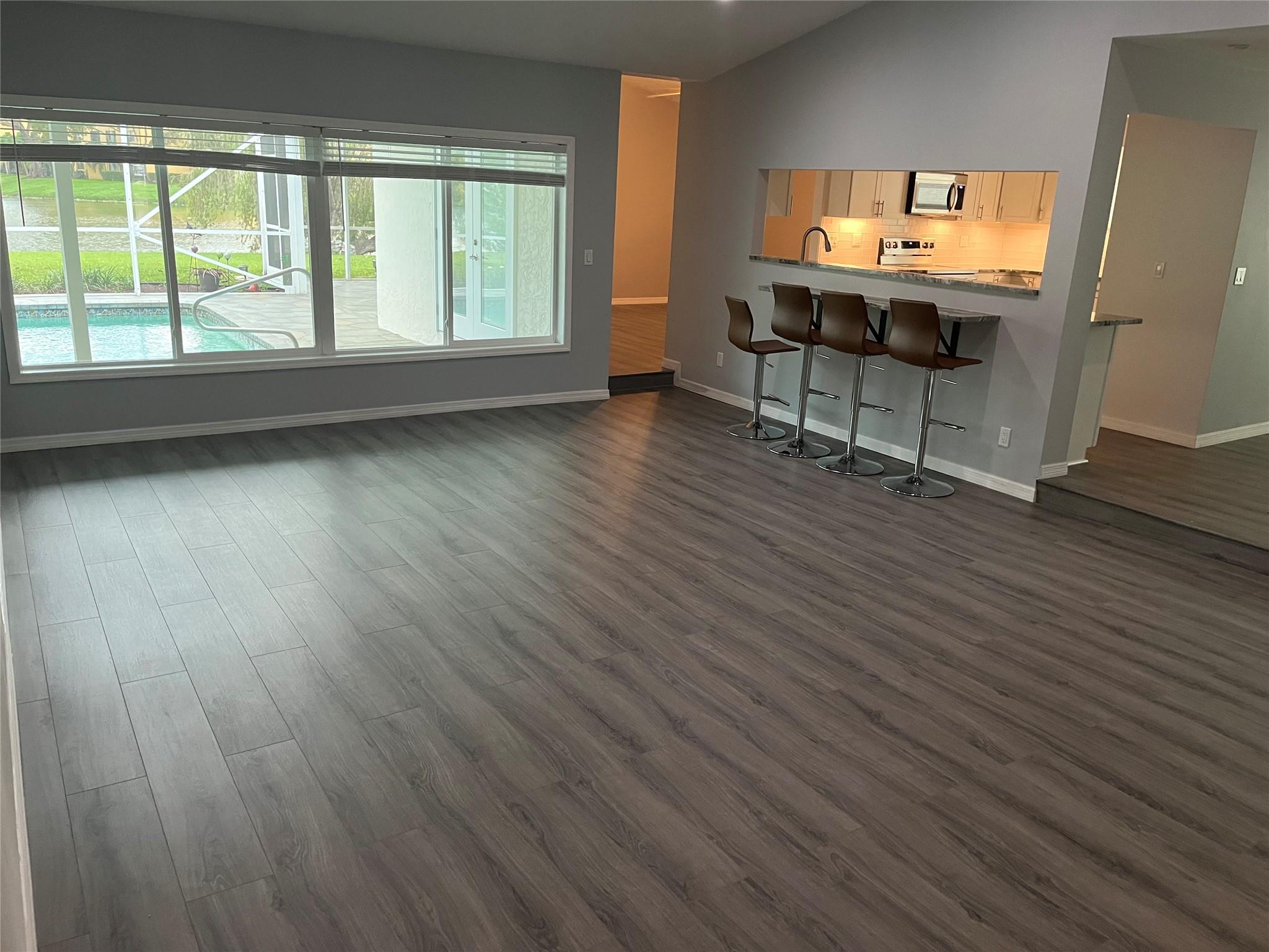 All Ages, No HOA, Pet Friendly, Stunningly Renovated spacious 3 bedroom, 2.5 baths single family home with a 2 car garage and a family room that could be used as a 4th bedroom or office. This turn key property boasts gorgeous pool and lake views with ideal outdoor entertaining space. From the beautiful viny flooring, Well thought out kitchen with granite and stainless steel appliances, to the updated bathrooms, impact windows and doors, new A/C, and open inviting space, this property is amazing! View and Buy!