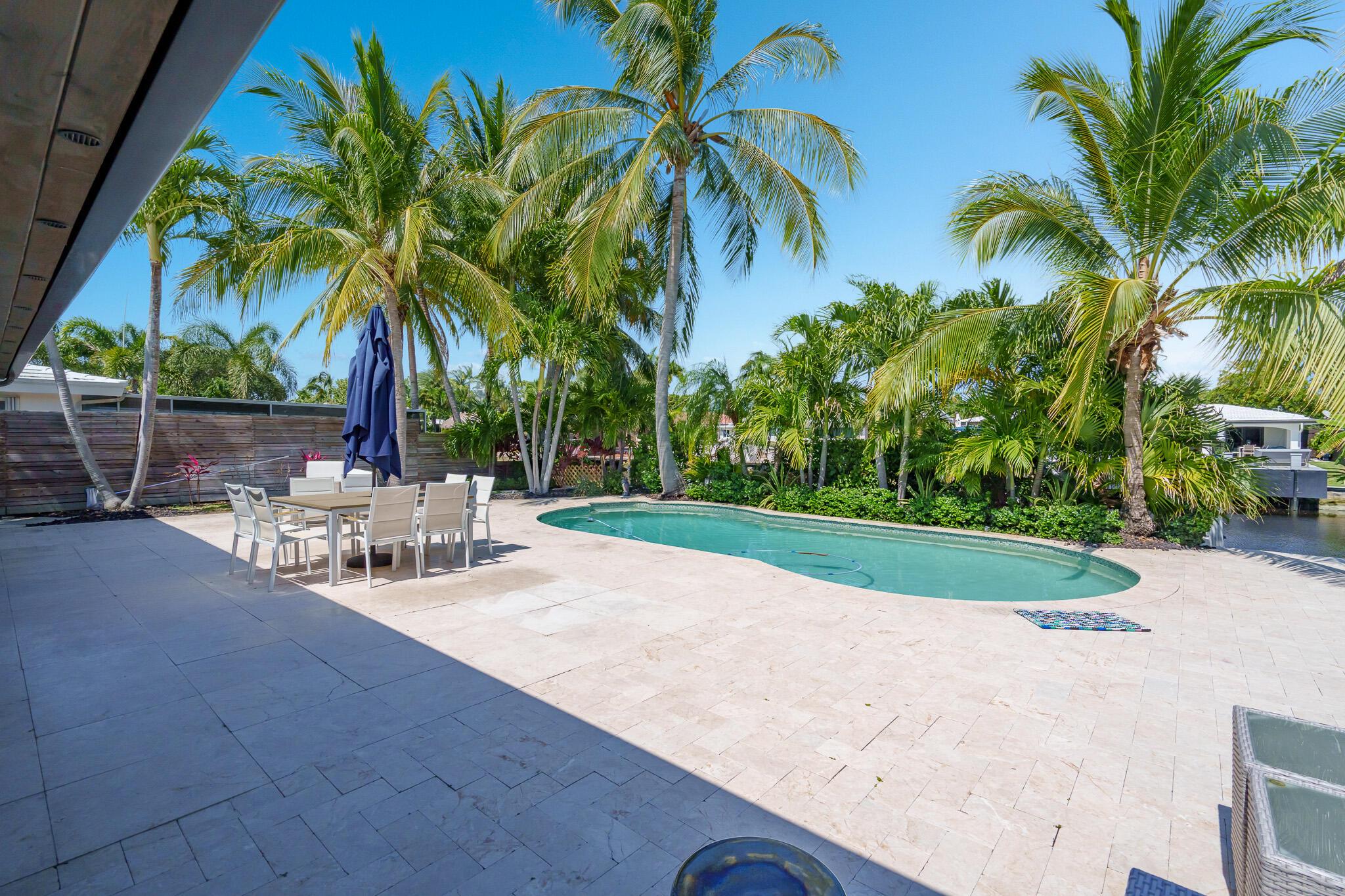 Contemporary, remodeled and bright 3 bedroom, 2 bath over 1600 sq. ft single family homes in the luxury Wilton Manors. No HOA, Property is waterfront, with direct access to the ocean. Saltwater solar pool, large backyard, boat lift. Beautiful remodeled kitchen with porcelain tile. Build out closets and Impact windows and doors throughout. Wonderful NE Wilton Manors waterfront neighborhood,