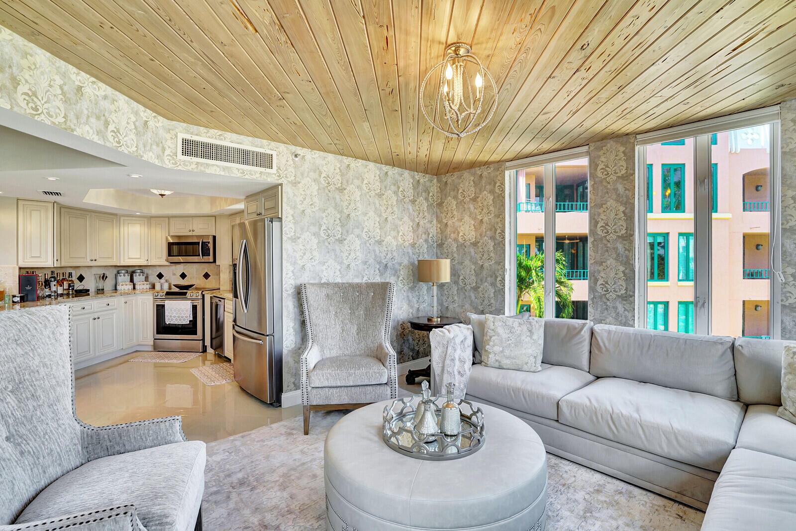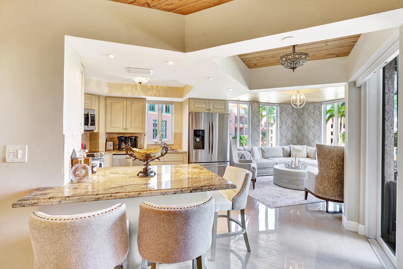 MIZNER COURT IS A GATED COMMUNITY LOCATED ON THE WATERFRONT OF LAKE BOCA RATON. IT OFFERS 24/7 MANNED SECURITY, A MARINA WITH AVAILABLE GUEST BOAT SLIPS, PRIVATE HAR-TRU TENNIS COURTS, FOUR SPAS, TWO FITNESS ROOMS WITH CARDIO AND WEIGHT TRAINING EQUIPMENT, STEAM AND SAUNA, EV CHARGING STATIONS, DESIGNATED CAR WASH AREA, BICYCLE RACKS, ASSIGNED INDOOR PARKING. DONWTOWN LOCATION ONE BLOCK FROM MANY RESTAURANTS AND THREE BLOCKS FROM THE BEACH. NO MEMBESHIP IS REQUIRED. THE UNIT IS LOCATED ON THE 4TH FLOOR WITH A SE EXPOSURE, SUN IN THE MORNING AND COOL AFTERNOONS AT END OF DAY. THE FLOOR TREATMENT ON THE FOYER, LIVING ROOM AND KITCHEN ARE 24” INCH LIGHT BEIGE MARBLE TILE LAID ON DIAGONAL EACH ROOM ACCENTUATED WITH A GORGEOUS AUBURN SOUTHERN PINE PECKY WOOD CEILING INCLUDING THE FAMILY ROOM