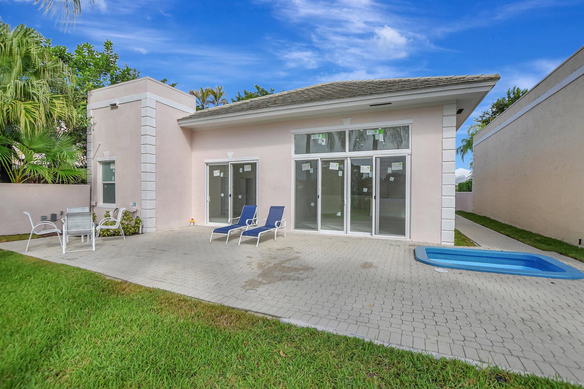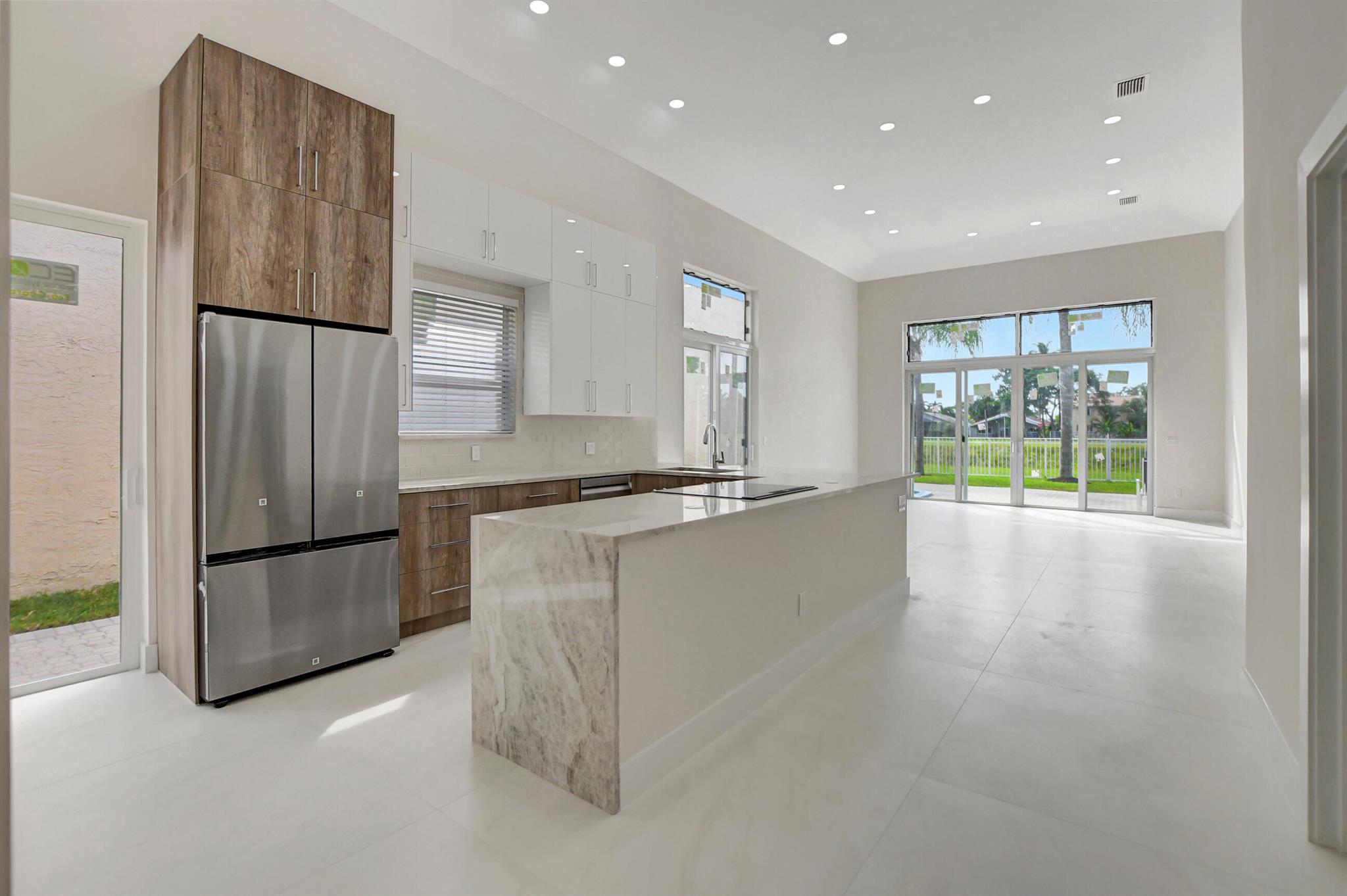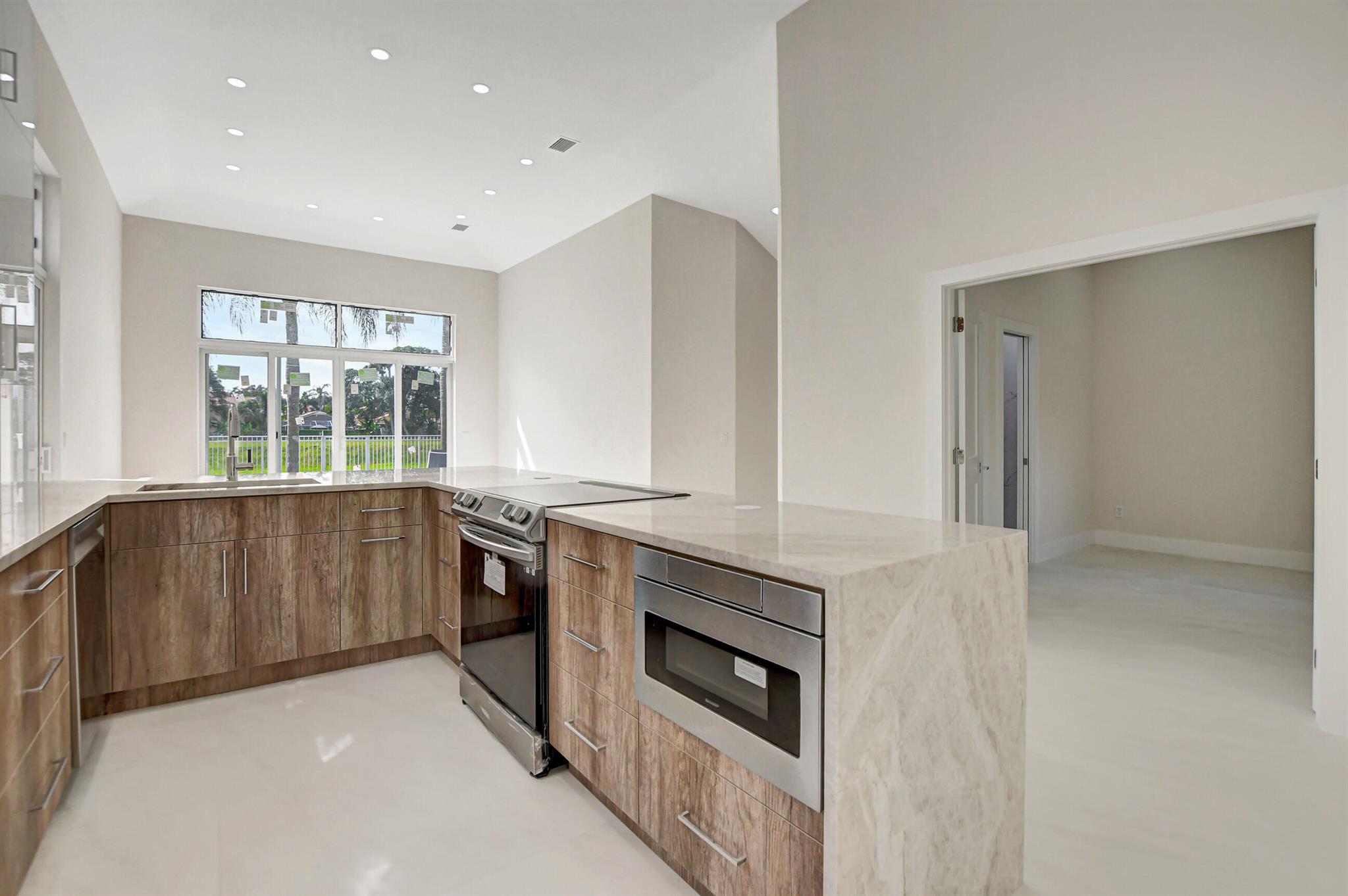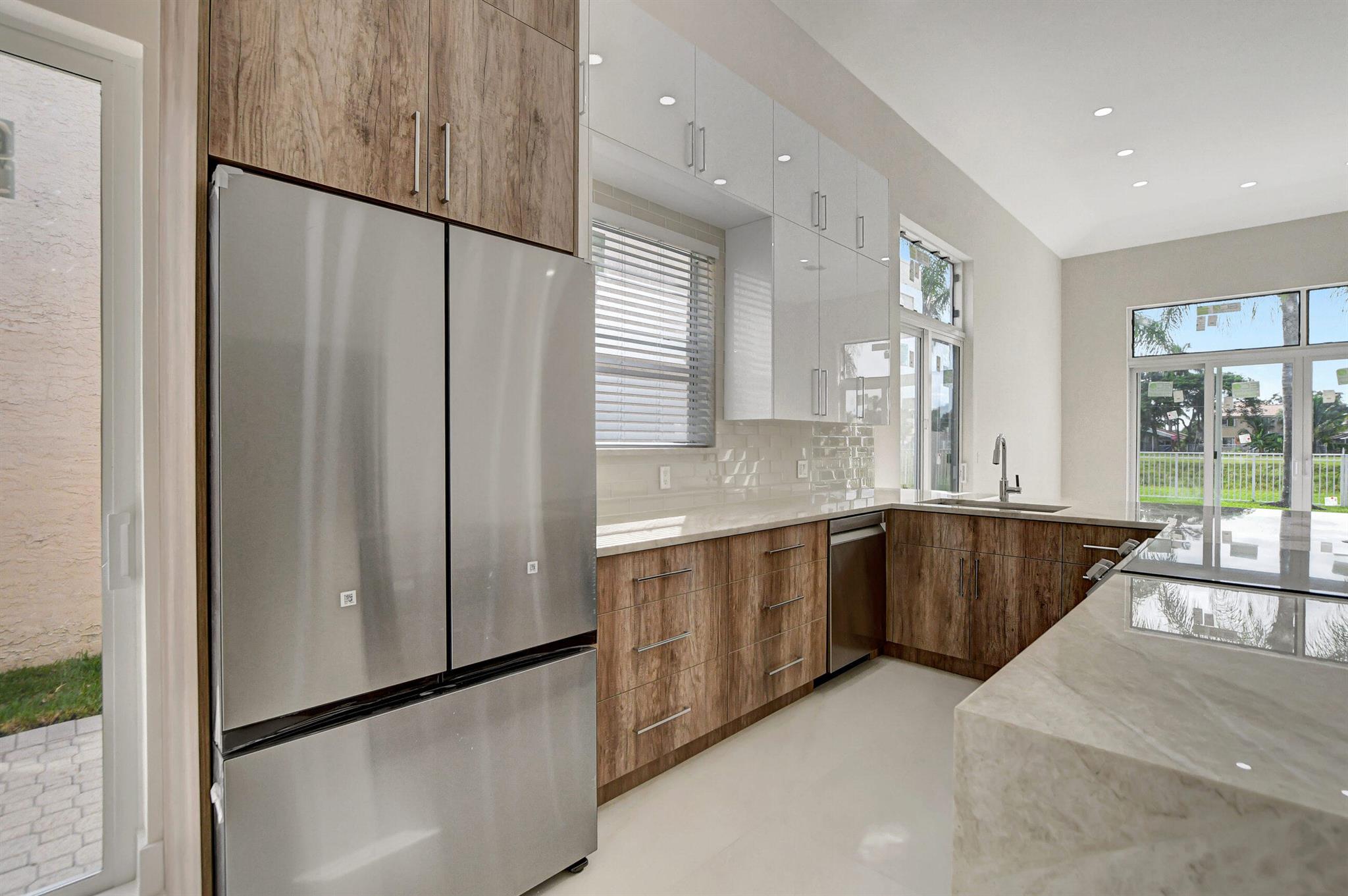 Completely renovated 3 bedroom 3 bath single family home situated in gorgeous Palms at Boca Pointe on a beautiful private lot. Open, light and bright floor plan. Gorgeous oversized tiles throughout; state of the art kitchen and baths. All new impact EVERYTHING !!!Newly landscaped.Very private back yard and view of Hillsboro Canal. This model has 3 full baths ! Laundry is inside as well !