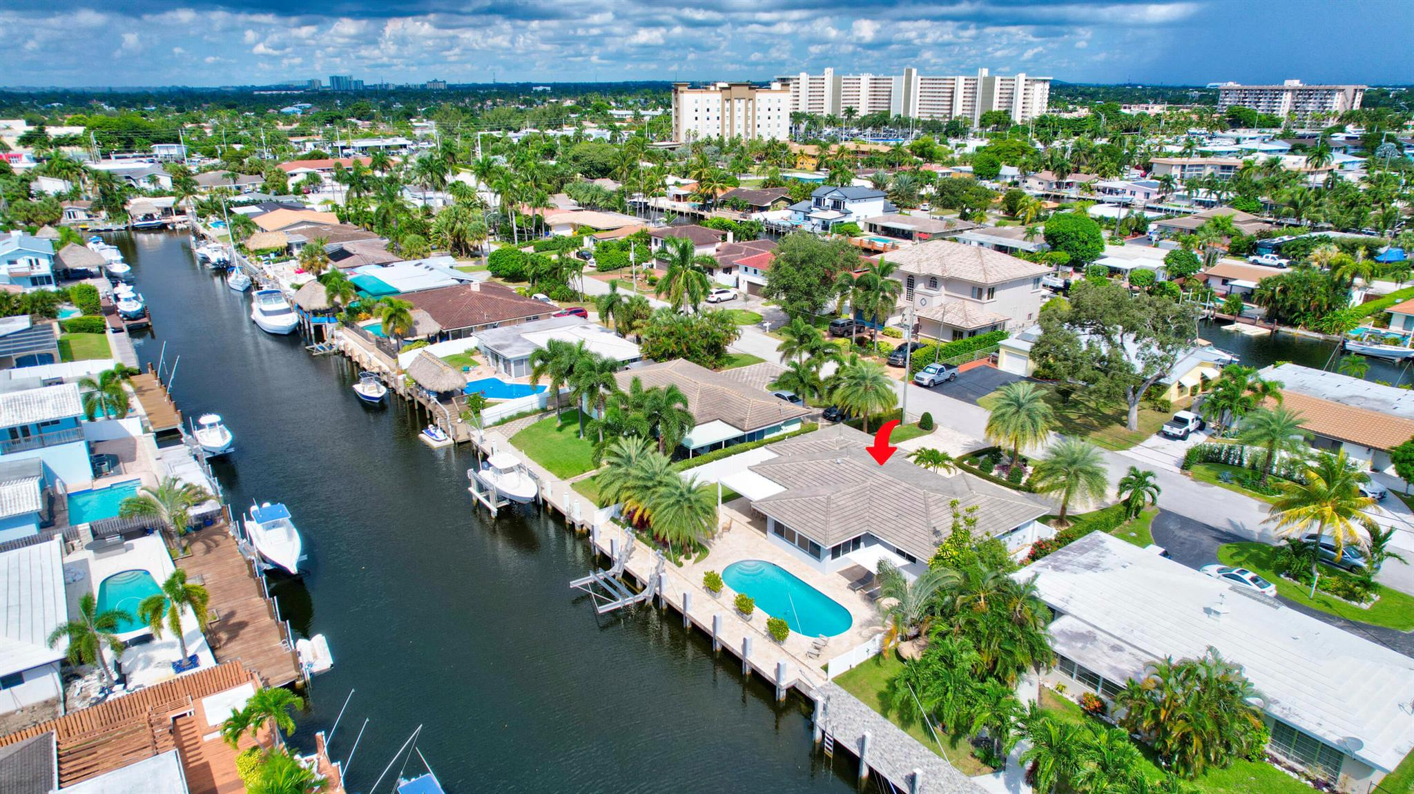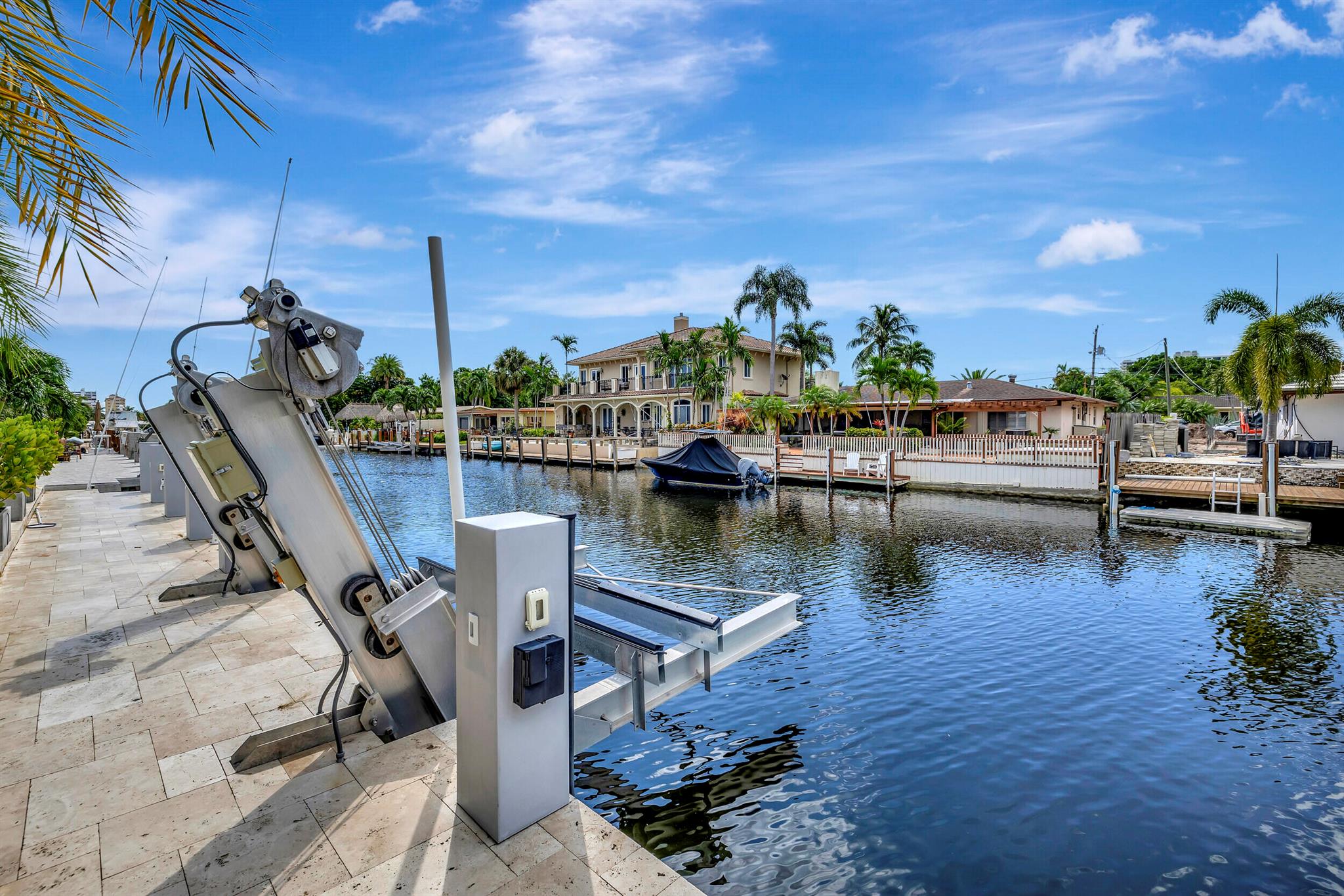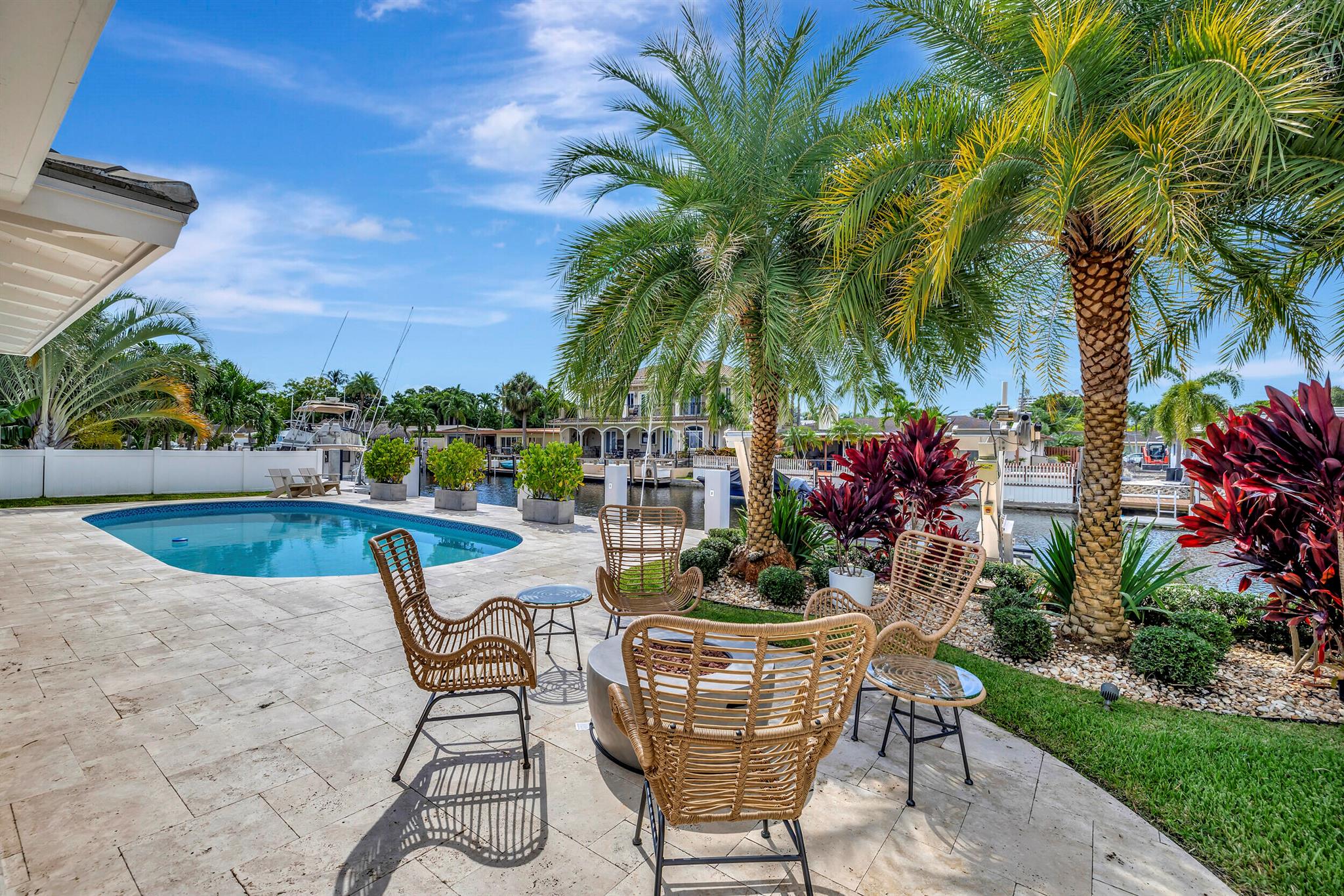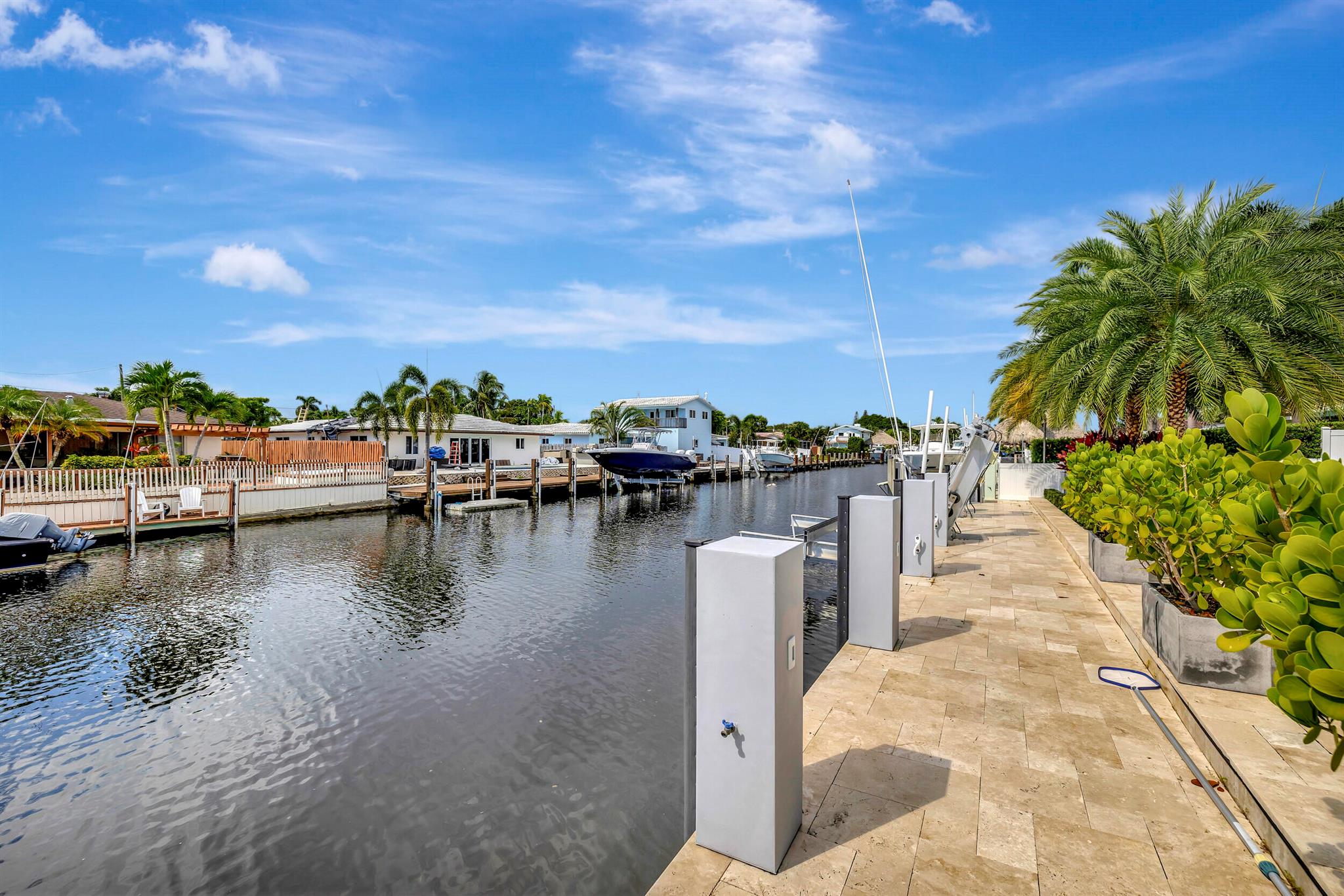 Welcome to this beautiful waterfront home in Pompano Isles. No fixed bridges, 75 ft of Waterfrontage,25 k Boat Lift & direct access to Intracoastal, Hillsboro Inlet, and the Ocean. This spacious 2 bed 2 bath home is decorated with a midcentury modern flair. (furniture is negotiable) The house has newer roof and Euro Tech impact glass throughout. The living space is an open concept with 2 living areas to enjoy entertaining. Big windows which make the living space light, bright, and airy. They overlook the beautiful free form pool, lush landscaping, and canal. The outdoor space is covered in travertine, perfect for entertaining and has a covered patio that you can take advantage of the outdoors. House has 50A electrical service with 2 hose bibs and 2 120V outlet. It is a MUST see!