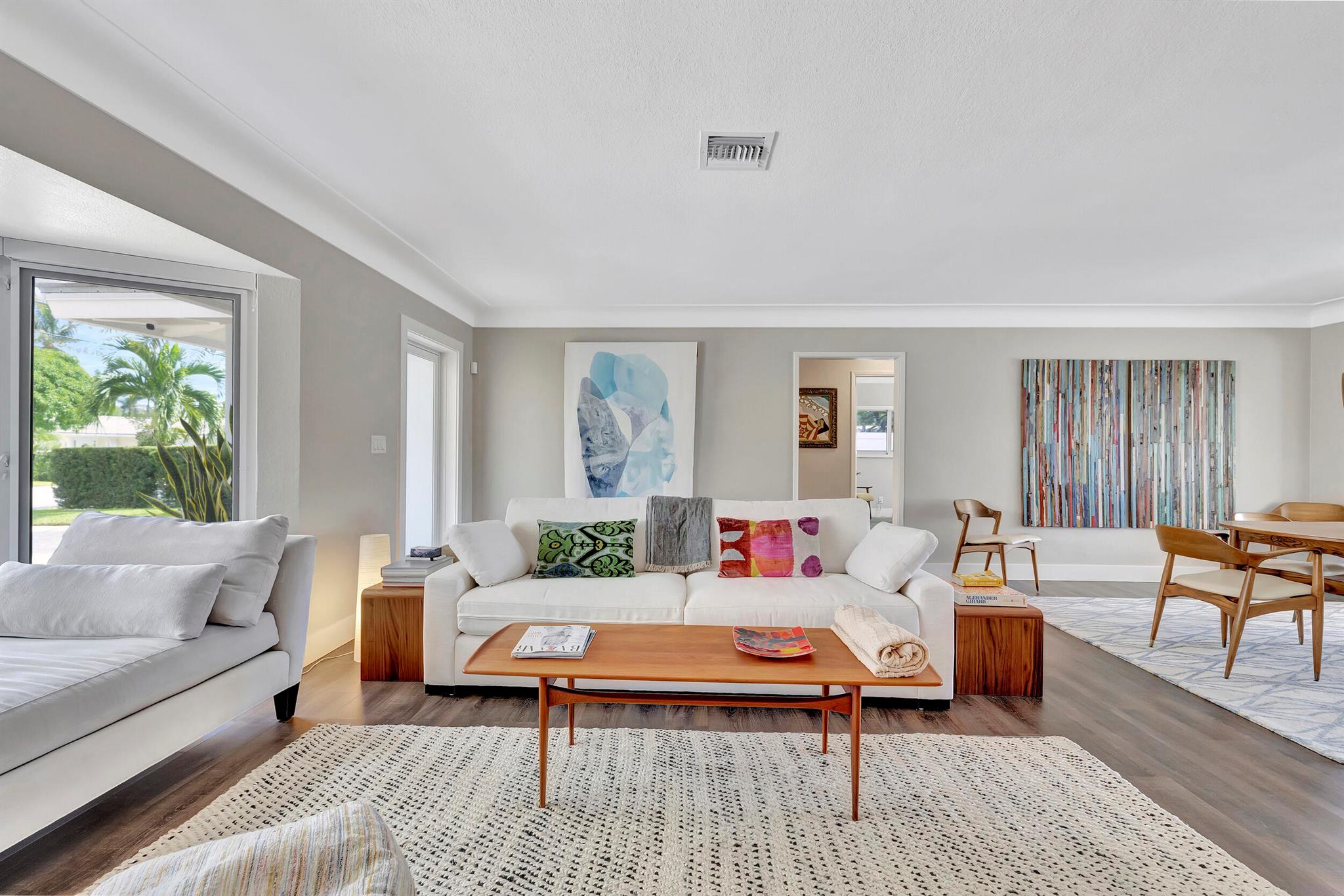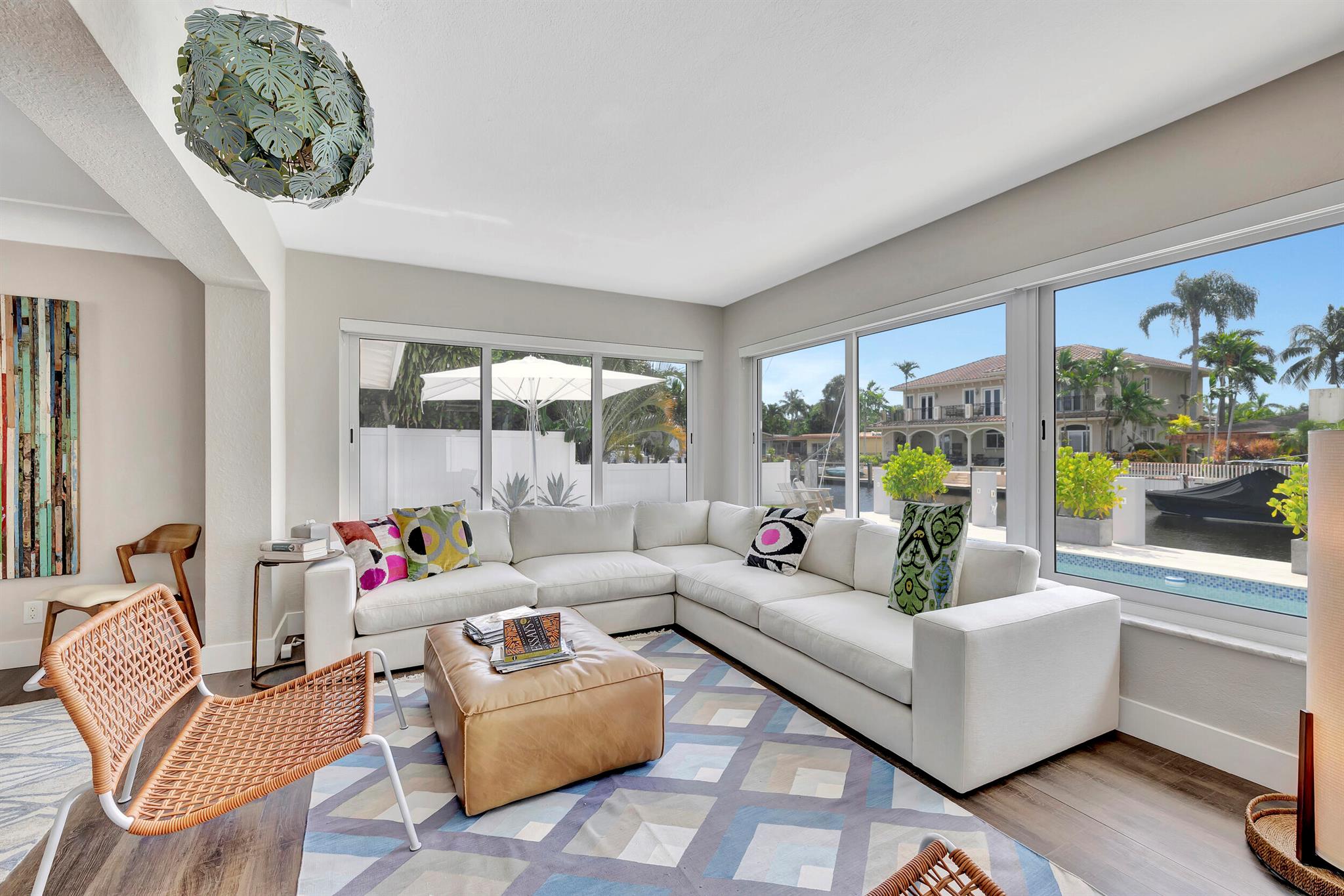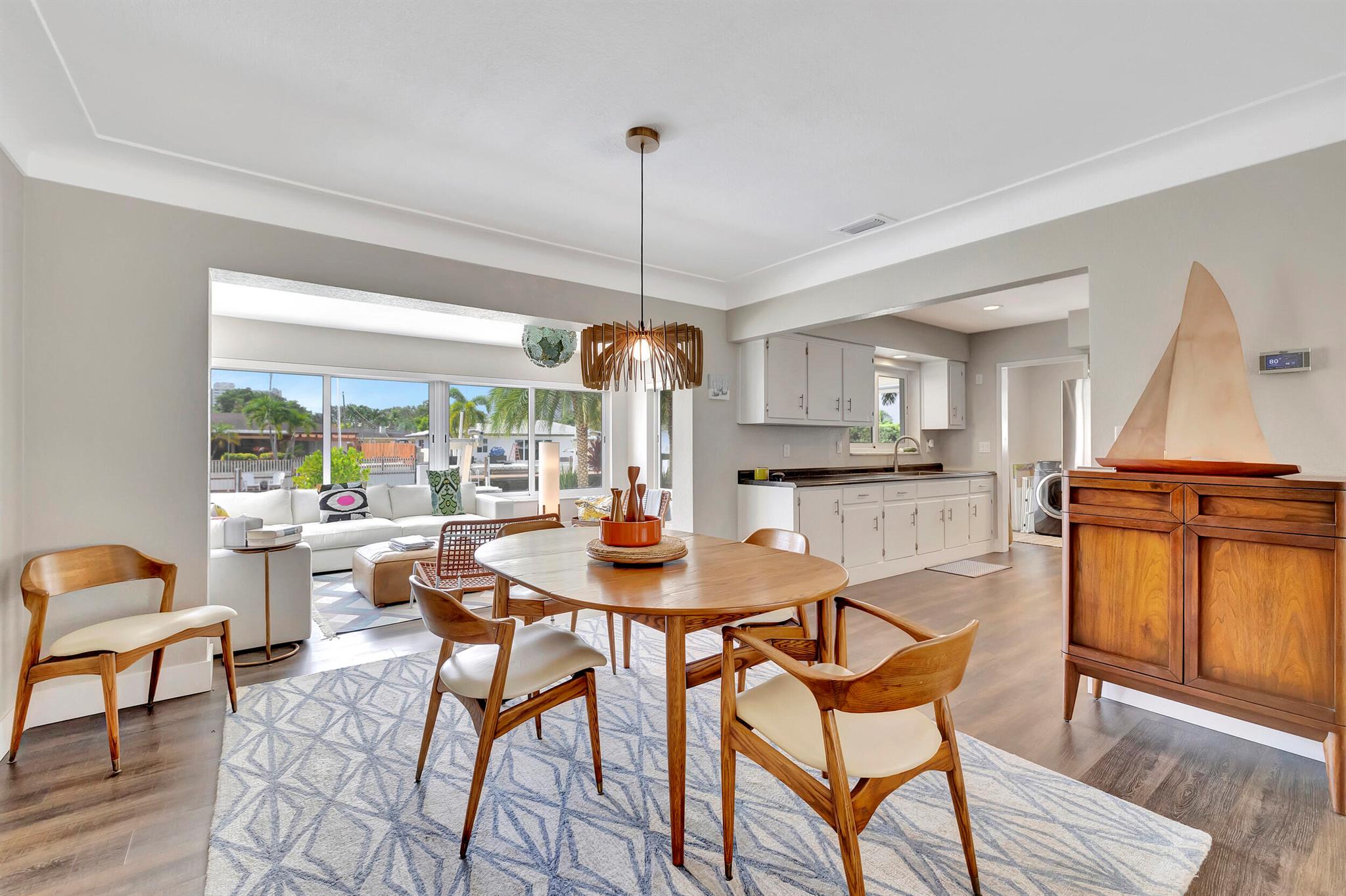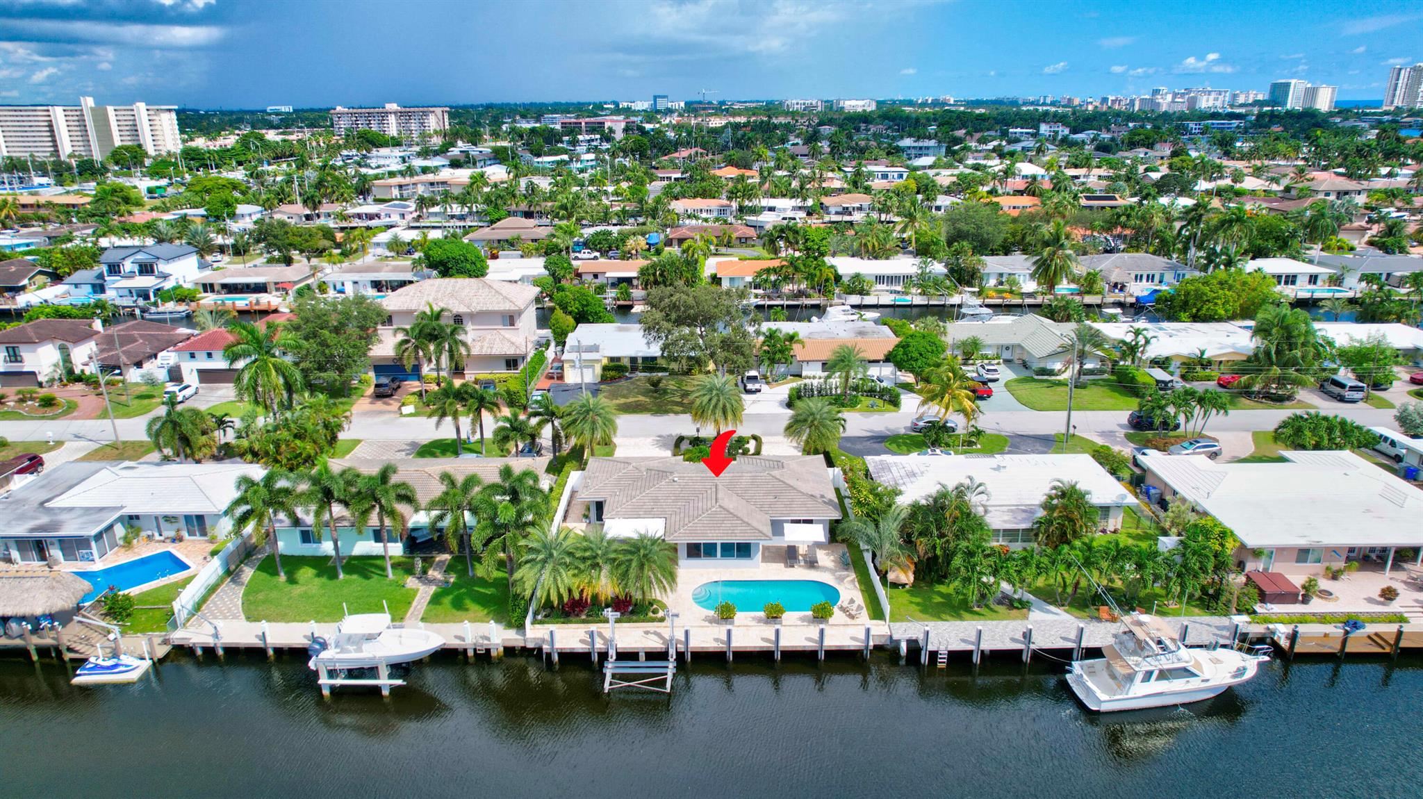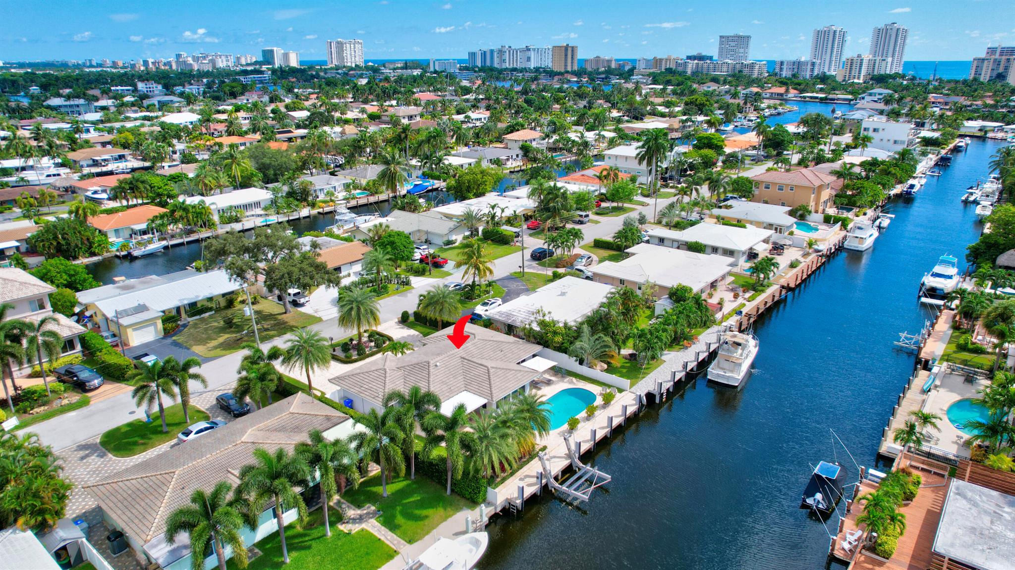 Welcome to this beautiful waterfront home in Pompano Isles. No fixed bridges, 75 ft of Waterfrontage,25 k Boat Lift & direct access to Intracoastal, Hillsboro Inlet, and the Ocean. This spacious 2 bed 2 bath home is decorated with a midcentury modern flair. (furniture is negotiable) The house has newer roof and Euro Tech impact glass throughout. The living space is an open concept with 2 living areas to enjoy entertaining. Big windows which make the living space light, bright, and airy. They overlook the beautiful free form pool, lush landscaping, and canal. The outdoor space is covered in travertine, perfect for entertaining and has a covered patio that you can take advantage of the outdoors. House has 50A electrical service with 2 hose bibs and 2 120V outlet. It is a MUST see!