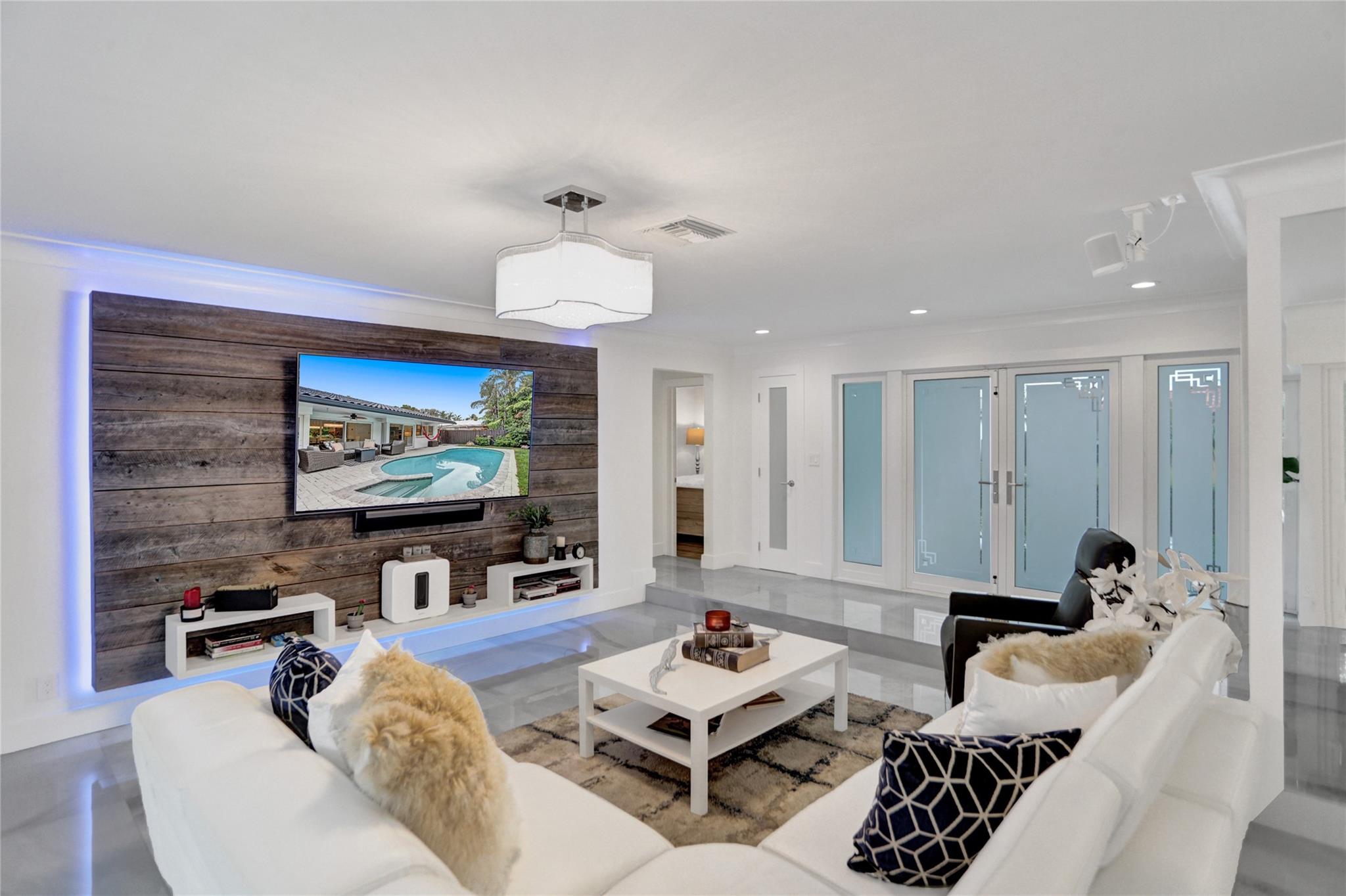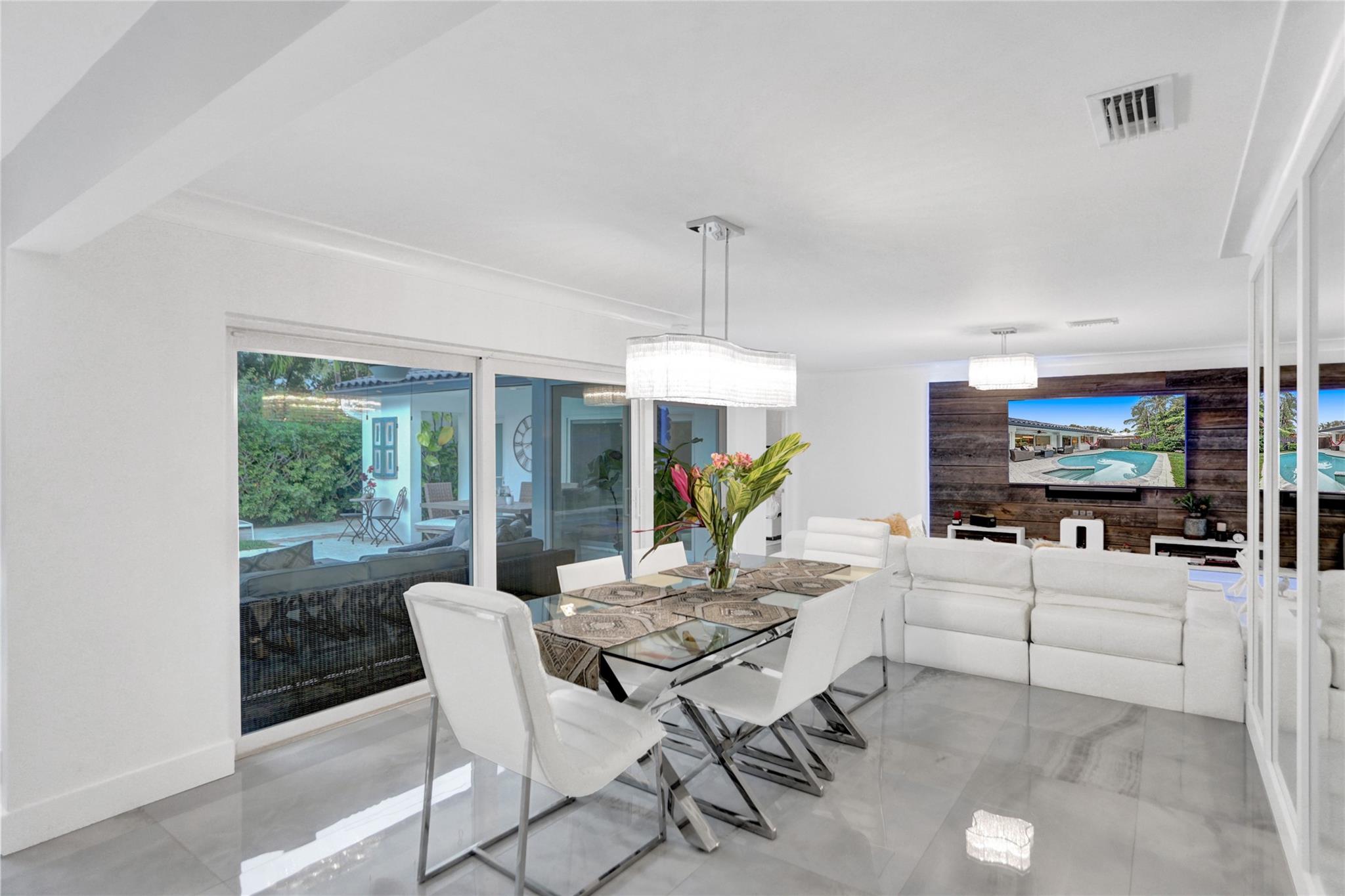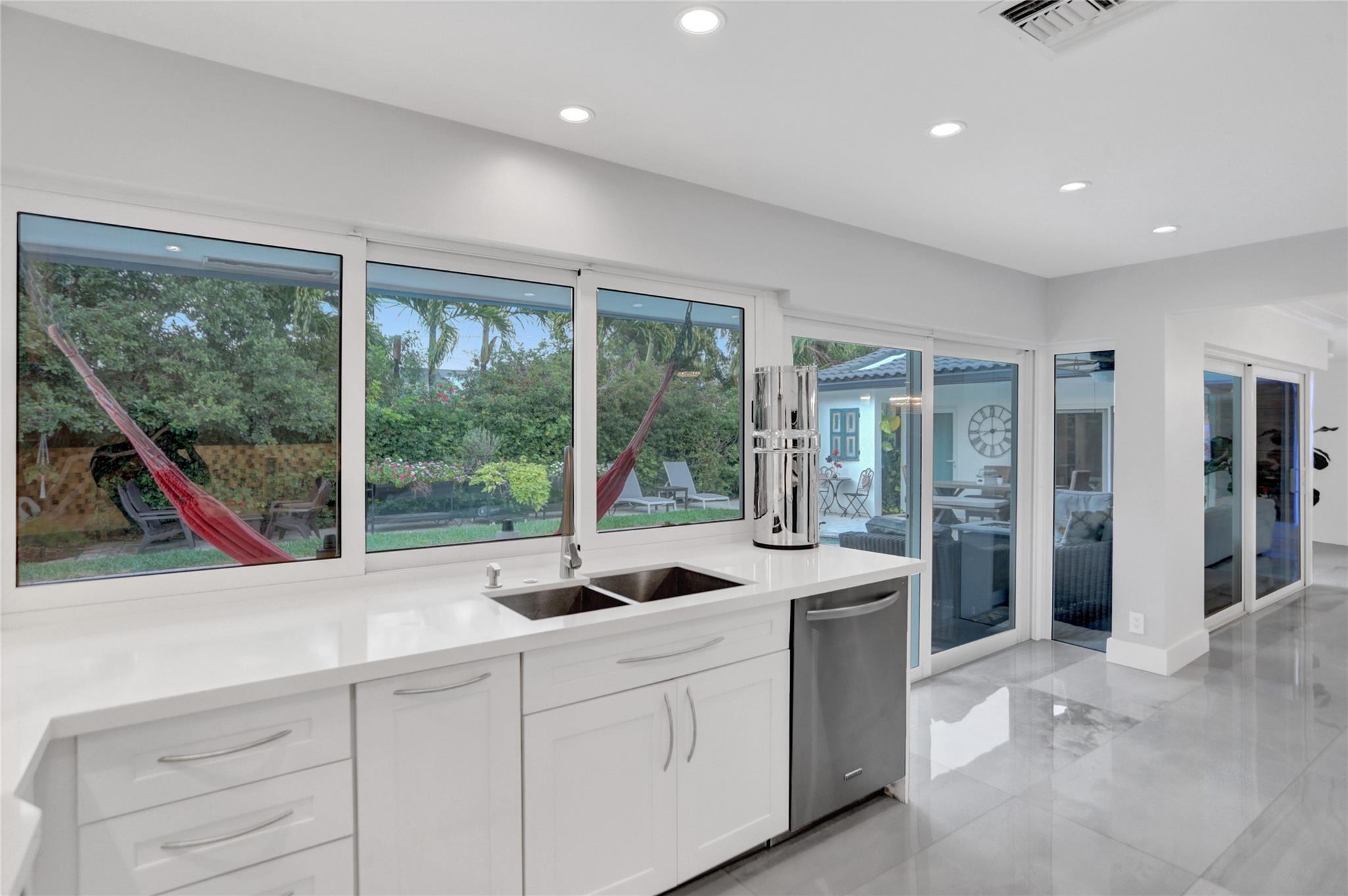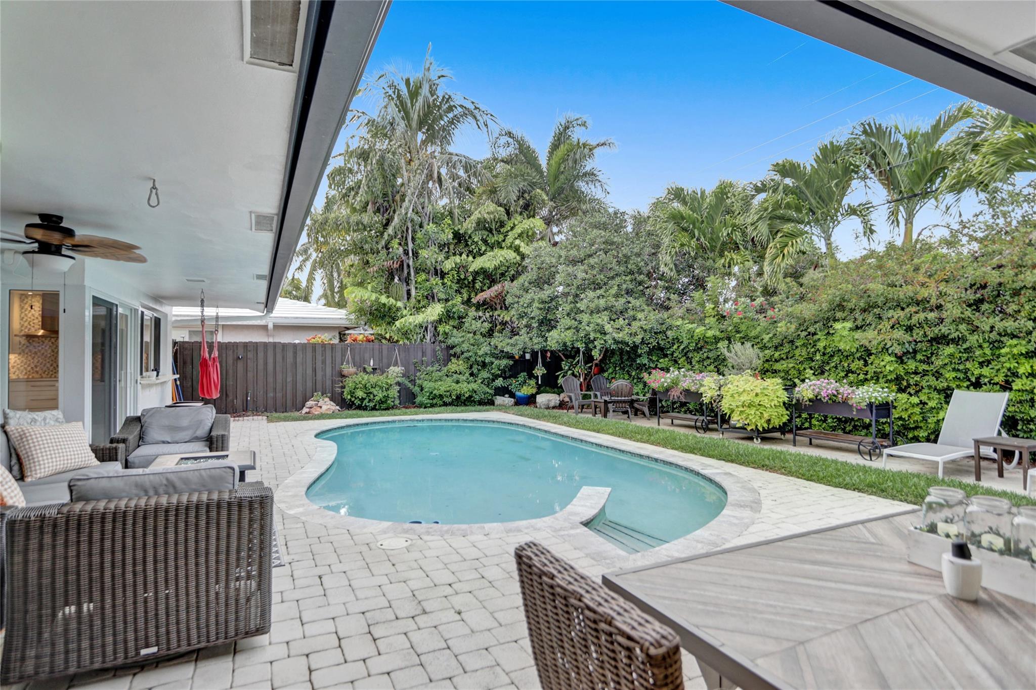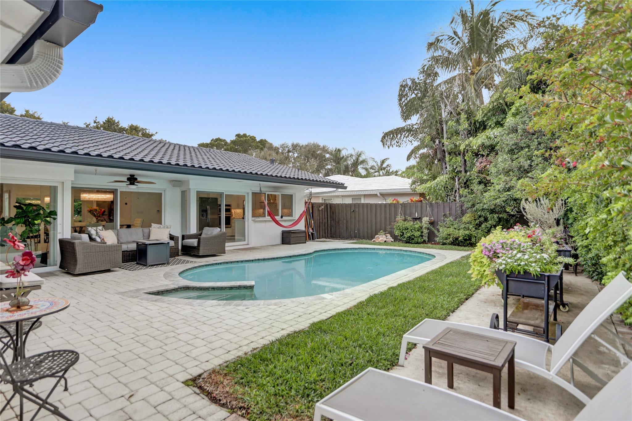 Elegant and Modern Home styled with impeccable taste in Imperial Point. Immaculate home, ready to move in, fully renovated, with 3 bedroom, 2 bathroom, plus an office that can be converted in a fourth bedroom, bright white open kitchen overlooking outdoor living in your inviting garden pool area, situated on a quiet street. Open floor plan features new A/C, impact windows and doors, modern kitchen and bath designs, stainless steel appliances, amazing master suite with new luxury bath and custom walk-in closet, recessed lighting and all new colors inside and out. 2 Car garage, can be bought fully furnished: turnkey possibility with negotiable furniture (sauna and gym equipment are not included). Plumbing is all PVC. Walking distance to restaurants and shopping and quick access to the beach!