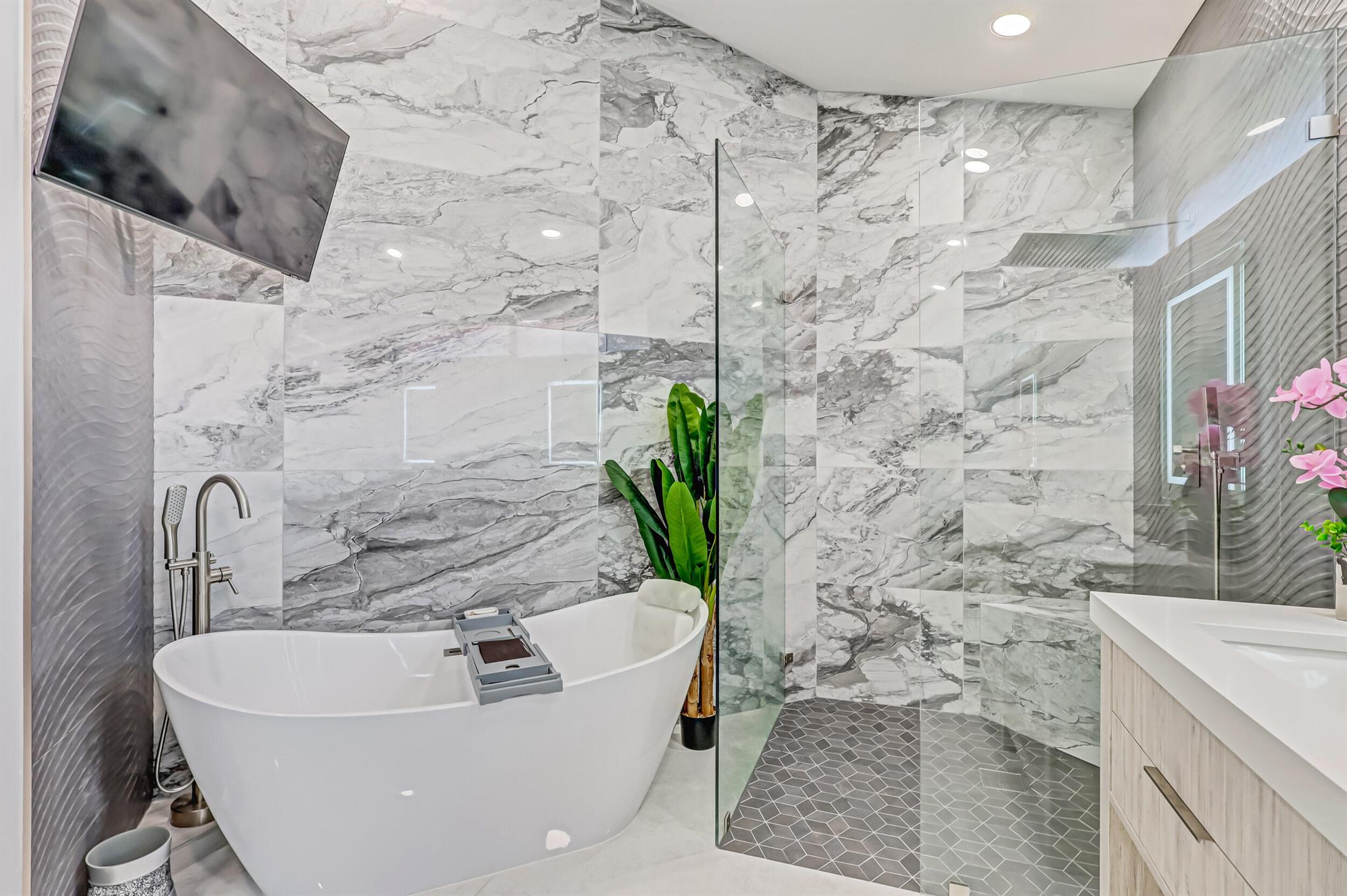 One of the most beautifully remodeled homes in PGA National!The Miami designer spared no expense in all corners of this home. roof, 2019, 3 HVAC systems,2020,tankless HW, 2021, 48” marble floors throughout, custom kitchen, appliances, 4 new bathrooms and more.The private guest house is an added bonus to make 4 bedrooms and 4.5 bathrooms on ONE level.