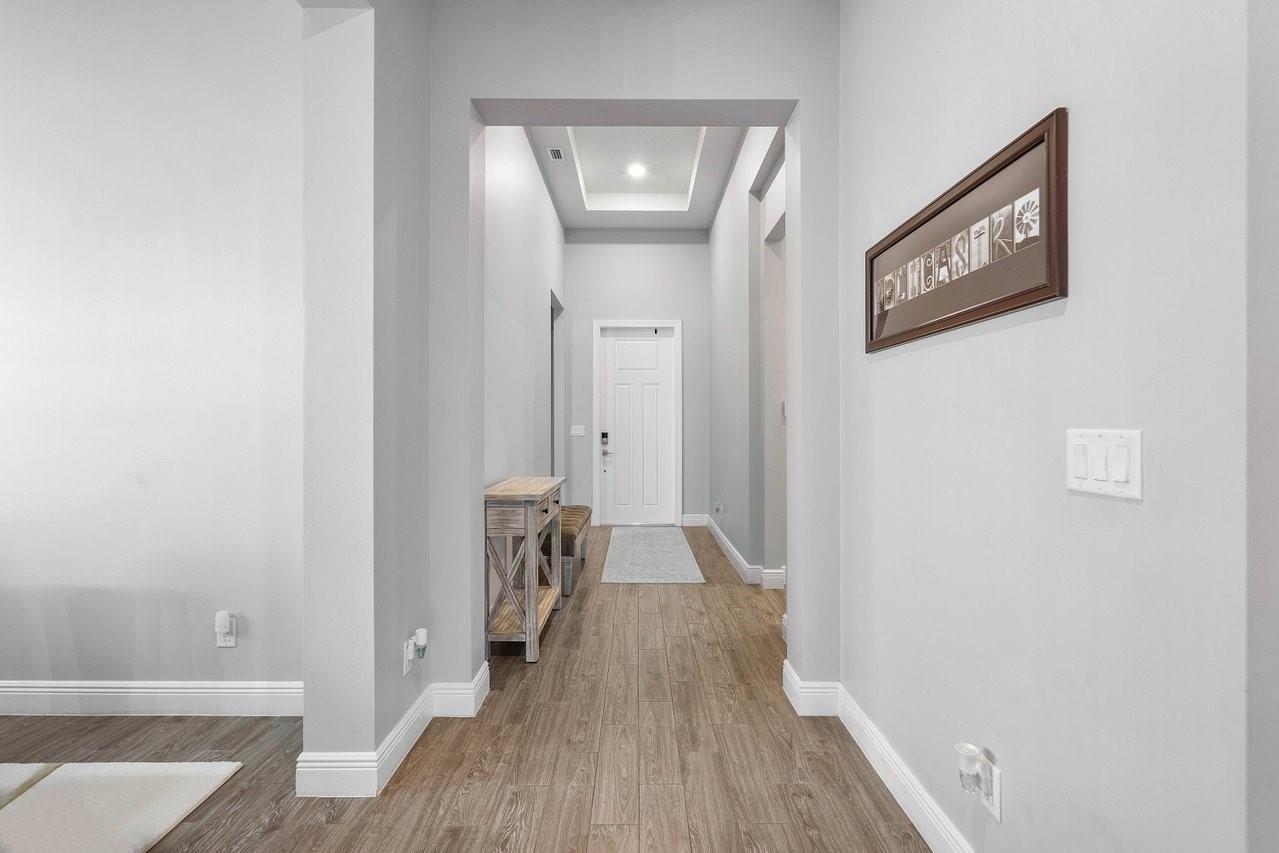 Simply a beautiful home with a fabulous open design! Located in one of Parkland’s most desirable communities! . Soaring ceilings, impact windows/doors, & sun drenched living areas have resulted in a light & airy interior. A jaw-dropping crisp white kitchen with a large island, stunning extra thick quartz counters, gas stove & top shelf appliances takes center stage in the spacious great room/kitchen area. Sublime primary suite with spa like bathroom & spacious closets with built ins. Beautiful details & accents! Large screened porch & a huge private backyard with plenty of room for a pool. Sited behind a breathtaking guard gated entrance within a quiet cul-de-sac. Parkland Bay residents enjoy luxurious resort living with world class amenities.