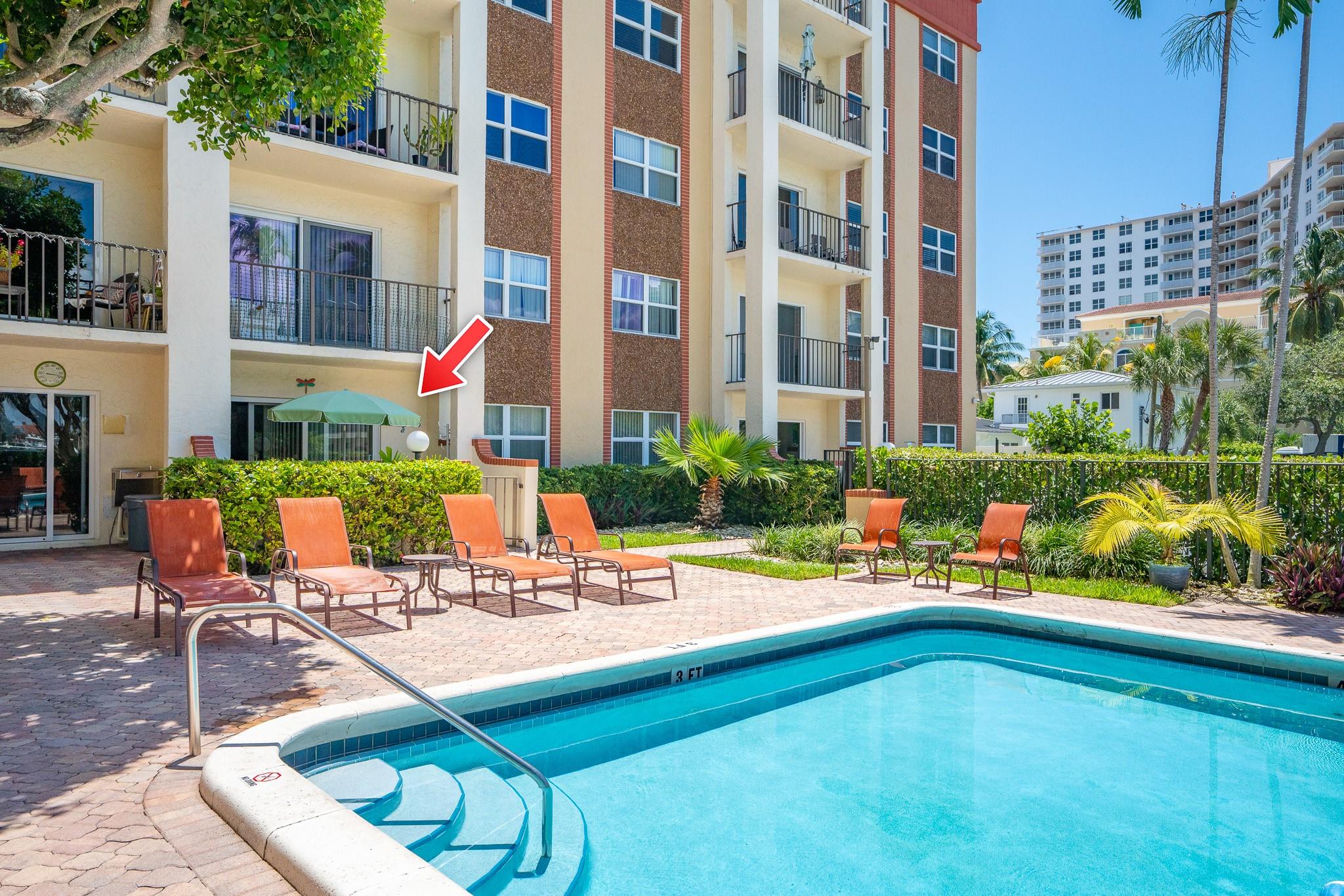 Here’s your chance to own one of the few ground floor units with spacious patio that opens directly to the pool area within the gated courtyard! Located one block from the ocean, this charming 2 bed 2 bath condo offers both convenience and style. Fantastic view! One of the standout features is the parking spot right outside the gate, eliminating the need to carry groceries through the lobby. The bathrooms have been tastefully remodeled, and you will appreciate the generous main walk-in closet. the open kitchen boasts attractive nostalgic tiles, and the entire home is tiled. New A/C in 2023, newer H2O tank. Furniture can stay. Small pet welcome! Immediate renting allowed! Lado Del Rio is a small boutique building close to all of all the new exciting restaurants and shopping around the pier!