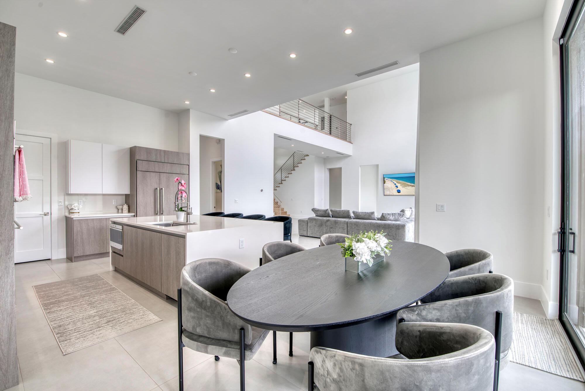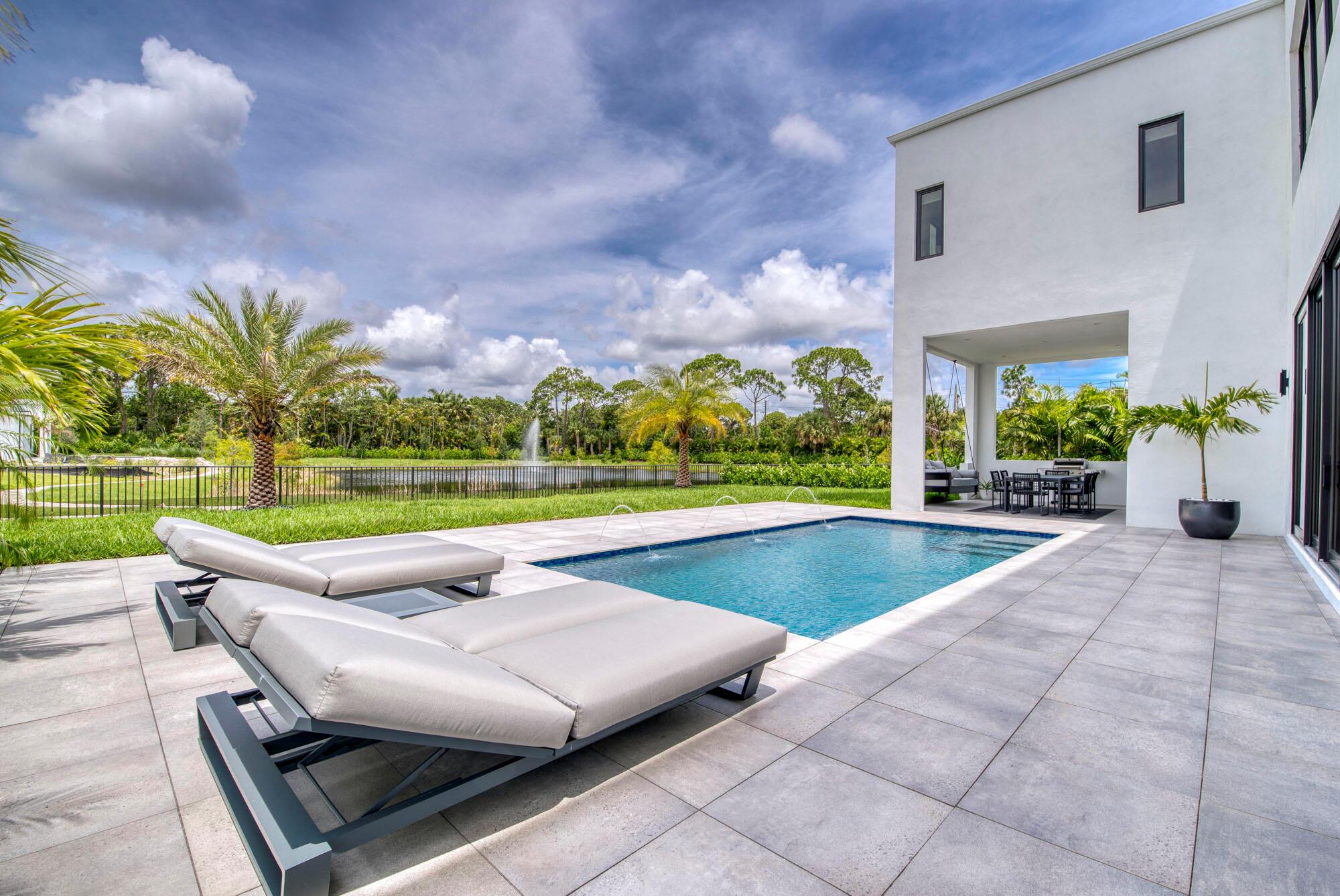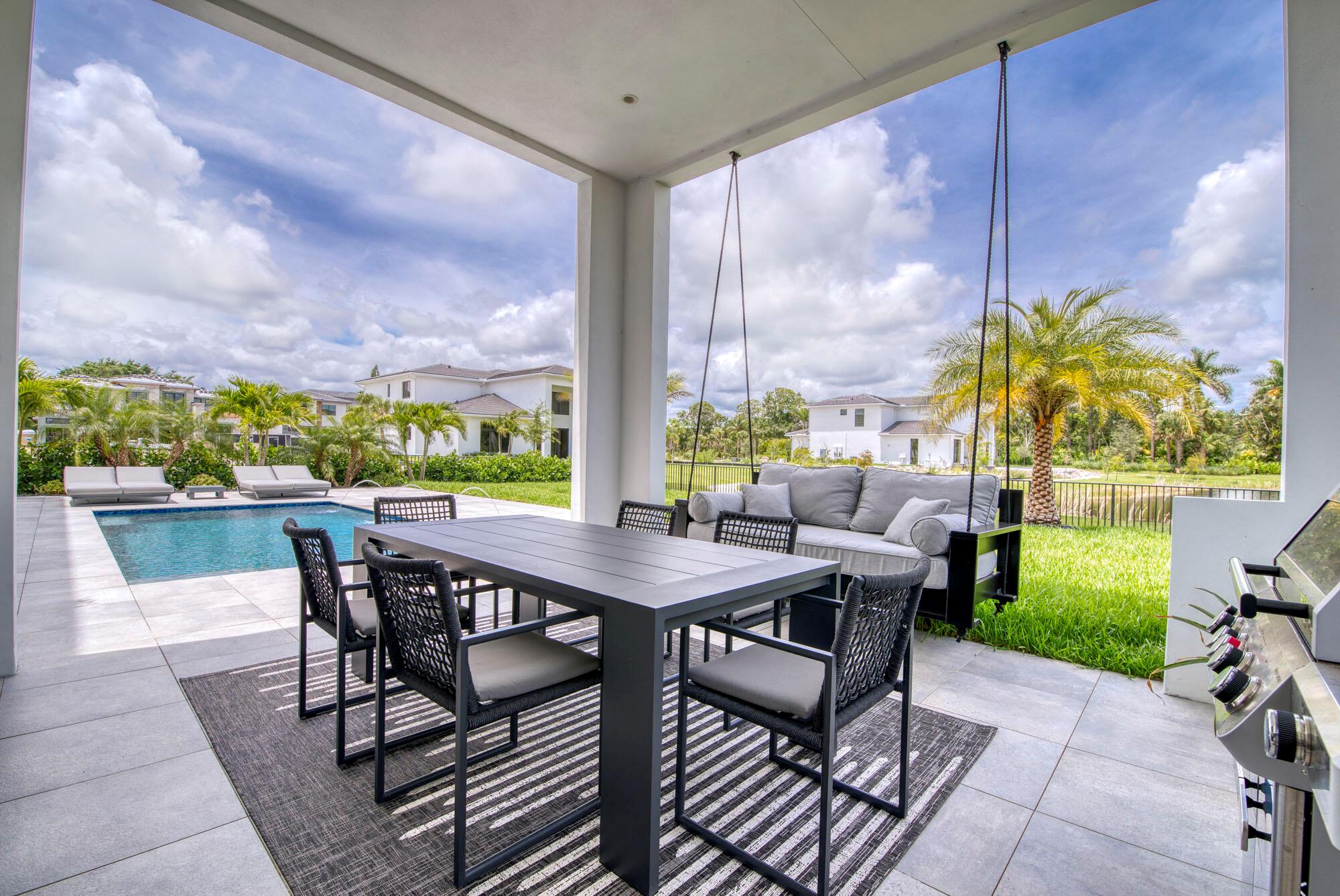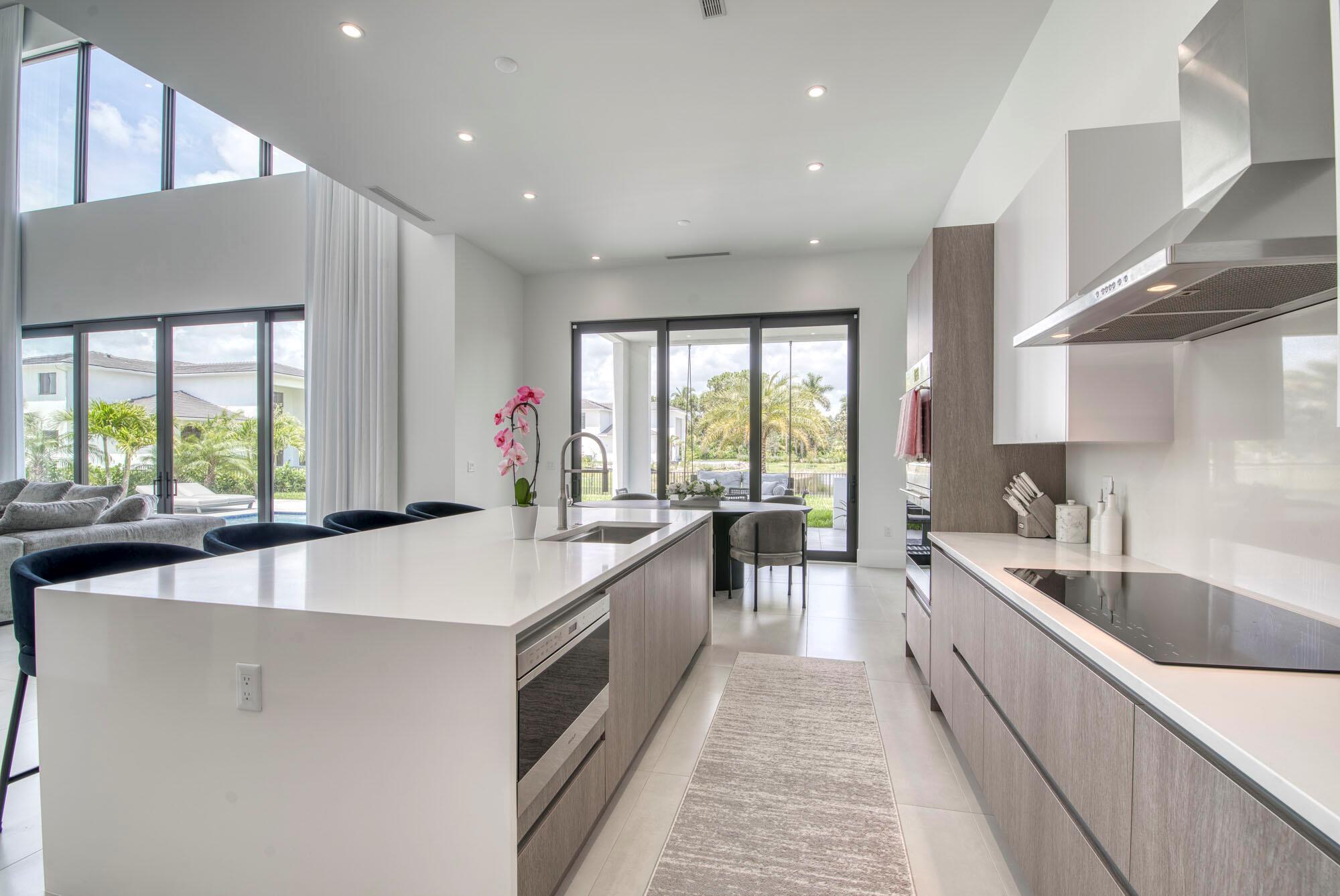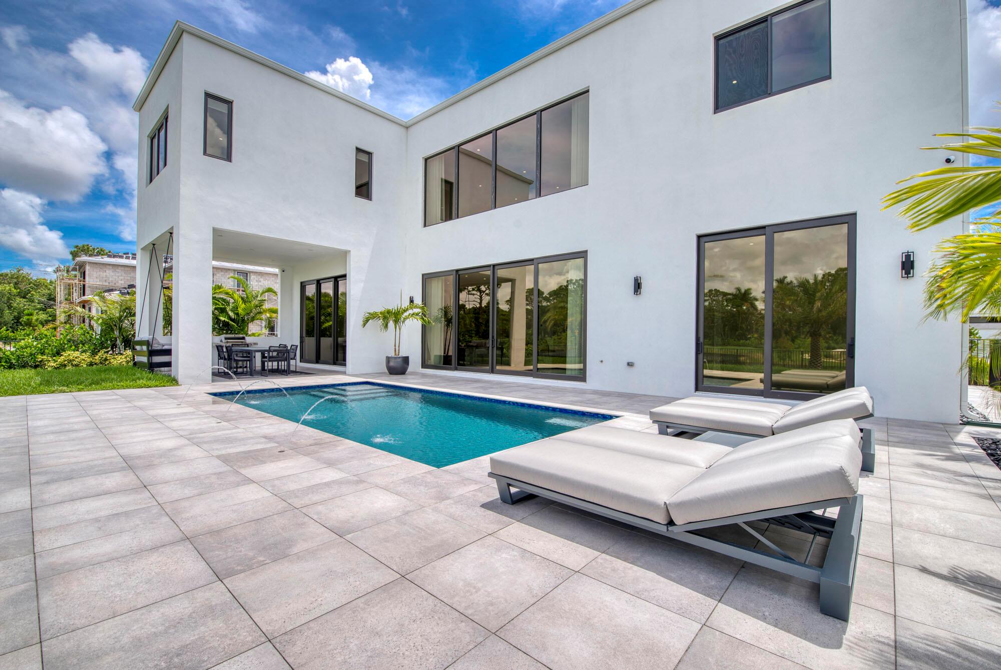 Welcome home to the boutique community of Symphony at Jupiter. This modern 5-bedroom, 5.5-bathroom home is centrally located to all that Jupiter has to offer. The two-story layout includes an owner’s suite situated on the second floor, featuring upgraded wood flooring and an en suite bath with quartz slab vanities, dual sinks, elegant chrome plumbing fixtures, European-designed cabinetry with abundant storage, luxurious porcelain tile flooring, and a freestanding soaking tub. The spacious design also includes a loft, a club room, and a bright, open floor plan. The gourmet kitchen, equipped with Sub-Zero refrigeration and a Wolf cooktop, boasts an expansive island that flows seamlessly into the open-concept great room and dining room, making it ideal for hosting gatherings.
