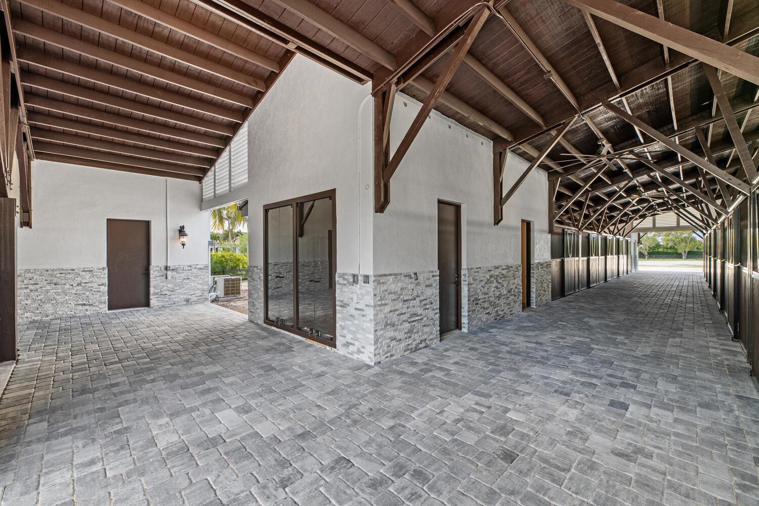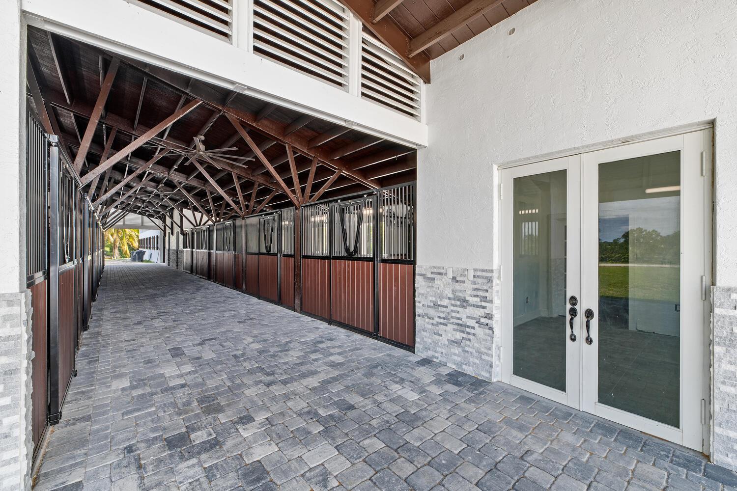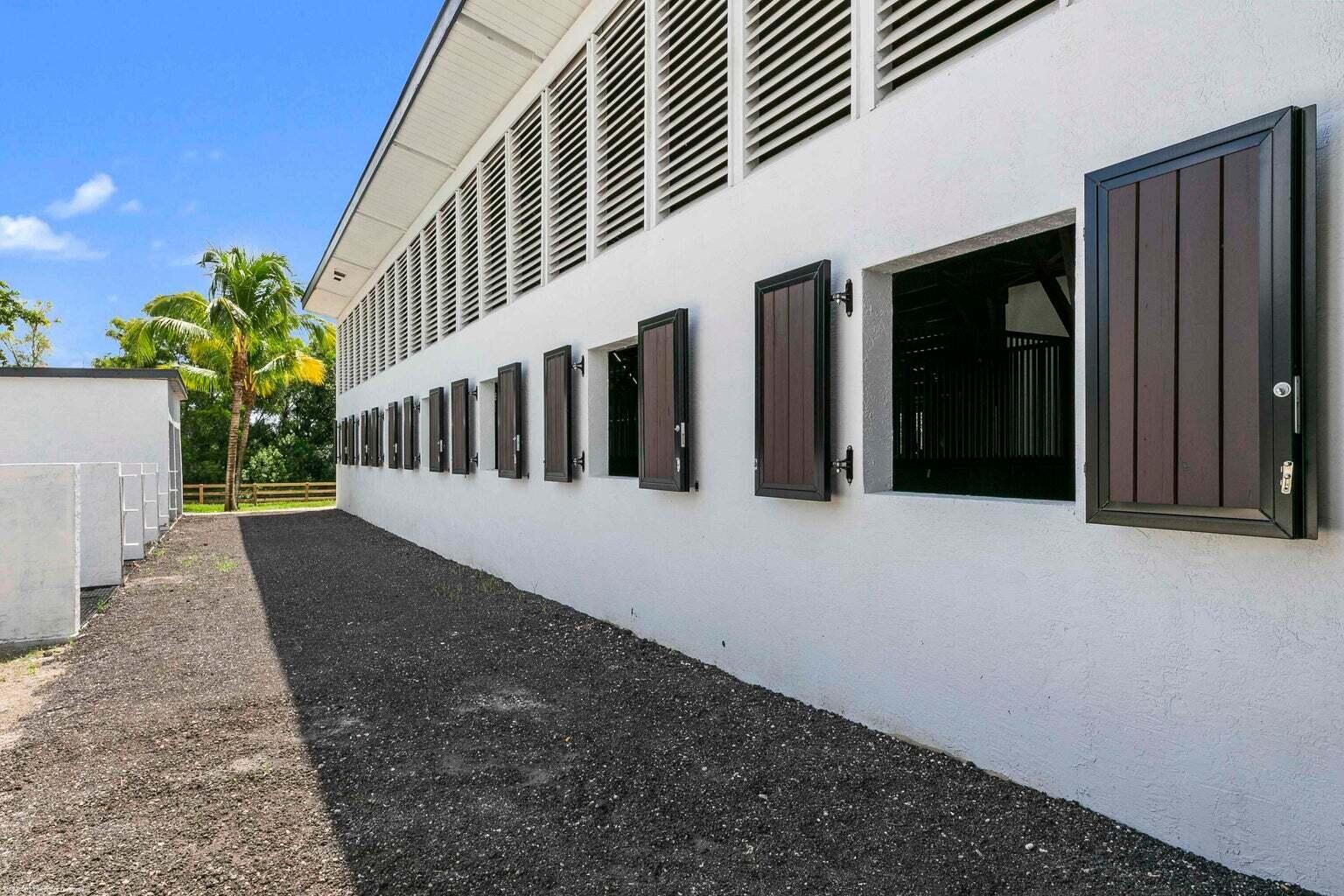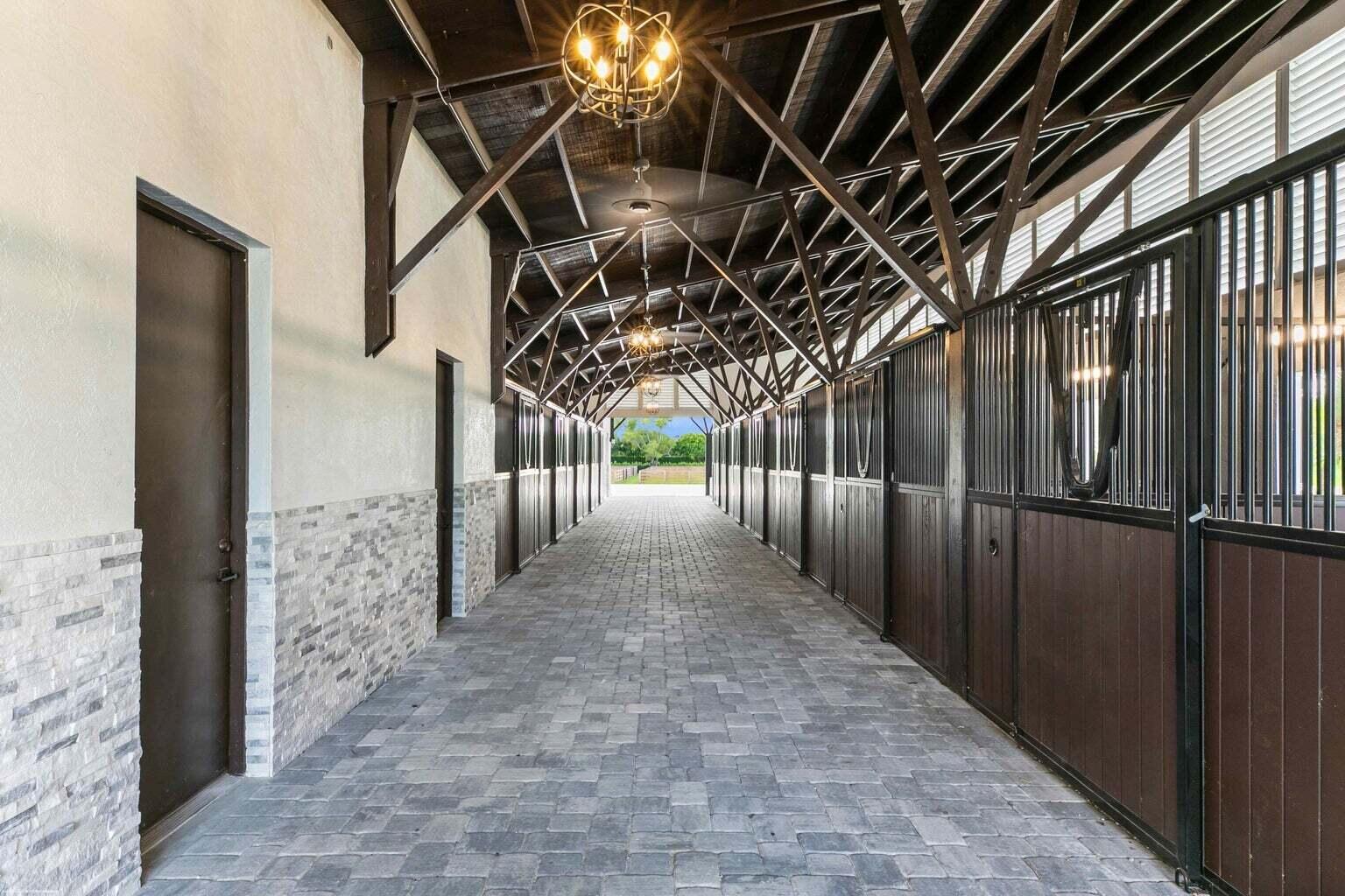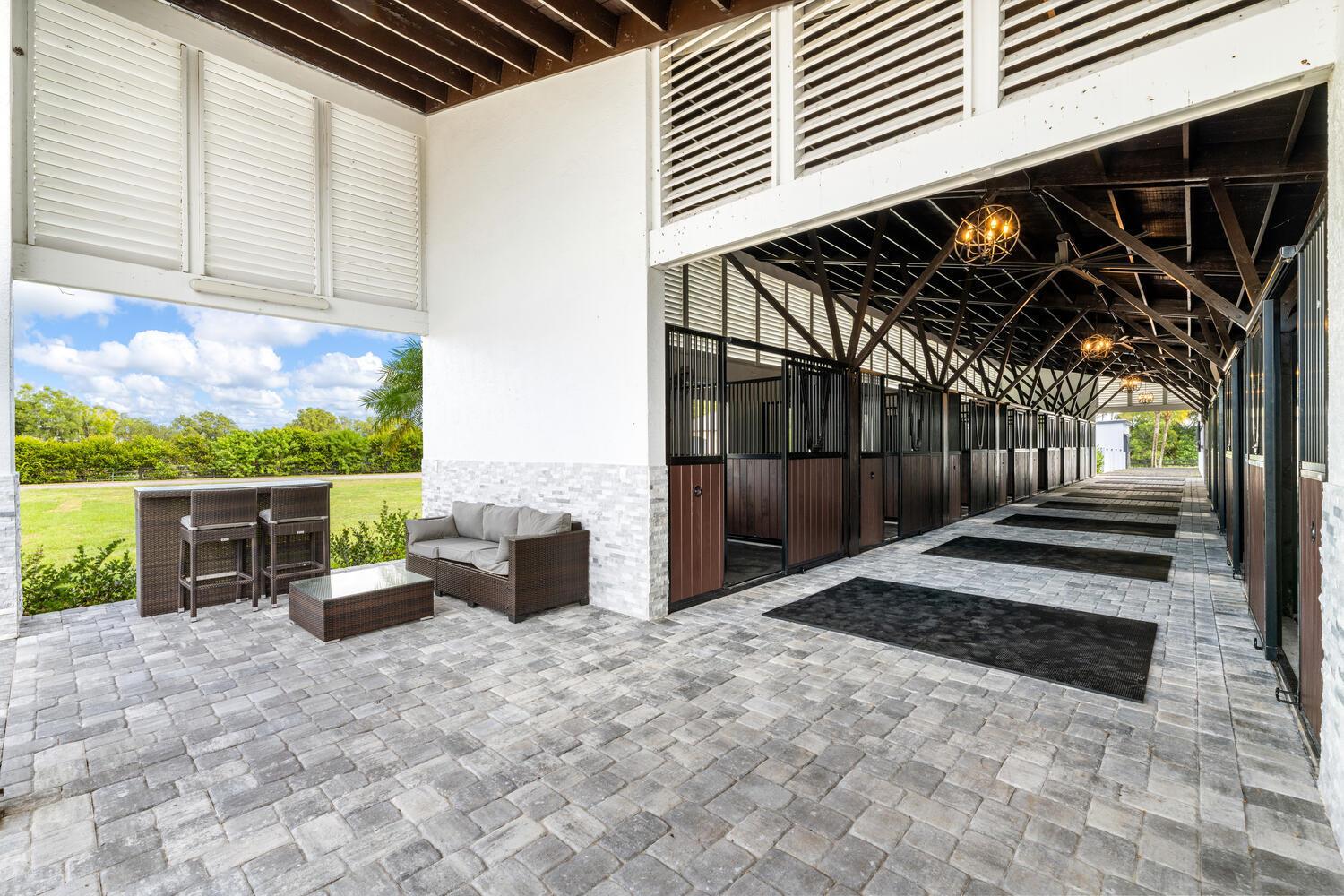 Full Renovation Just Completed!! Beautiful modern farm located in the heart of Wellington’s sport-horse country. This professional’s facility is nestled in Palm Beach Point East, within hacking distance and near the southern entrance to the show . Just reworked, the 5.32-acre property features a newly renovated 25-stall barn with new roof, new Classic Equine stalls, 9 new fully irrigated paddocks and a brand-new all-weather & fully irrigated 125 x 220 ft arena. The barn is sectioned into two and includes 2 feed rooms, 2 tack rooms & 2 hay storage rooms. There is a beautiful lounge with a kitchen, bathroom, and bar/viewing area overlooking the arena. The barn is complete with fans in each stall, a fly spray system, ceiling fans, a 1 bedroom/ 1 bath staff quarters and multiple RV hookups.