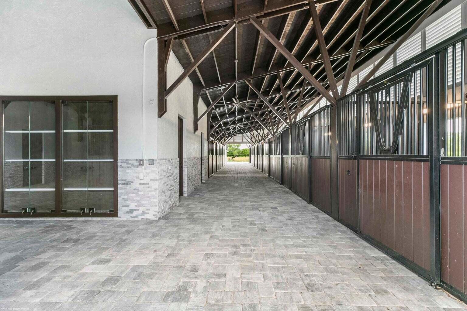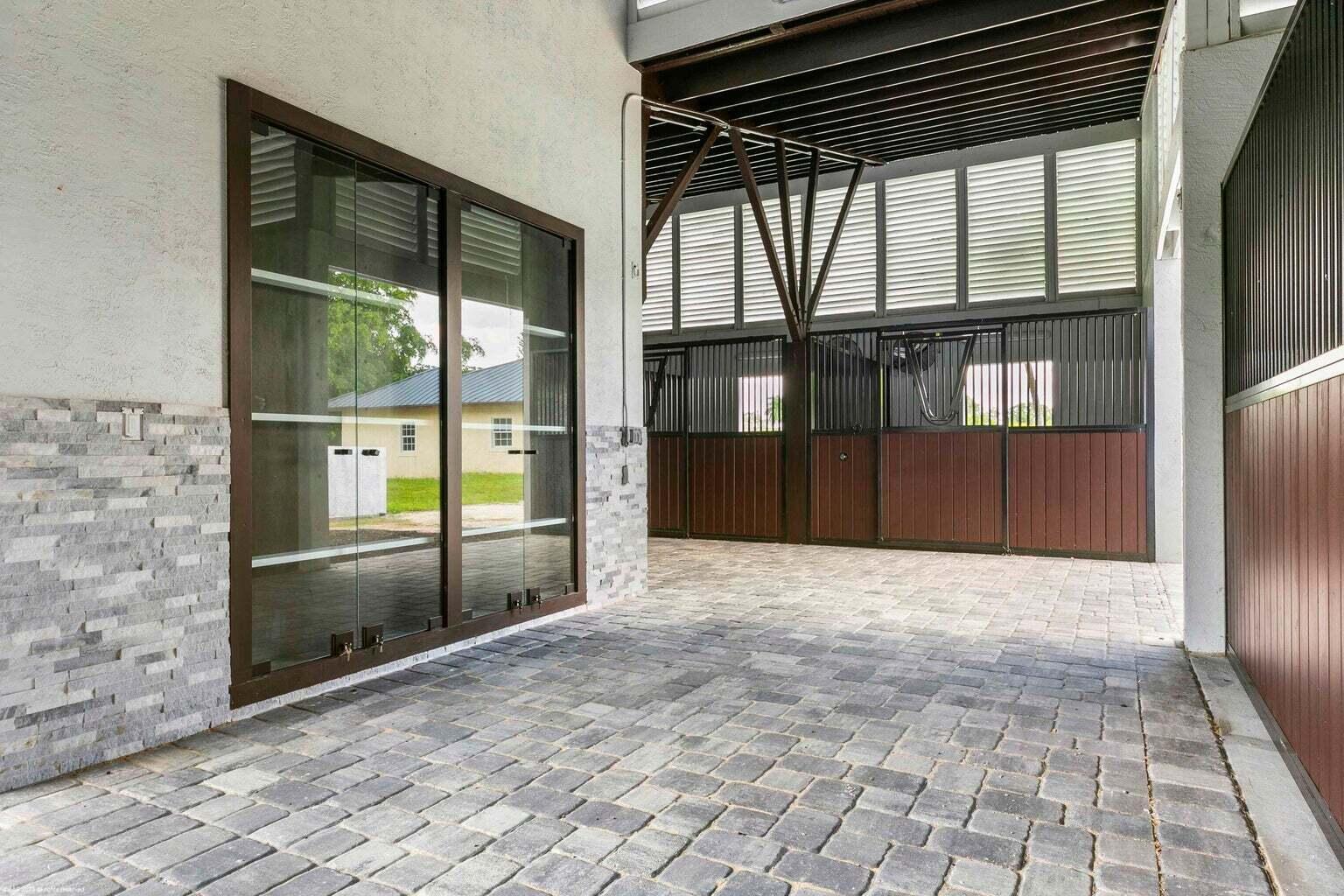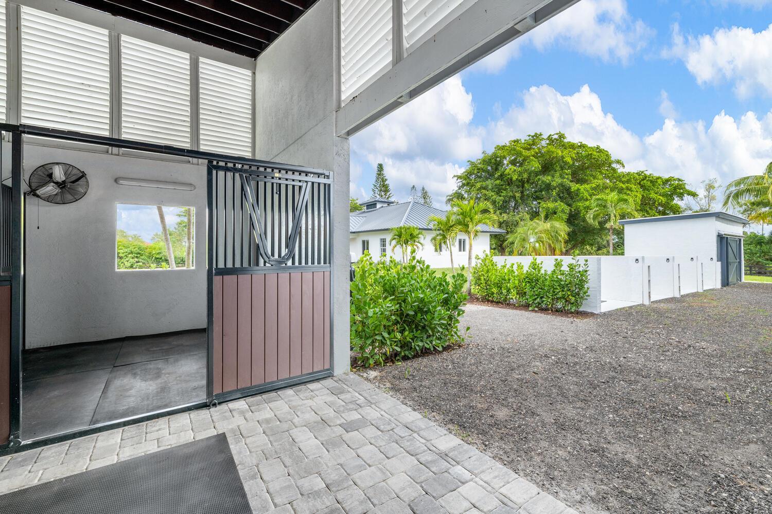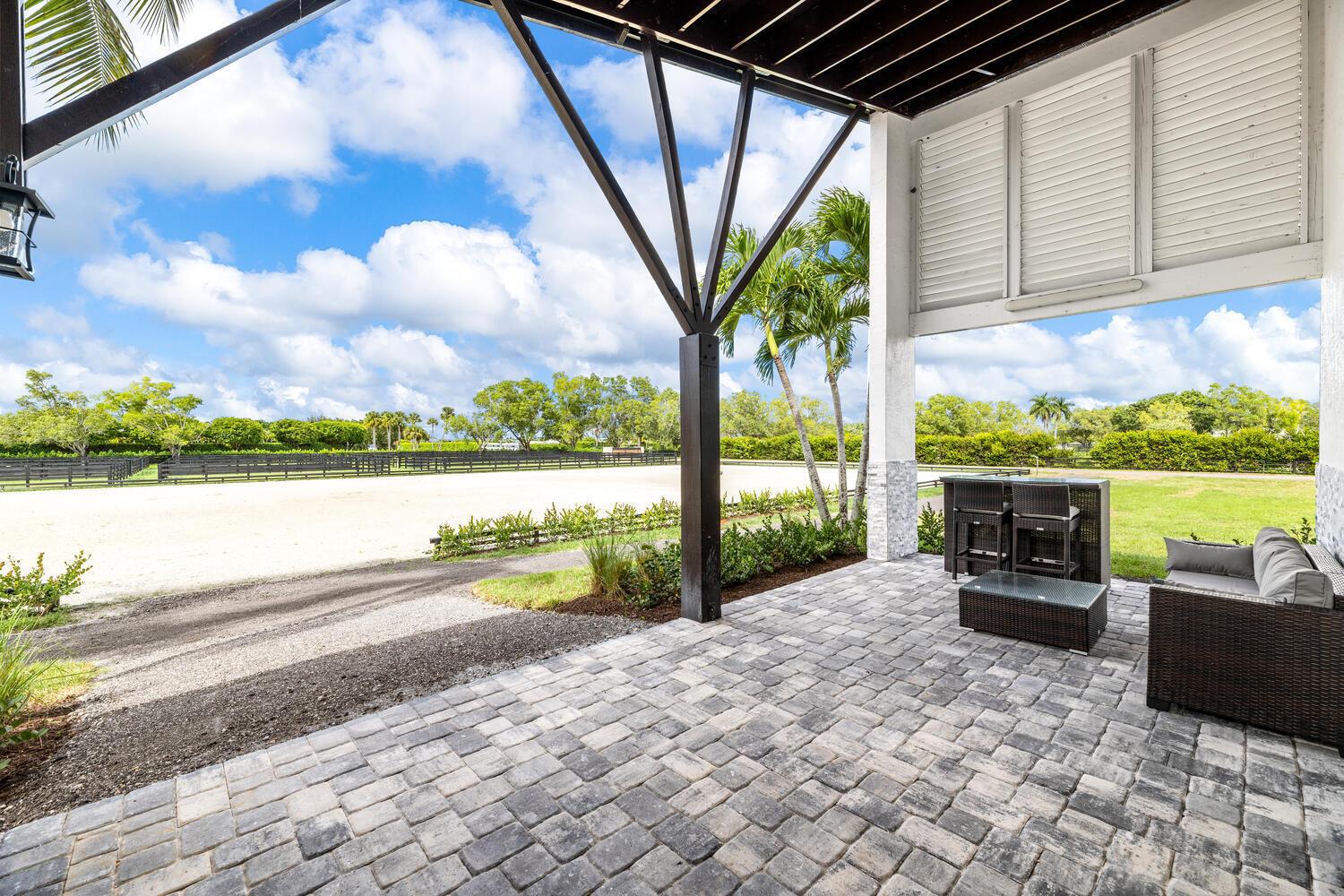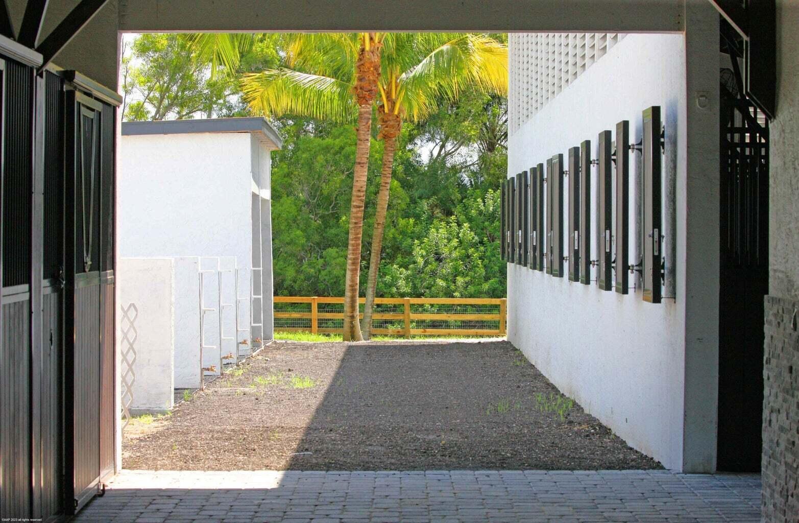 Full Renovation Just Completed!! Beautiful modern farm located in the heart of Wellington’s sport-horse country. This professional’s facility is nestled in Palm Beach Point East, within hacking distance and near the southern entrance to the show . Just reworked, the 5.32-acre property features a newly renovated 25-stall barn with new roof, new Classic Equine stalls, 9 new fully irrigated paddocks and a brand-new all-weather & fully irrigated 125 x 220 ft arena. The barn is sectioned into two and includes 2 feed rooms, 2 tack rooms & 2 hay storage rooms. There is a beautiful lounge with a kitchen, bathroom, and bar/viewing area overlooking the arena. The barn is complete with fans in each stall, a fly spray system, ceiling fans, a 1 bedroom/ 1 bath staff quarters and multiple RV hookups.