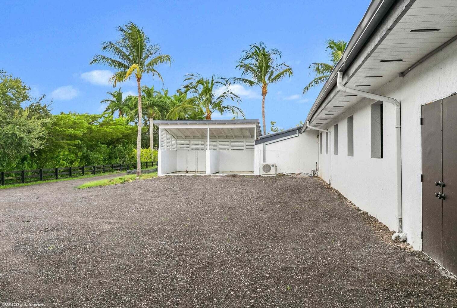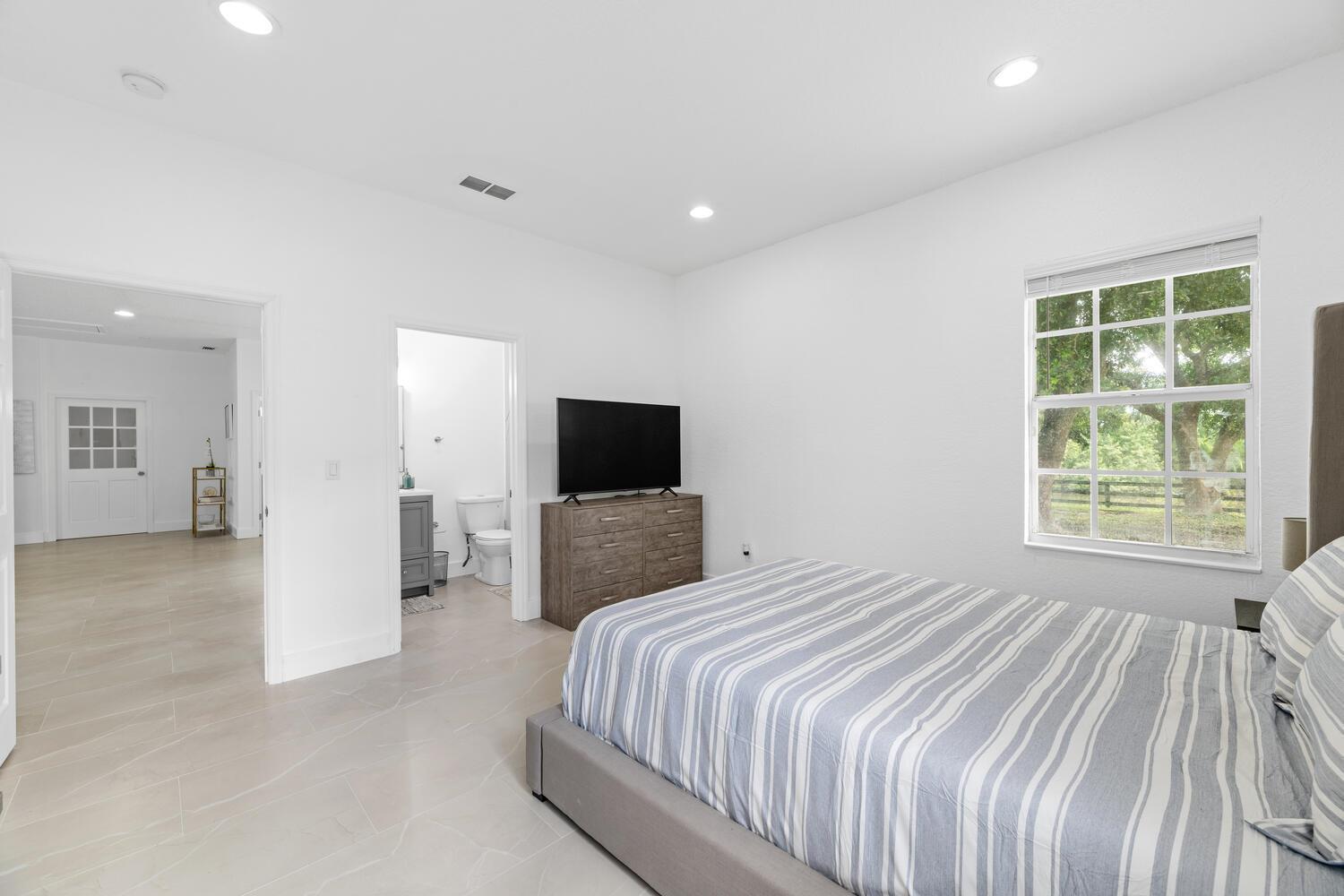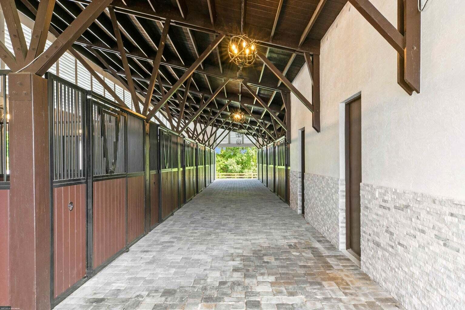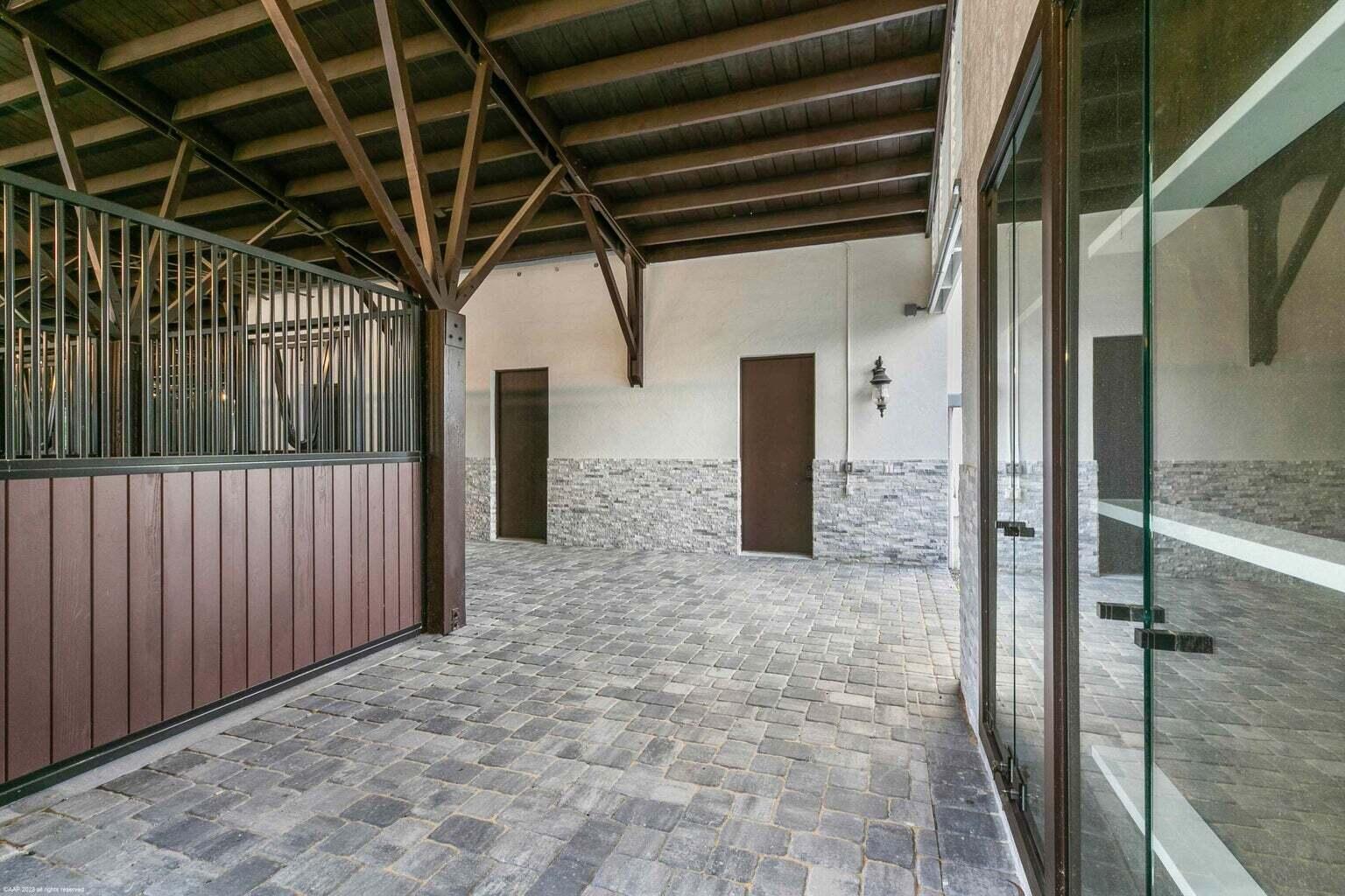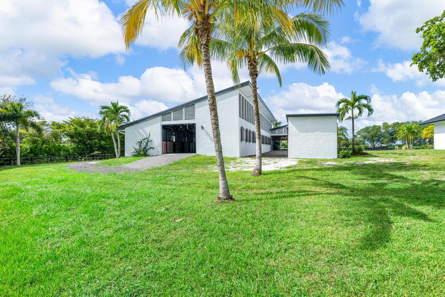 Full Renovation Just Completed!! Beautiful modern farm located in the heart of Wellington’s sport-horse country. This professional’s facility is nestled in Palm Beach Point East, within hacking distance and near the southern entrance to the show . Just reworked, the 5.32-acre property features a newly renovated 25-stall barn with new roof, new Classic Equine stalls, 9 new fully irrigated paddocks and a brand-new all-weather & fully irrigated 125 x 220 ft arena. The barn is sectioned into two and includes 2 feed rooms, 2 tack rooms & 2 hay storage rooms. There is a beautiful lounge with a kitchen, bathroom, and bar/viewing area overlooking the arena. The barn is complete with fans in each stall, a fly spray system, ceiling fans, a 1 bedroom/ 1 bath staff quarters and multiple RV hookups.