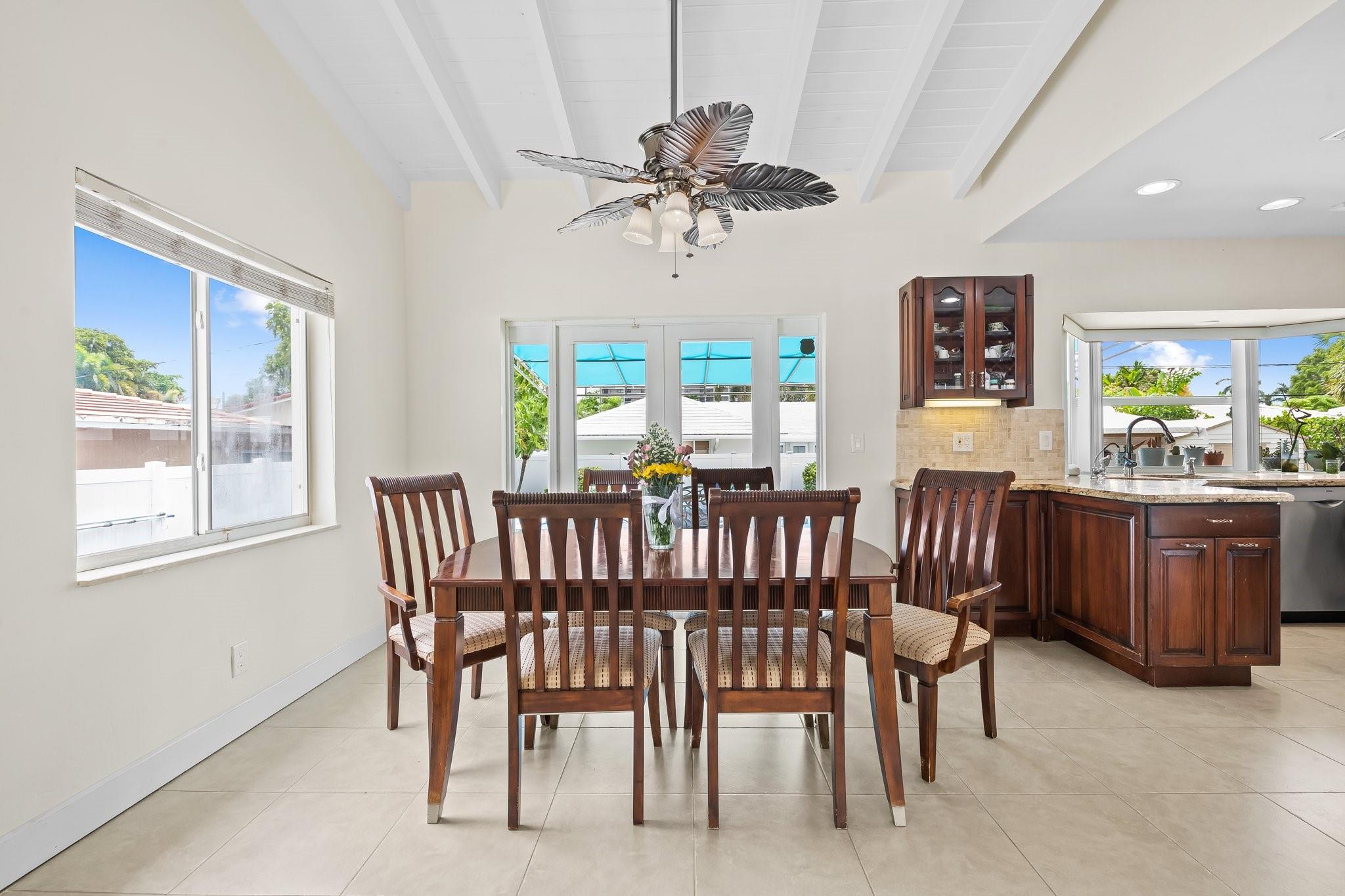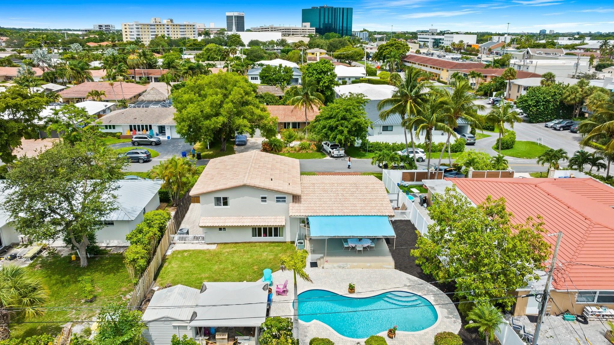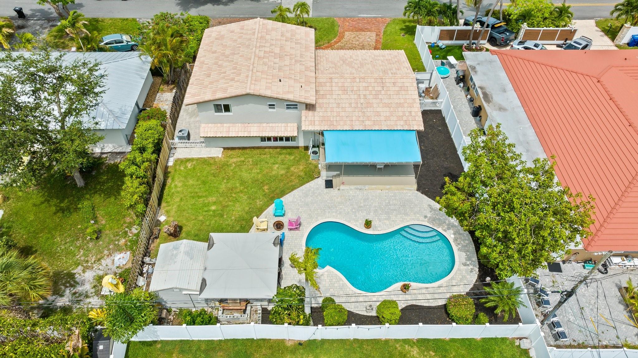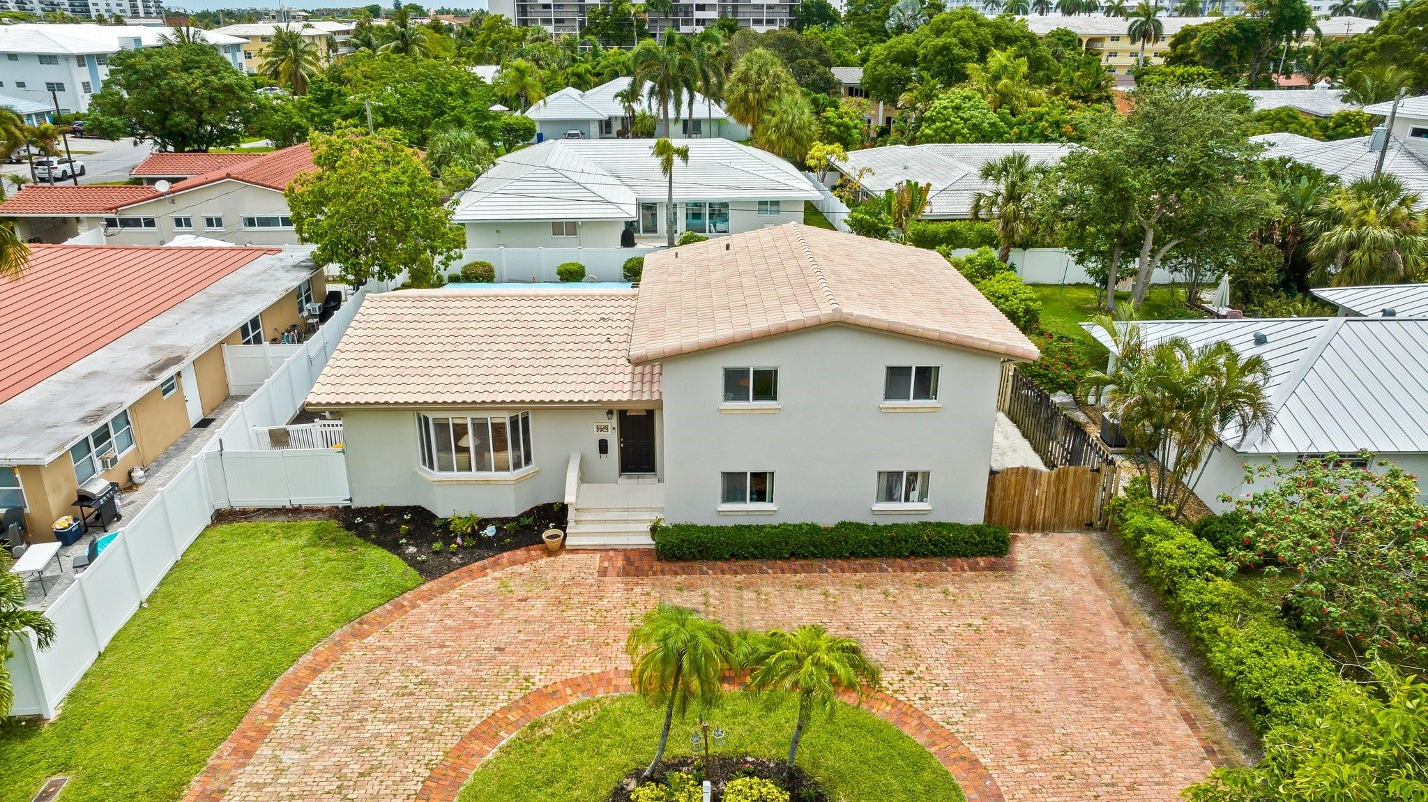 Welcome to your sanctuary in Coral Ridge Country Club Estates! 4 bedrooms, 3 bath tri-level home offers 2,240 sq ft of living space. The second level features a family area with vaulted, wood beam ceilings and a bay window offering an abundance of natural light. Kitchen is equipped with stainless steel appliances and granite countertops opens to an outdoor oasis with a pool. First level includes two bedrooms & shared bath, sitting area and laundry room. Third level boasts the primary suite with jetted tub and an additional bedroom. Enjoy a circular driveway, hurricane shutters, walking distance to Cardinal Gibbons High School, Christ Church, beaches and Lauderdale-by-the-Sea’s dining and shopping.