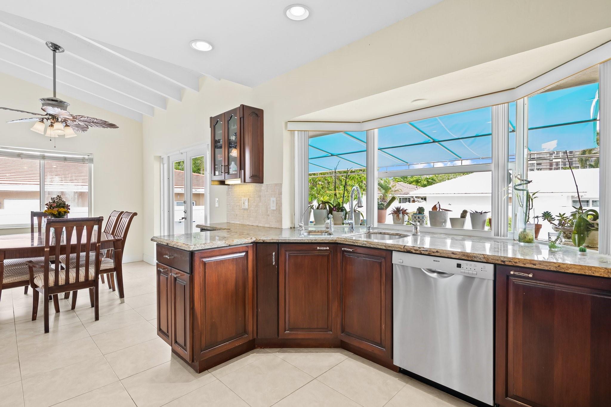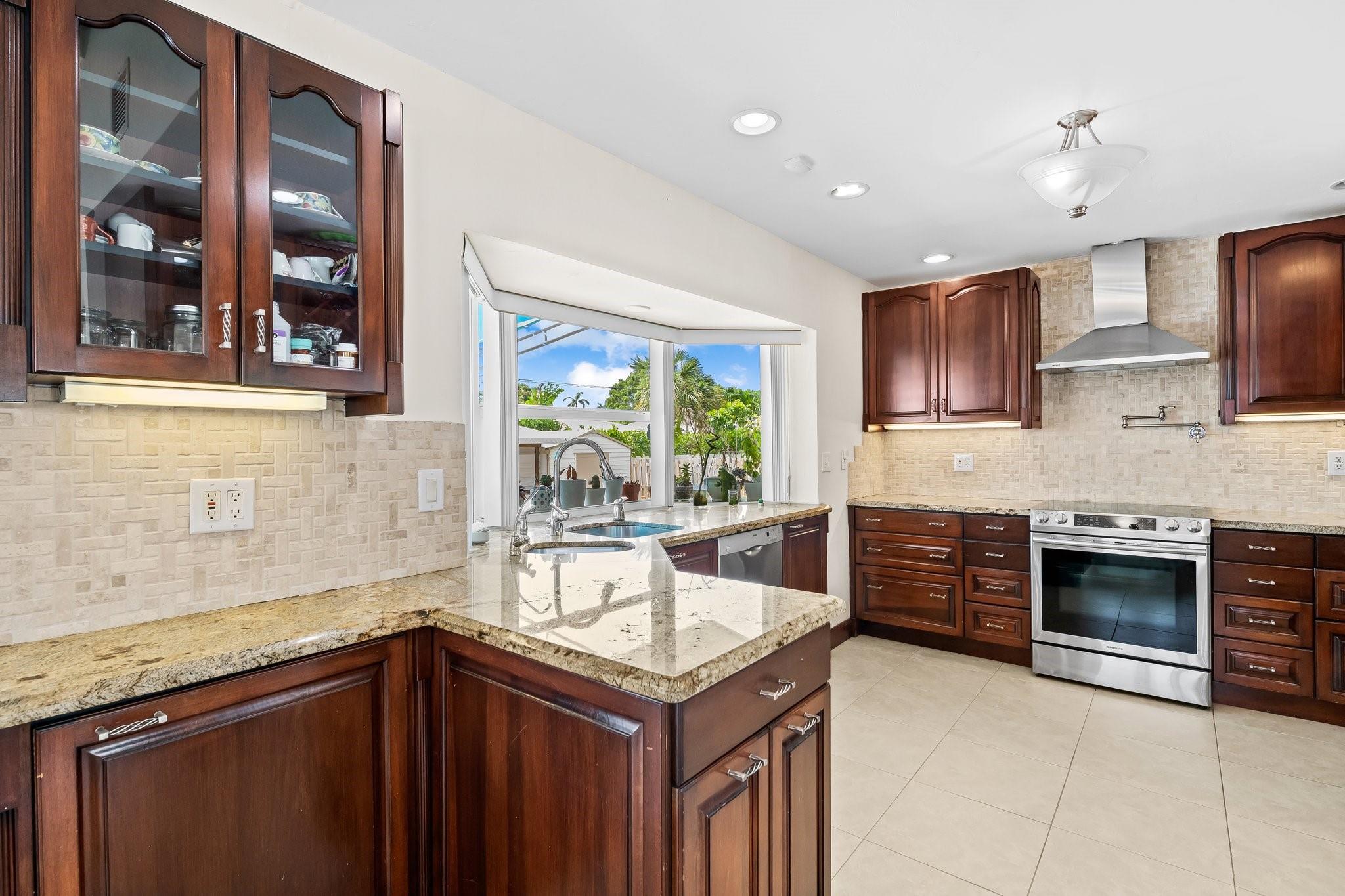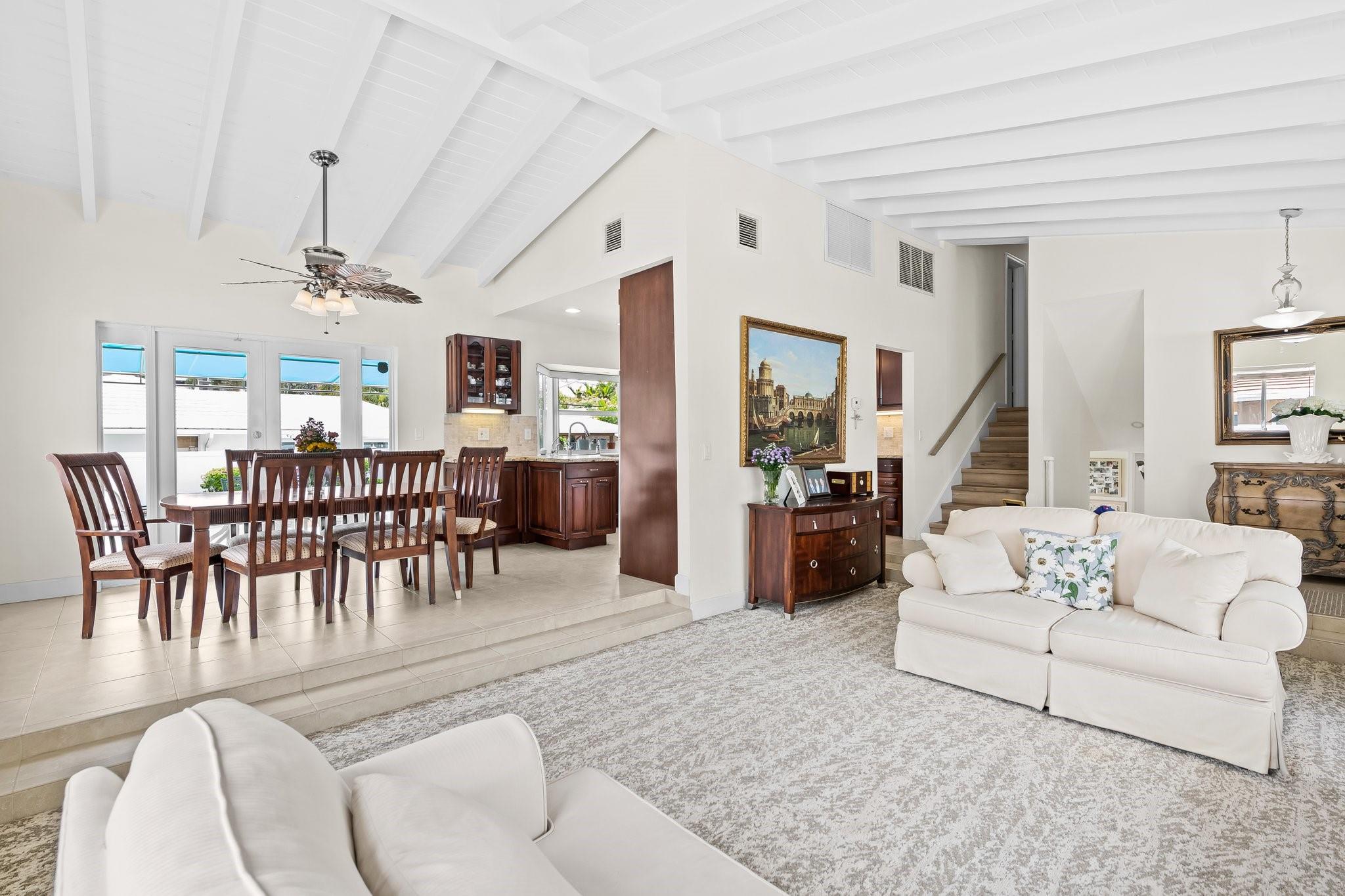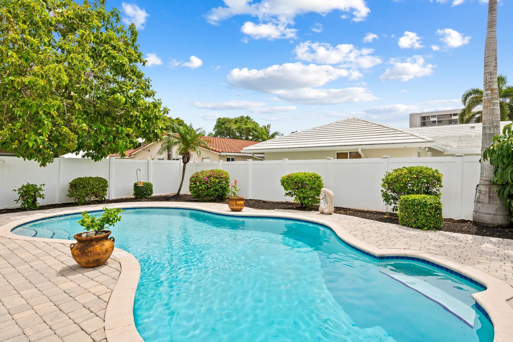 Welcome to your sanctuary in Coral Ridge Country Club Estates! 4 bedrooms, 3 bath tri-level home offers 2,240 sq ft of living space. The second level features a family area with vaulted, wood beam ceilings and a bay window offering an abundance of natural light. Kitchen is equipped with stainless steel appliances and granite countertops opens to an outdoor oasis with a pool. First level includes two bedrooms & shared bath, sitting area and laundry room. Third level boasts the primary suite with jetted tub and an additional bedroom. Enjoy a circular driveway, hurricane shutters, walking distance to Cardinal Gibbons High School, Christ Church, beaches and Lauderdale-by-the-Sea’s dining and shopping.