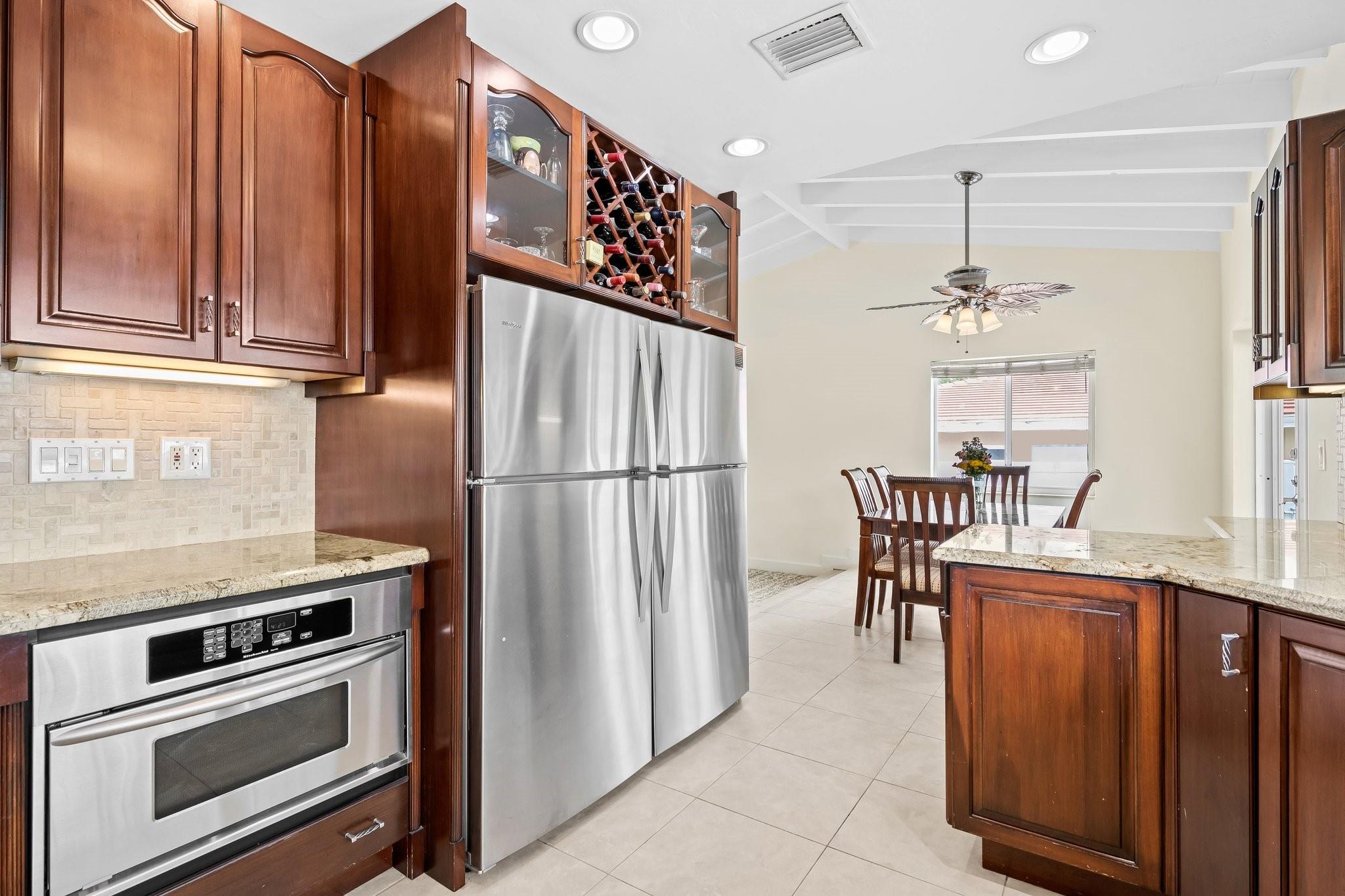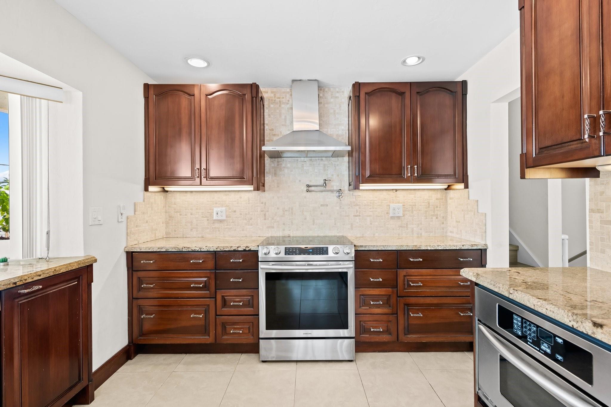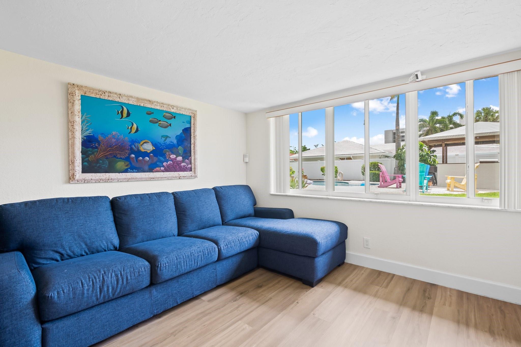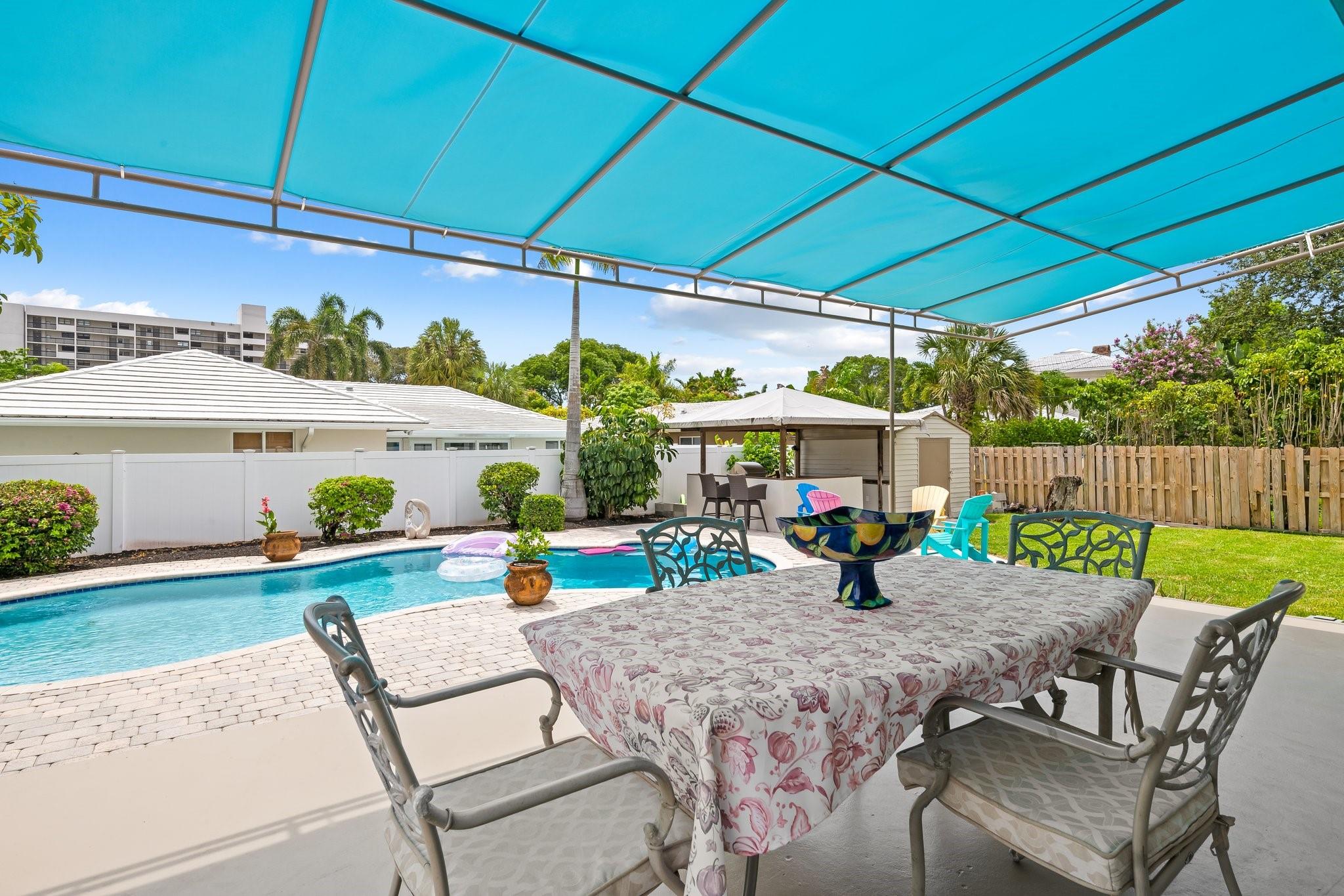Welcome to your sanctuary in Coral Ridge Country Club Estates! 4 bedrooms, 3 bath tri-level home offers 2,240 sq ft of living space. The second level features a family area with vaulted, wood beam ceilings and a bay window offering an abundance of natural light. Kitchen is equipped with stainless steel appliances and granite countertops opens to an outdoor oasis with a pool. First level includes two bedrooms & shared bath, sitting area and laundry room. Third level boasts the primary suite with jetted tub and an additional bedroom. Enjoy a circular driveway, hurricane shutters, walking distance to Cardinal Gibbons High School, Christ Church, beaches and Lauderdale-by-the-Sea’s dining and shopping.