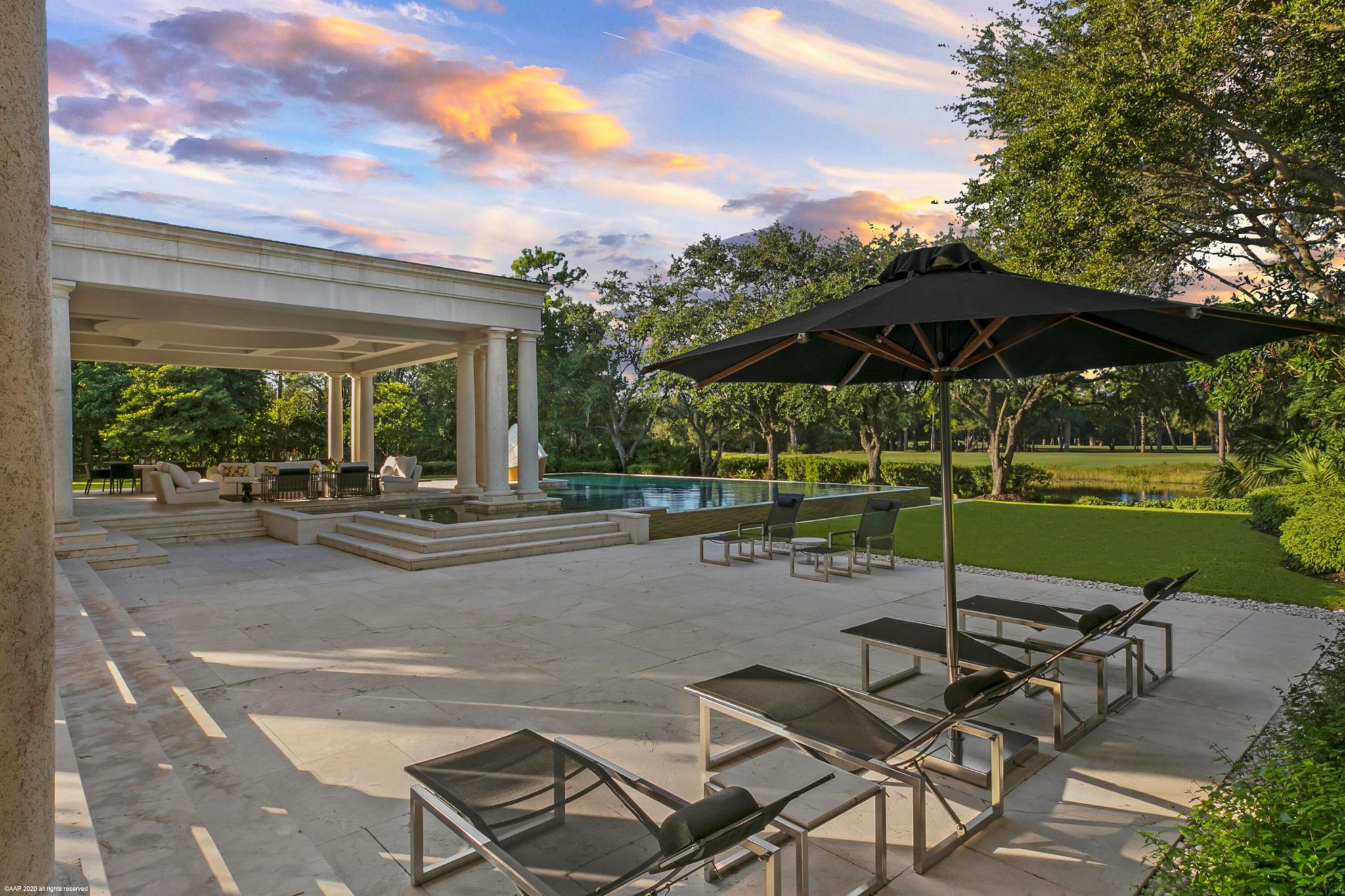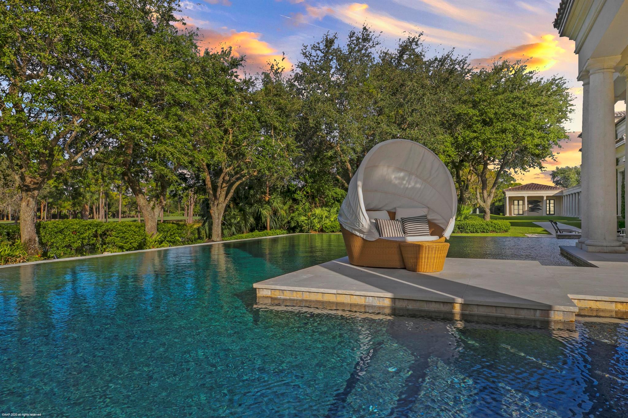 Situated on an oversized double lot in the prestigious Bear’s Club located in Jupiter, Florida, this custom Palladian styled estate residence offers 33,705 total square feet with 7 bedrooms, 9 baths and 3 half baths. The property showcases views of the 11th fairway of the Nicklaus signature golf course from its expansive outdoor loggias, galleries, manicured lawn, elegant pool and spa and covered private second floor terrace. This residence was originally designed by Manuel J. Diaz and was built by Lavelle Construction in 2010. The property has been previously featured twice in Architectural Digest.