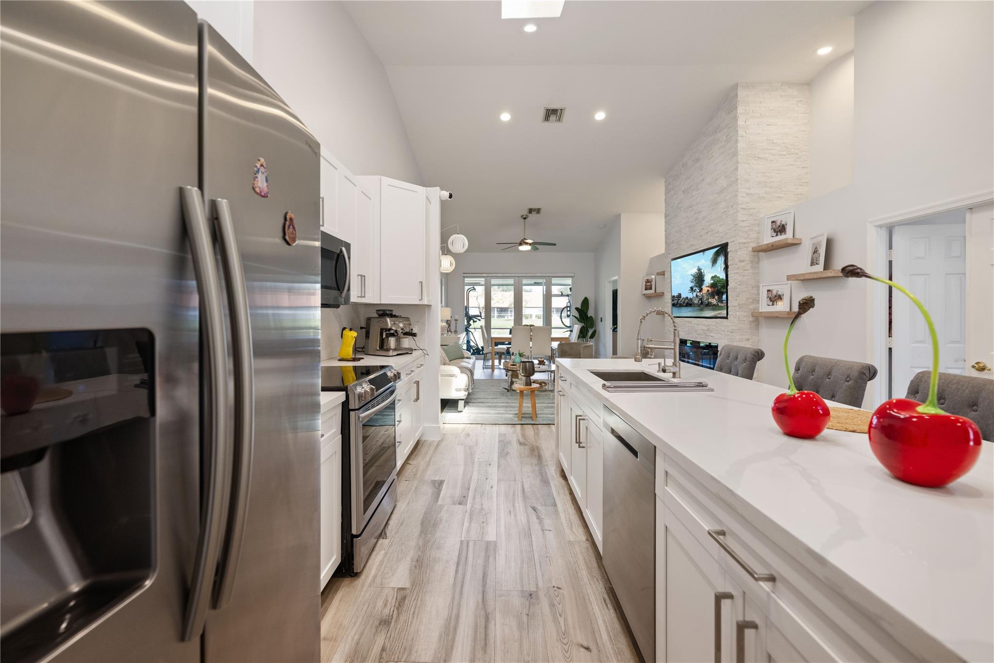 Stunning 3-Bedroom Home in a Gated Community with Lake View and Top-Rated Schools. This beautifully remodeled property is an open space concept with modern amenities, featuring 3 spacious bedrooms and 2 pristine bathrooms, this home offers comfort and style at every turn. The kitchen is equipped with stainless steel appliances (2018) and it is completed remodeled. AC unit installed in 2019, washer & dryer (2018). Hurricane impact windows, whole-house water filter and a luxury Living, Cozy up by the fireplace and serene lake view from your living room. This property has 24-hour surveillance, spa, gym, 2 pools, pickleball, tennis and basketball court, playground , Cable & WIFI included.