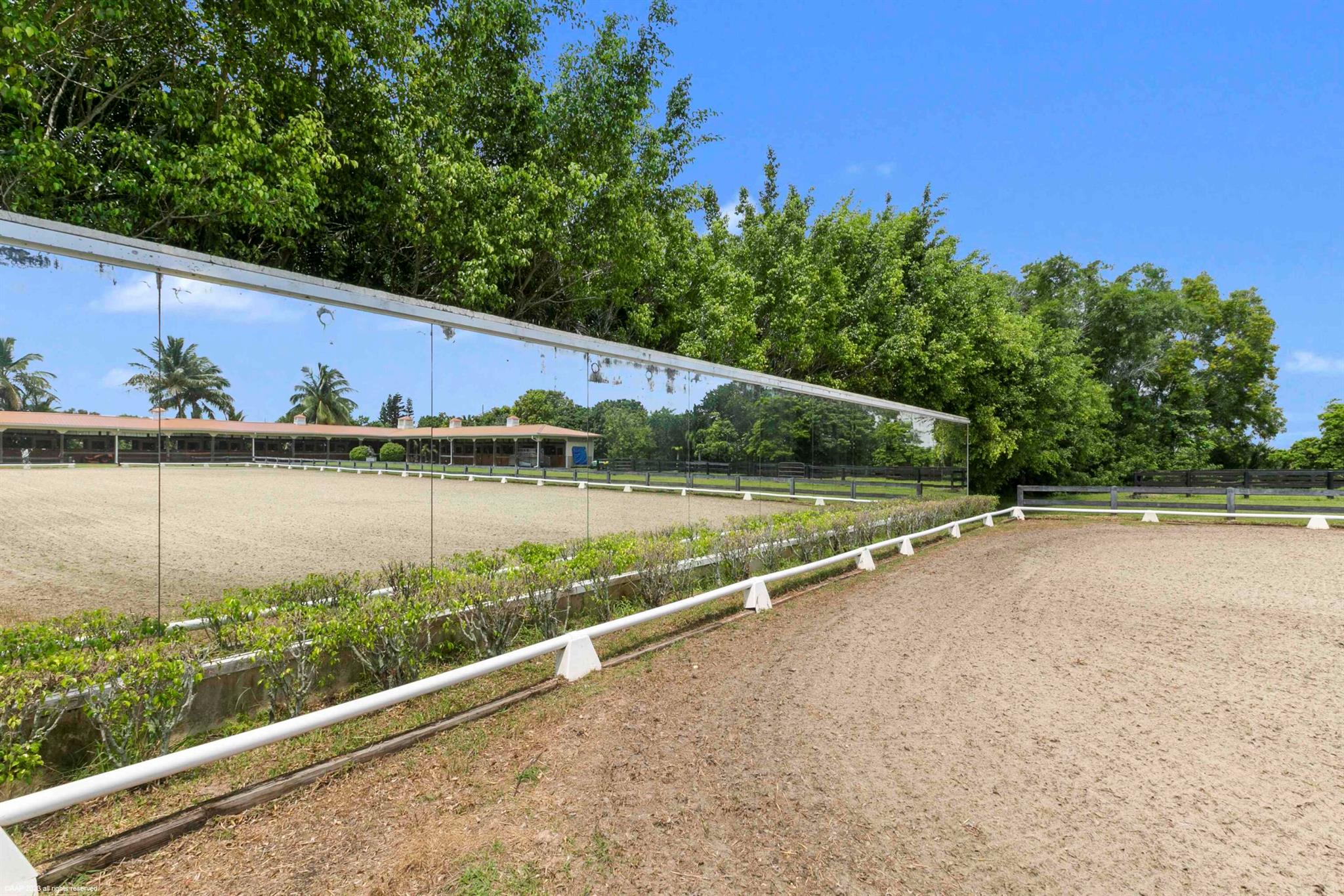 An amazing opportunity to own a beautiful turnkey horse farm in Wellington’s horse country! This farm is an exceptional value and is available now for quick occupancy! Designed and outfitted for the professional equestrian, the 5.51-acre property has a great layout and offers a 2010 Amish built barn with a studio apartment grooms quarters, 16 stalls (all 12×12 ft), two interior wash bays, farrier station, large tack room with washer/dryer/refrigerator/sink, bathroom, hay and feed rooms, horse hair interceptor, and a horse treadmill hook-up. The all-weather sub-irrigated arena features a newly-upgraded control system, professional top-of-the-line footing, dressage mirrors and a viewing pergola. There are 7 grass paddocks and a round pen.