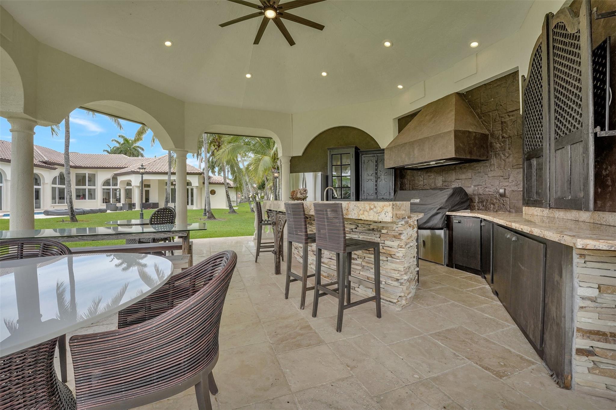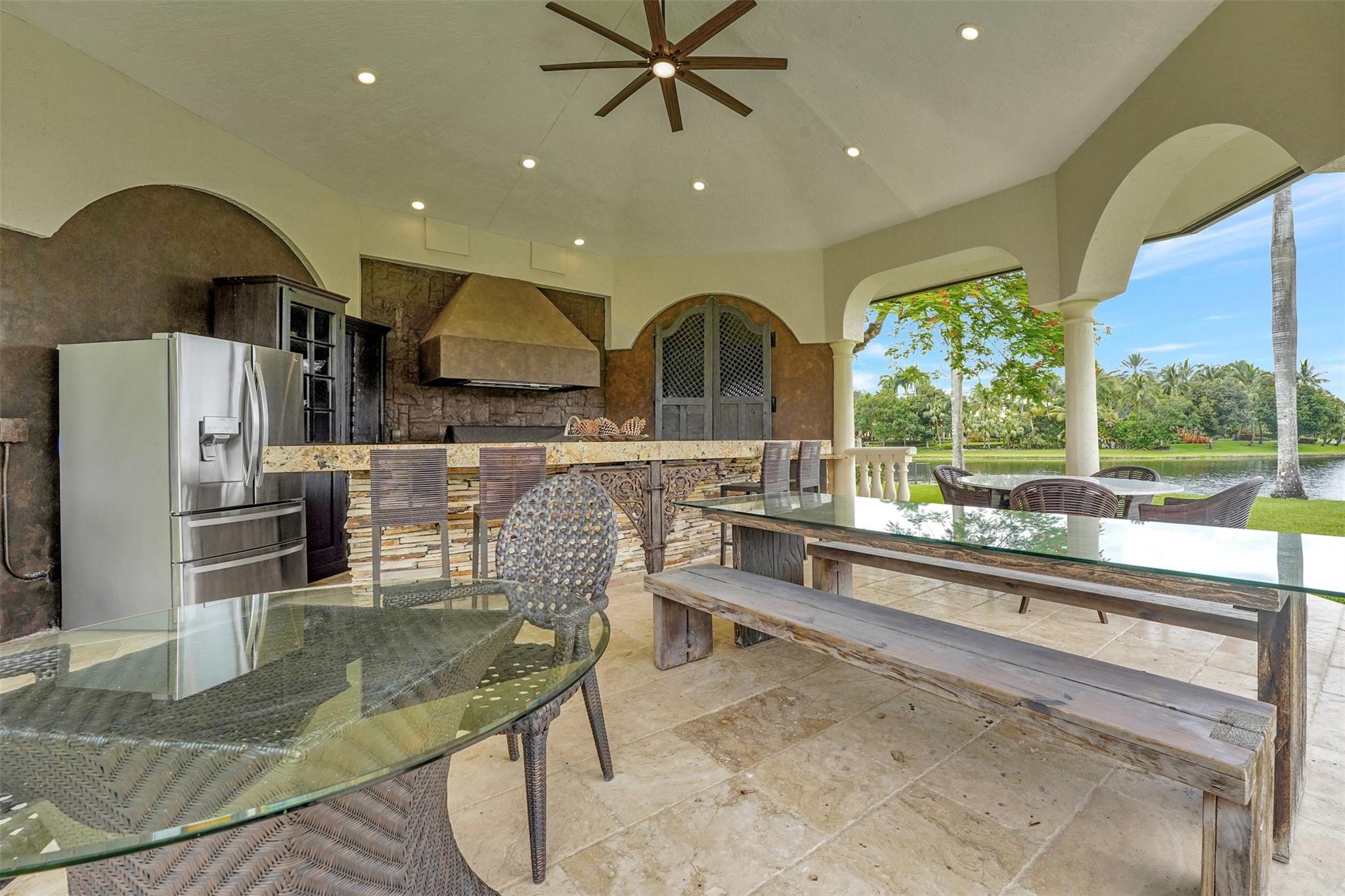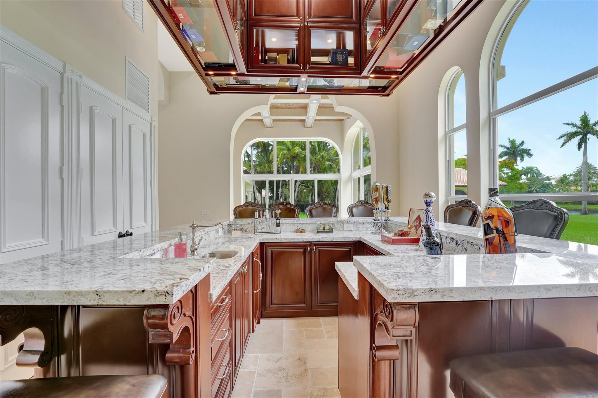 Exquisite luxury home within prestigious Windmill Ranch Estates. Grand entrance into the beautifully detailed & recently completed 7-figure remodel inside and out, w/ expansive lake views, lush landscaping, resort pool, & mature palm trees adorn this property. Unique masterpiece has fine craftsmanship, exquisite finishes, high volume ceilings, Jerusalem Stone, real wood floors, private office, outfitted bar, & formal dining. Gourmet kitchen, granite tops, custom cabinetry, massive center island & breakfast area. Lavish master suite w/ large walk-in closets & resort style master bath w/ oversized Jacuzzi Tub, dual showers with full Steam. Cabana bath w/spa sauna & shower. Fully equipped Summer kitchen gazebo seats 20+. Oversized 3 car garage w/ marble floors, & expansive driveway.