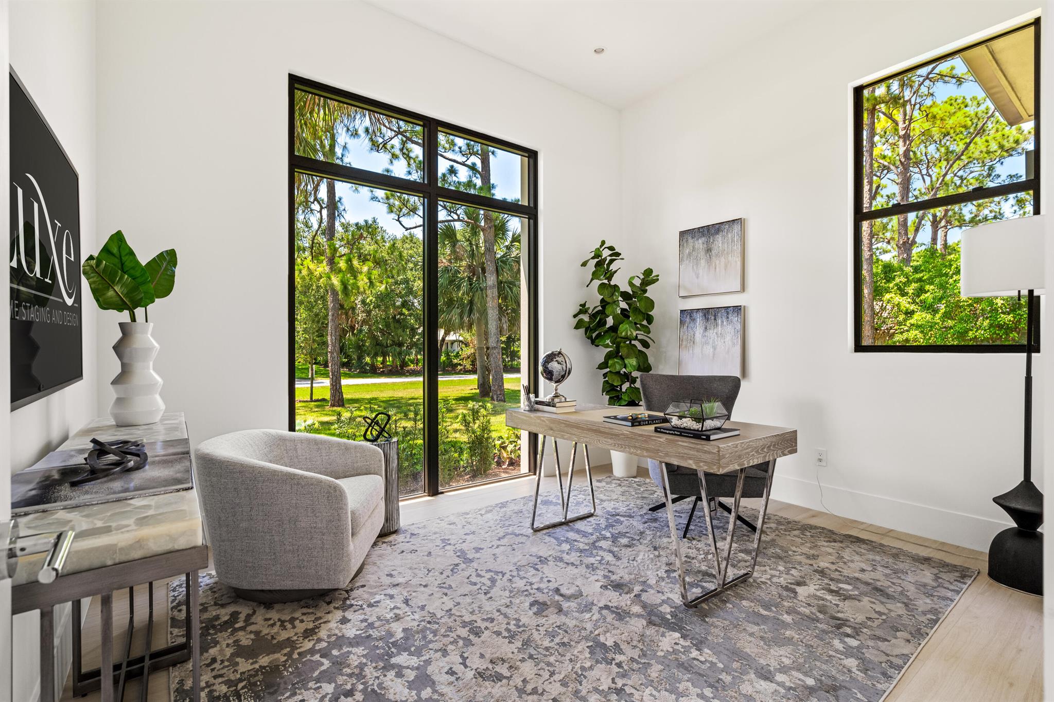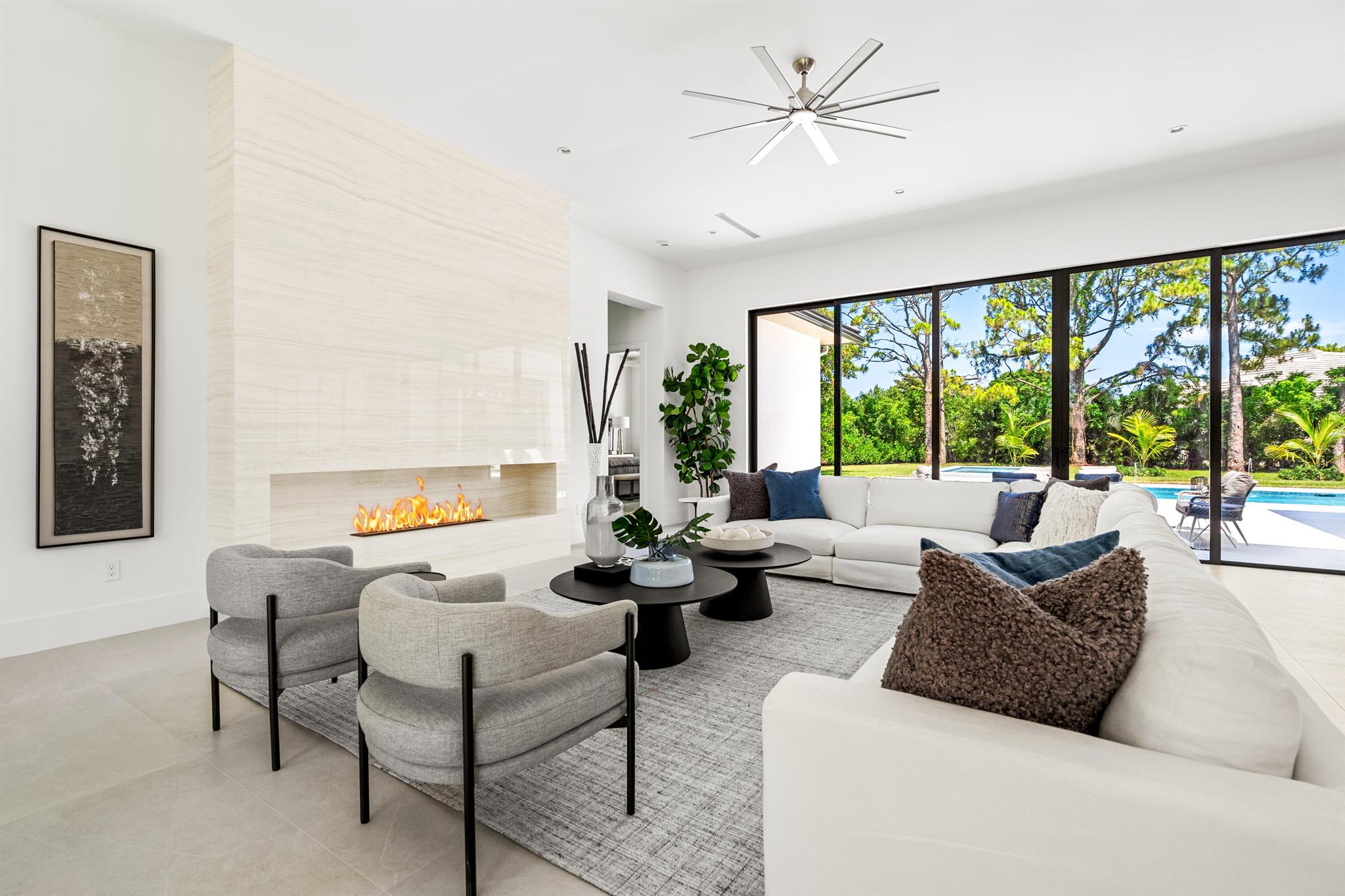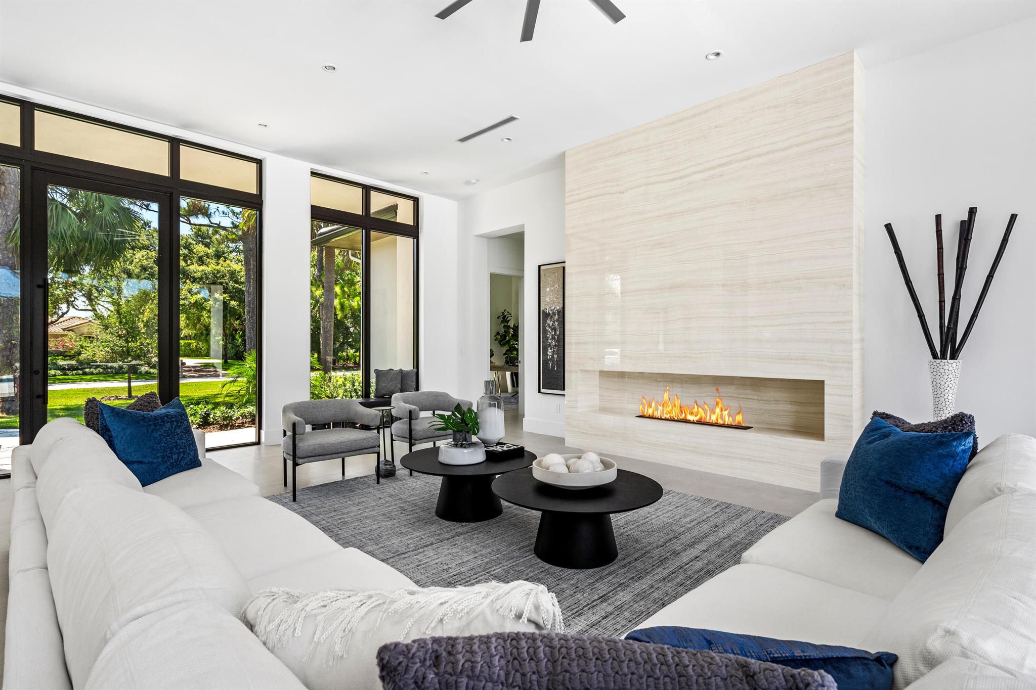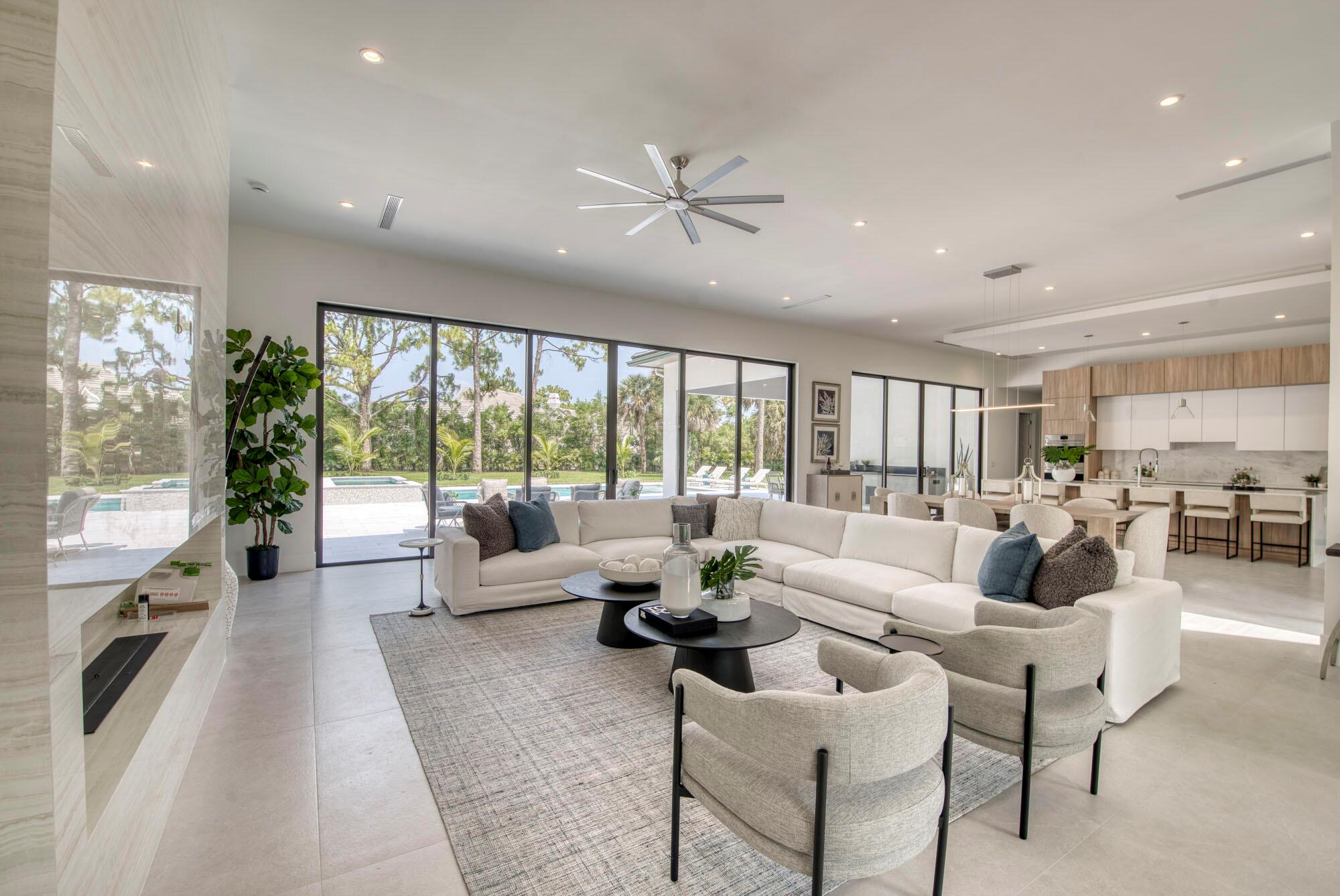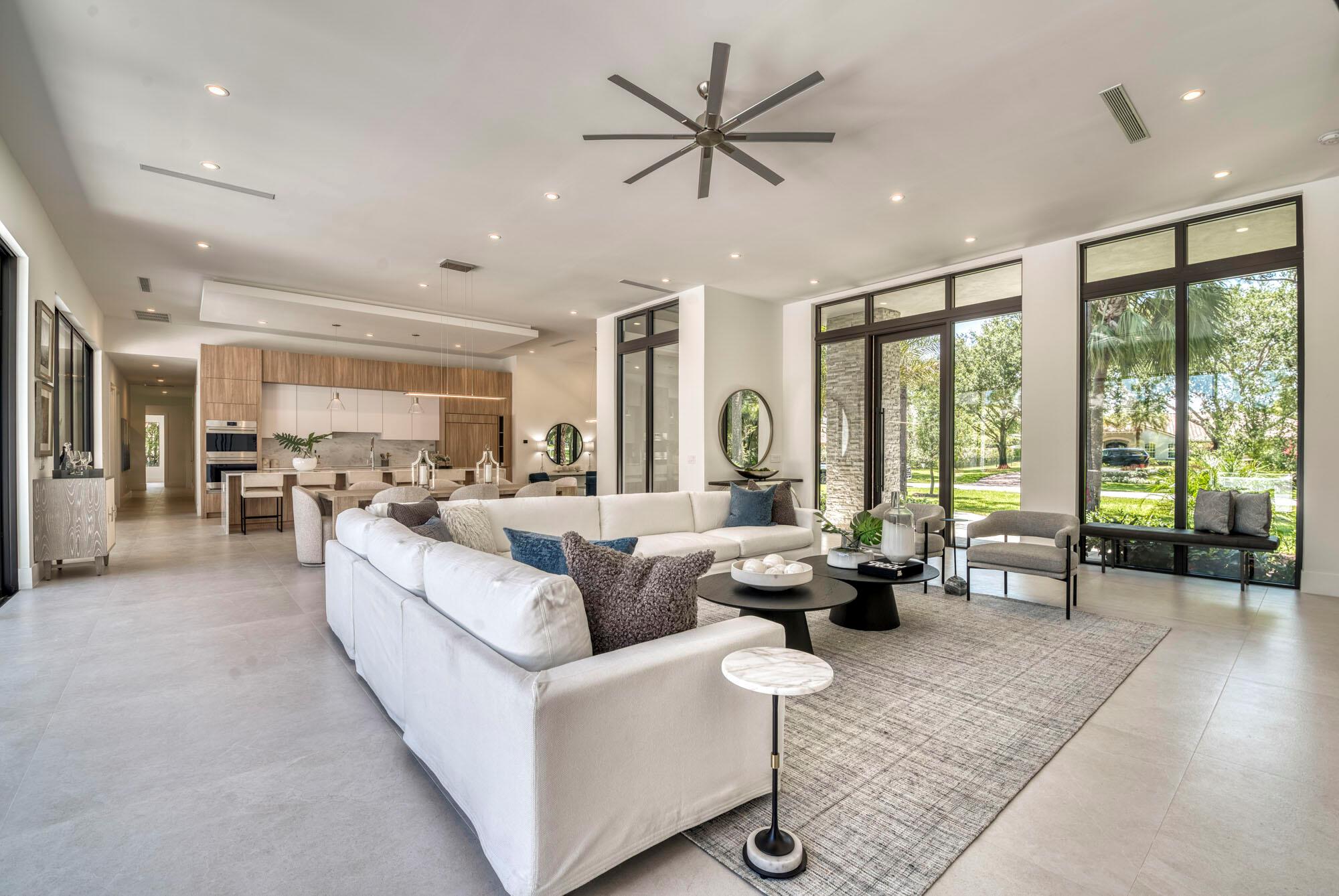Setting the bar for luxury & elegance in one of the most coveted neighborhoods in Palm Beach Gardens. Spanning nearly 5,000 total square feet of pure perfection, this trophy home is in a league of its own, achieving unparalleled scale and quality. The attention to detail, seamless flow throughout and vast nature is realized upon the moment of entry. Offering dramatic indoor/outdoor living imagined with the most impeccable views of your 1 + acre private backyard and lavish resort style pool. Exuding sophistication and style, this 4 bedroom, 5 bathroom home + office & flex space includes massive 12 foot ceilings, a state of the art kitchen with top of the line Sub Zero and Wolf appliances, plus an outdoor summer kitchen with tons of covered patio space.