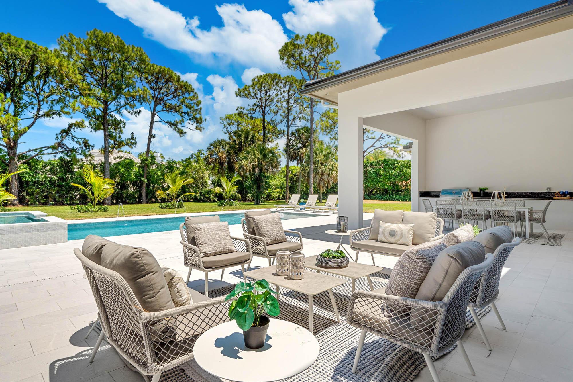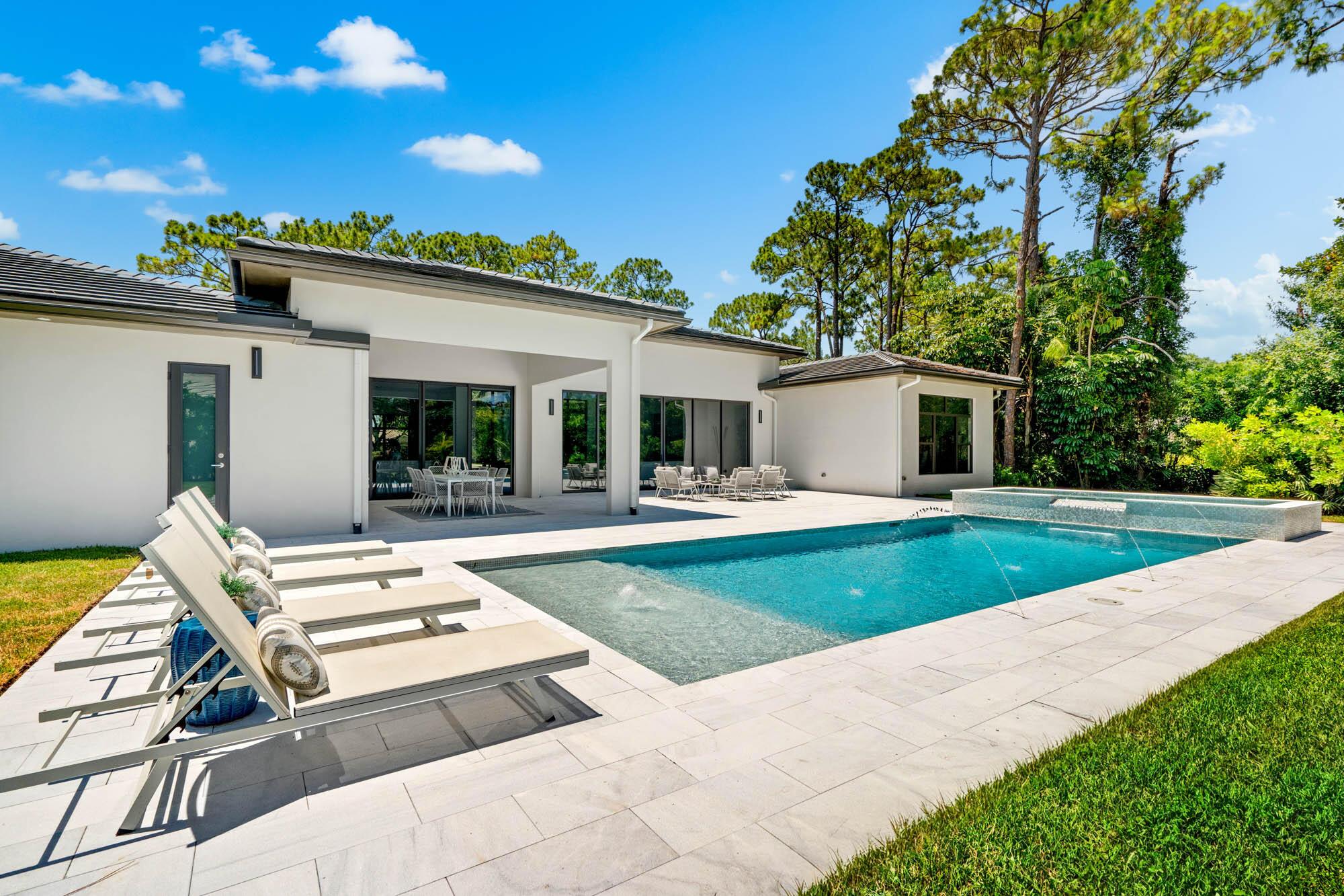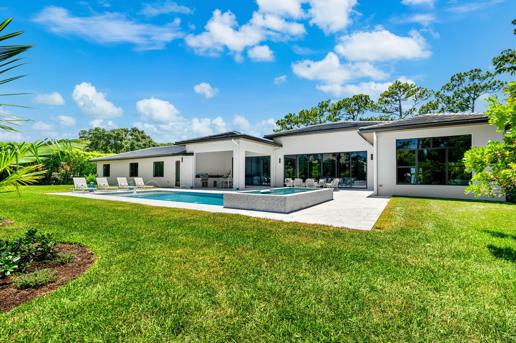 Setting the bar for luxury & elegance in one of the most coveted neighborhoods in Palm Beach Gardens. Spanning nearly 5,000 total square feet of pure perfection, this trophy home is in a league of its own, achieving unparalleled scale and quality. The attention to detail, seamless flow throughout and vast nature is realized upon the moment of entry. Offering dramatic indoor/outdoor living imagined with the most impeccable views of your 1 + acre private backyard and lavish resort style pool. Exuding sophistication and style, this 4 bedroom, 5 bathroom home + office & flex space includes massive 12 foot ceilings, a state of the art kitchen with top of the line Sub Zero and Wolf appliances, plus an outdoor summer kitchen with tons of covered patio space.