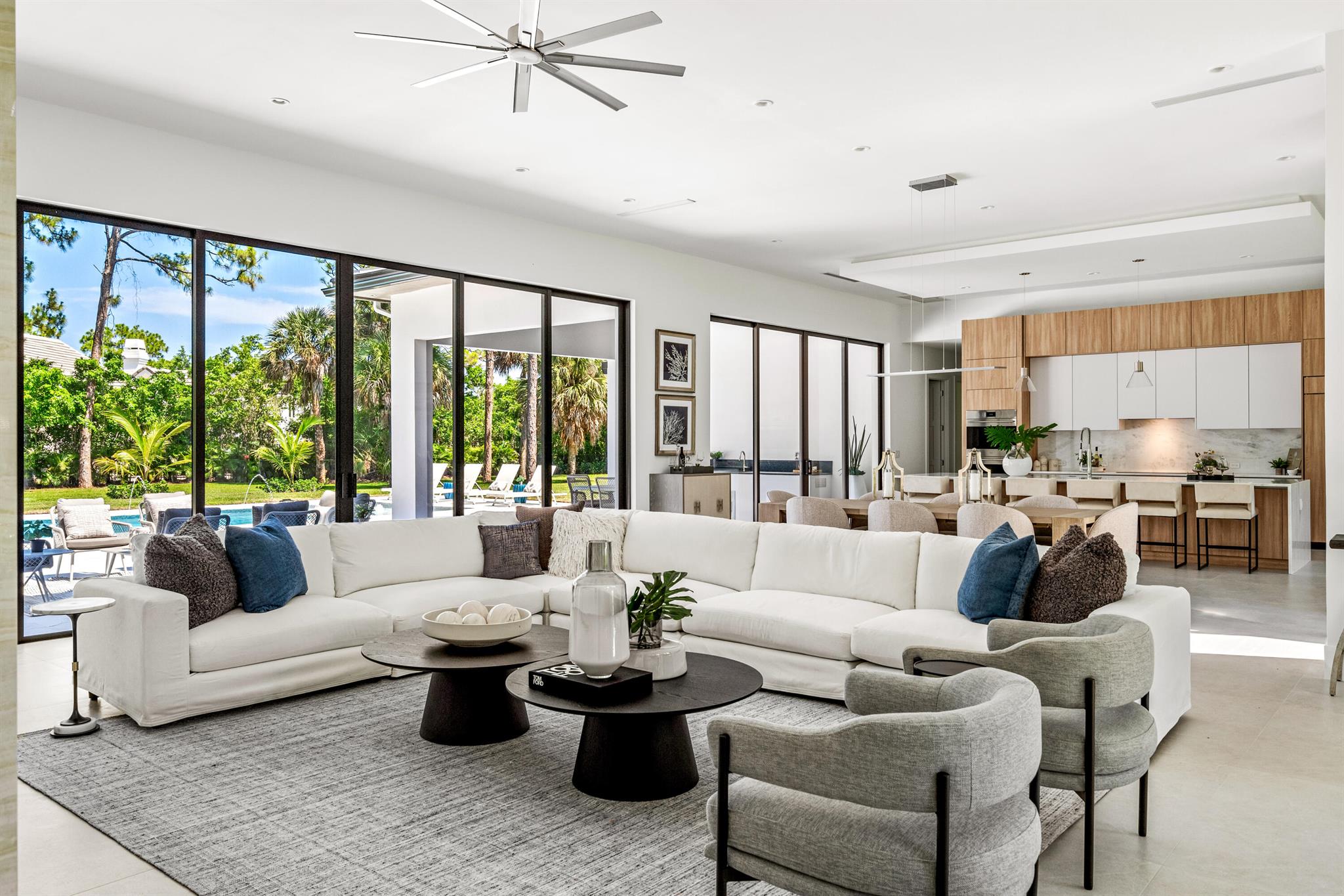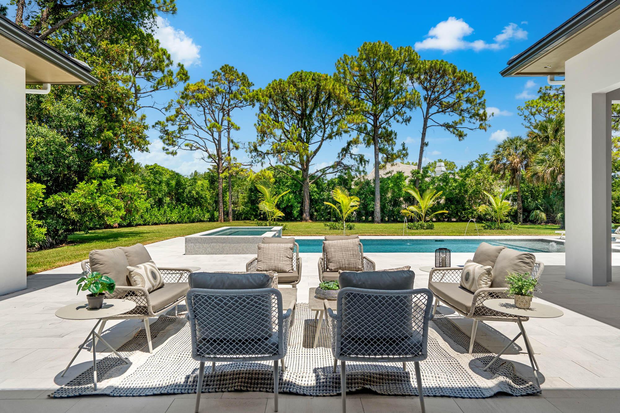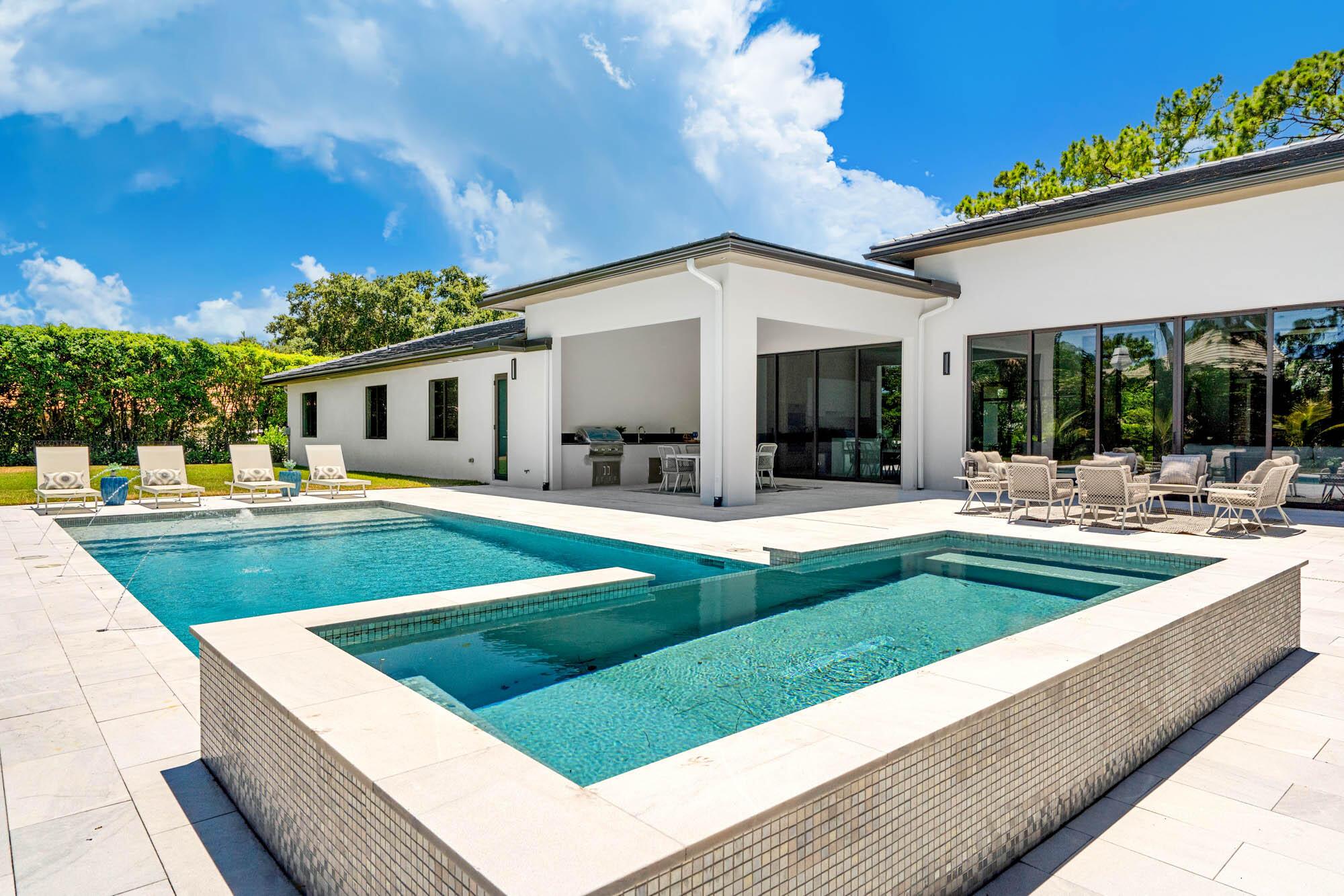 Setting the bar for luxury & elegance in one of the most coveted neighborhoods in Palm Beach Gardens. Spanning nearly 5,000 total square feet of pure perfection, this trophy home is in a league of its own, achieving unparalleled scale and quality. The attention to detail, seamless flow throughout and vast nature is realized upon the moment of entry. Offering dramatic indoor/outdoor living imagined with the most impeccable views of your 1 + acre private backyard and lavish resort style pool. Exuding sophistication and style, this 4 bedroom, 5 bathroom home + office & flex space includes massive 12 foot ceilings, a state of the art kitchen with top of the line Sub Zero and Wolf appliances, plus an outdoor summer kitchen with tons of covered patio space.