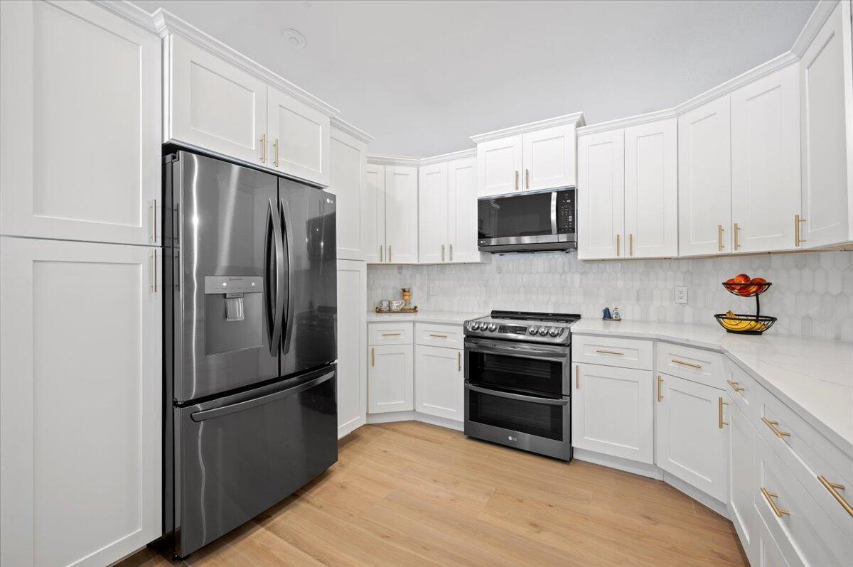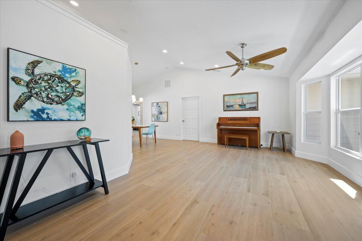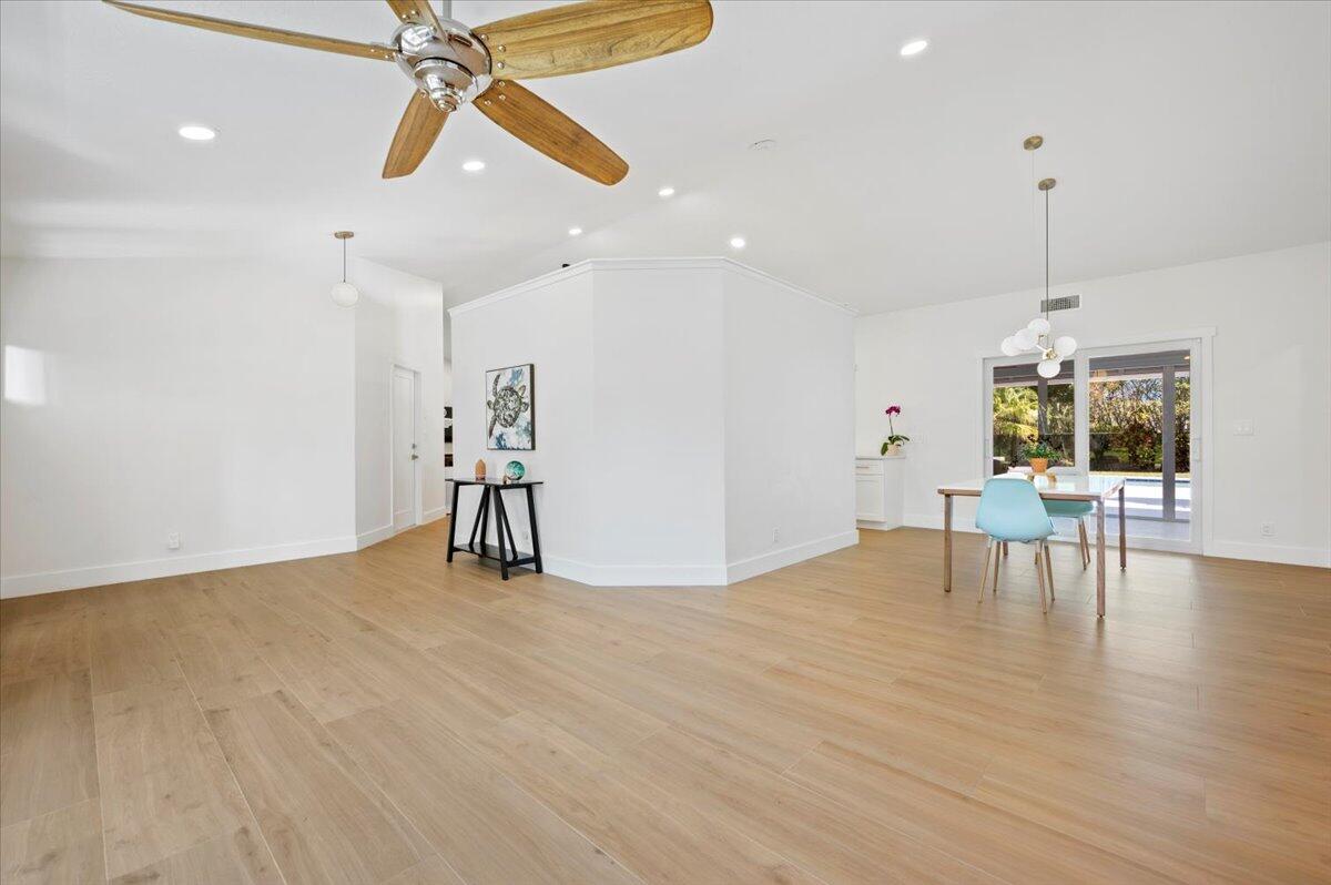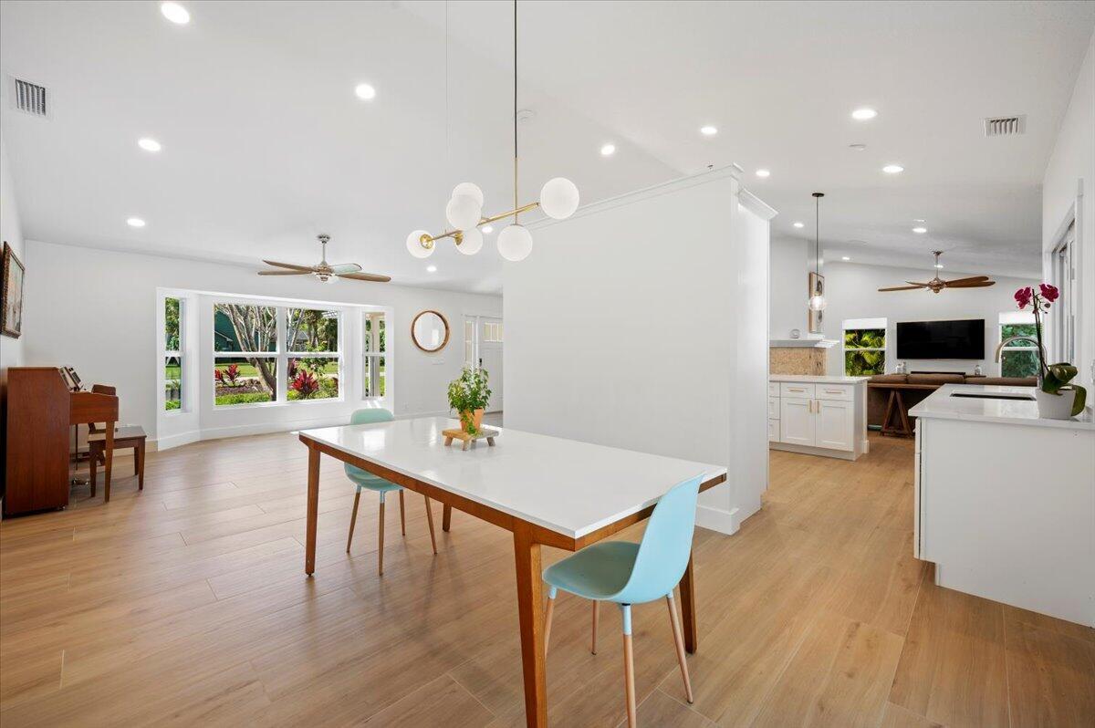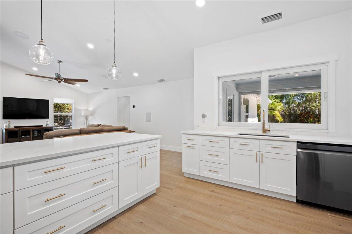 Discover unparalleled comfort in this captivating 4br/2ba home with a 2-car garage & a refreshing pool, strategically situated in the heart of Jupiter. Meticulously renovated, this residence boasts a brand-new metal roof, hurricane impact doors & windows, hardie plank siding, & a kitchen transformed with modern cabinets, quartz countertops, LG appliances, a convenient pass-through window, dual pantries, and a breakfast bar that overlooks the inviting family room adorned with a wood-burning fireplace & vaulted ceilings in the living areas. Elegance extends throughout with wood-look tile floors, complementing the well-thought-out split-bedroom floor plan. The private primary suite bathroom is a sanctuary of luxury, featuring dual sink vanities, a separate shower with a built-in bench,