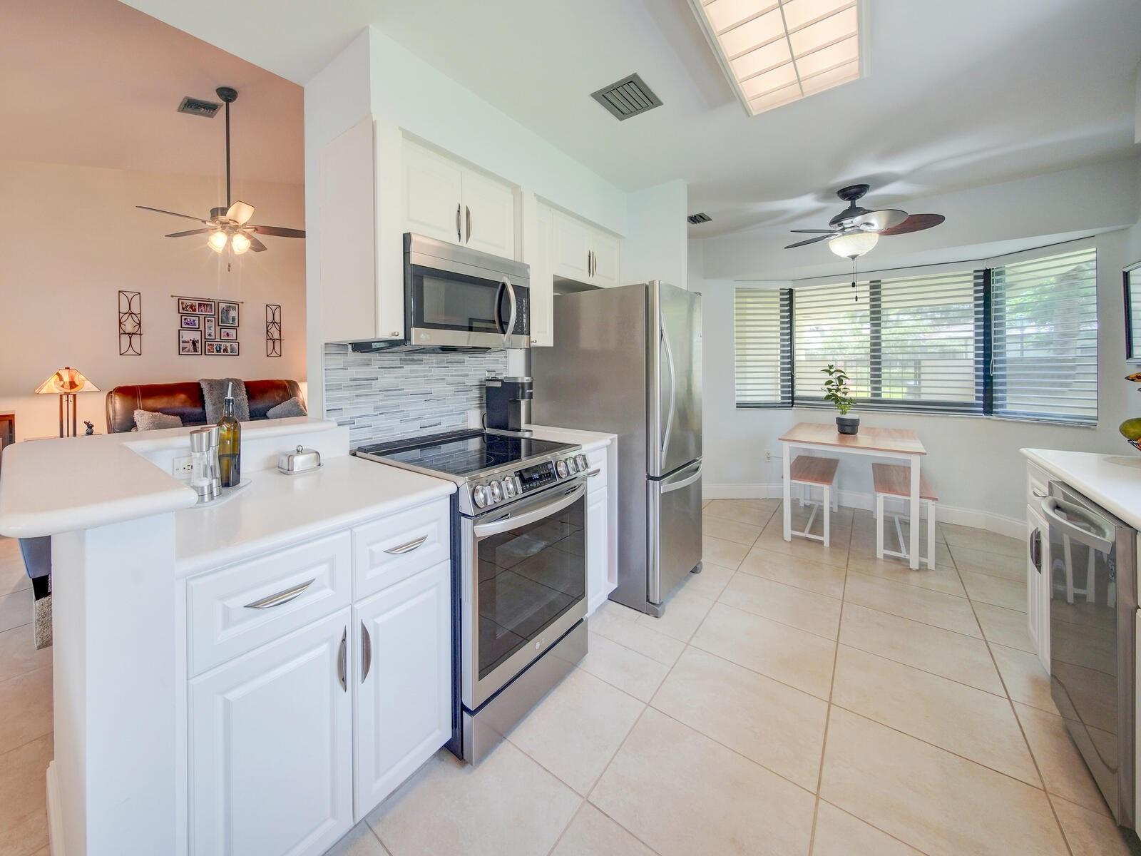 You won’t believe your eyes when you step into this lovely corner villa with the most spectacular views as far as the eye can see! From the moment you walk in you are greeted with soaring ceilings, and your dream view from all living areas, including the master bedroom! The spacious kitchen offers new S.S. appliances, white cabinets, and a new modern backsplash. The oversized screened and roofed patio is perfect for entertainment, family gatherings, and holidays. Watch the wildlife go by as you have your morning coffee or evening cocktail! The owner has replaced the POLY-PIPES, put in impact windows, and sliding glass doors. One of the few villas that has an inside laundry room with tons of storage. Association fee includes roof, reserves, landscaping, pool, and community center.