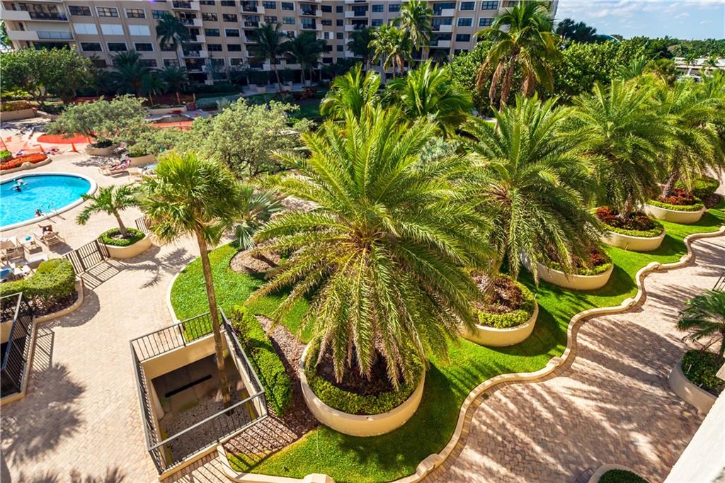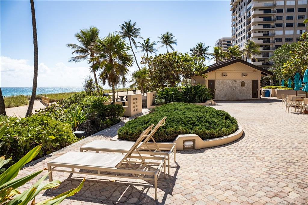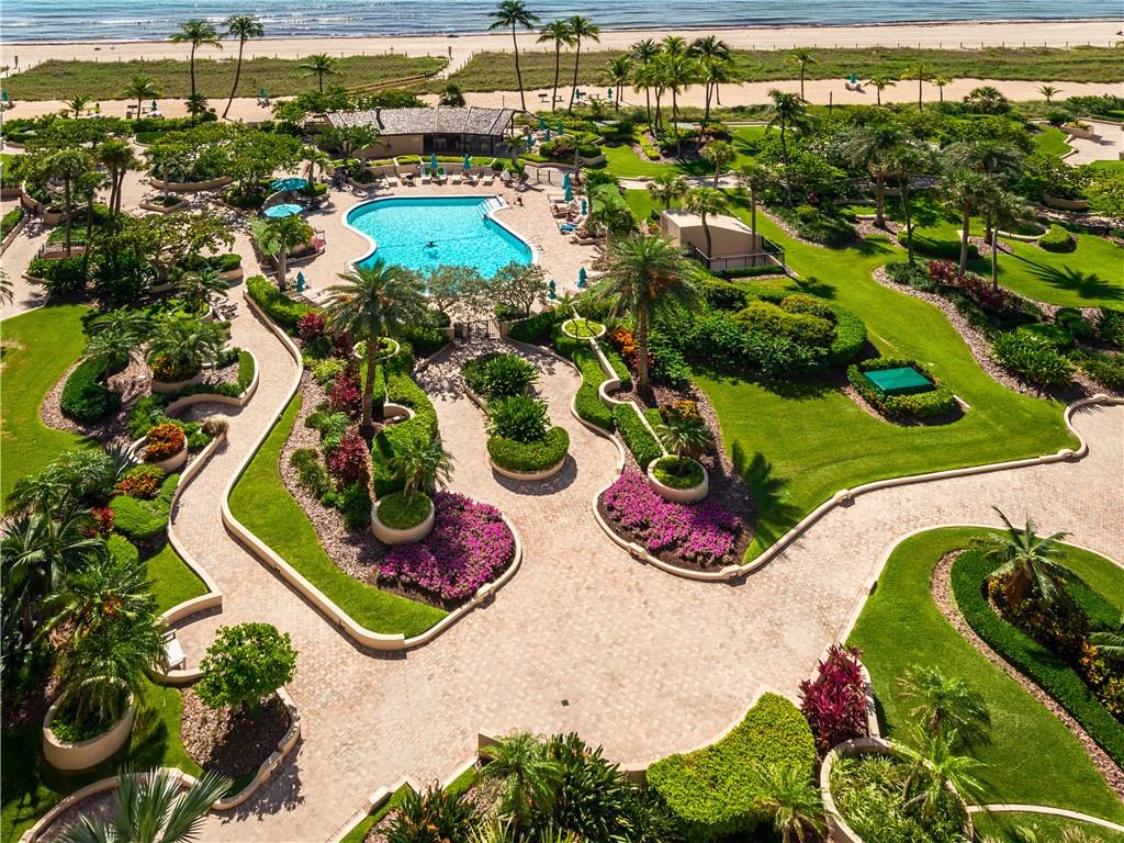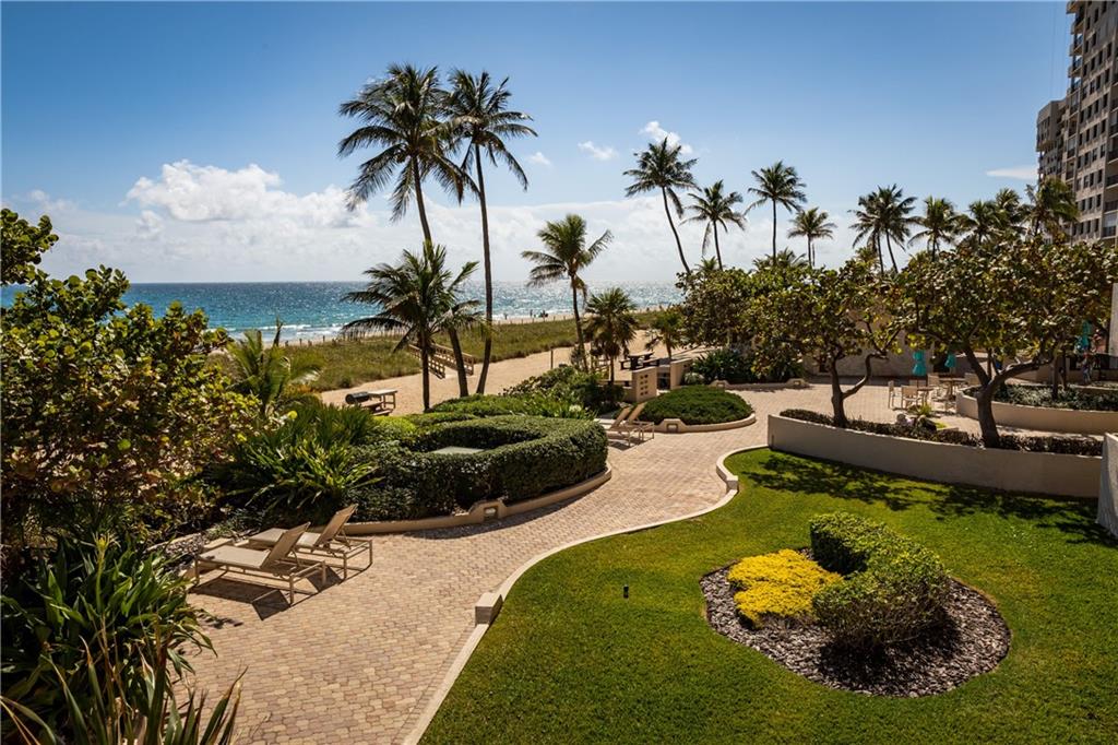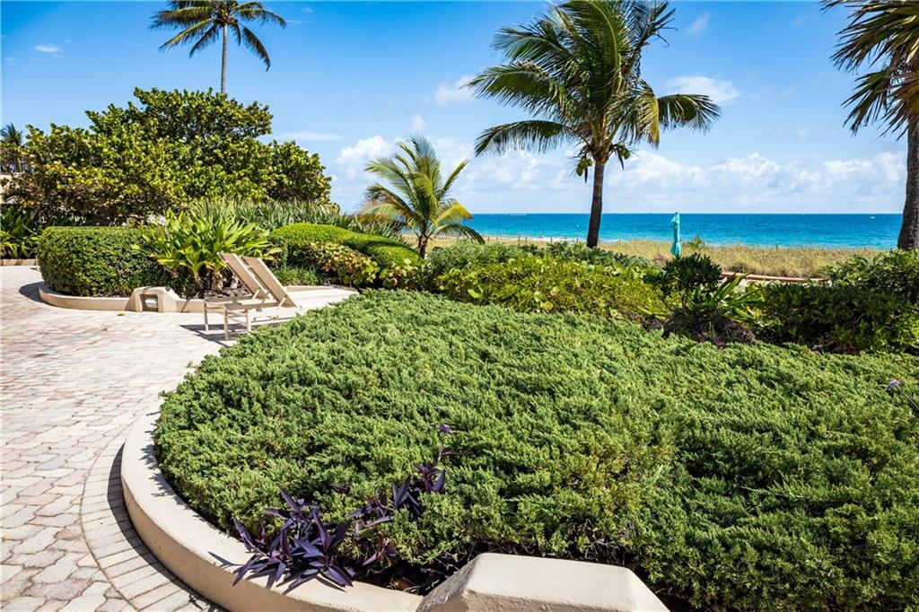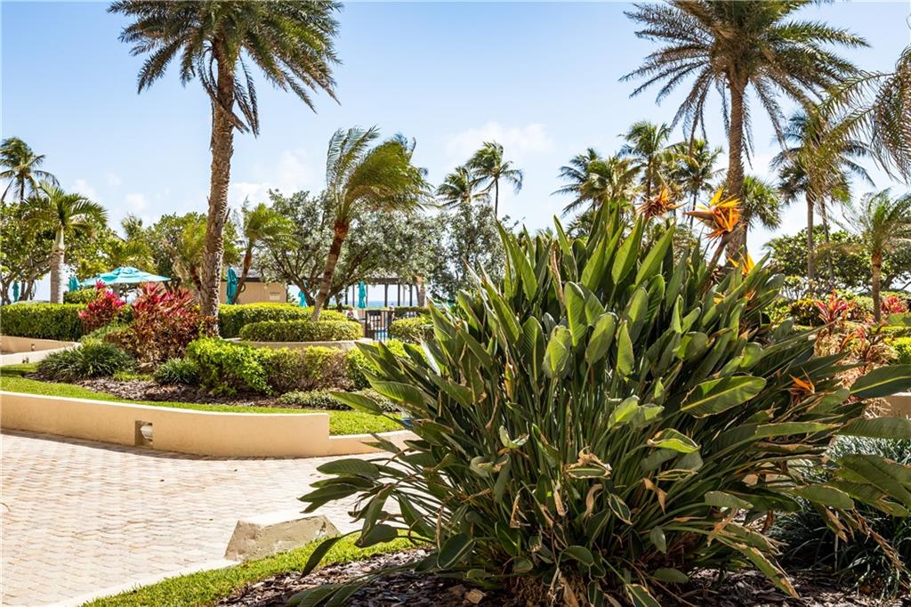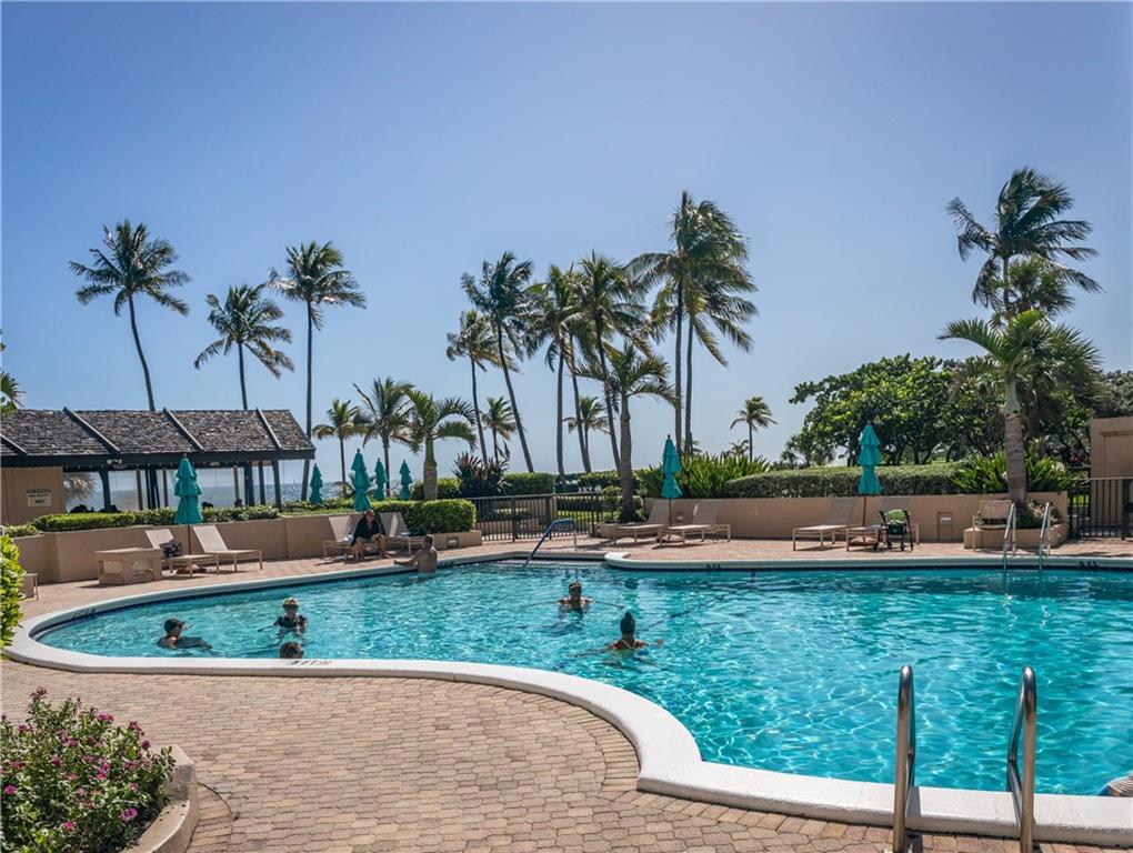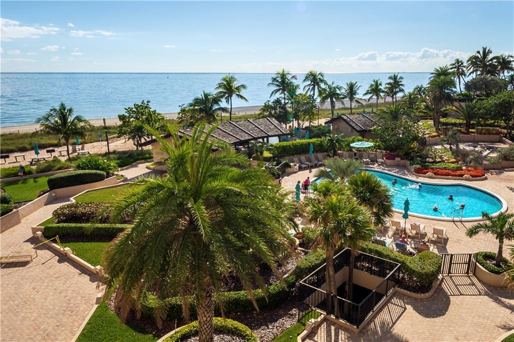 Overlooking beach, lush gardens, cabanas, pool. Updated kitchen and appliances and W and D, baths, tile thru