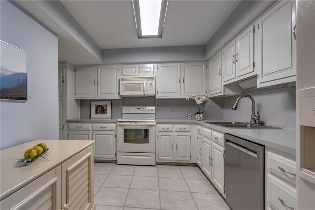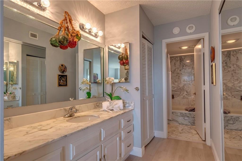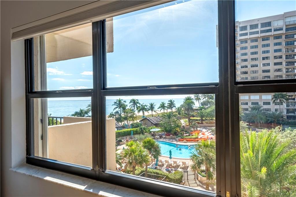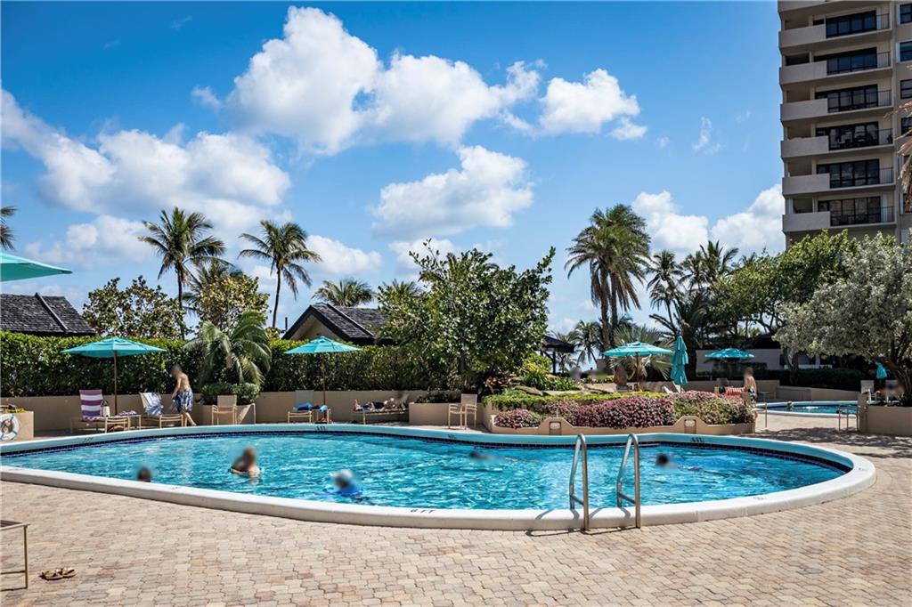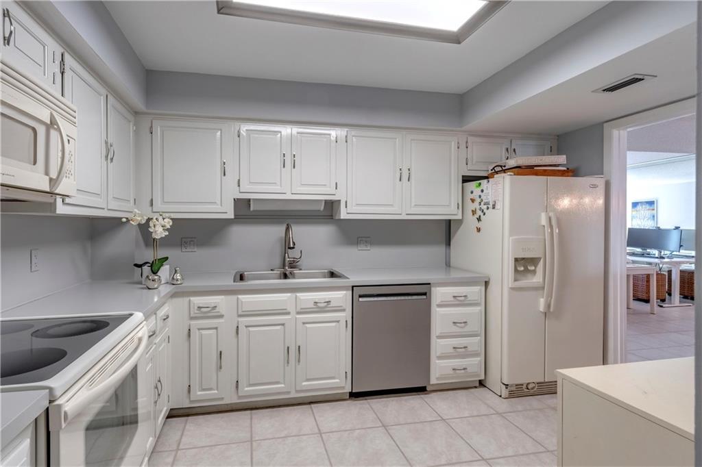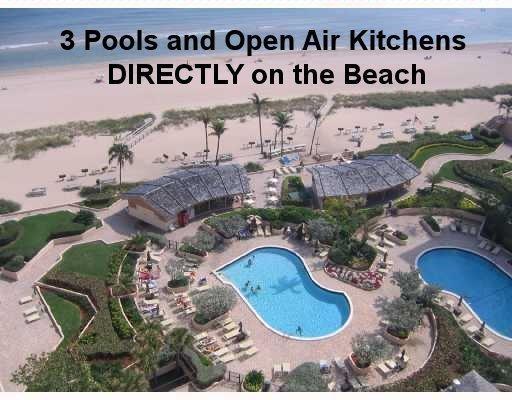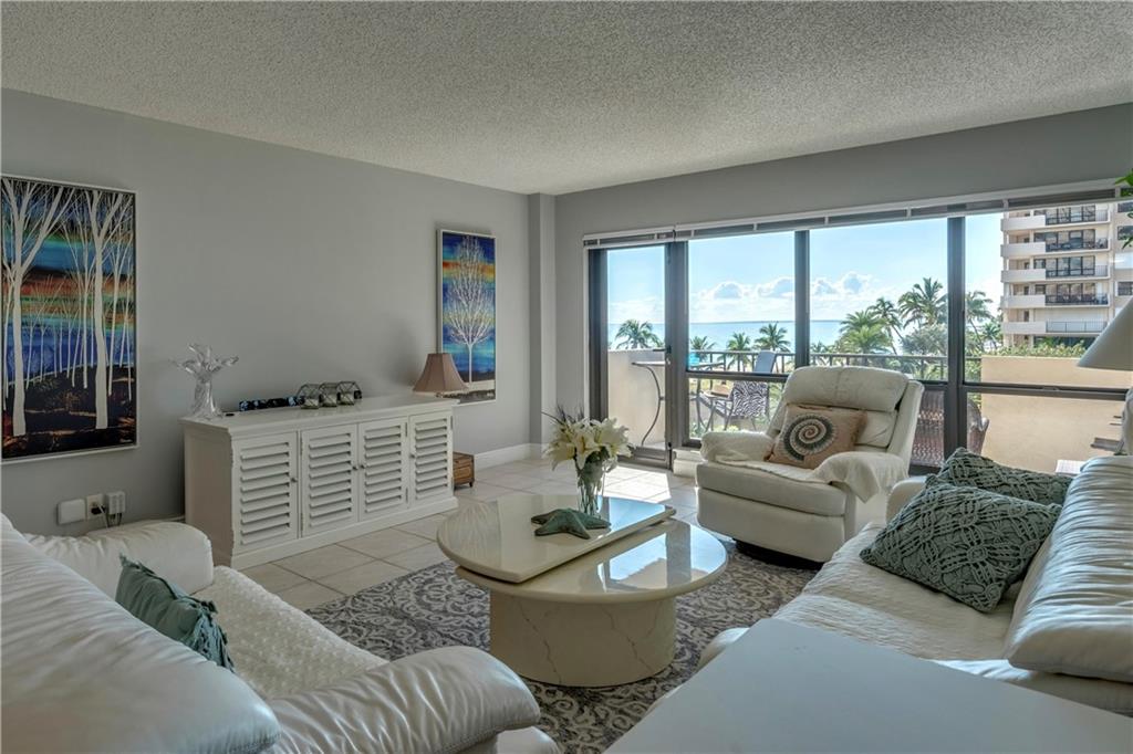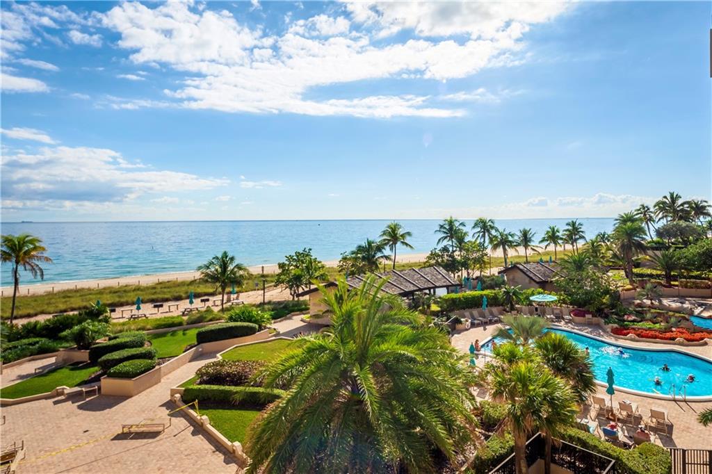 Overlooking beach, lush gardens, cabanas, pool. Updated kitchen and appliances and W and D, baths, tile thru