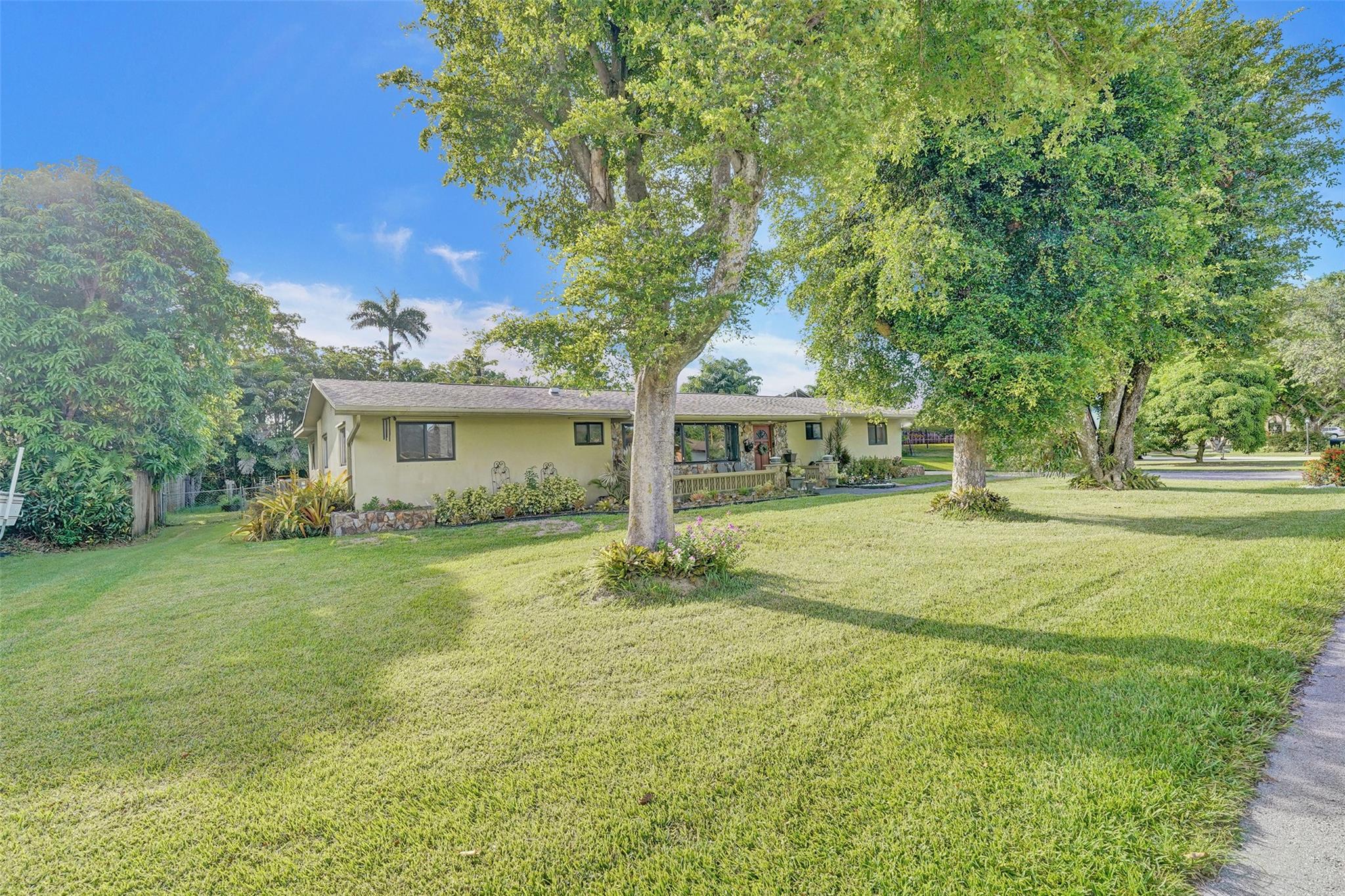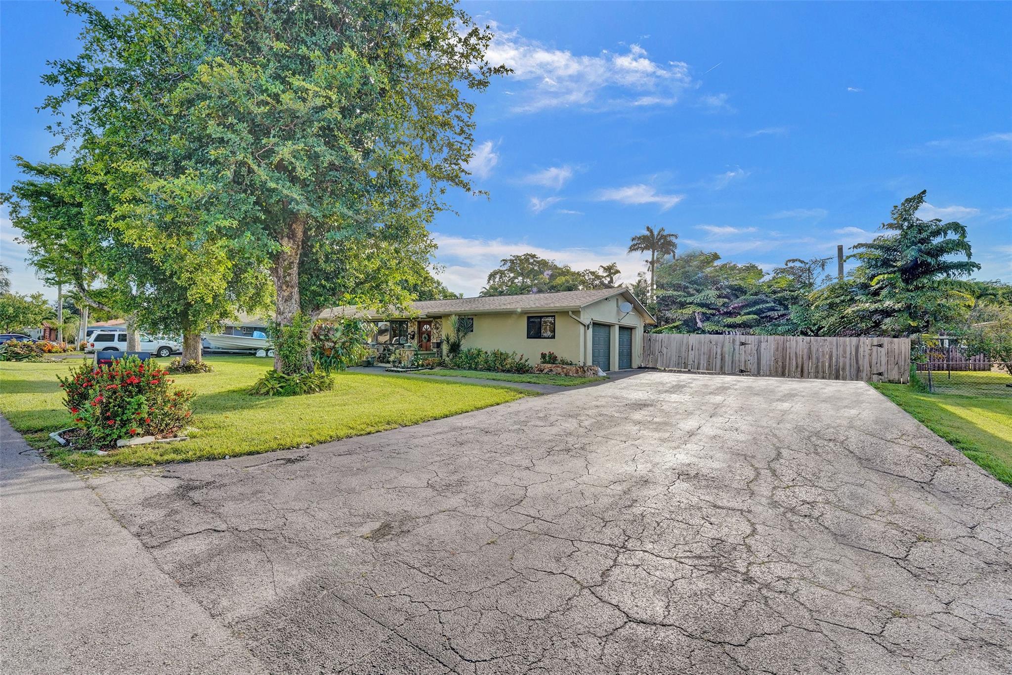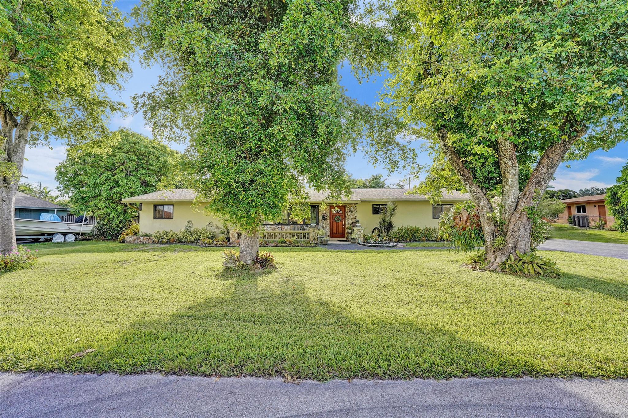 Welcome to this well kept 3 bedroom 2 bathroom home centrally located in Davie. This home sits on a spacious 18,842 sqft lot with room for a pool, has a 2 car garage, a huge driveway that can fit multiple cars, a boat, or RV! This home comes with solar panels, a fenced in yard, generator, and hot tub. Enjoy living on a quiet street with a cul de sac and no HOA that is close to shopping, dining, hospitals, schools and the Hard Rock.