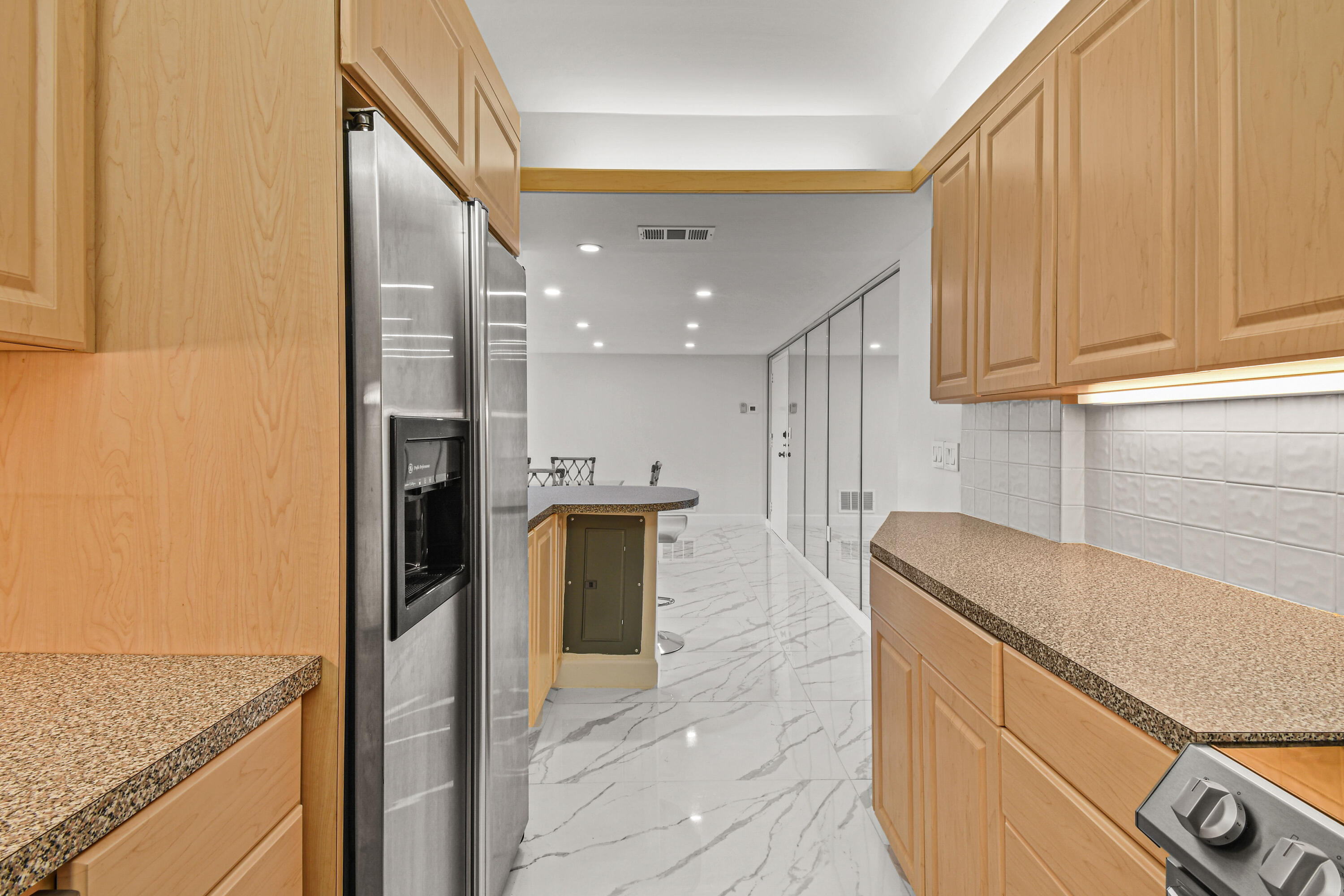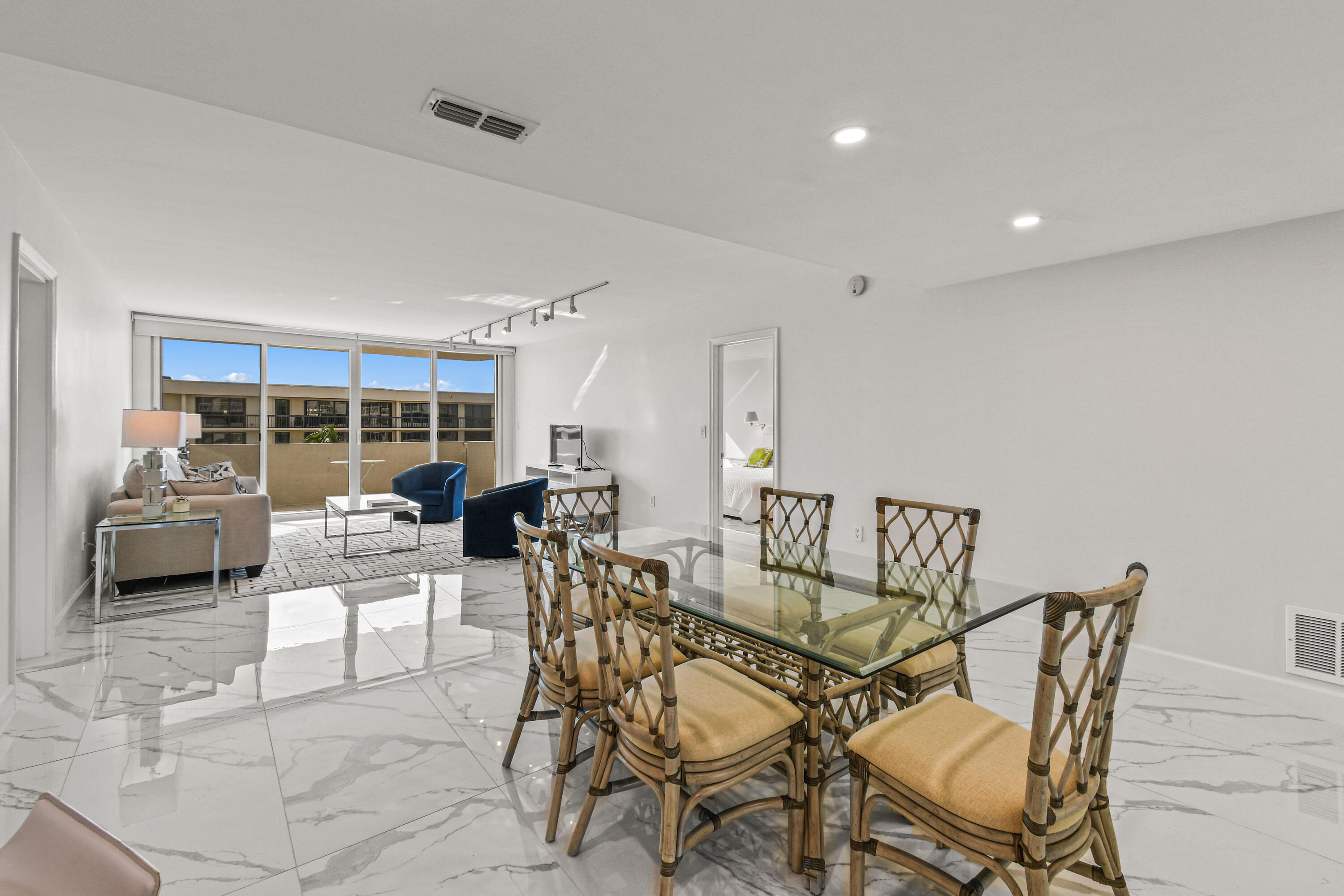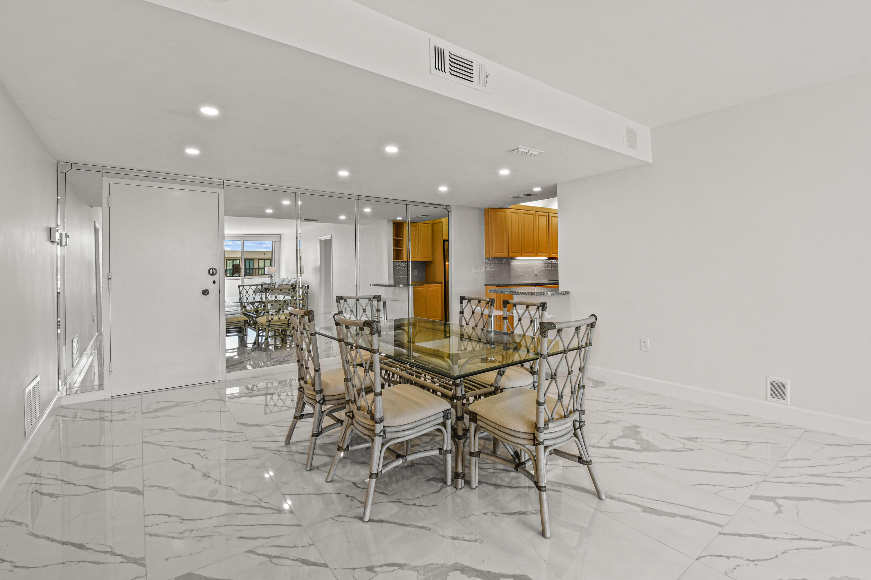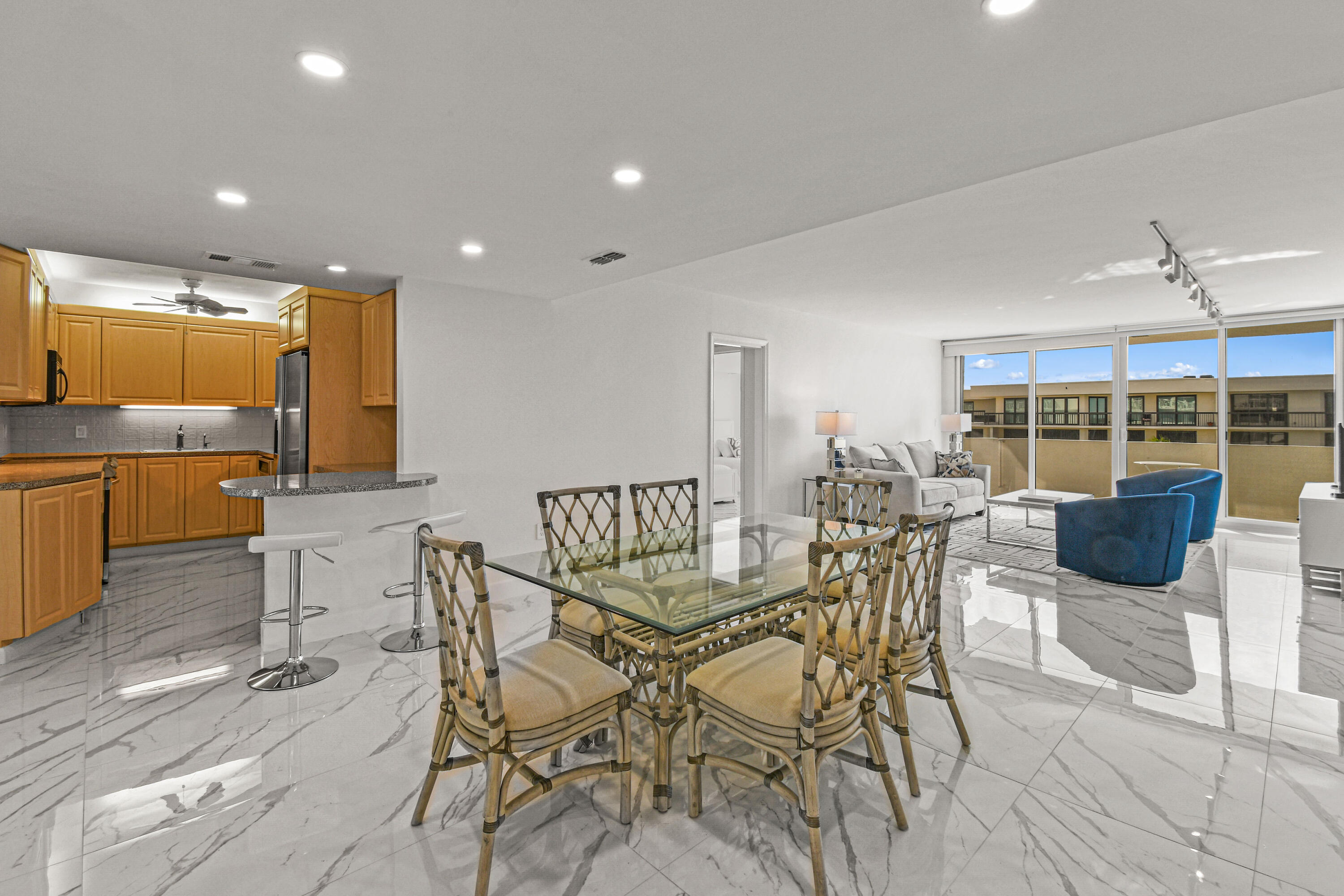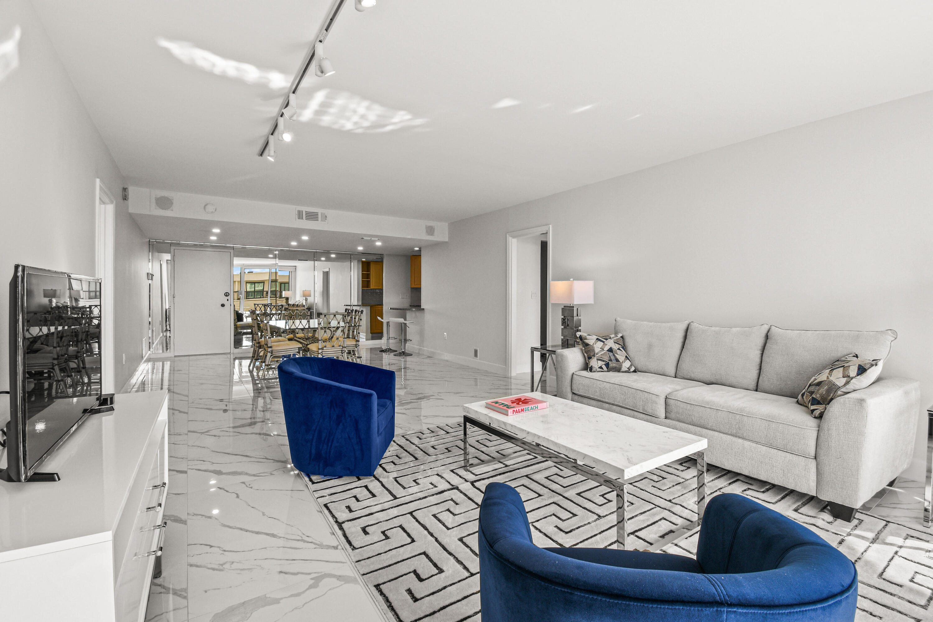 Absolutely beautiful apartment, light and bright luxuriously renovated providing a seamless flow and understated sophistication. Split floor plan, two-bedroom two bath, porcelain flooring throughout. Washer and dryer are in the architect’s plan to be installed. The kitchen is designed with custom cabinetry. The building’s amenities are beautiful with stunning lobby, gym, 24-hour concierge doorman and deeded beach access. Raymond Floyd Par Three Golf Course, Four Seasons Hotel and Spa, Worth Ave Shops and restaurants nearby.PBI Airport just 10 minutes away.