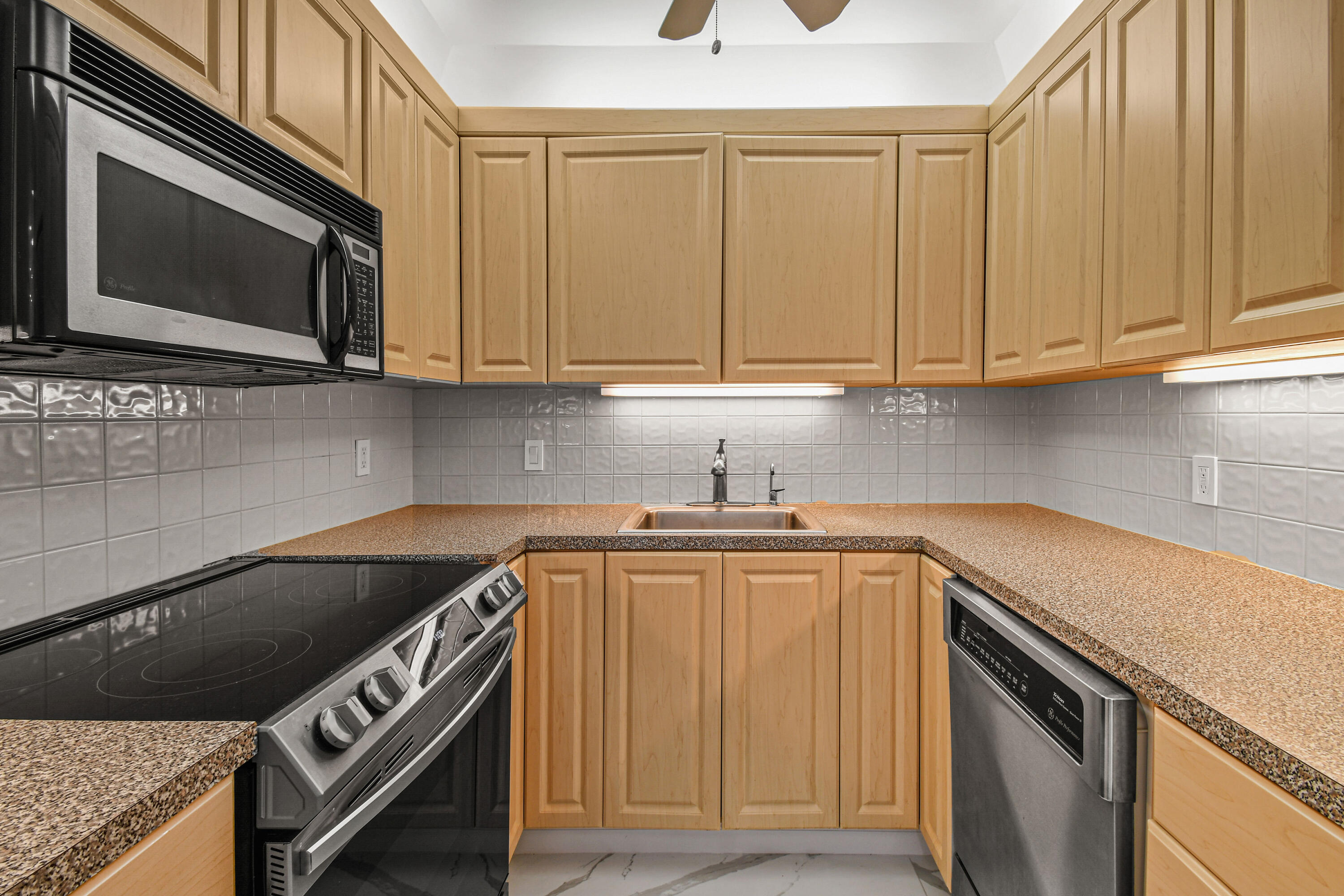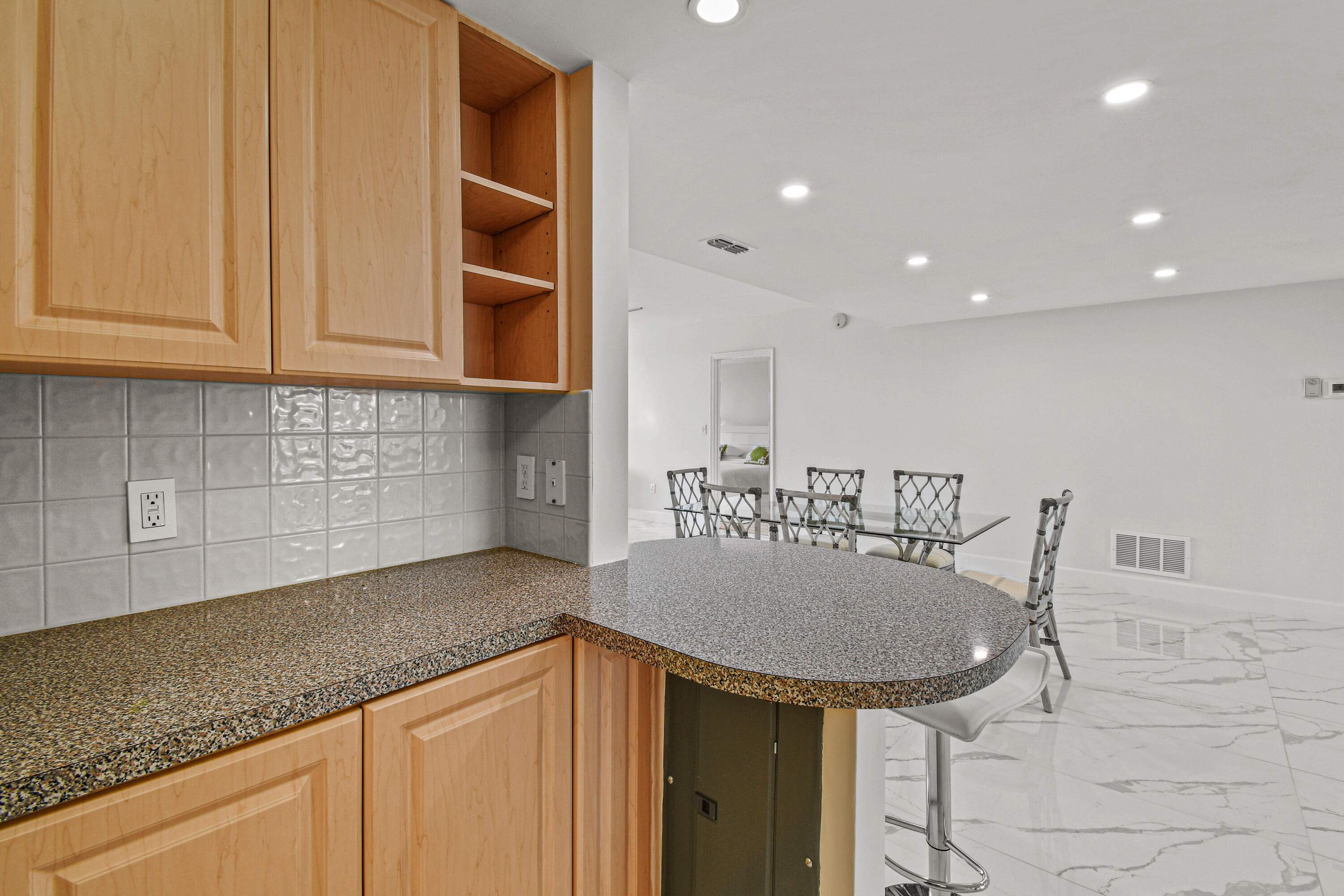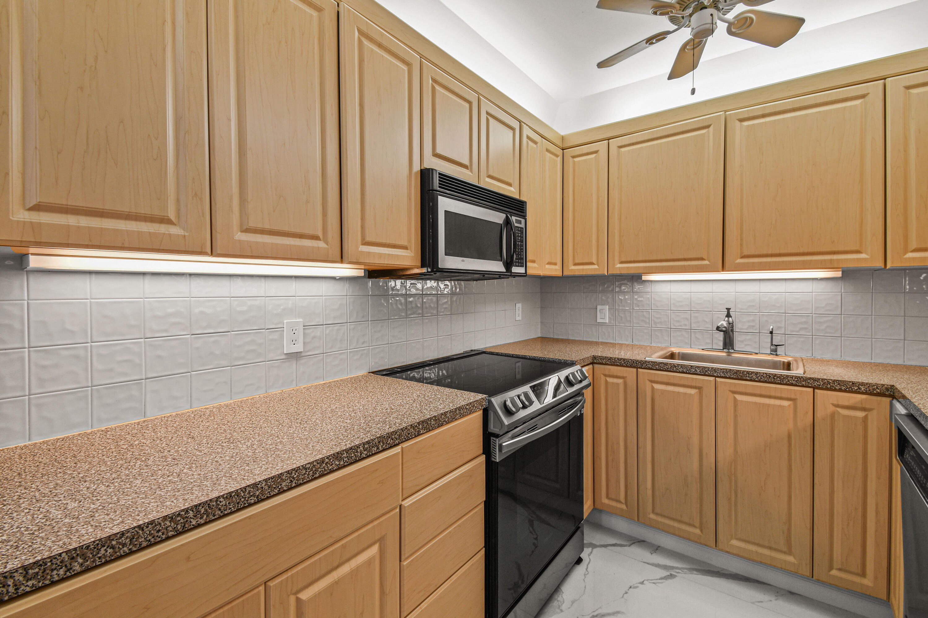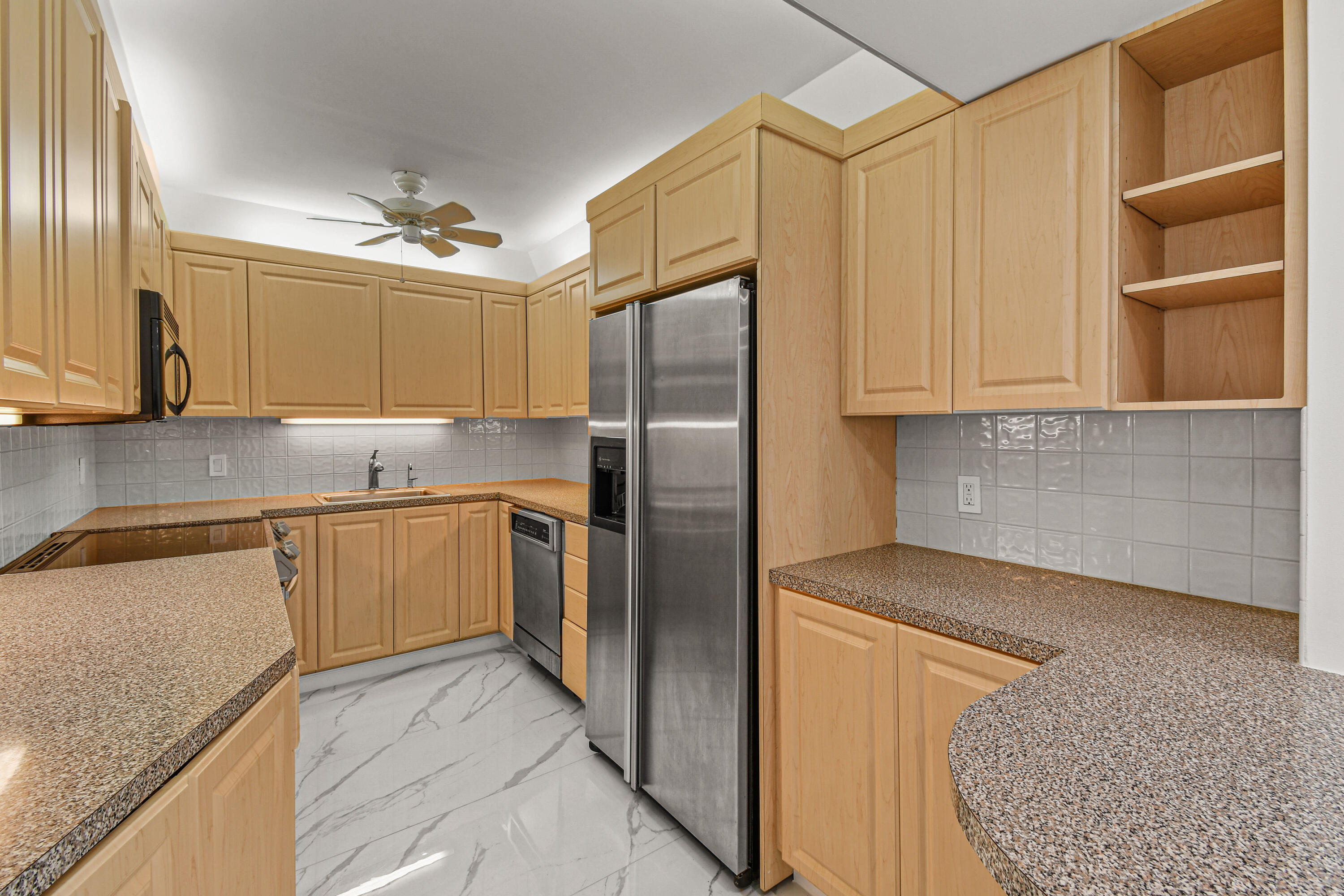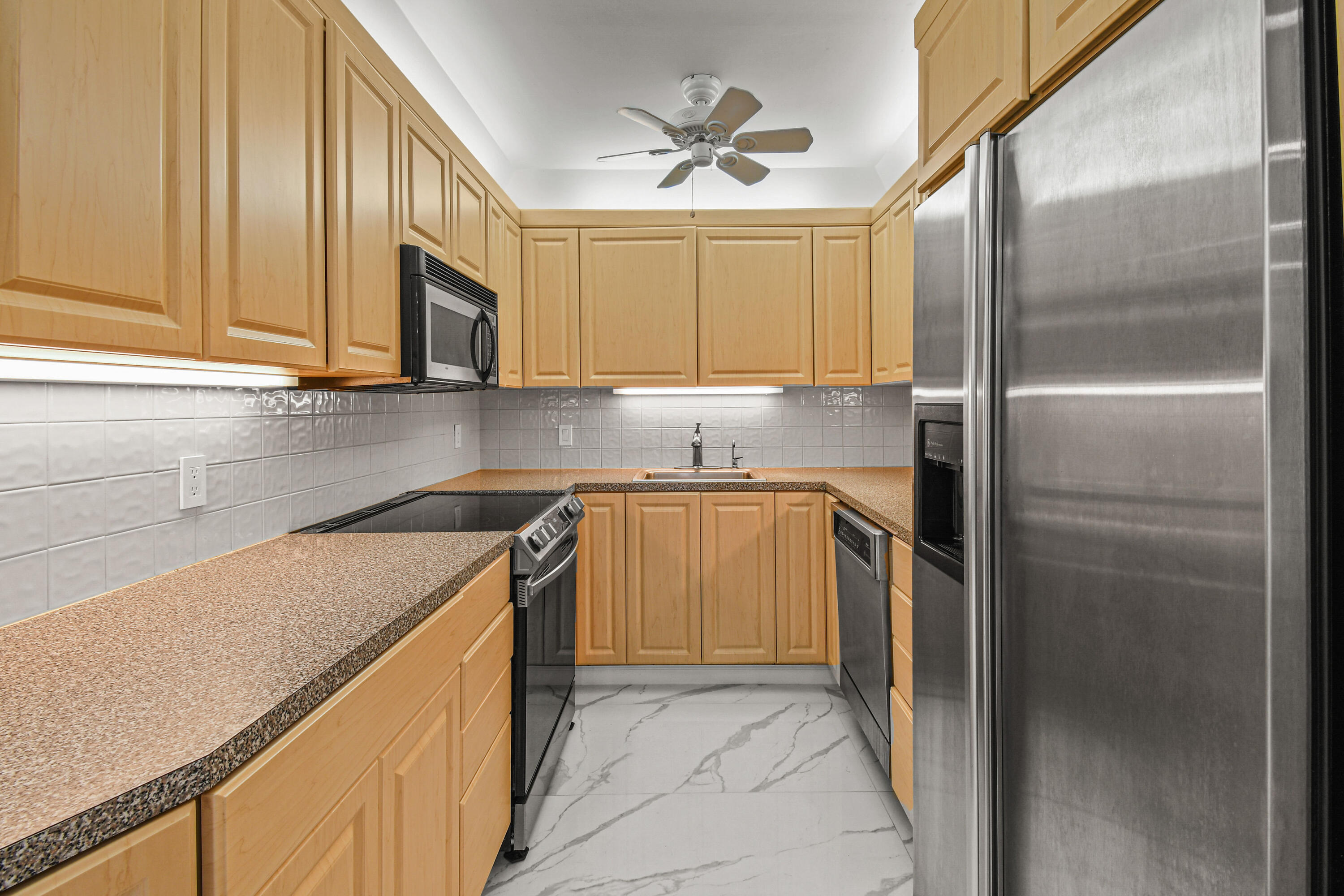 Absolutely beautiful apartment, light and bright luxuriously renovated providing a seamless flow and understated sophistication. Split floor plan, two-bedroom two bath, porcelain flooring throughout. Washer and dryer are in the architect’s plan to be installed. The kitchen is designed with custom cabinetry. The building’s amenities are beautiful with stunning lobby, gym, 24-hour concierge doorman and deeded beach access. Raymond Floyd Par Three Golf Course, Four Seasons Hotel and Spa, Worth Ave Shops and restaurants nearby.PBI Airport just 10 minutes away.
