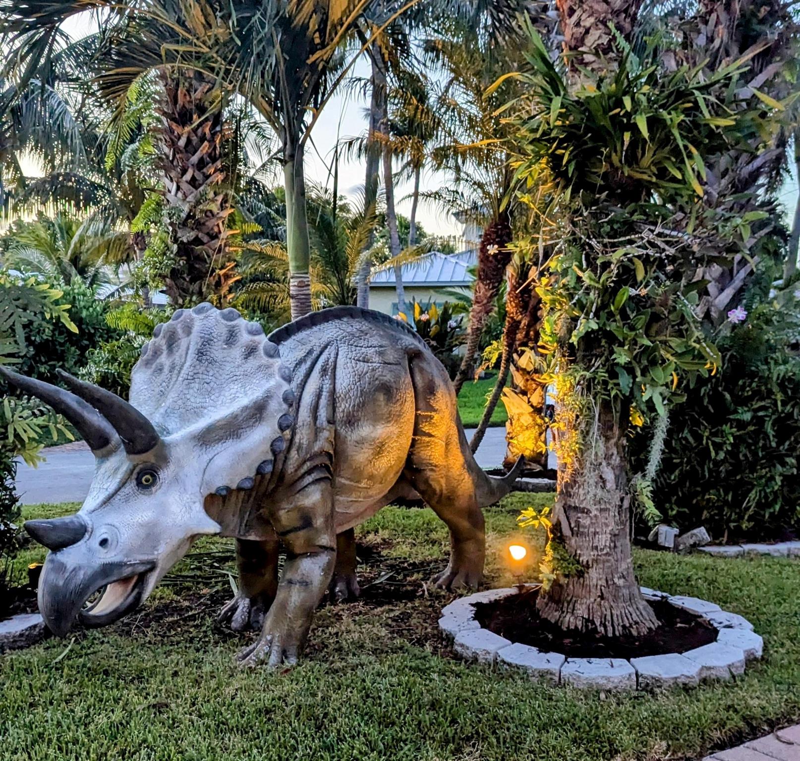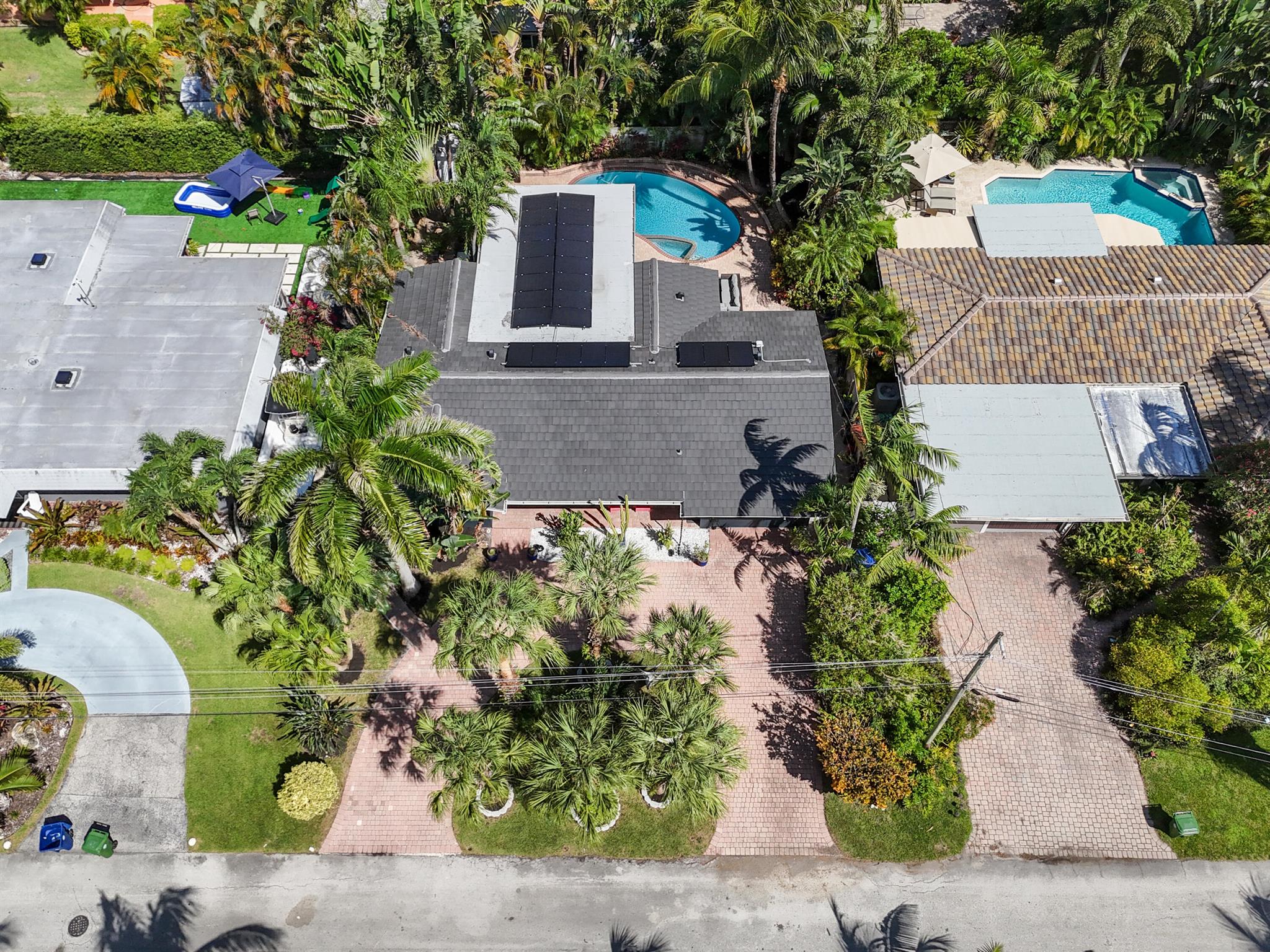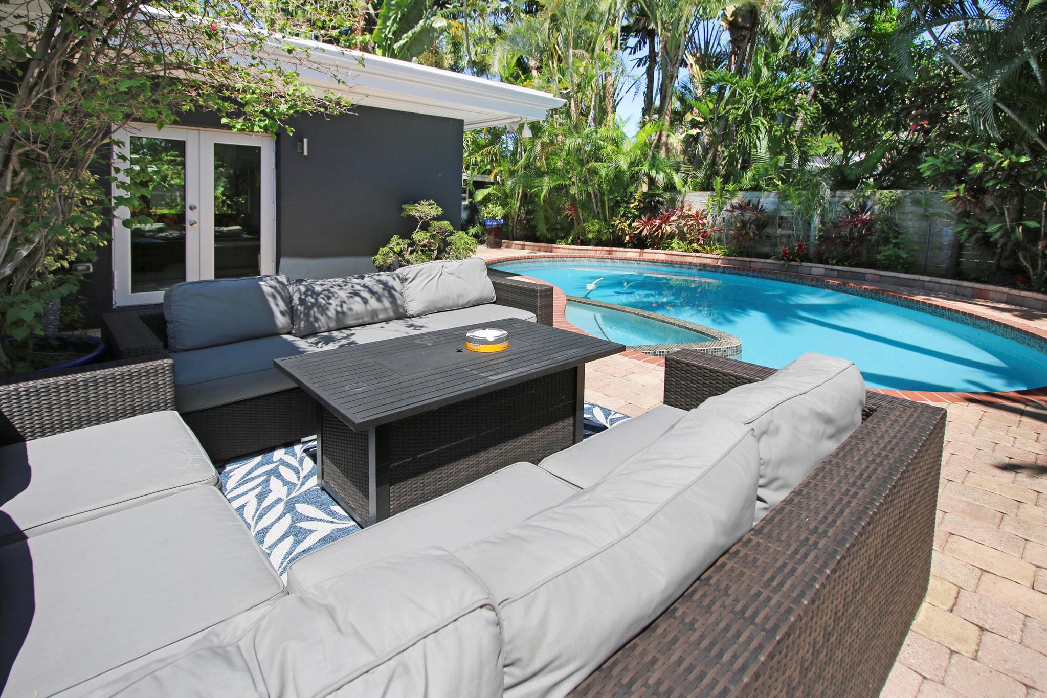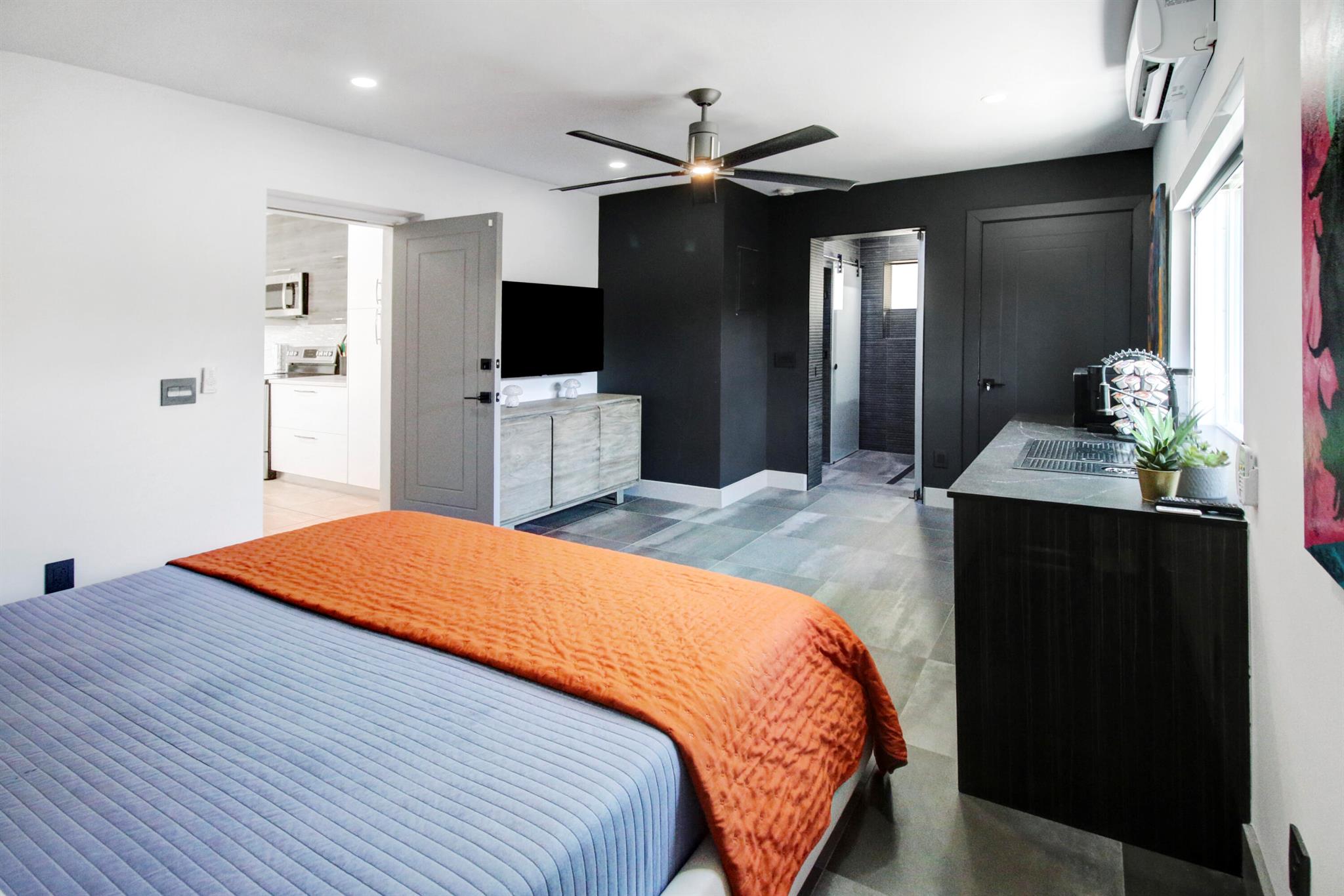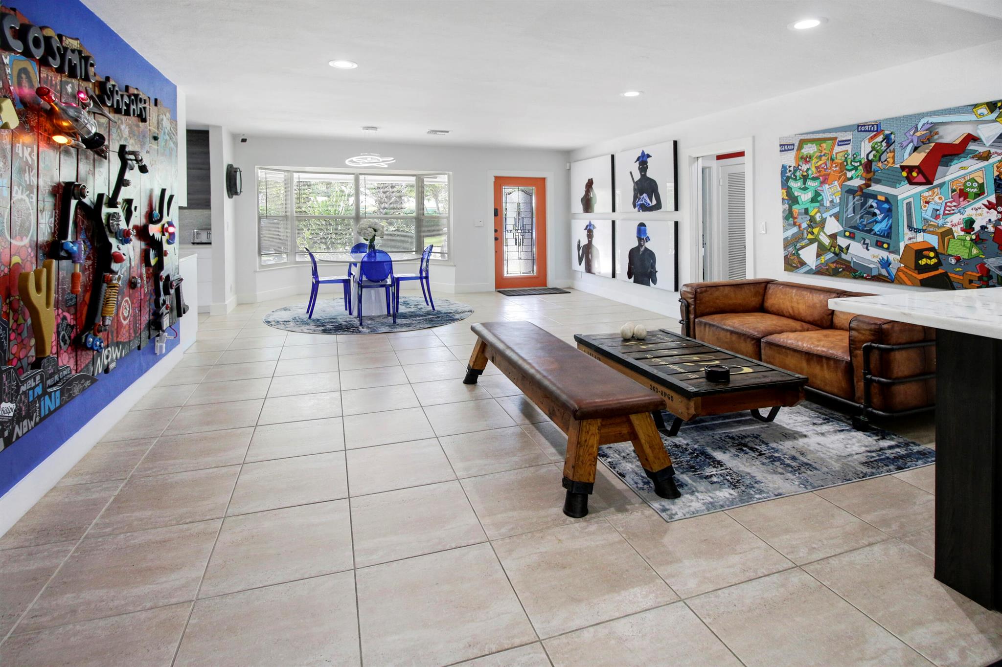 Trixie the Triceratops welcomes you to this one-of-a-kind 4 bd, 3 ba home in sought-after Coral Point. Featured in ”In Plain Sight” art guide. Full bar with wine fridge compliments a gorgeously remodeled custom kitchen w/quartz countertops. Home features a 4th br that serves as a 2nd primary suite or guest suite and has lockout feature w/private entrances for use as exempt vacation rental (if owner lives in home as primary residence) Resort style pool/jacuzzi anchors a back yard oasis. New Roof (08/23) has solar that provides net zero grid usage unless pool heater used (Wind Mitigation Report 2024) New Pool systems, AC, impact windows and patio doors replaced in 2019. Stylish touches throughout and remodeled bathrooms make this home an absolute must-see. Professional photos on 7/17/24