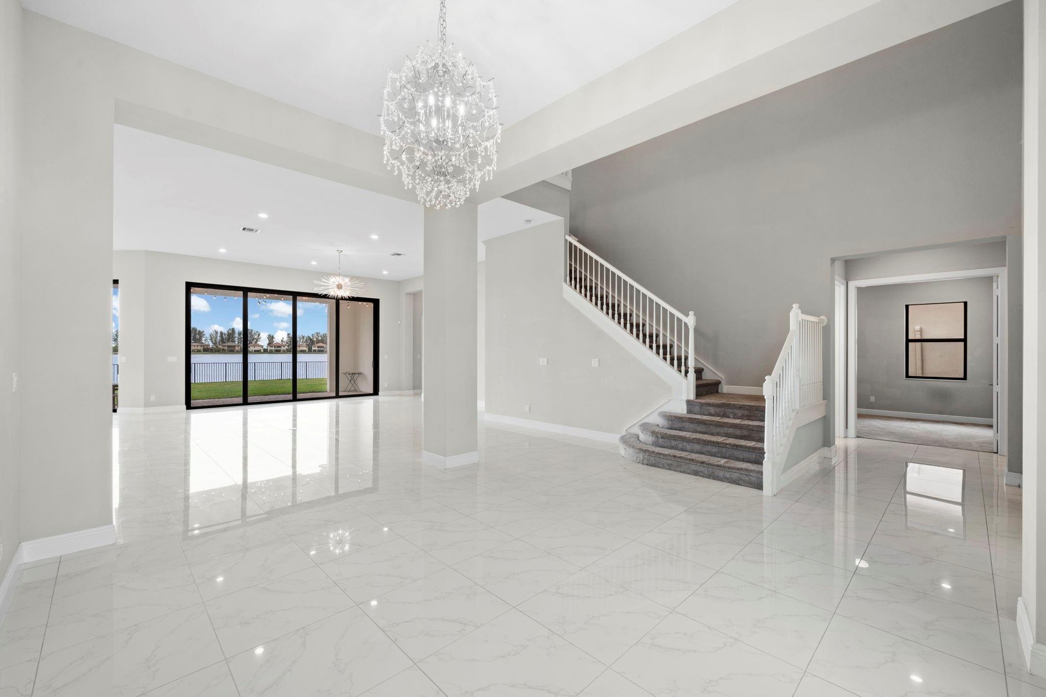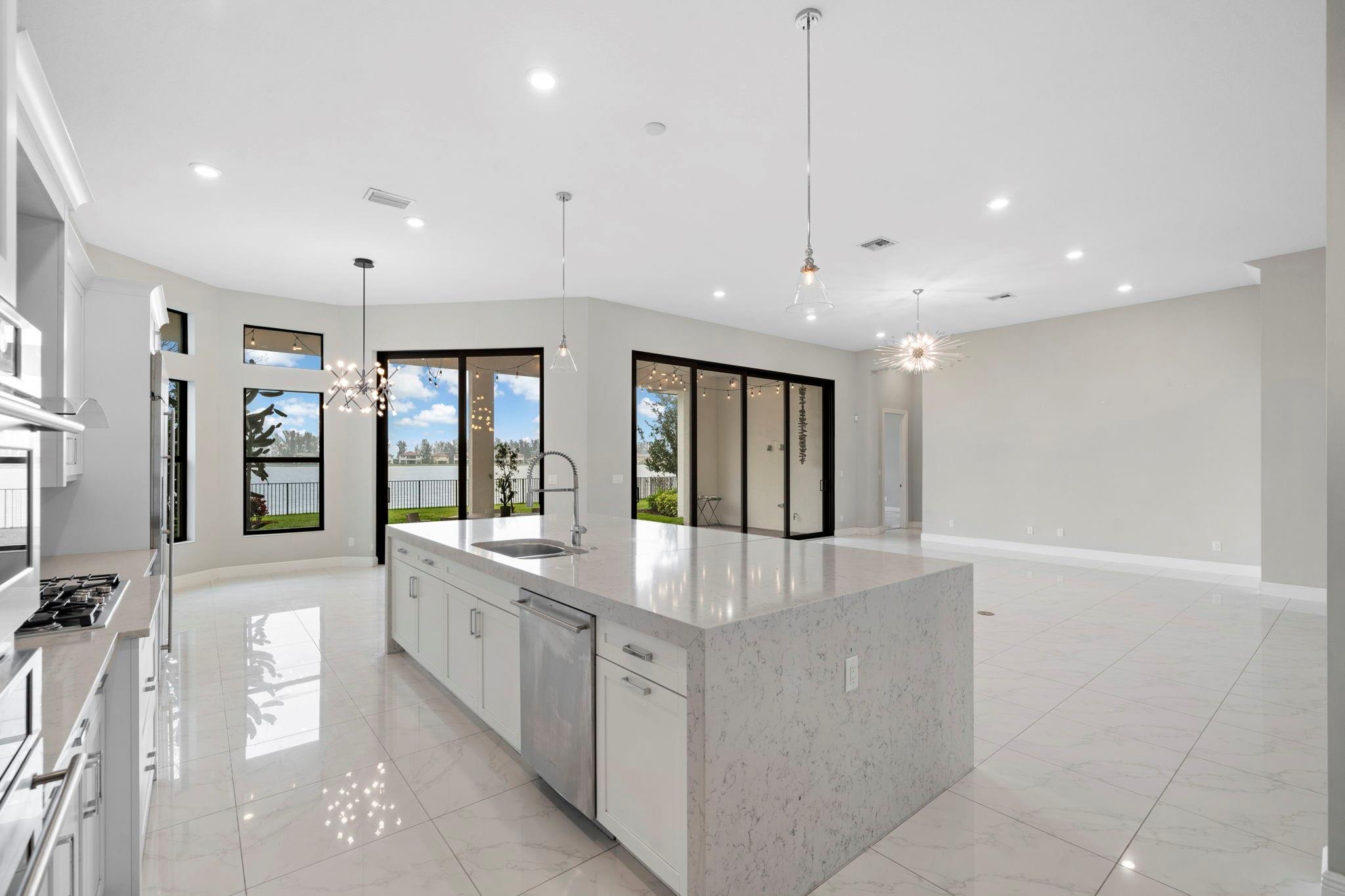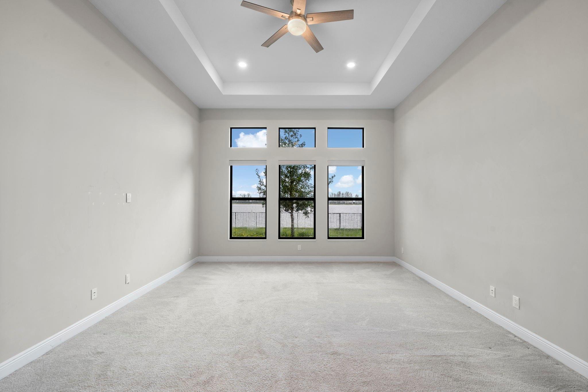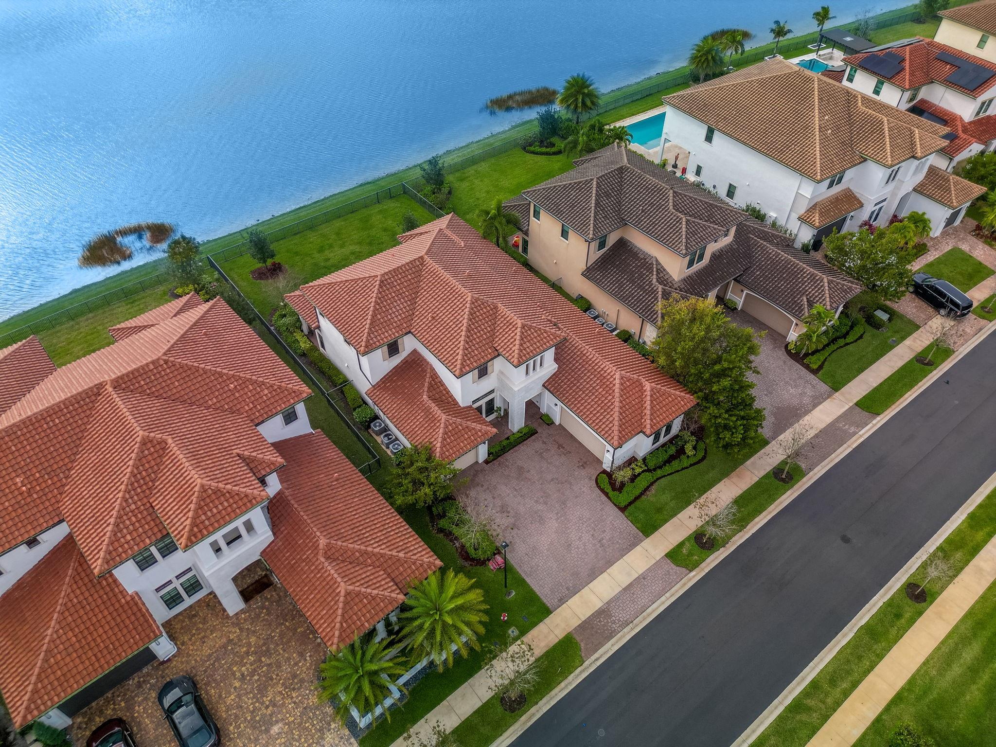 This luxe two-story 4 bed, 4 bath, plus one study, 3 car garage home showcases impressive WATER VIEWS! Perfectly situated on a prime lot for stunning views of the sunset and the 178-acre lake. Spectacular foyer with volume ceilings and free-flowing sight lines, the heart of the house comprises an open dining room, great room, kitchen, and breakfast area, all overlooking the expansive covered terrace and the lake. As inviting as it is elegant, the first-floor master suite boasts two large walk-in closets and an en-suite designed for the most discerning tastes including a free-standing tub, oversized glass-enclosed shower, and his and her sinks on separate vanities. Also on the first floor are the study and the laundry room. Upstairs, a loft is surrounded by three bedrooms.