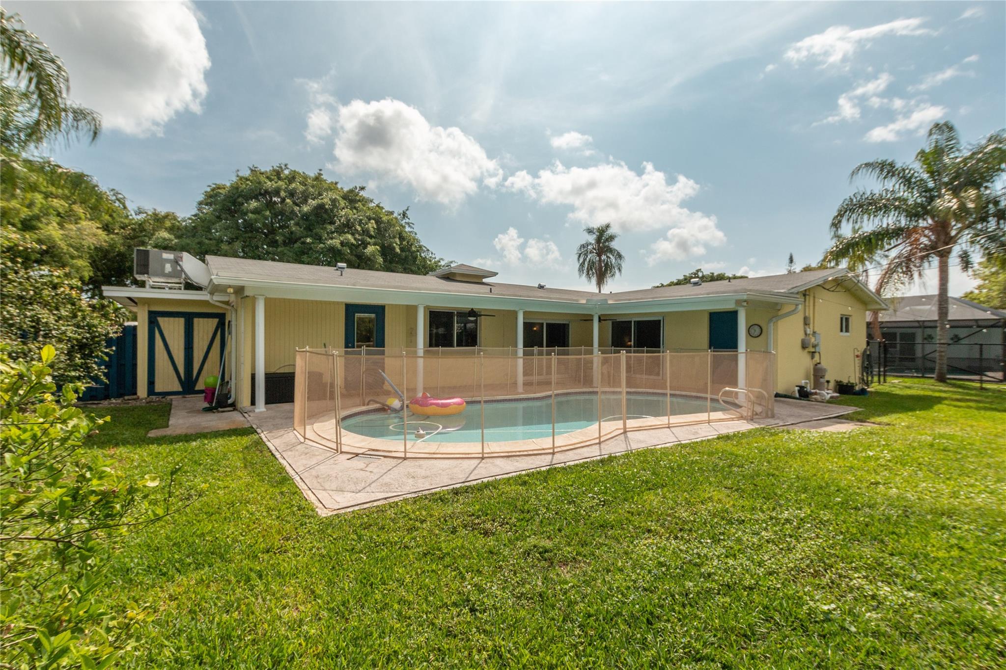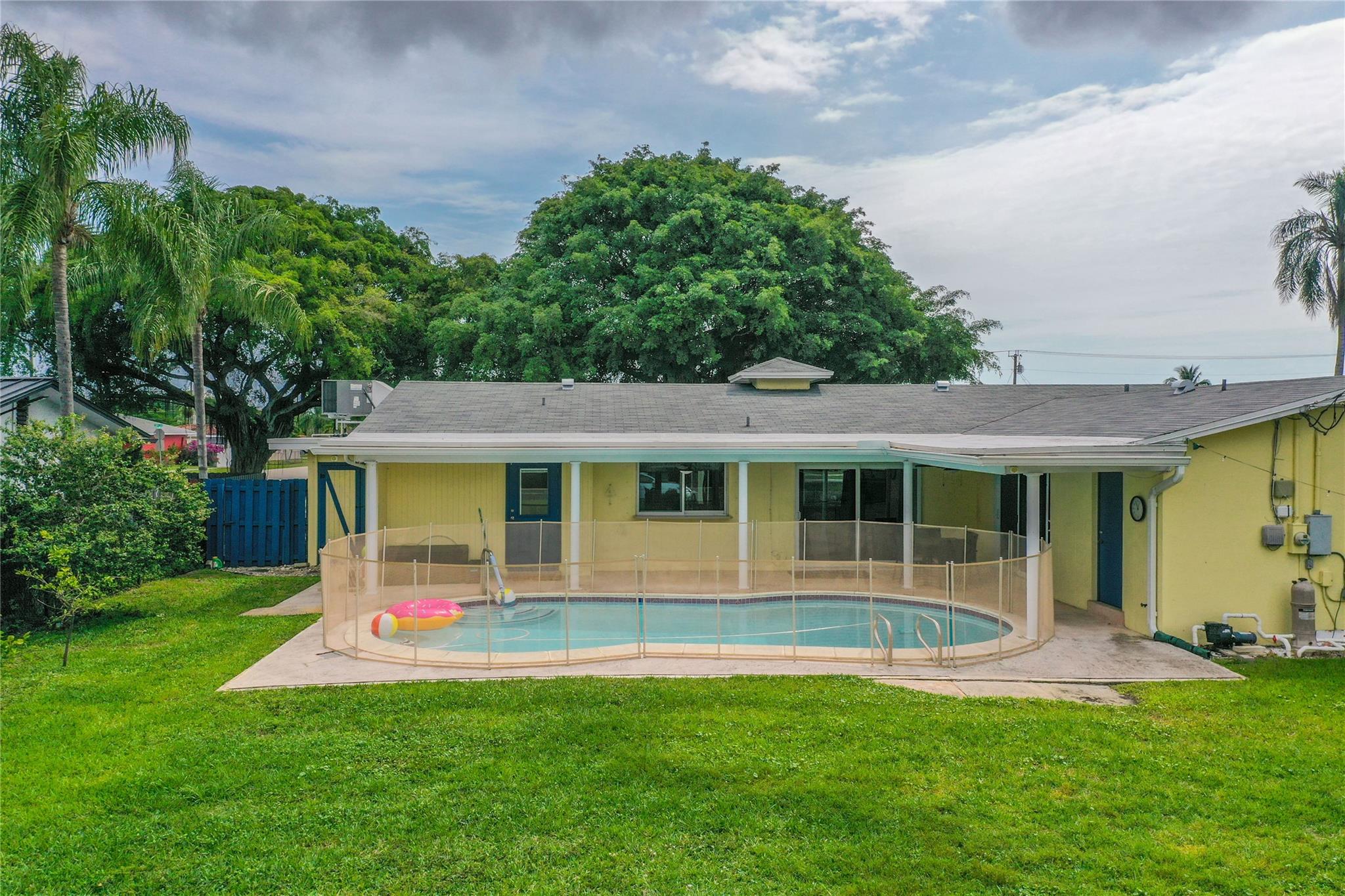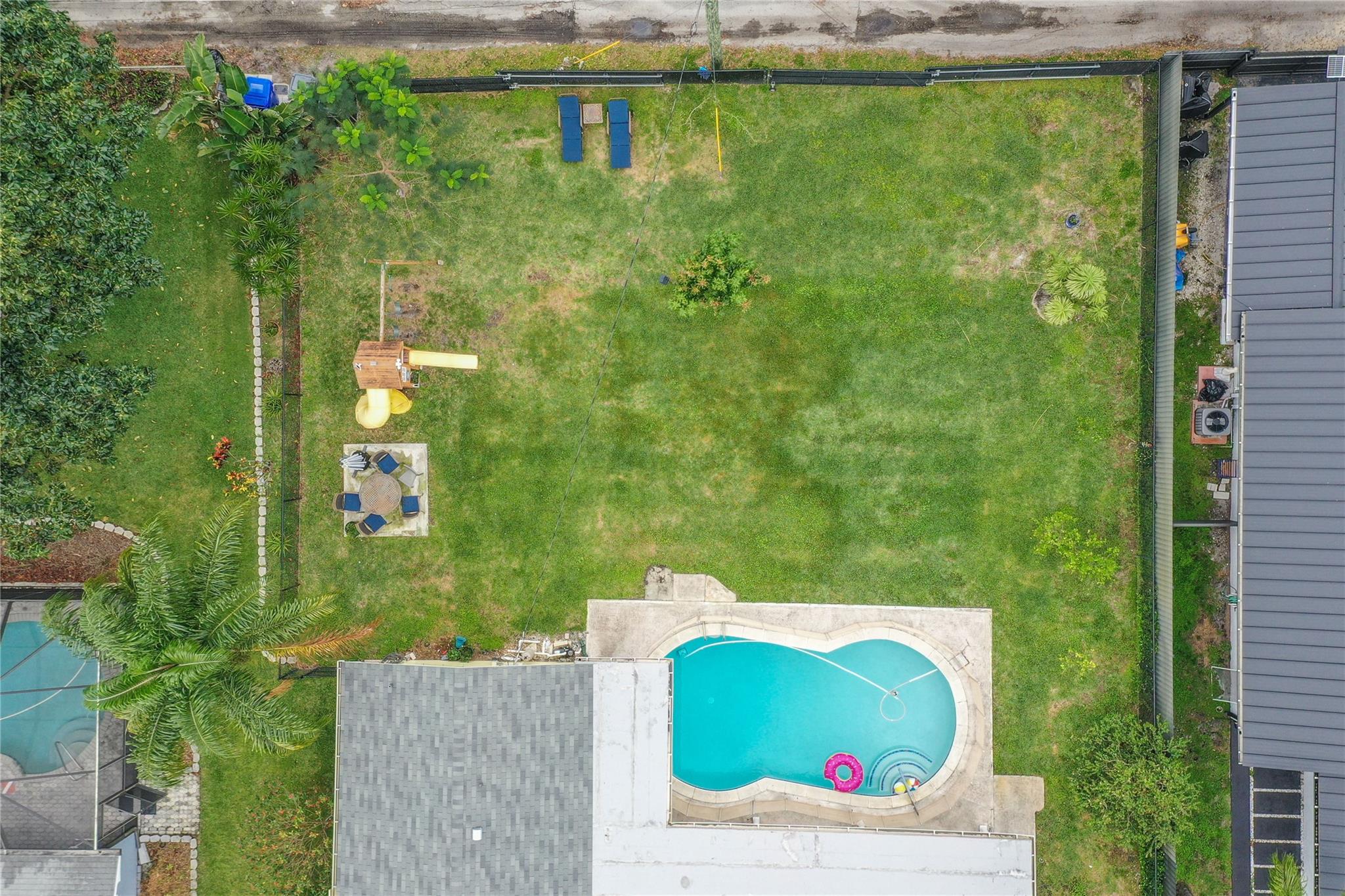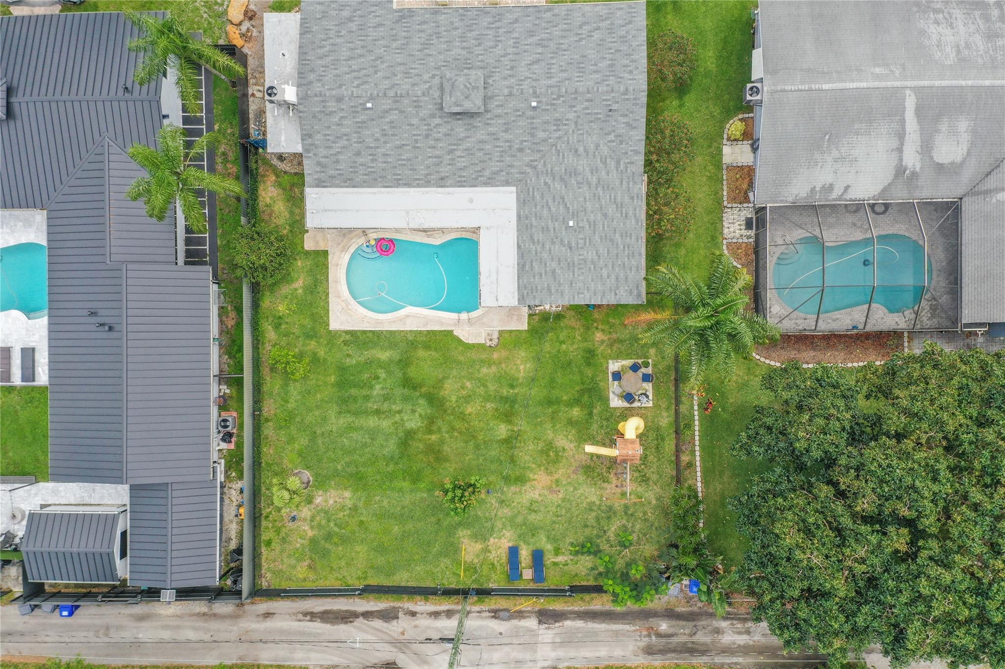 Stunning 3/3 home that sits on a massive 10,600 square foot lot! Property features luxury water resistant wood based laminate throughout the home, Totally renovated bathrooms, Impact windows and doors, New Kitchen with Stainless Steel Appliances. New Roof installed 2022, Newer AC unit 2020. New Circular Driveway 2022. Beautiful Patio area overlooking large yard and POOL! 1 Car Garage! The 3rd bathroom in the garage, if in law suite is desired, it would be an easy conversion to 1/1 which would make the house a 4/3. (Converting the garage to 4th bedroom)