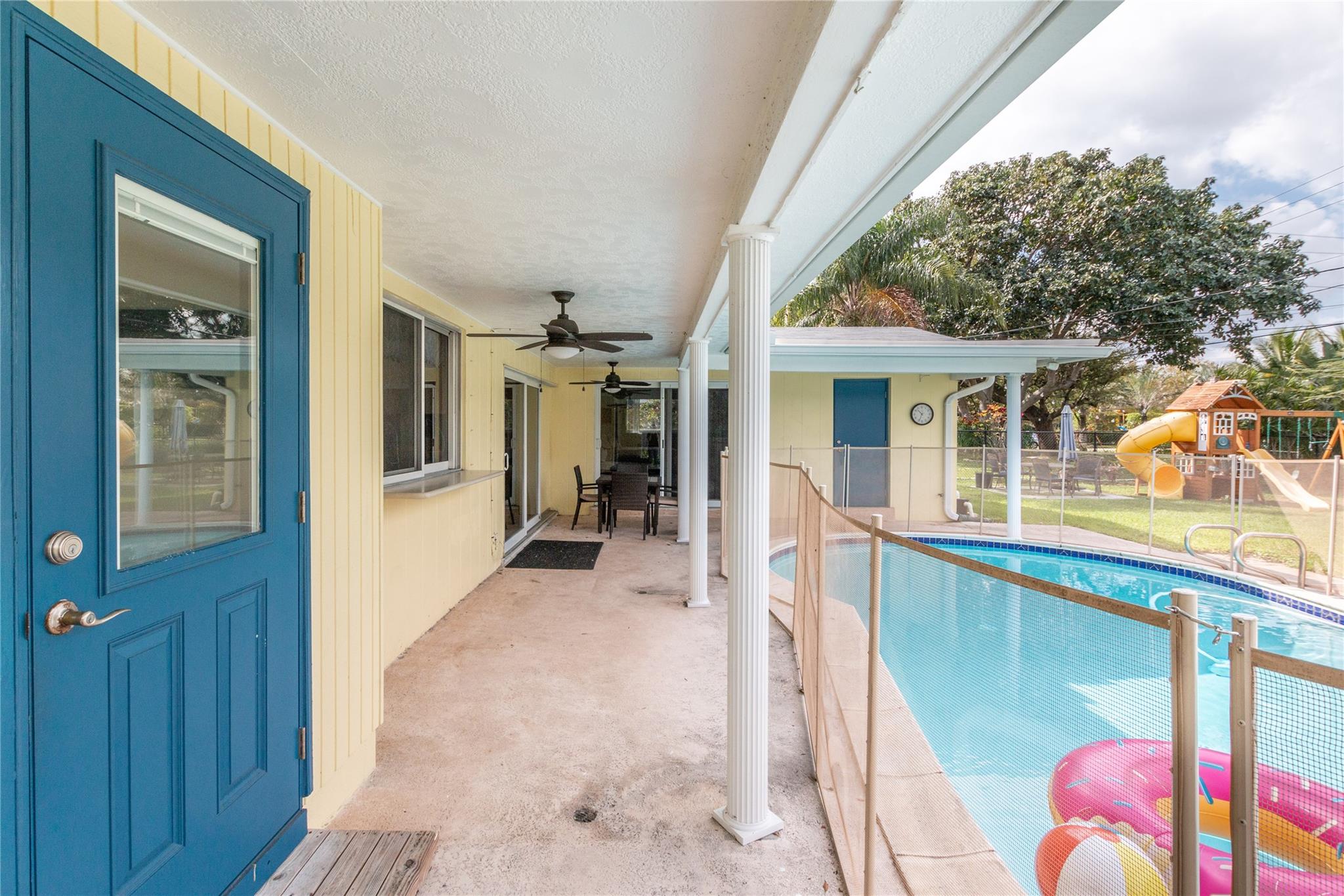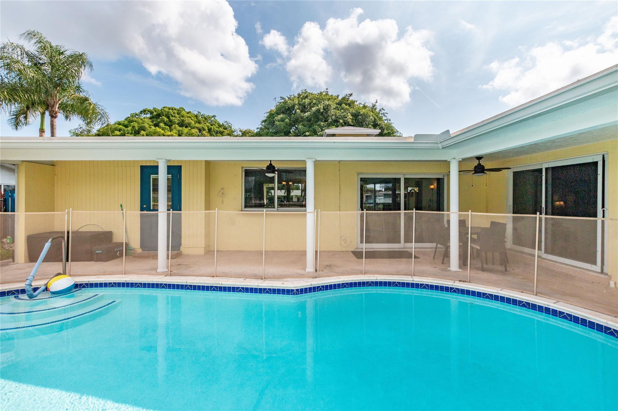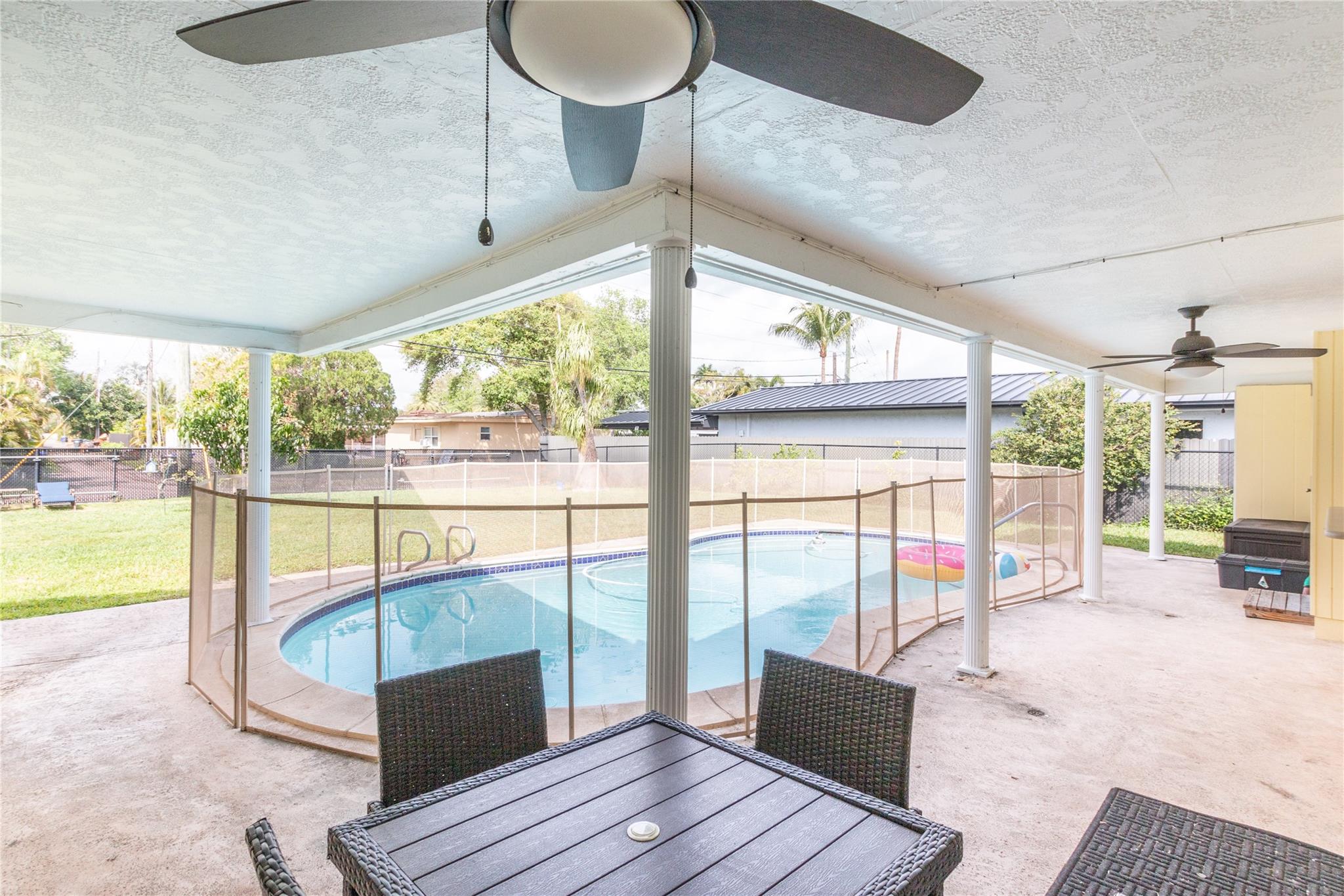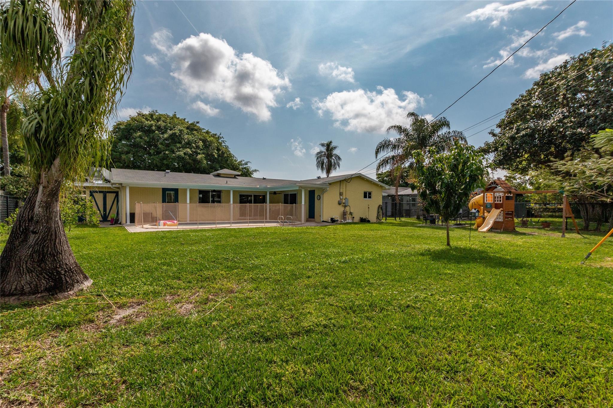 Stunning 3/3 home that sits on a massive 10,600 square foot lot! Property features luxury water resistant wood based laminate throughout the home, Totally renovated bathrooms, Impact windows and doors, New Kitchen with Stainless Steel Appliances. New Roof installed 2022, Newer AC unit 2020. New Circular Driveway 2022. Beautiful Patio area overlooking large yard and POOL! 1 Car Garage! The 3rd bathroom in the garage, if in law suite is desired, it would be an easy conversion to 1/1 which would make the house a 4/3. (Converting the garage to 4th bedroom)