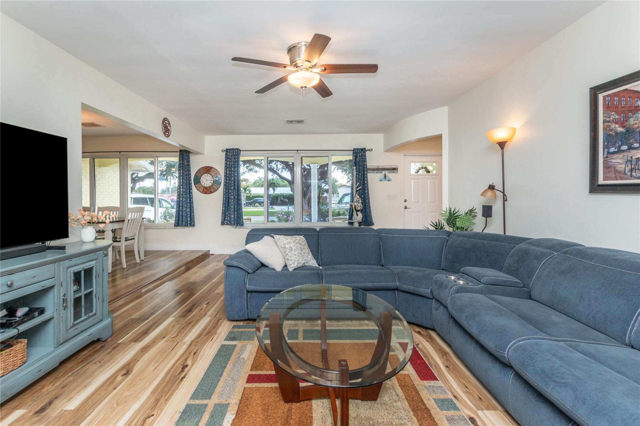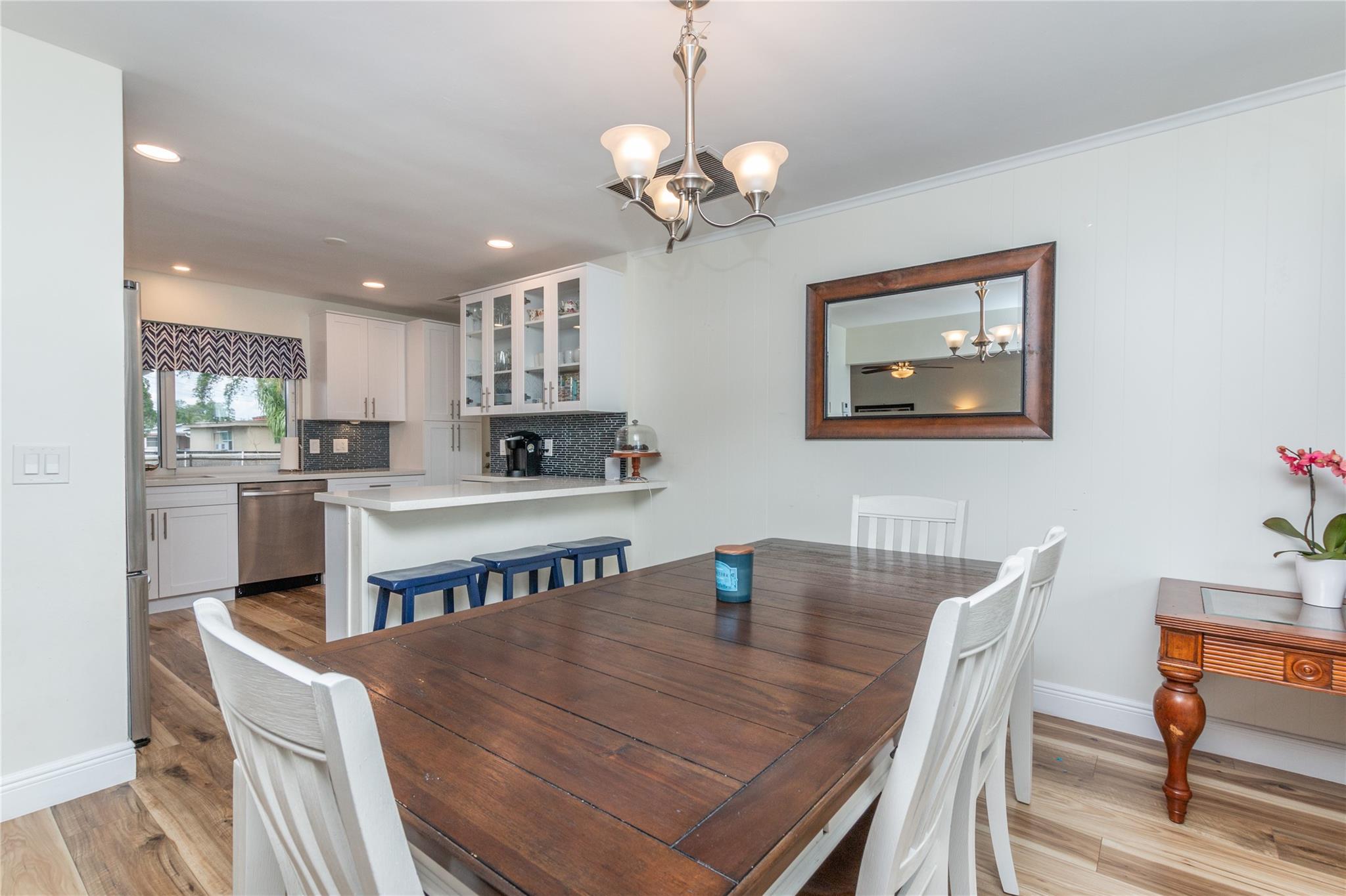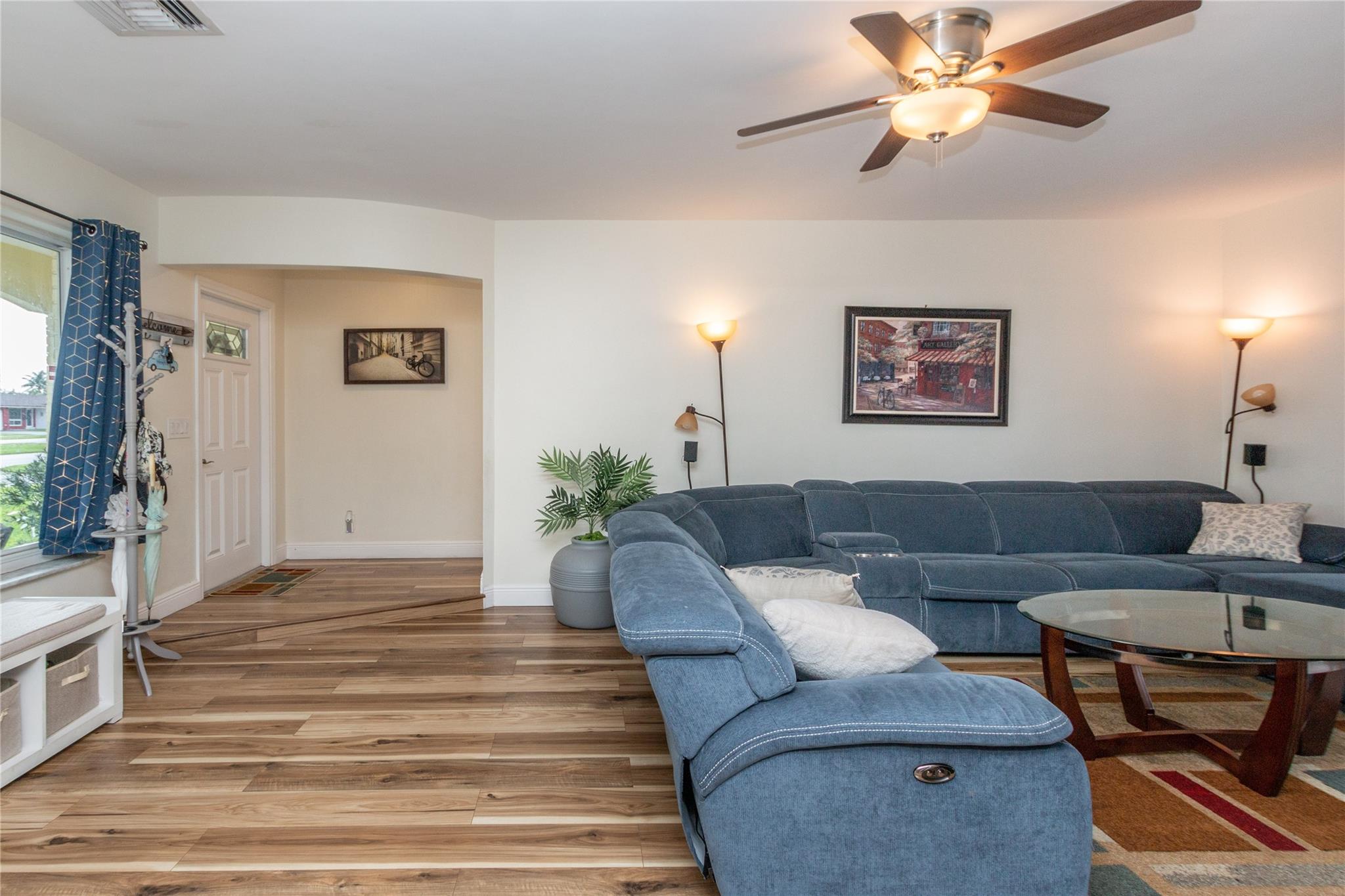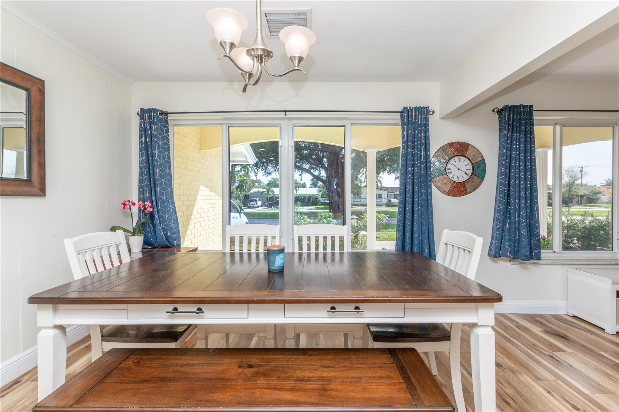 Stunning 3/3 home that sits on a massive 10,600 square foot lot! Property features luxury water resistant wood based laminate throughout the home, Totally renovated bathrooms, Impact windows and doors, New Kitchen with Stainless Steel Appliances. New Roof installed 2022, Newer AC unit 2020. New Circular Driveway 2022. Beautiful Patio area overlooking large yard and POOL! 1 Car Garage! The 3rd bathroom in the garage, if in law suite is desired, it would be an easy conversion to 1/1 which would make the house a 4/3. (Converting the garage to 4th bedroom)