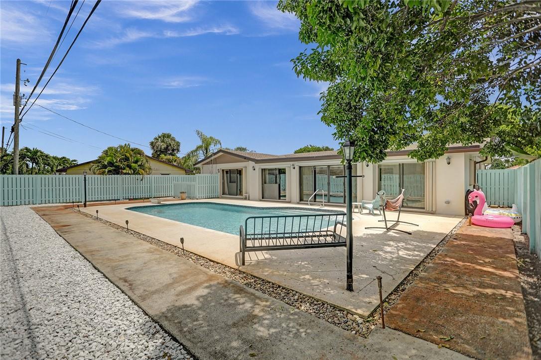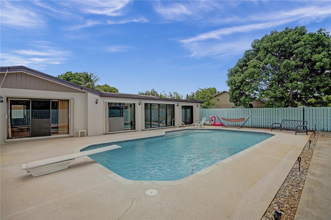 Back on the market & priced to sell! This charming three-bedroom, two-bathroom residence with a one-car garage is located in a safe and welcoming neighborhood. As you step through the front door, you’ll be greeted by an inviting living space that seamlessly connects to the well-appointed kitchen. The kitchen features modern appliances, gas stove, ample counter space, and a layout that makes meal preparation a breeze. Go for a swim in the large 28,000-gallon pool. Perfect for entertaining or simply relaxing under the Florida sun, the pool is complemented by a diving board, adding an extra element of fun to your outdoor space. Enjoy the convenience of being close to schools, shopping centers, and recreational facilities. No HOA! Tour the property today!