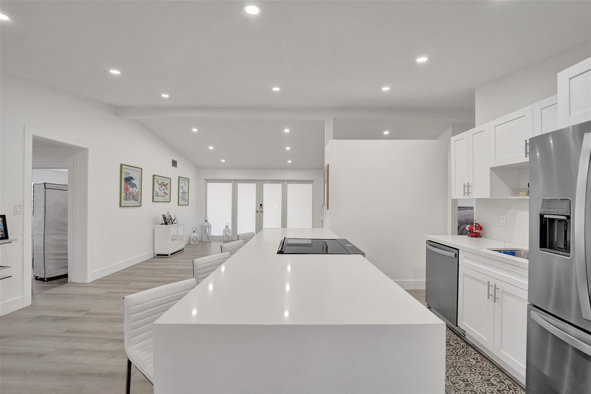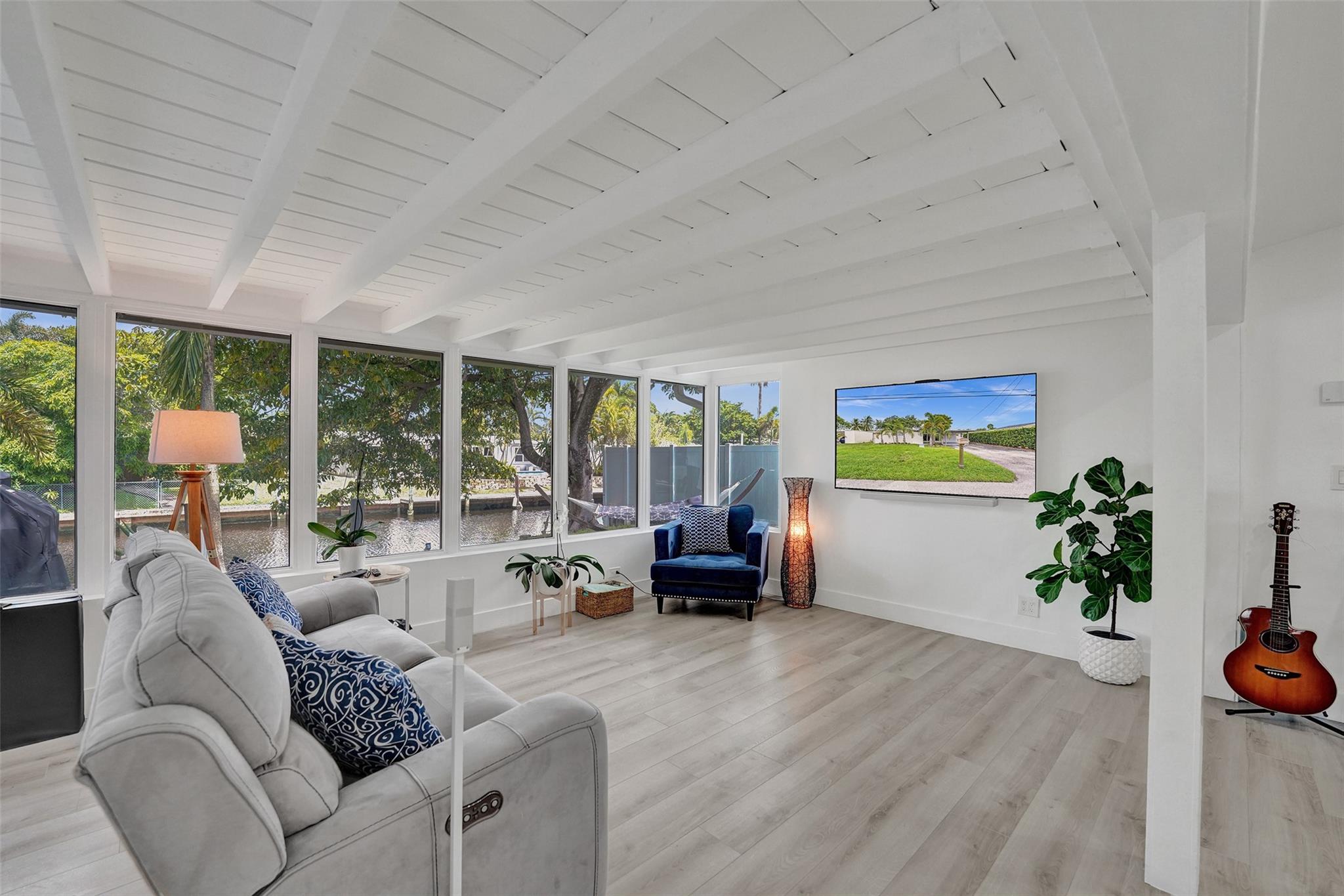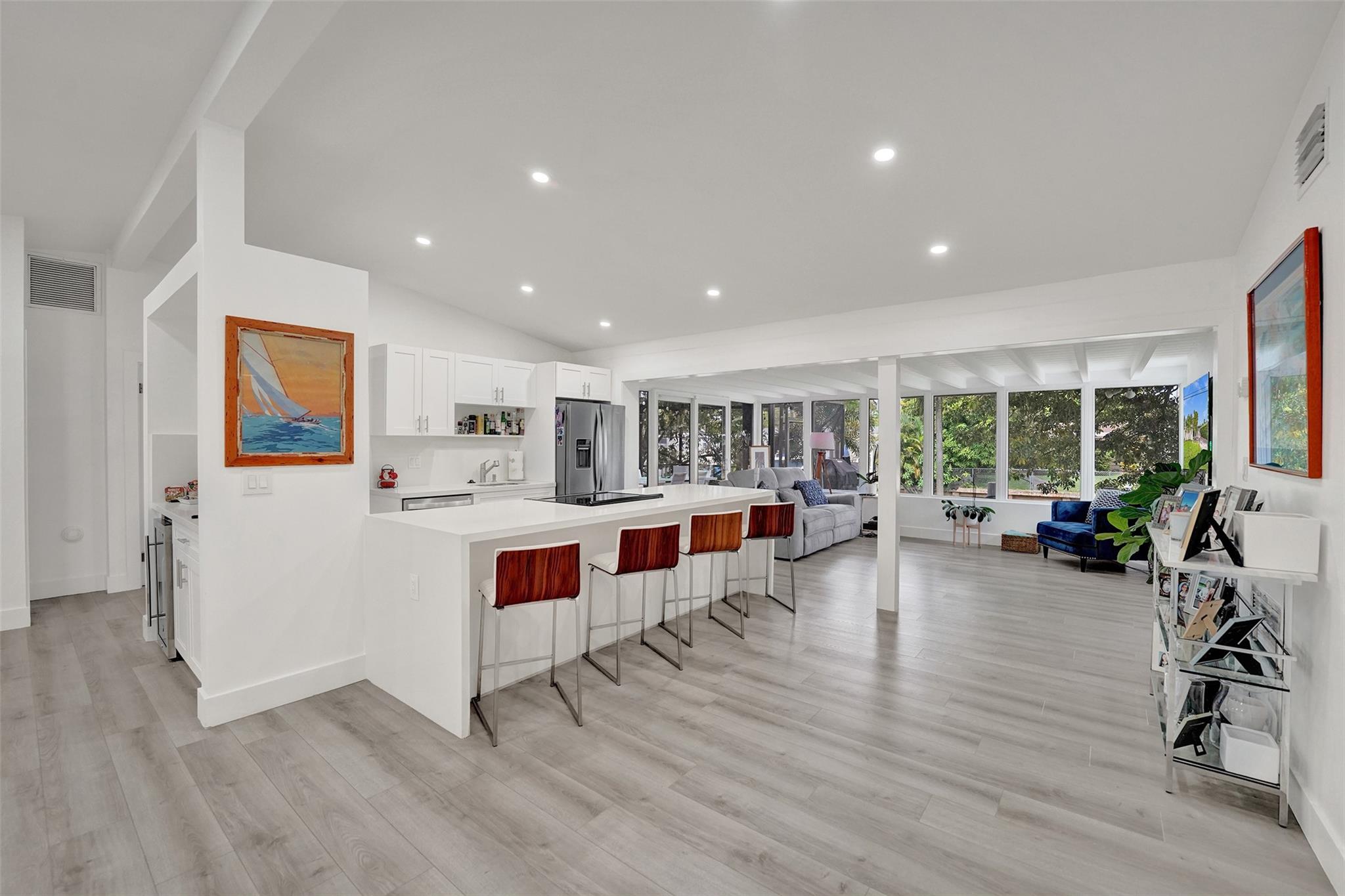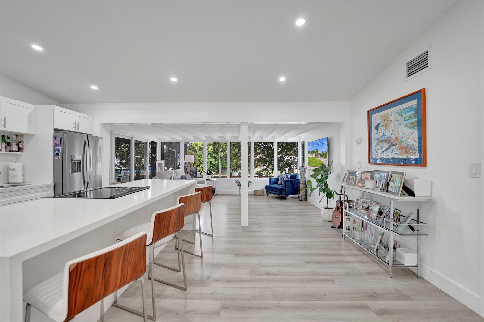 Stunning FULLY updated WATERFRONT, split floor plan home in Fort Lauderdale! 60ft waterfront sea wall, 31ft private dock! No HOA fee! Bright open floor plan, vaulted ceilings, recessed lighting, large impact sliding doors! Bonus custom bar. Breathtaking kitchen with huge island, quartz countertops, new S/S appliances, custom white wood cabinets. Tropical backyard, screened patio & tranquil water views! Split floor plan! Master bedroom with oversized walk-in closet, updated bathroom dual sink vanity! Large laundry room, tons of storage. Community boat ramp, Minutes to the beach & downtown Las Olas! Roof 2011, AC 2014, WH 2013, Electrical panel 2019.
