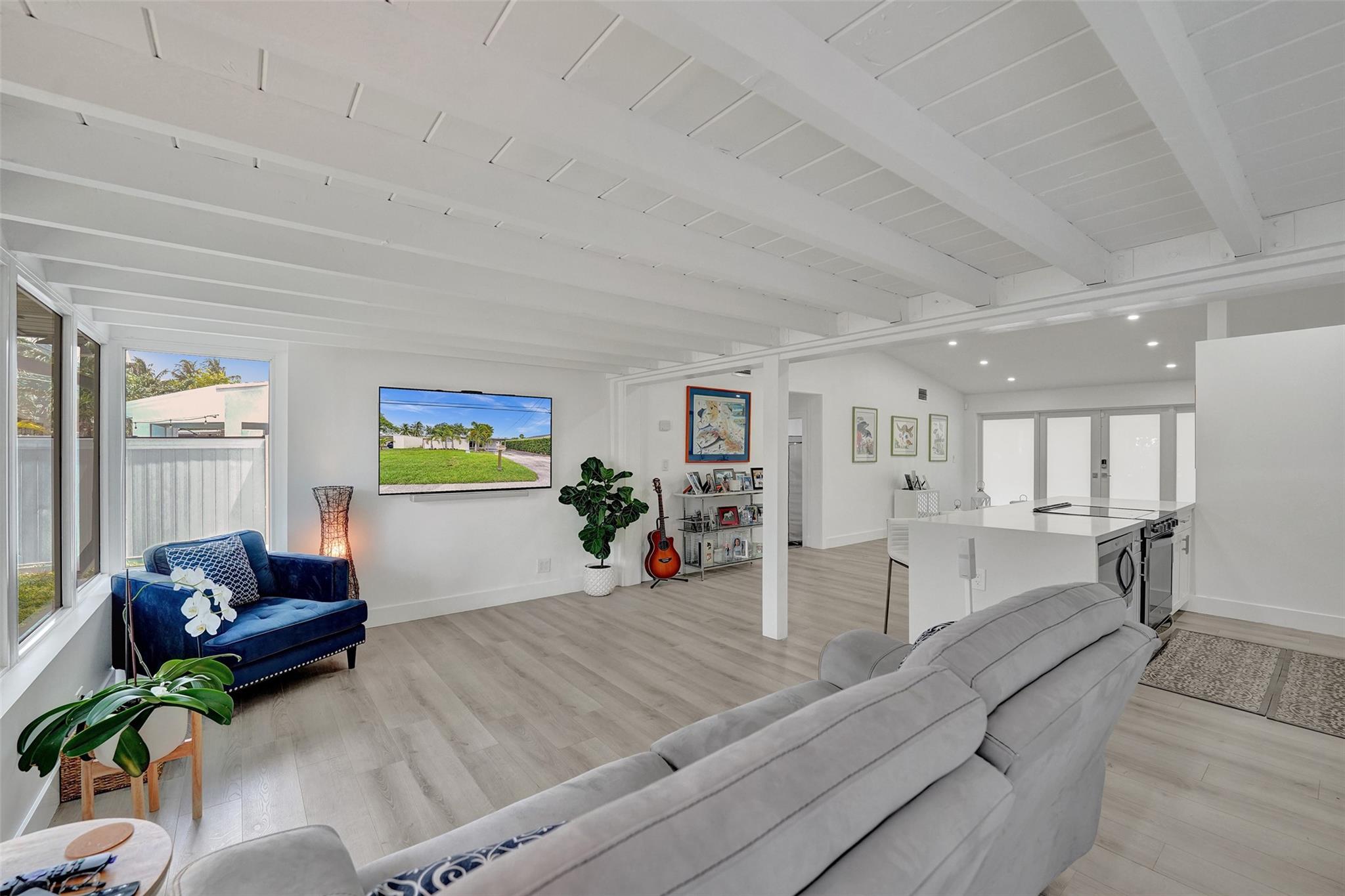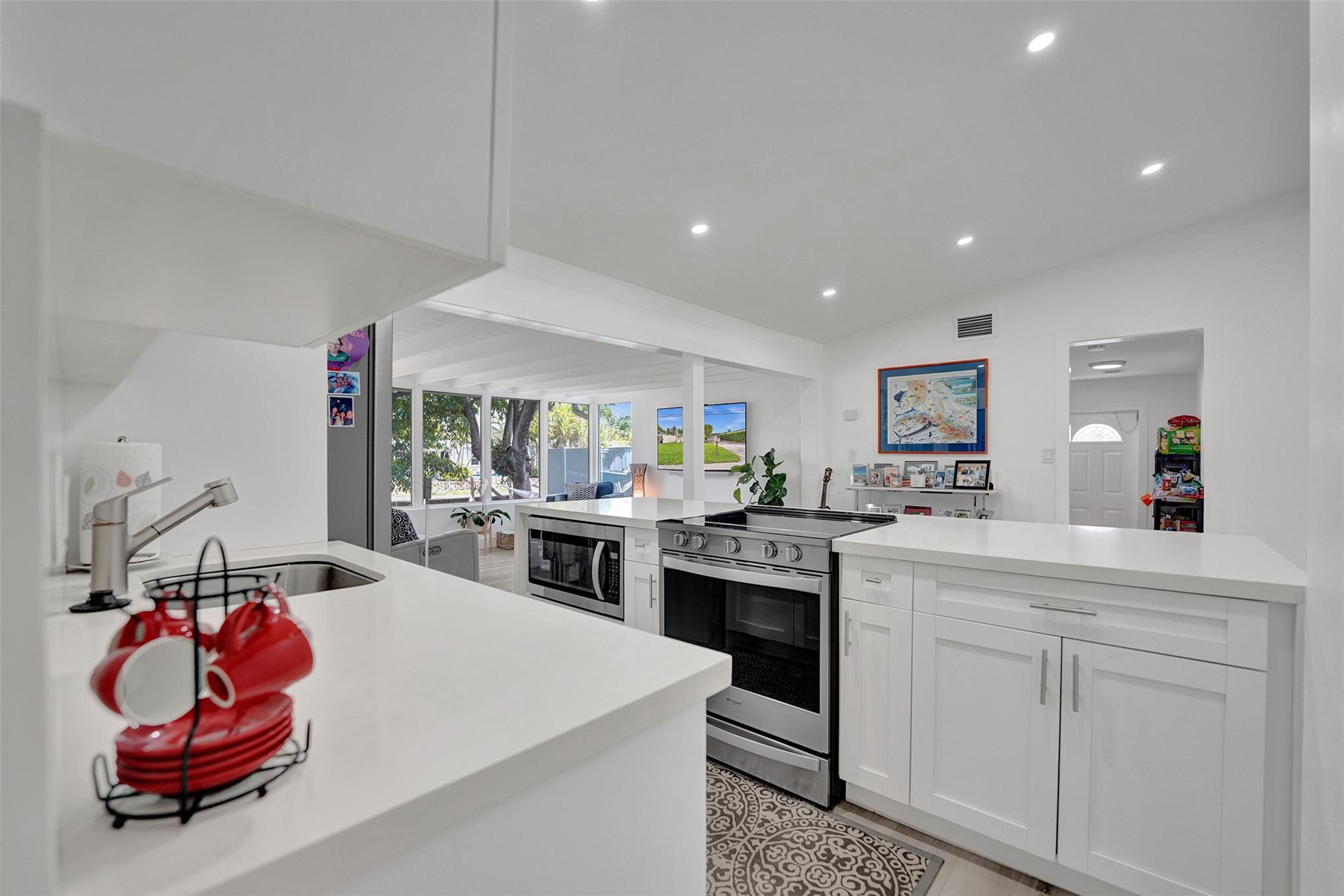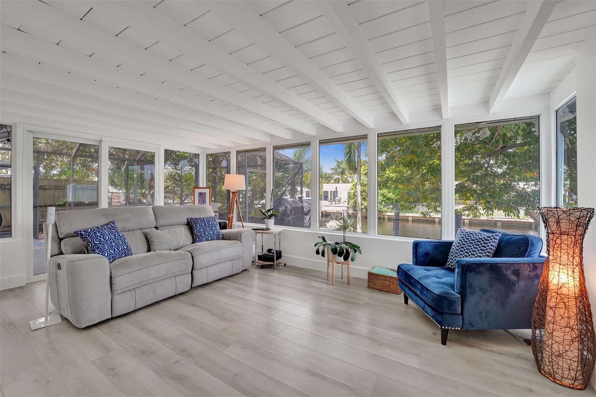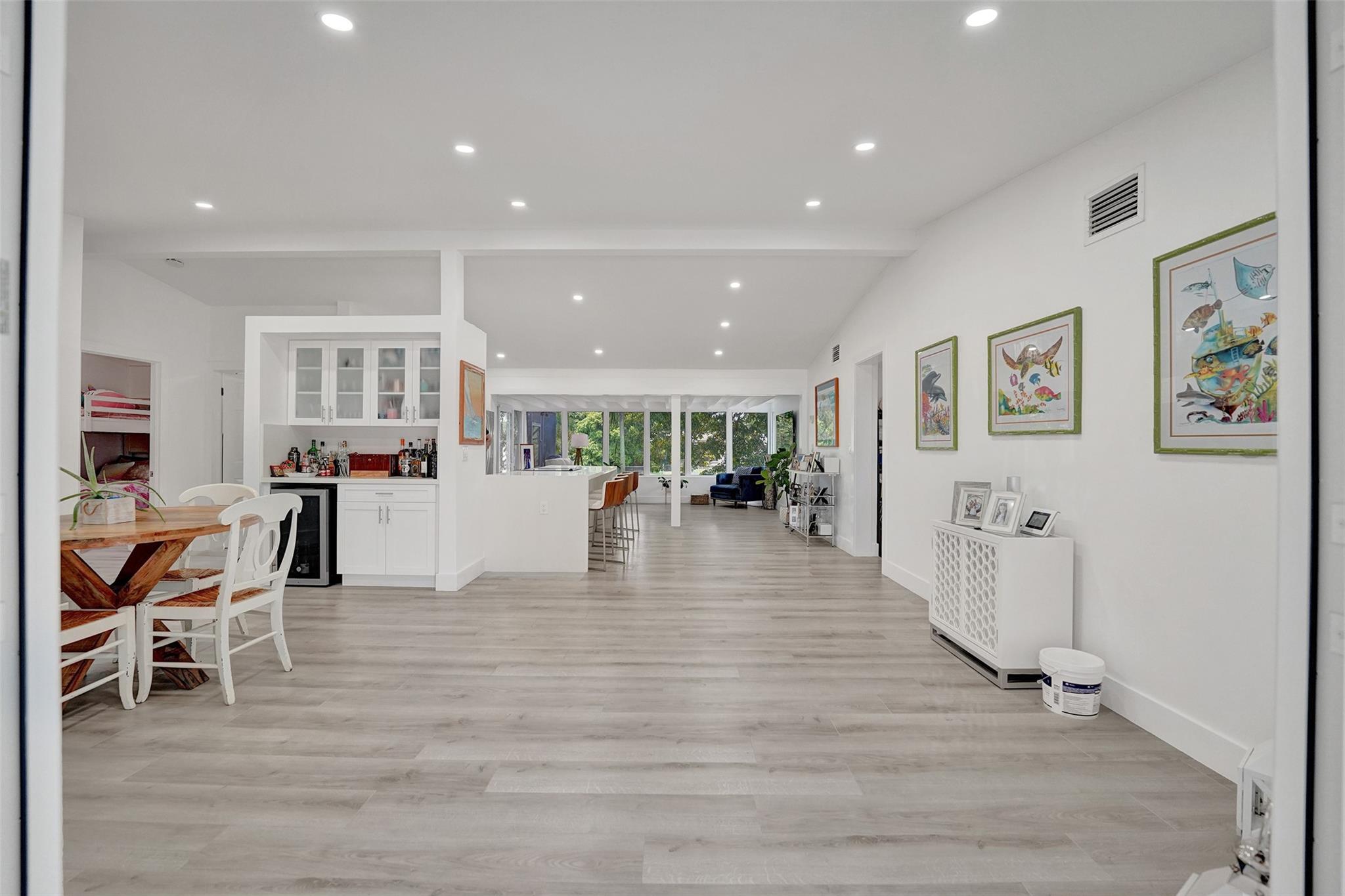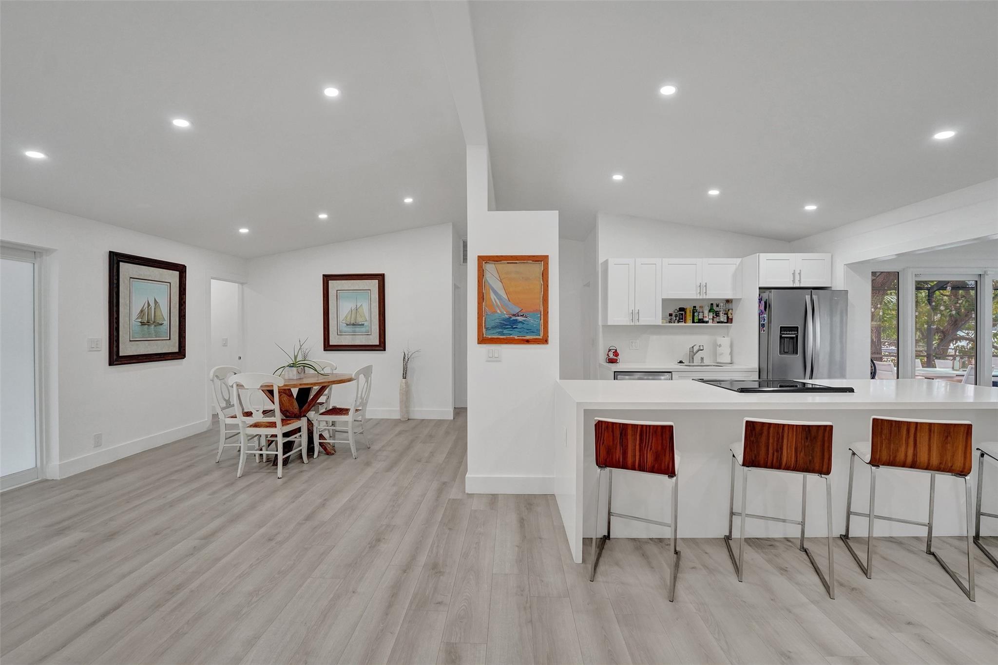 Stunning FULLY updated WATERFRONT, split floor plan home in Fort Lauderdale! 60ft waterfront sea wall, 31ft private dock! No HOA fee! Bright open floor plan, vaulted ceilings, recessed lighting, large impact sliding doors! Bonus custom bar. Breathtaking kitchen with huge island, quartz countertops, new S/S appliances, custom white wood cabinets. Tropical backyard, screened patio & tranquil water views! Split floor plan! Master bedroom with oversized walk-in closet, updated bathroom dual sink vanity! Large laundry room, tons of storage. Community boat ramp, Minutes to the beach & downtown Las Olas! Roof 2011, AC 2014, WH 2013, Electrical panel 2019.