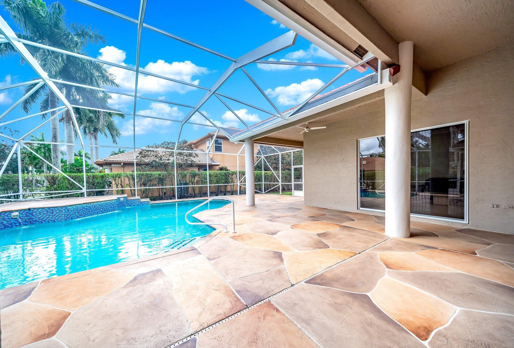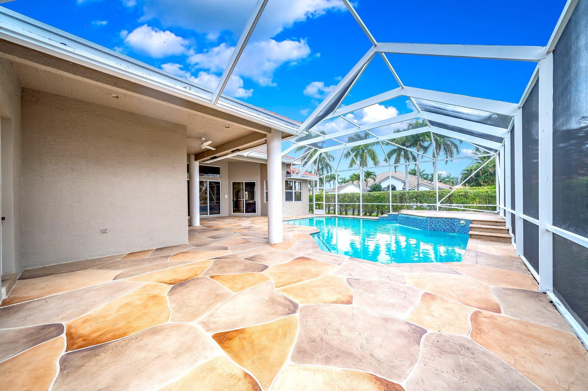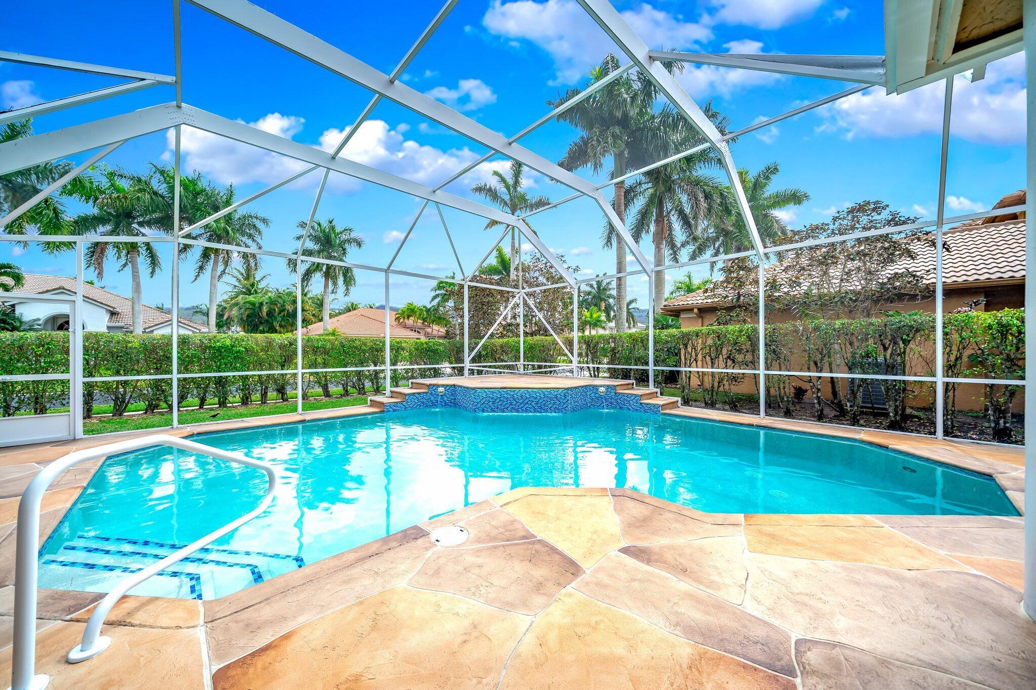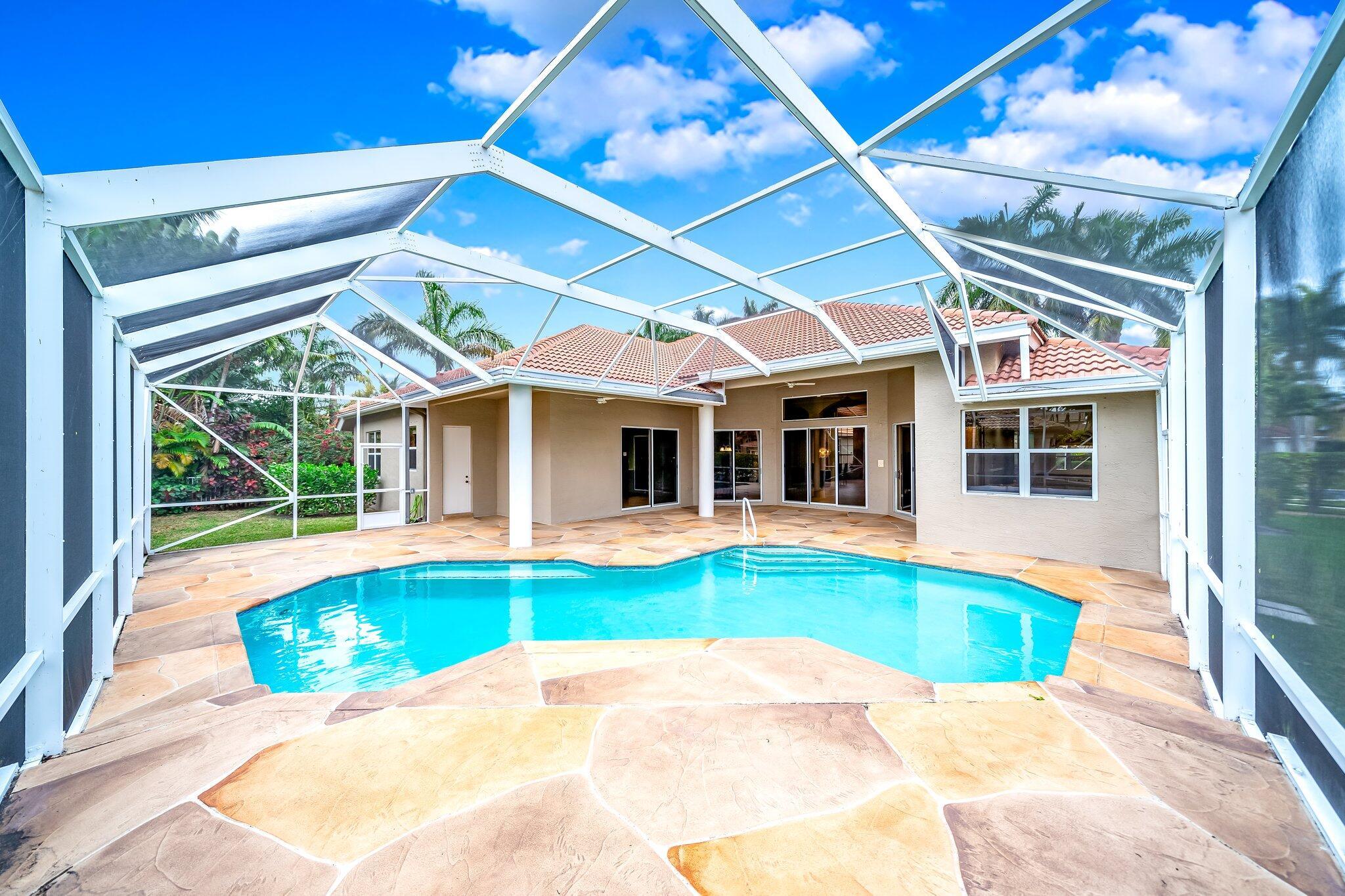 Welcome to The Estates at Boca Falls, with close to 3,900 living square feet, this home has the largest single story, split bedroom floor plan in Boca Falls with 6 bedrooms, 4.5 bathrooms, and a three-car garage. Meticulous architectural details add character such as lighting placements, trey ceilings and designated living and dining areas creating a warm and inviting ambiance. This home is situated on one of the largest corner lots with a third of an acre. A large screened in pool allows for an ideal indoor/outdoor living space. An oversized primary bedroom has sliding glass doors leading to the pool and the ensuite bathroom was recently renovated into a spa-like retreat. Excellent storm protection. The community is secured by two 24/7 manned-gates and offers incredible amenities