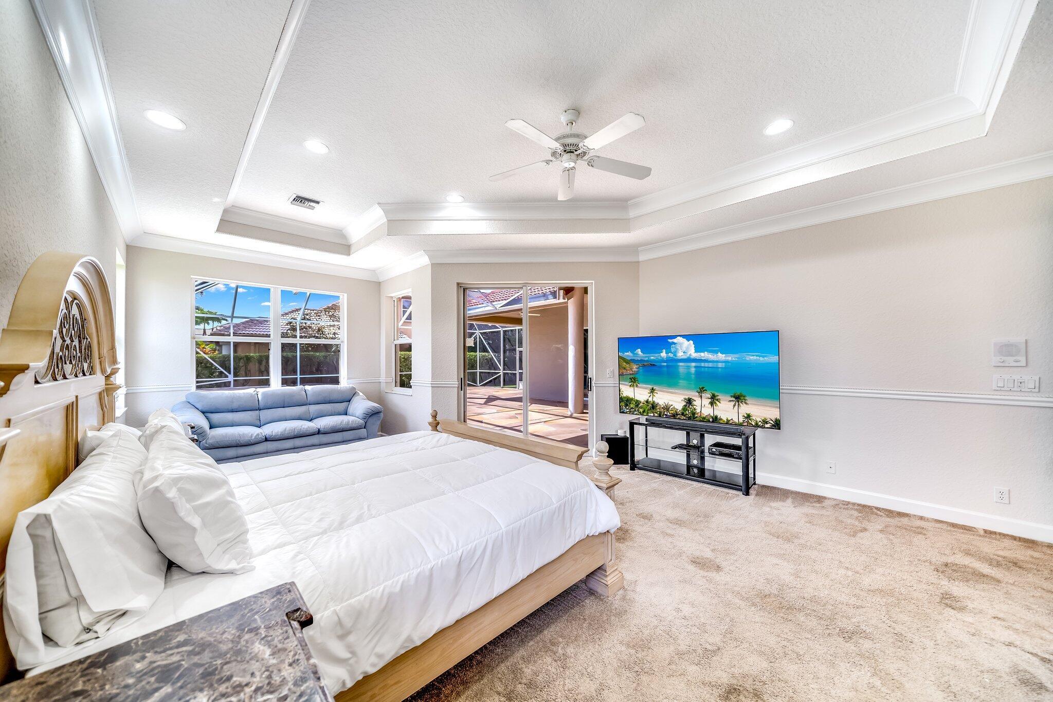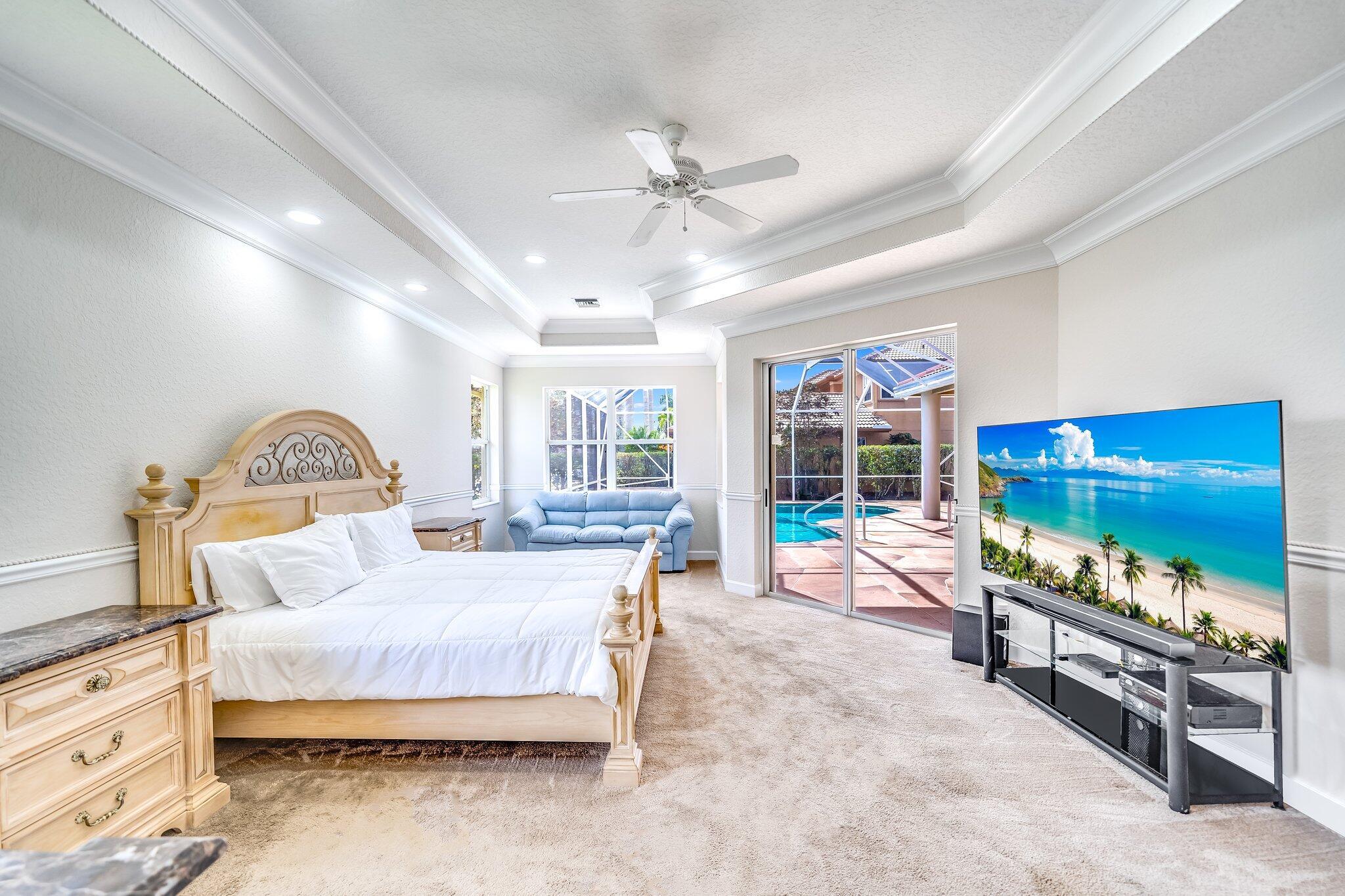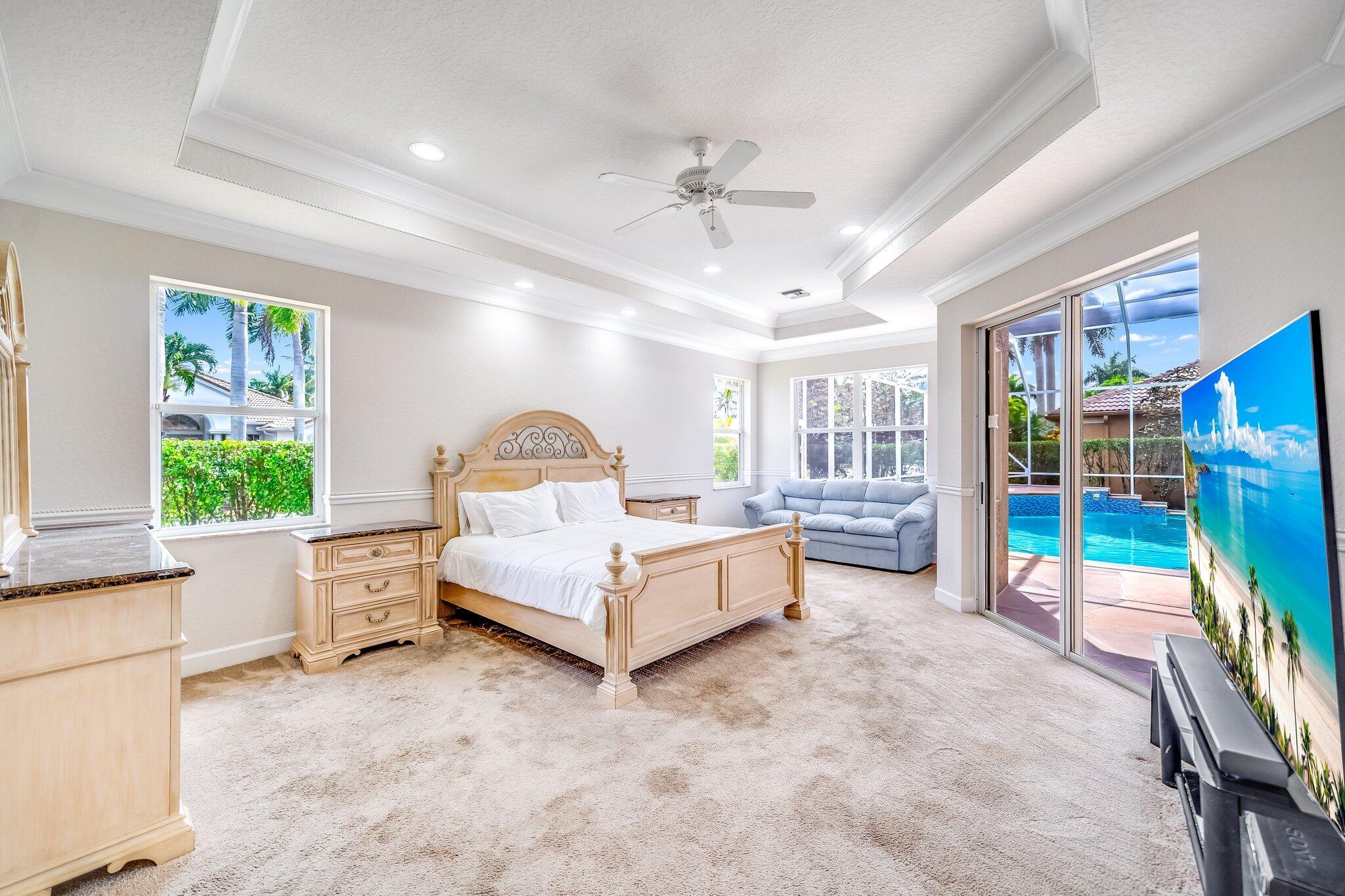 Welcome to The Estates at Boca Falls, with close to 3,900 living square feet, this home has the largest single story, split bedroom floor plan in Boca Falls with 6 bedrooms, 4.5 bathrooms, and a three-car garage. Meticulous architectural details add character such as lighting placements, trey ceilings and designated living and dining areas creating a warm and inviting ambiance. This home is situated on one of the largest corner lots with a third of an acre. A large screened in pool allows for an ideal indoor/outdoor living space. An oversized primary bedroom has sliding glass doors leading to the pool and the ensuite bathroom was recently renovated into a spa-like retreat. Excellent storm protection. The community is secured by two 24/7 manned-gates and offers incredible amenities