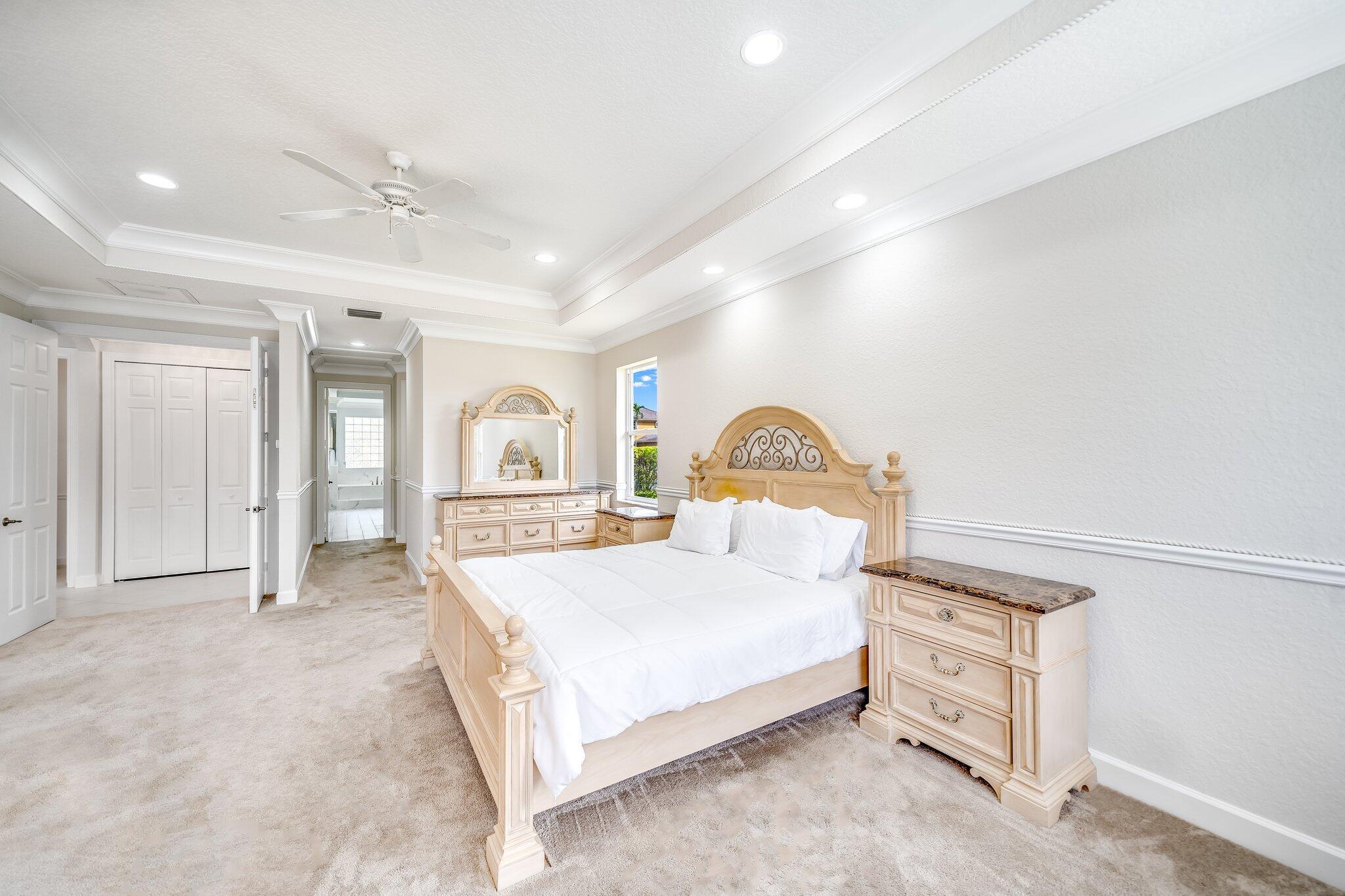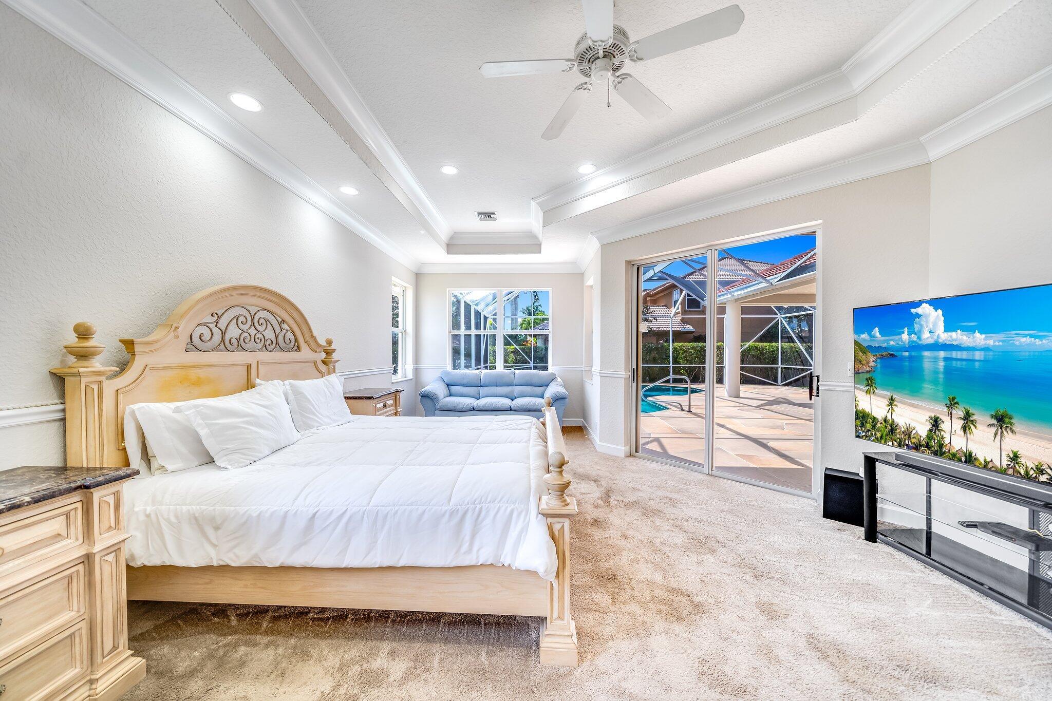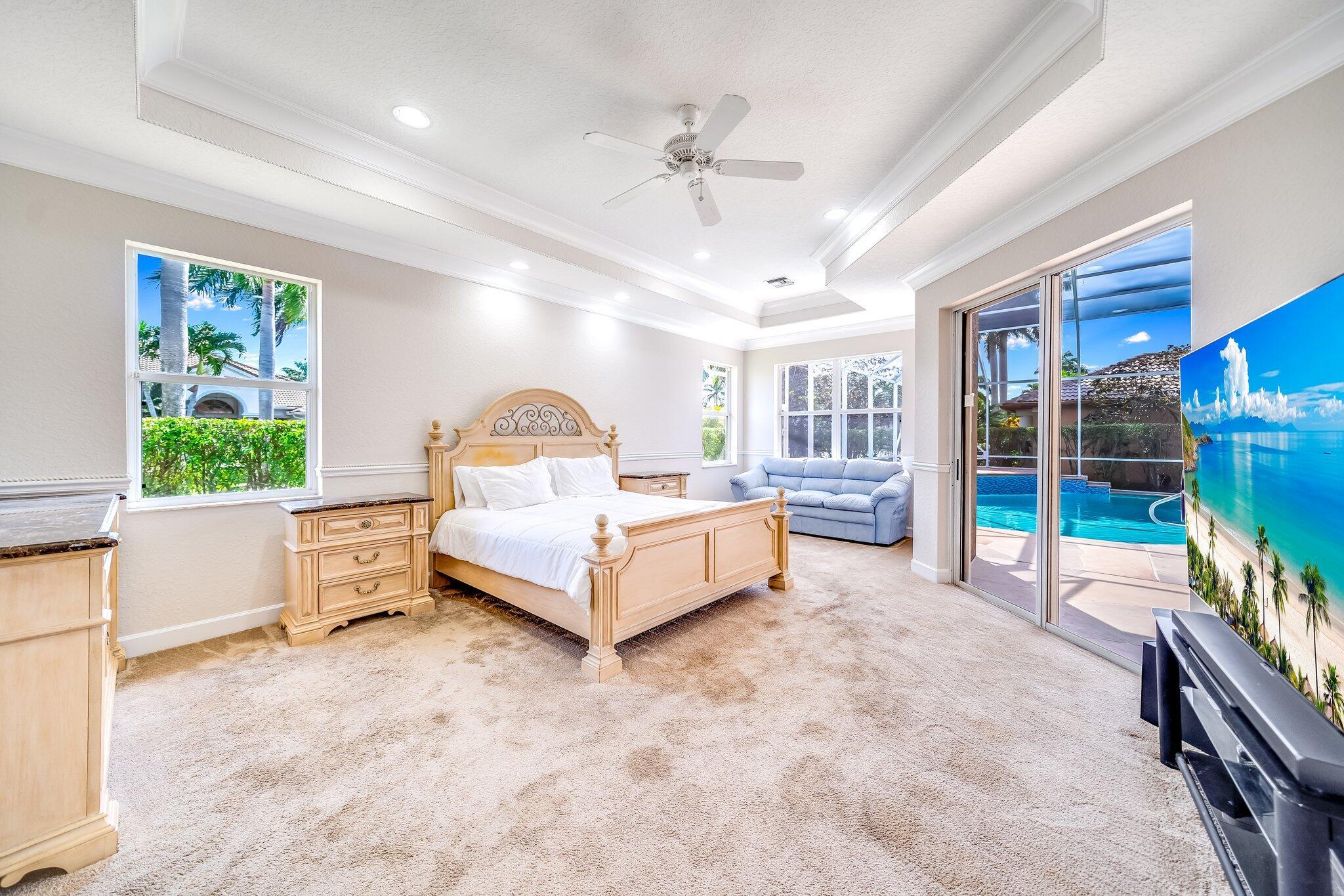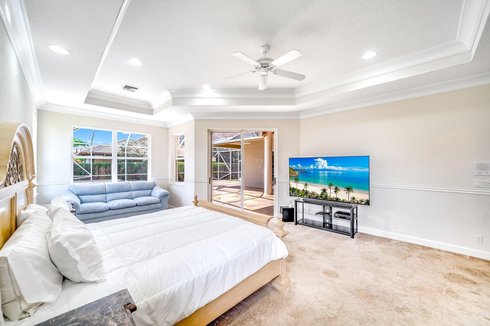Welcome to The Estates at Boca Falls, with close to 3,900 living square feet, this home has the largest single story, split bedroom floor plan in Boca Falls with 6 bedrooms, 4.5 bathrooms, and a three-car garage. Meticulous architectural details add character such as lighting placements, trey ceilings and designated living and dining areas creating a warm and inviting ambiance. This home is situated on one of the largest corner lots with a third of an acre. A large screened in pool allows for an ideal indoor/outdoor living space. An oversized primary bedroom has sliding glass doors leading to the pool and the ensuite bathroom was recently renovated into a spa-like retreat. Excellent storm protection. The community is secured by two 24/7 manned-gates and offers incredible amenities