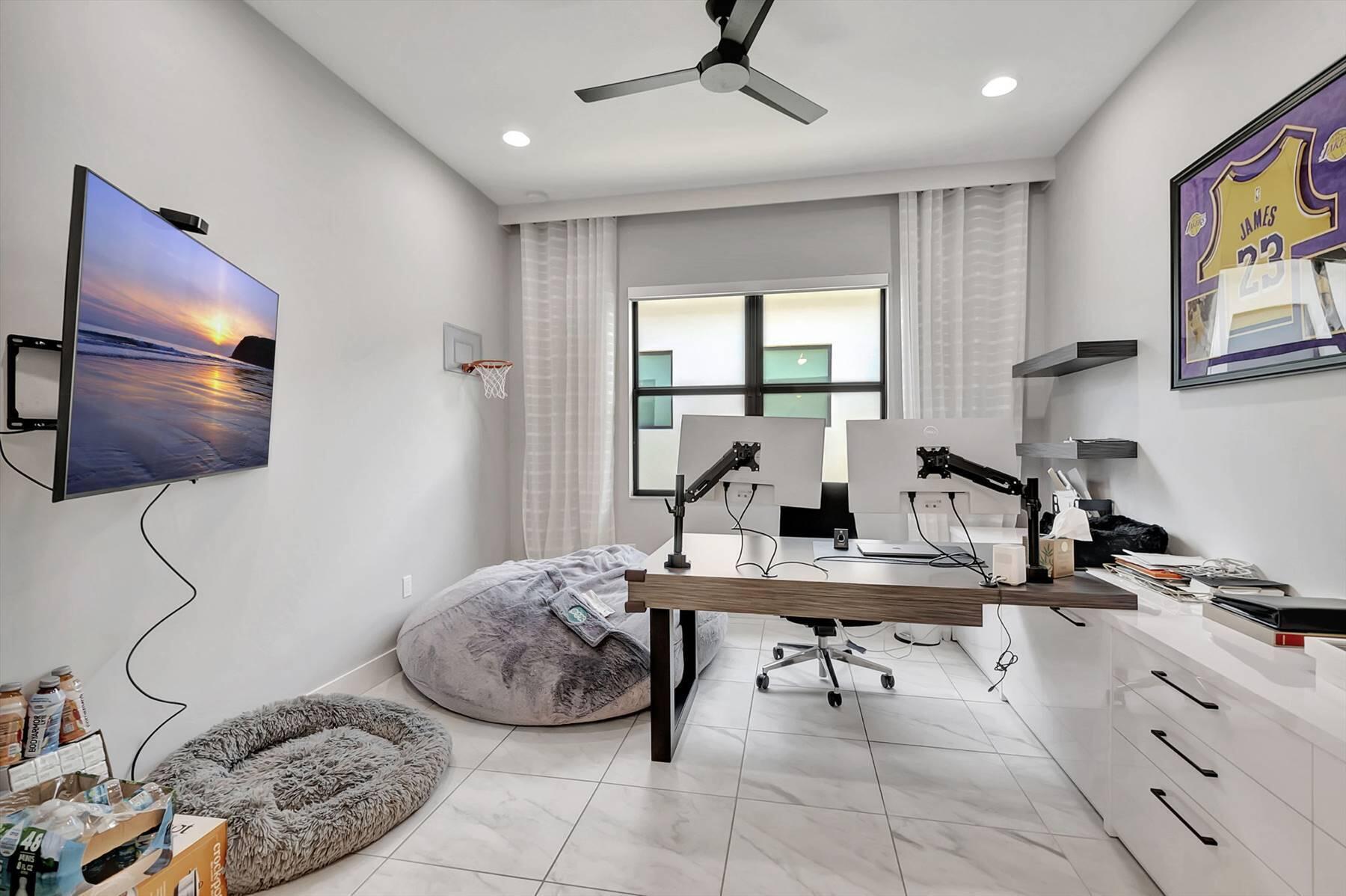 Modern and cozy one-story Maui Model home has 3 spacious bedrooms, 3 bathrooms, plus a built-in office. The home has an open-floor plan, kitchen with a gas range, an abundance of storage within the cabinetry, granite countertops, surround sound system, and beautiful tile flooring throughout the main areas. The backyard has extended pavers. There’s room to build a pool. The home includes a new washer and dryer, a camera system, and 2-car garage with 2 built in roof storage systems. Modern design meets resort-style lifestyle, offers an amazing clubhouse, lots of amenities, restaurant, and great sense of community.